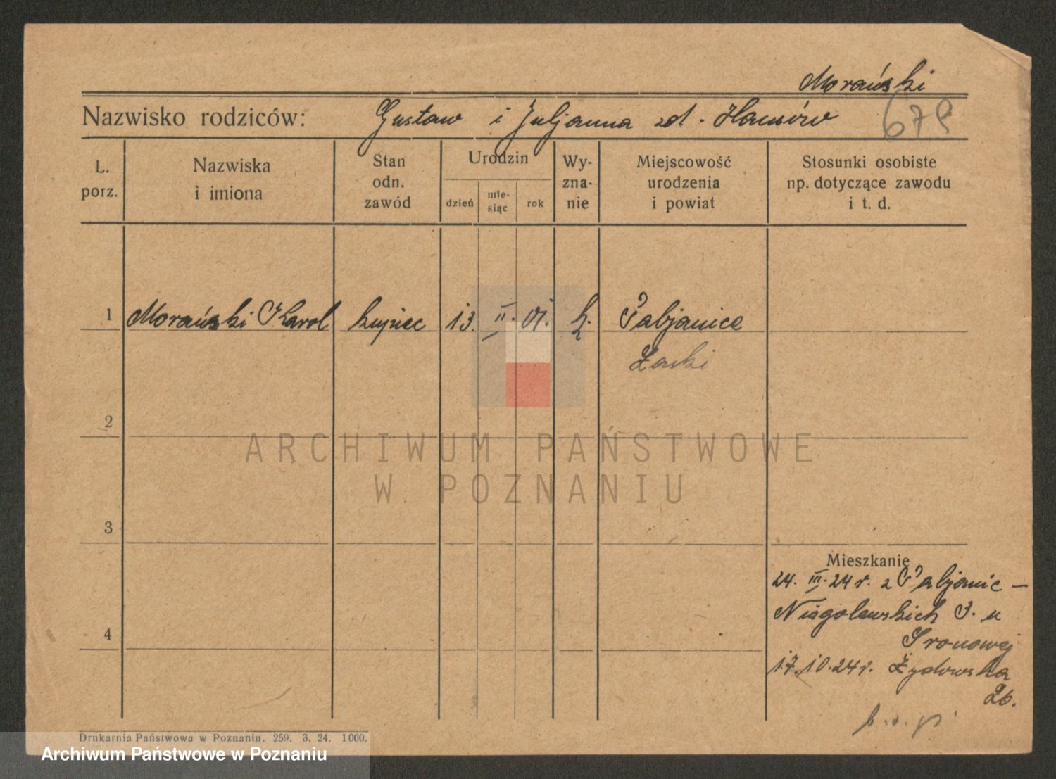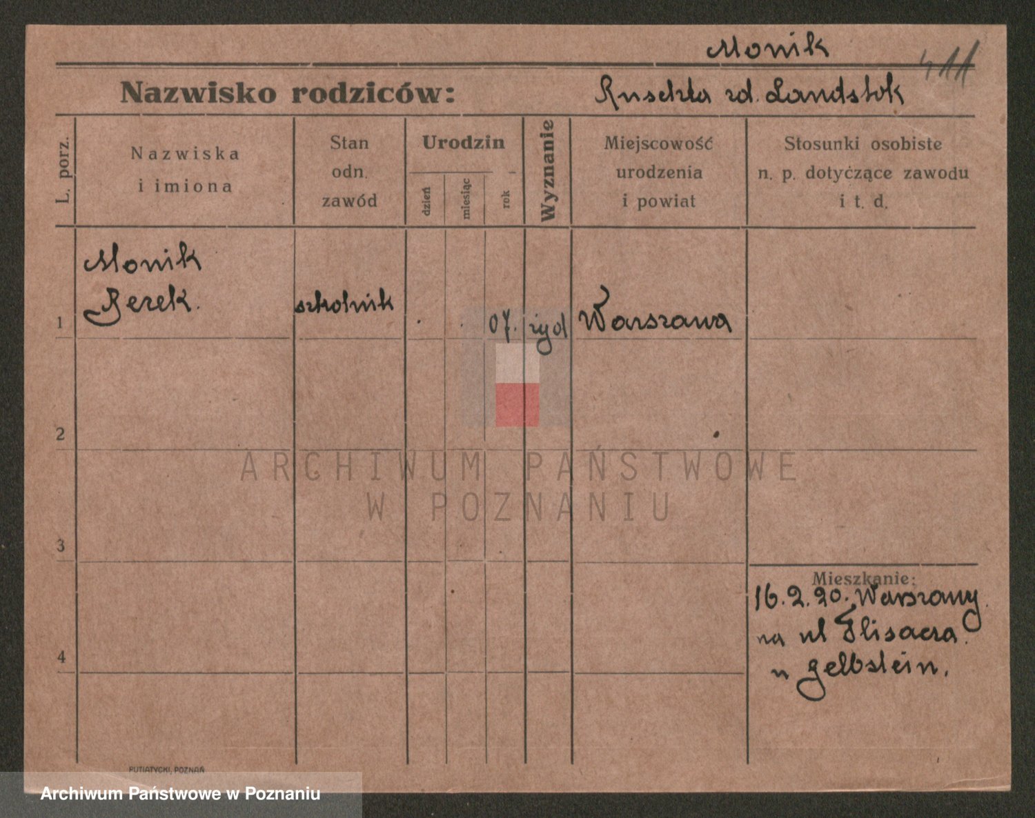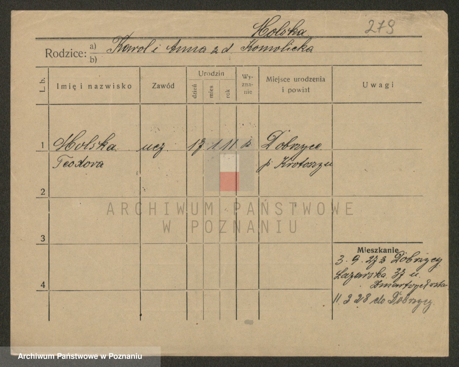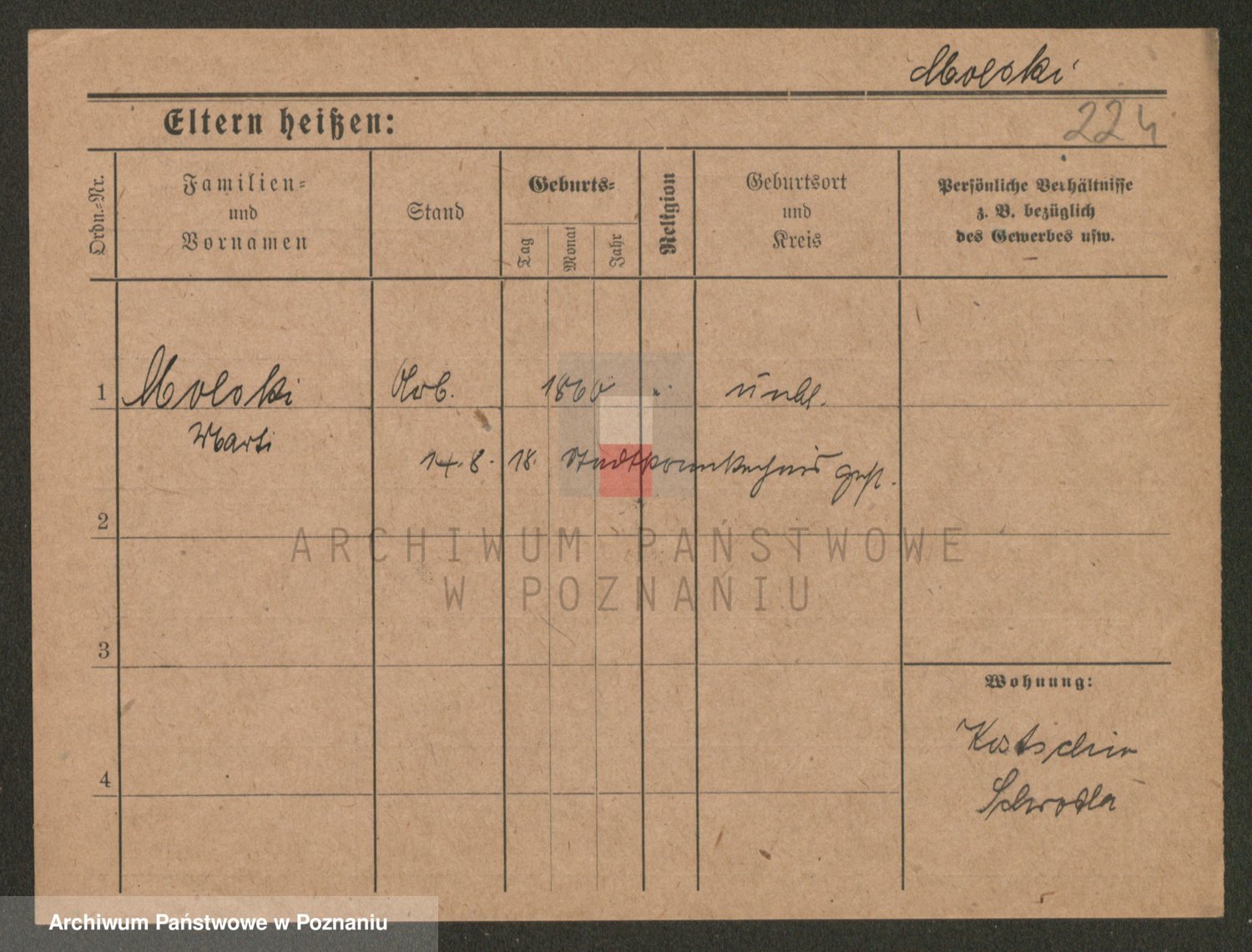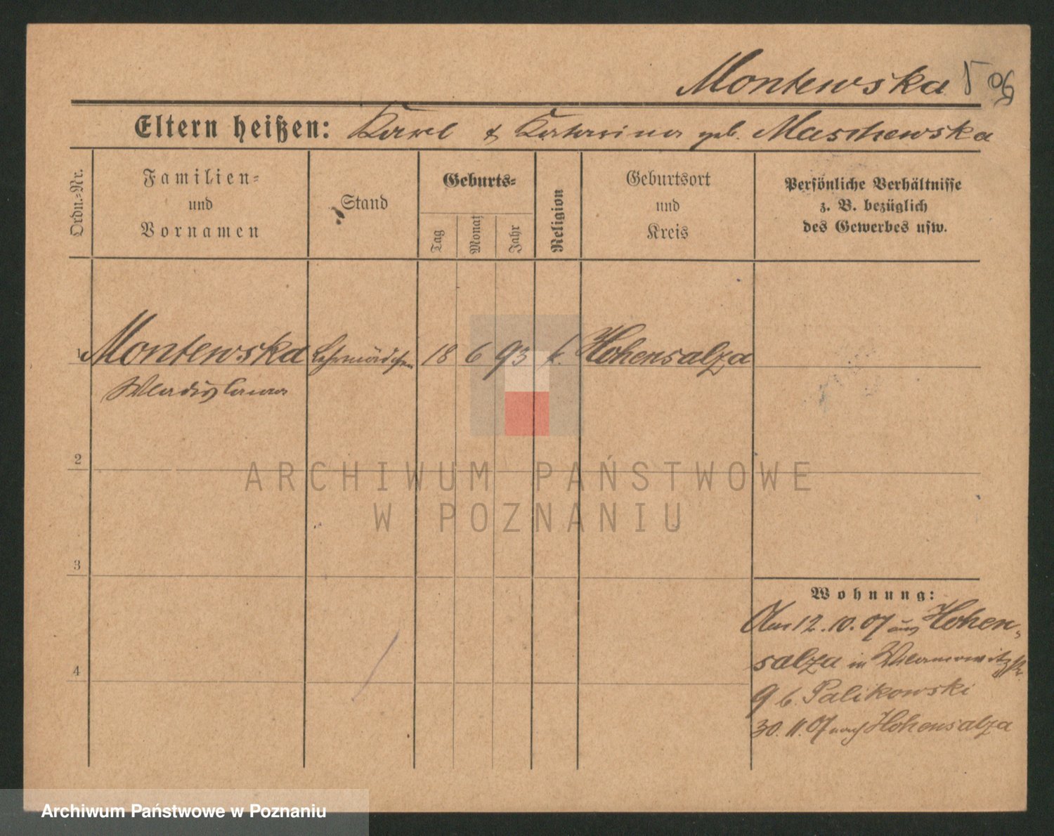 Podgląd karty osobowej dostępny jest po kliknięciu na nazwisko lub ikonkę karty. Można dokonywać powiększenia (ikony na górze) lub przechodzić między kolejnymi skanami (strzałki po bokach).