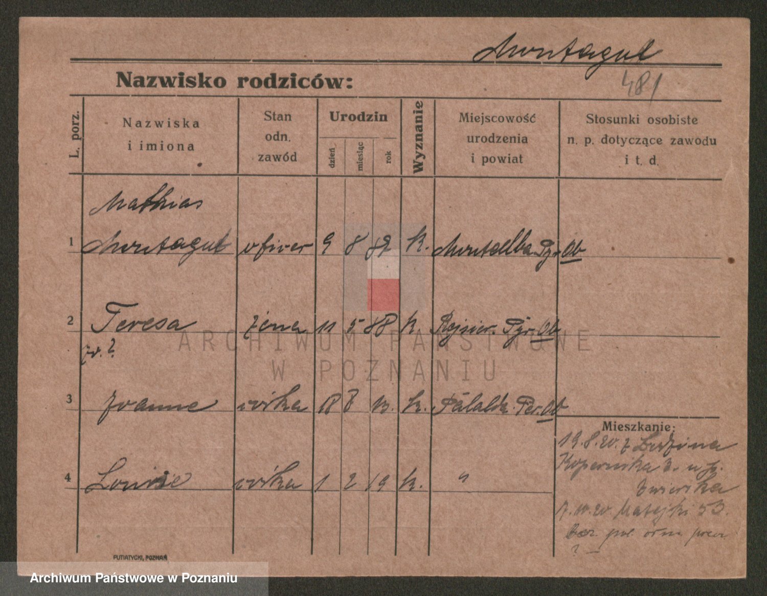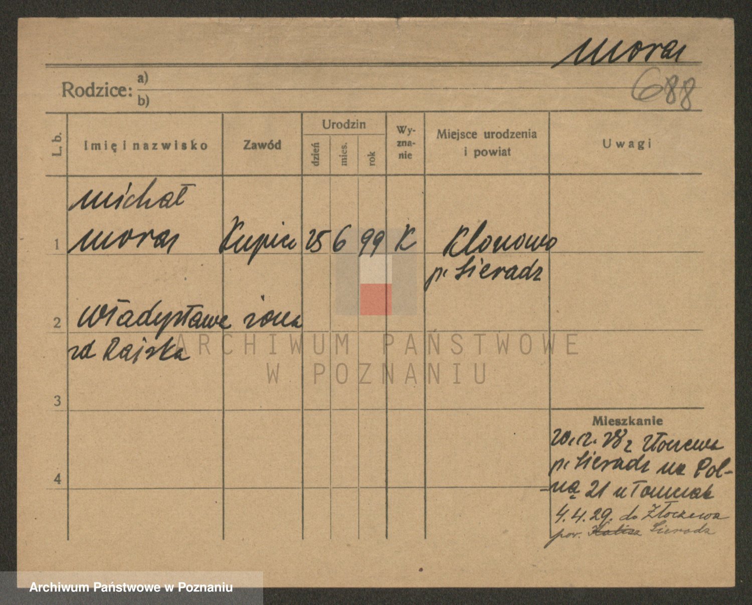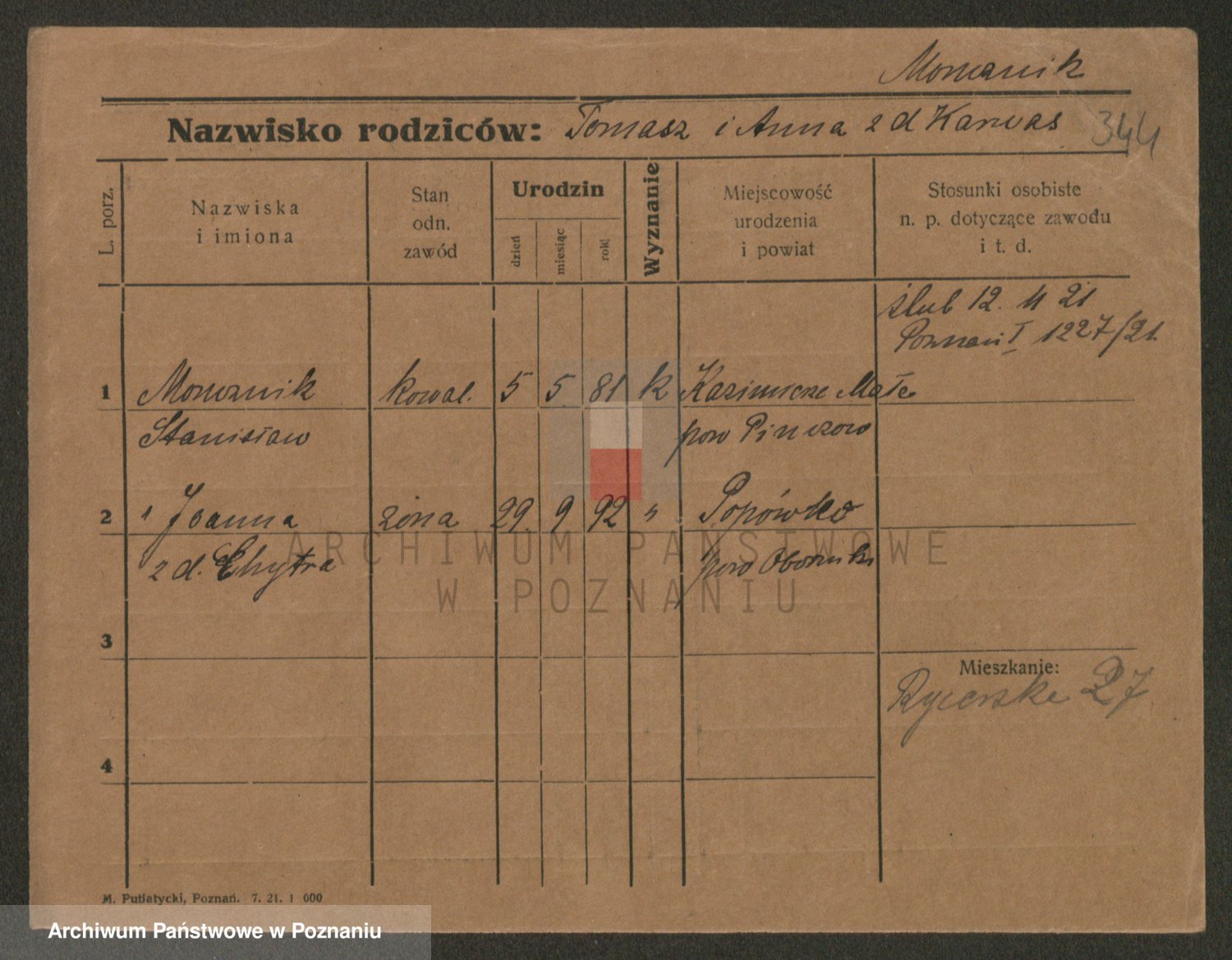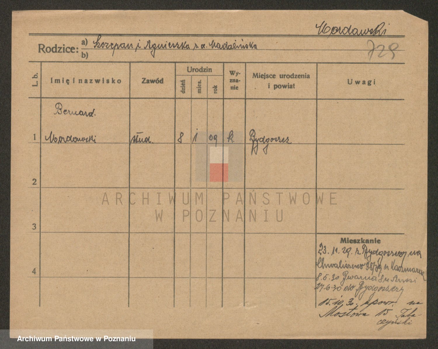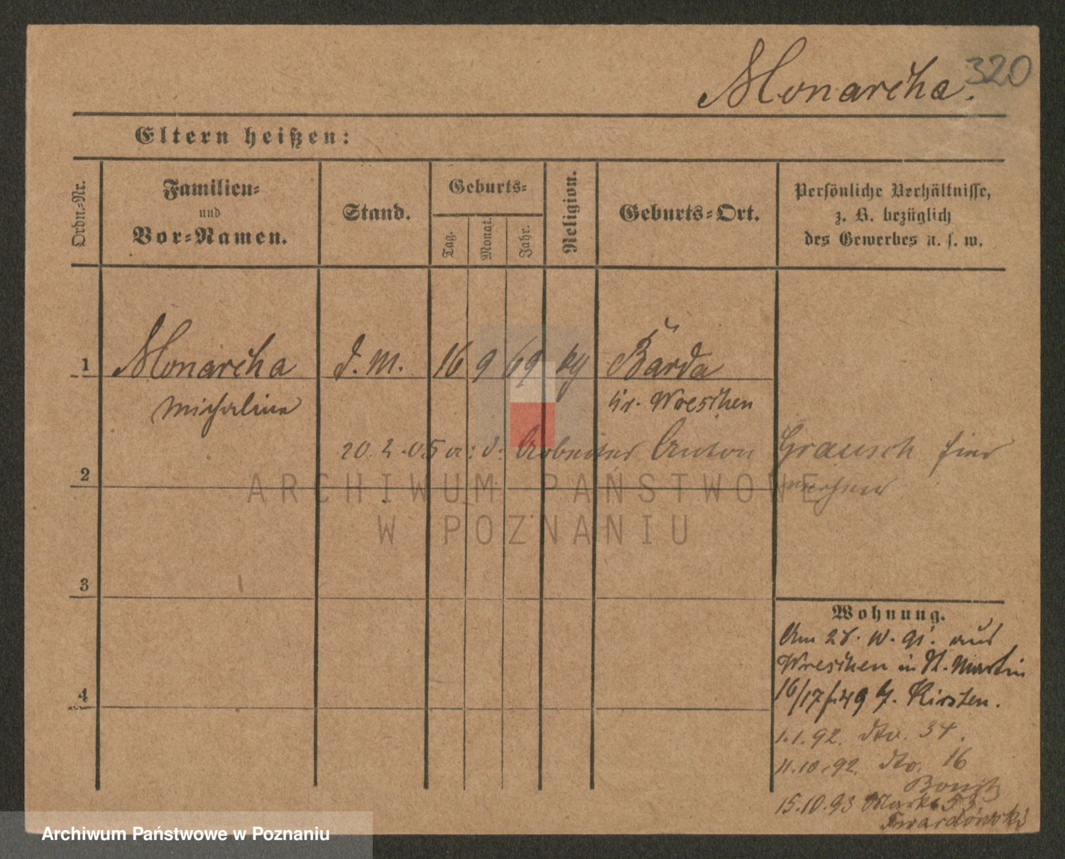 Podgląd karty osobowej dostępny jest po kliknięciu na nazwisko lub ikonkę karty. Można dokonywać powiększenia (ikony na górze) lub przechodzić między kolejnymi skanami (strzałki po bokach).