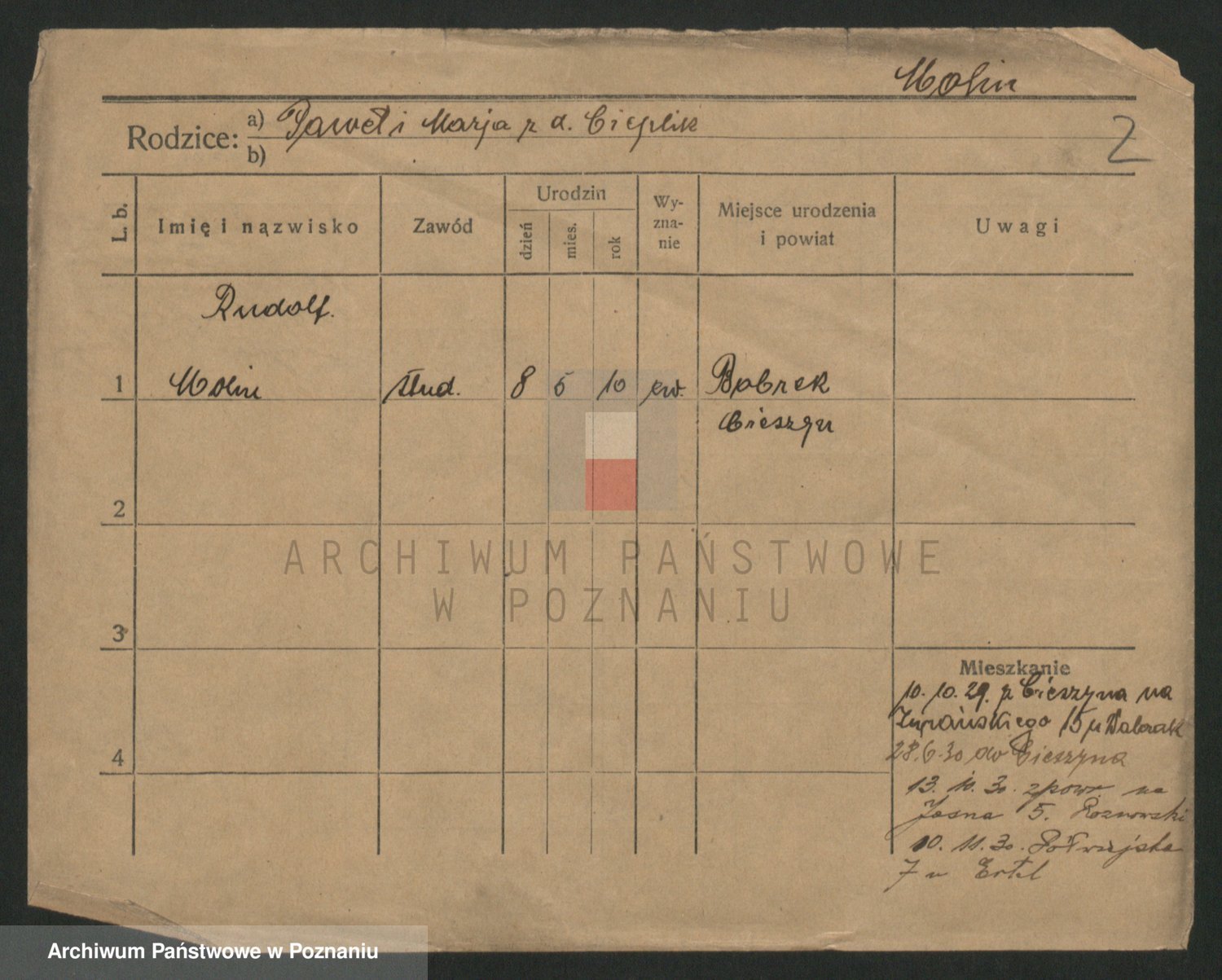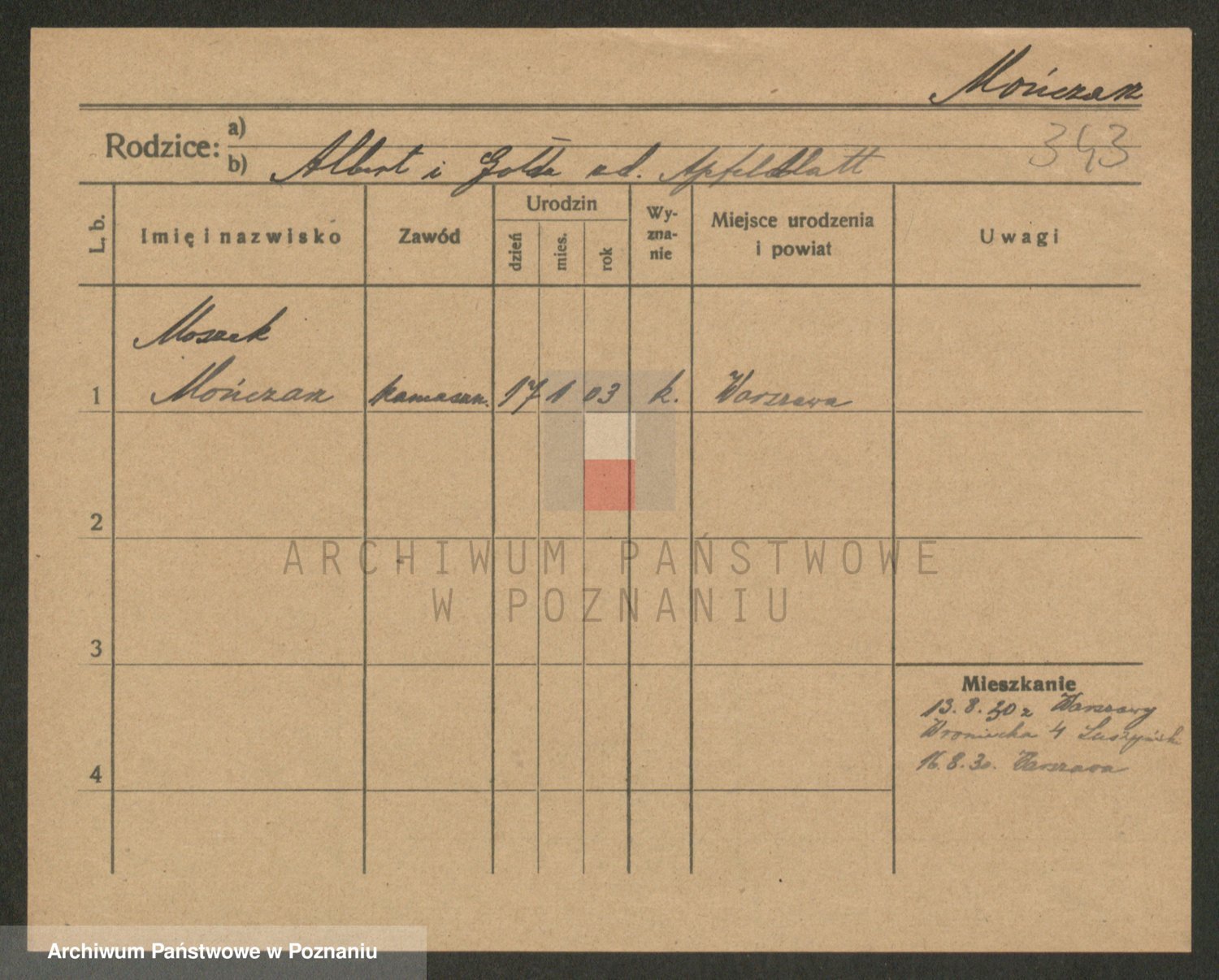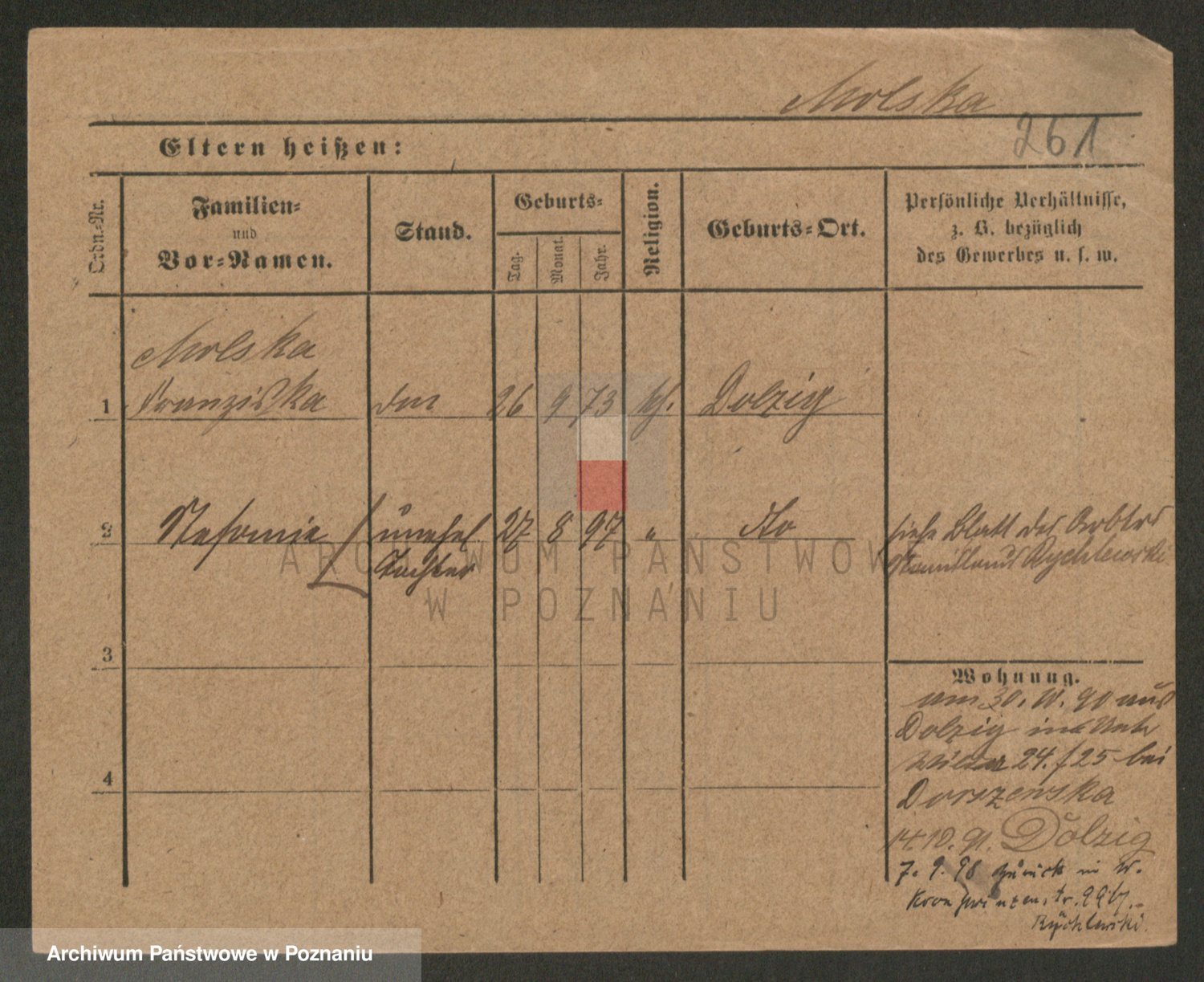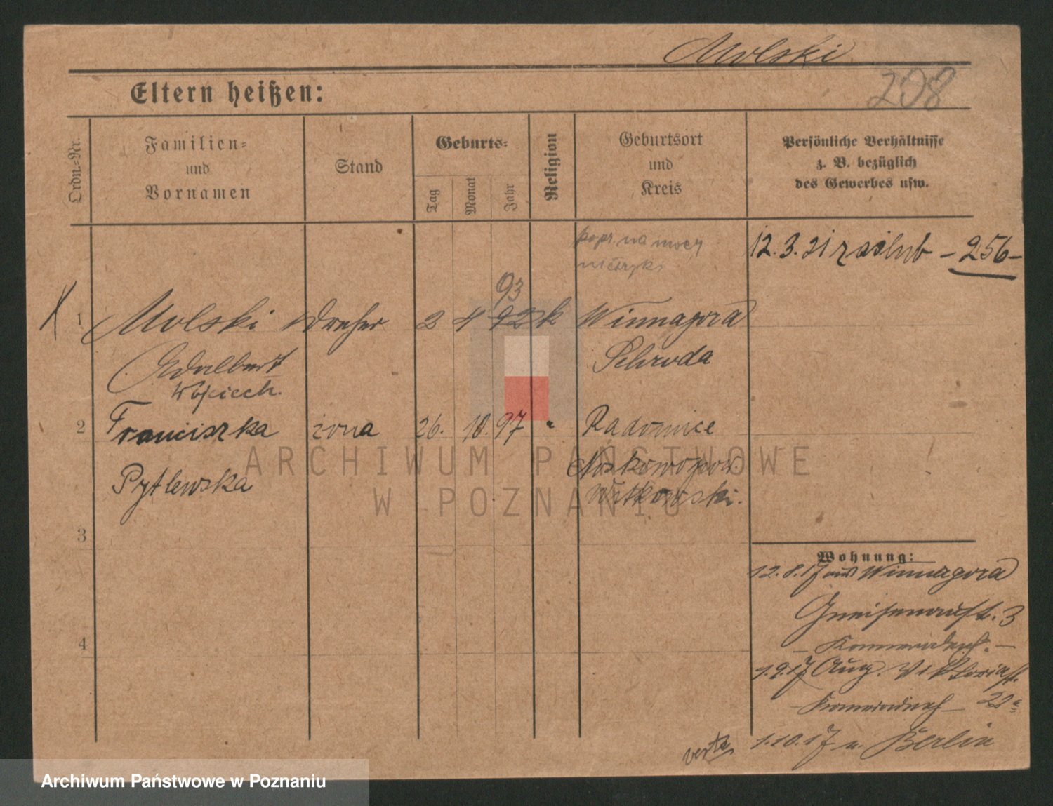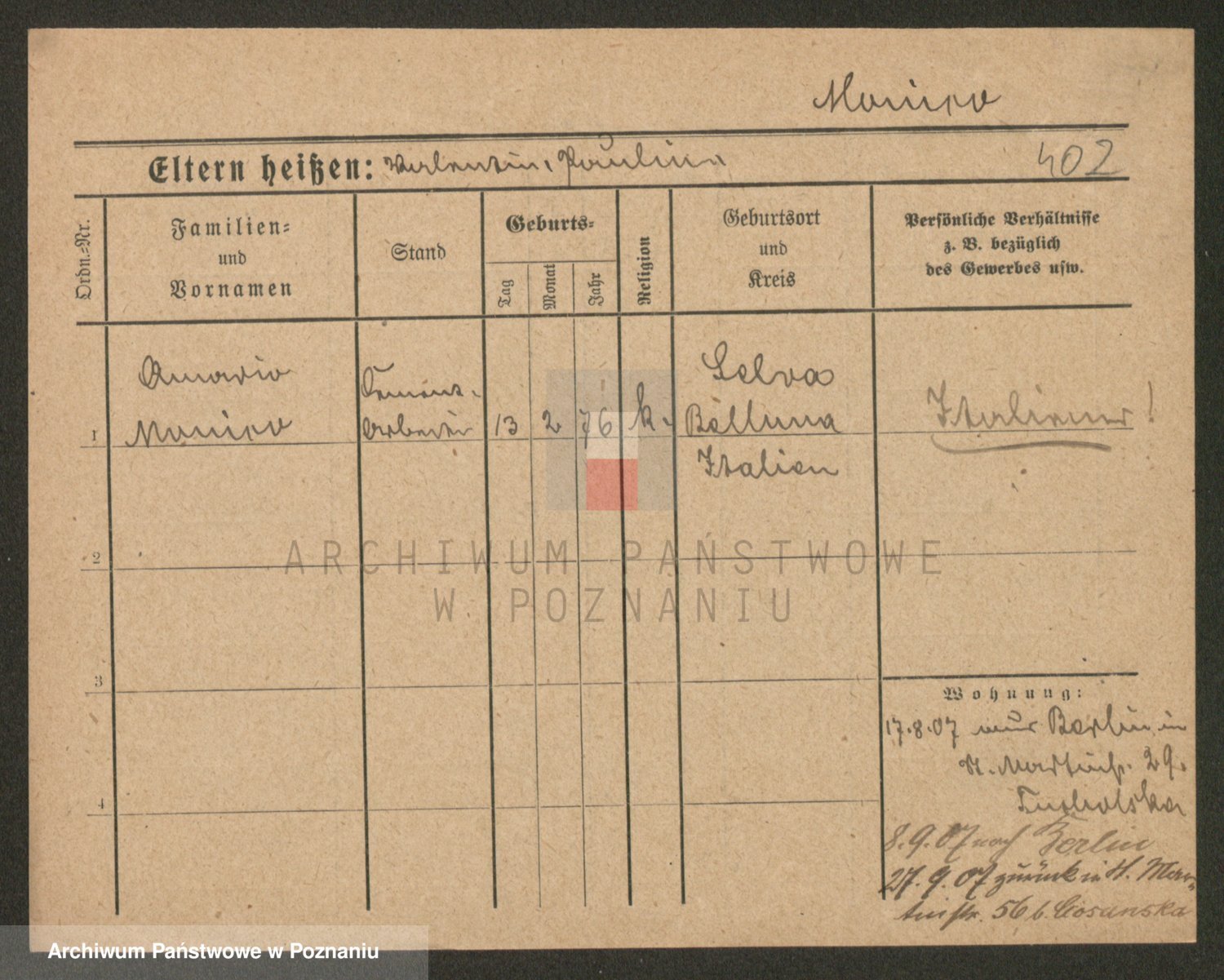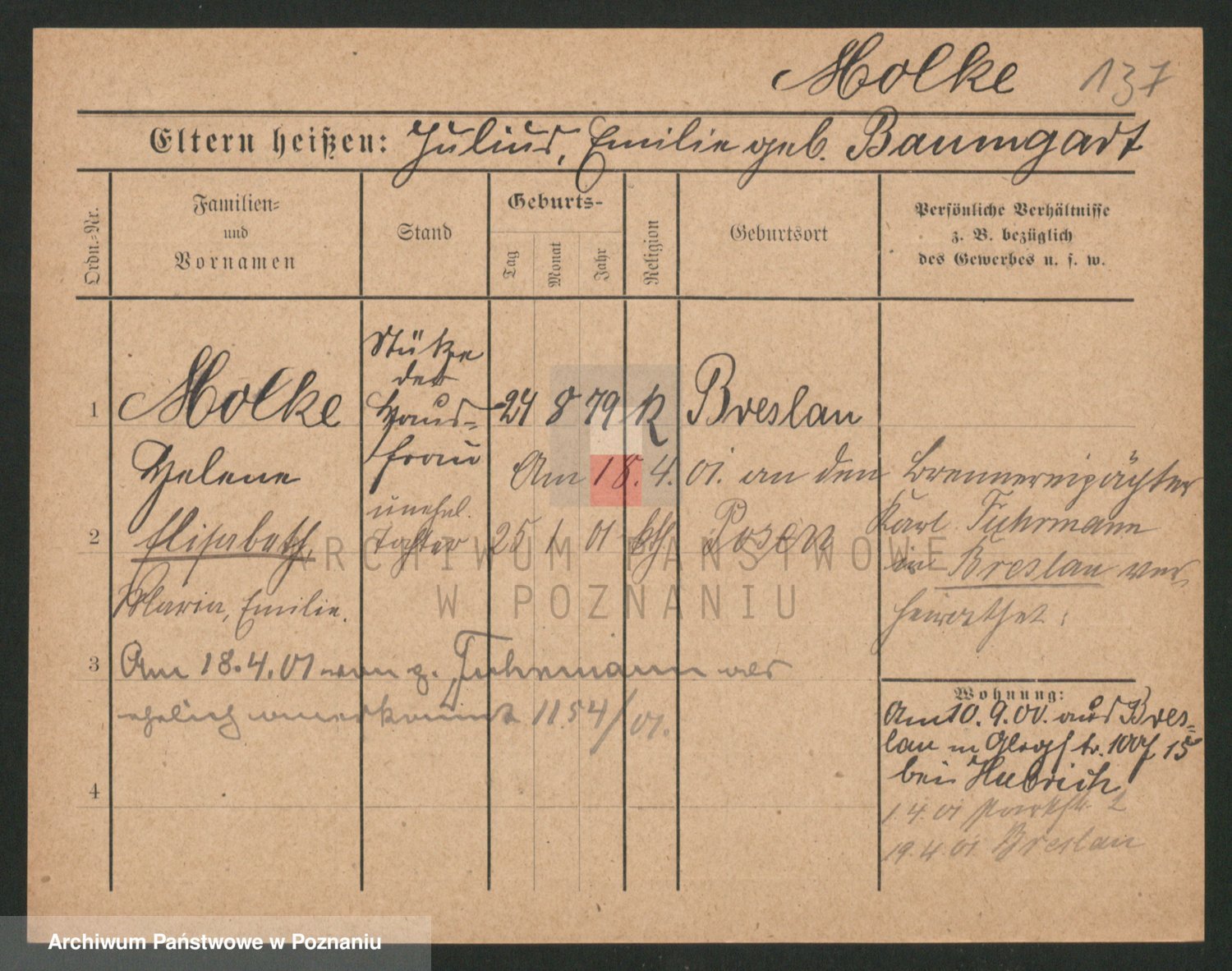 Podgląd karty osobowej dostępny jest po kliknięciu na nazwisko lub ikonkę karty. Można dokonywać powiększenia (ikony na górze) lub przechodzić między kolejnymi skanami (strzałki po bokach).