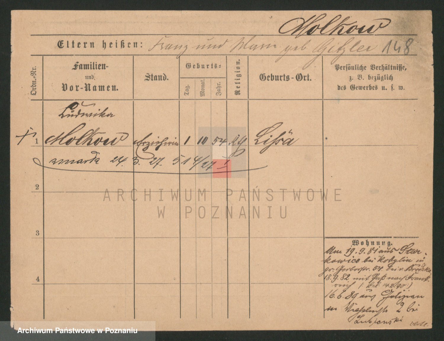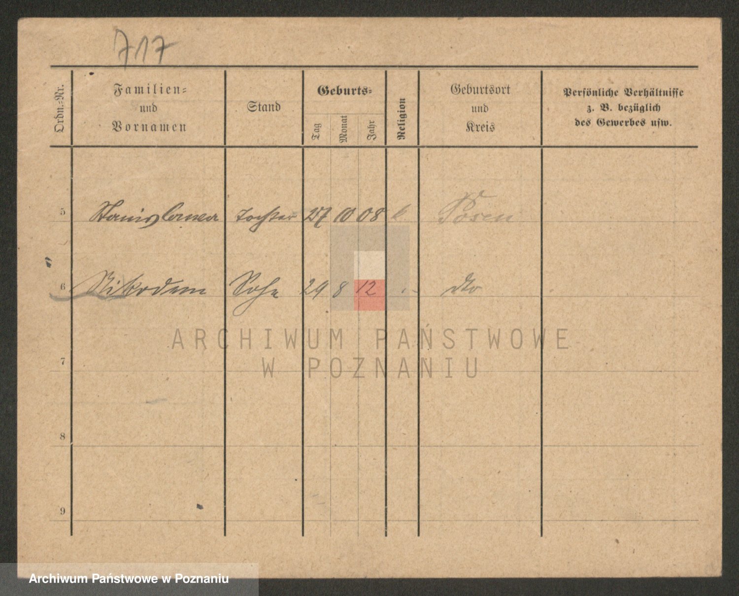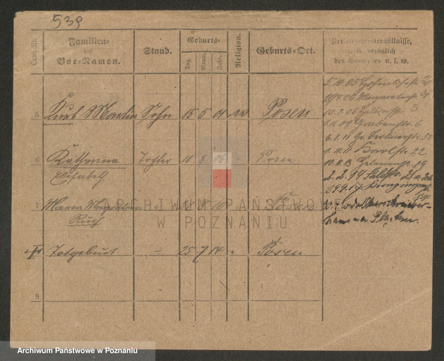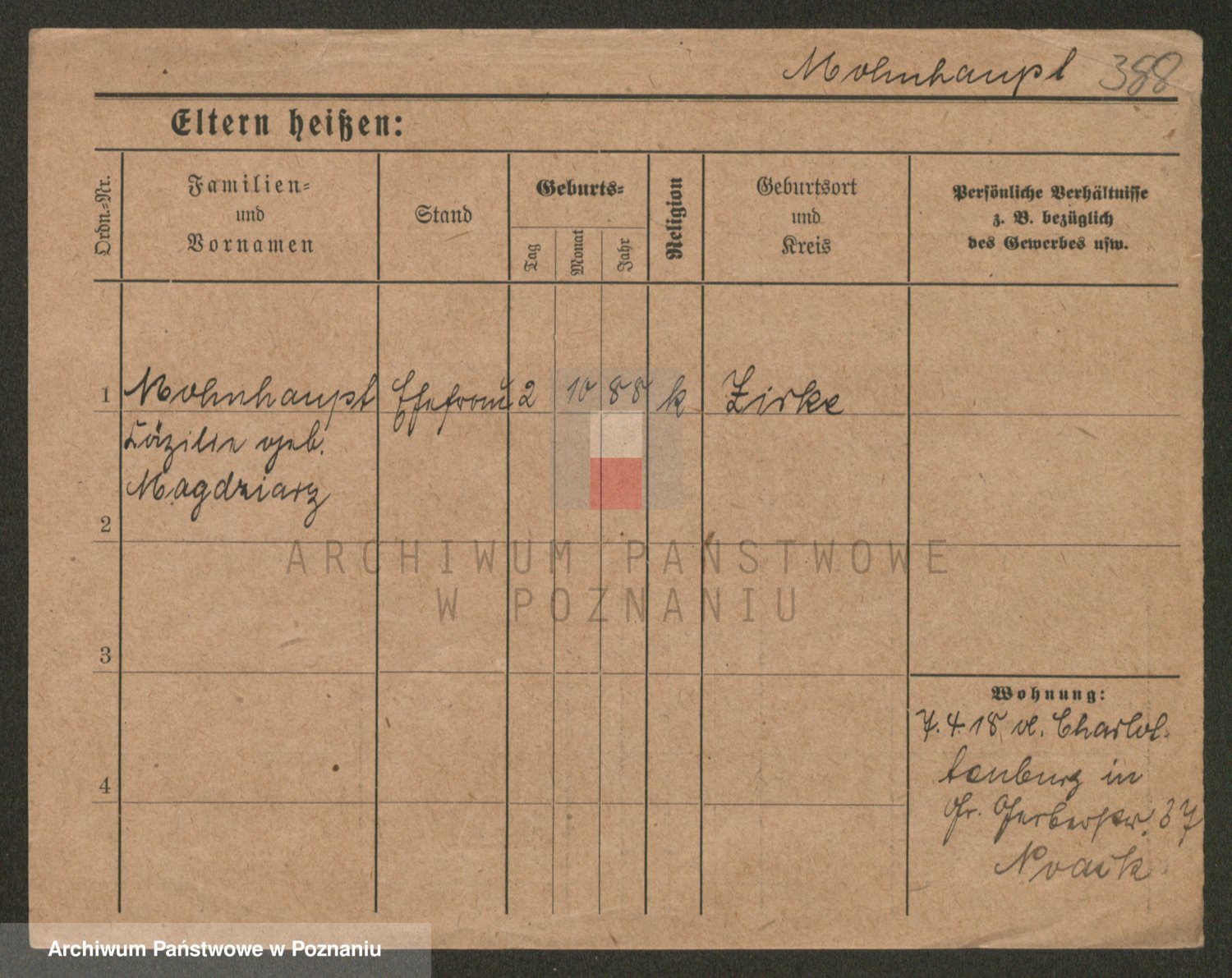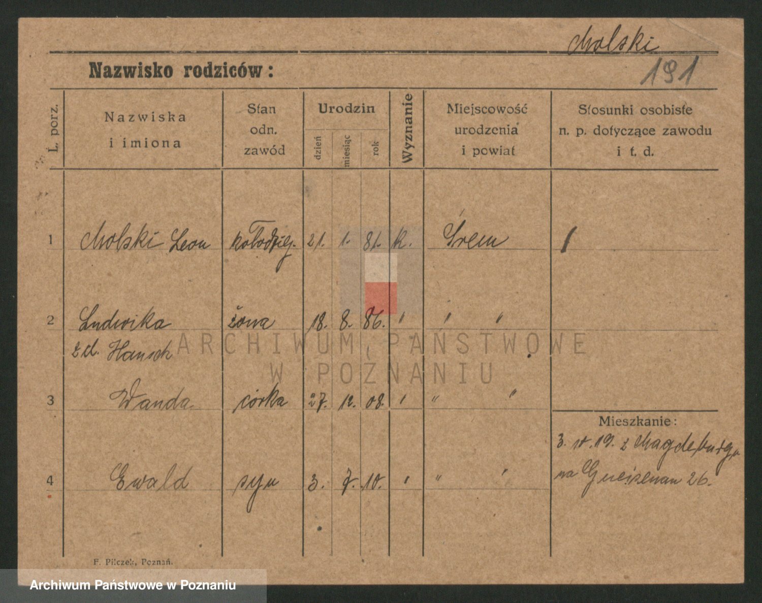 Podgląd karty osobowej dostępny jest po kliknięciu na nazwisko lub ikonkę karty. Można dokonywać powiększenia (ikony na górze) lub przechodzić między kolejnymi skanami (strzałki po bokach).