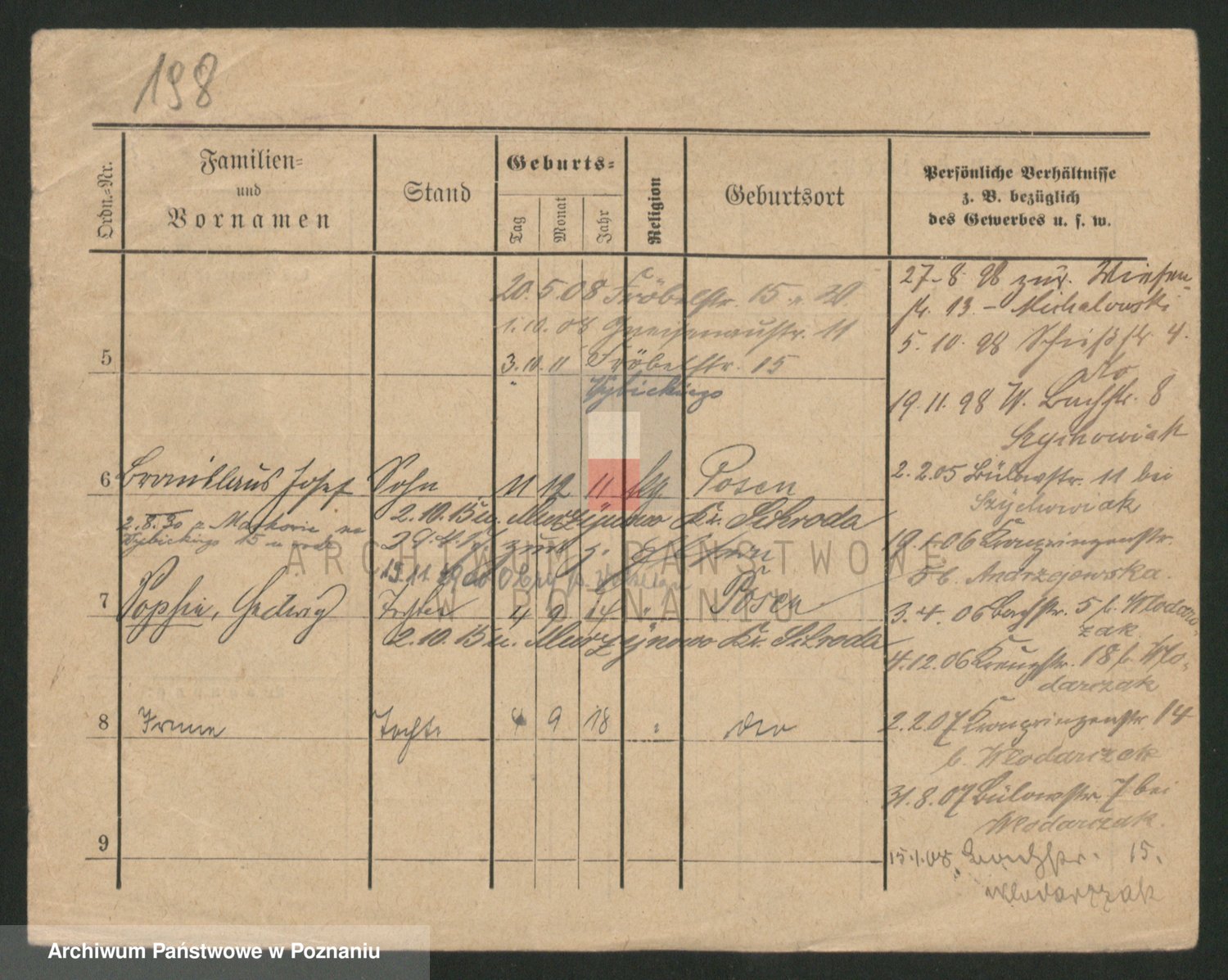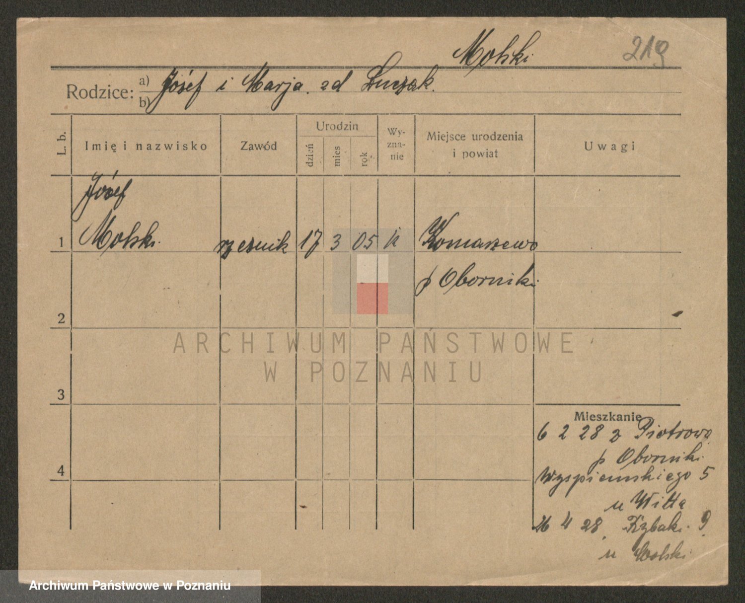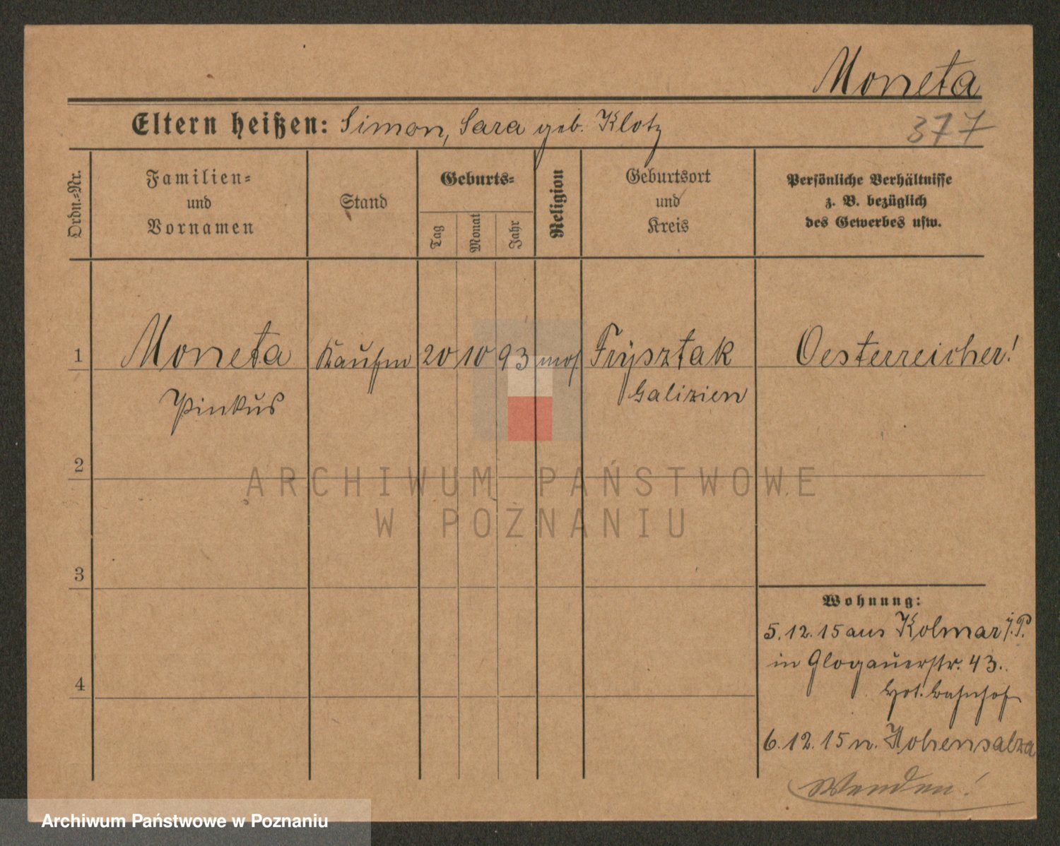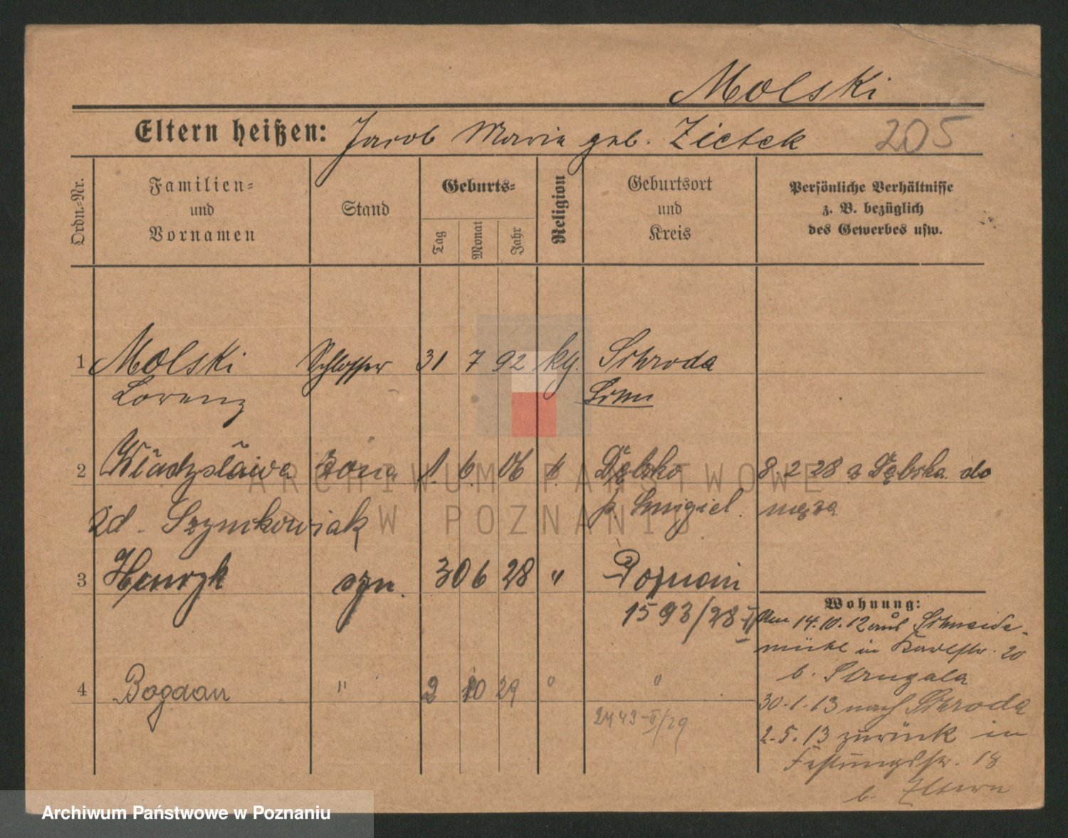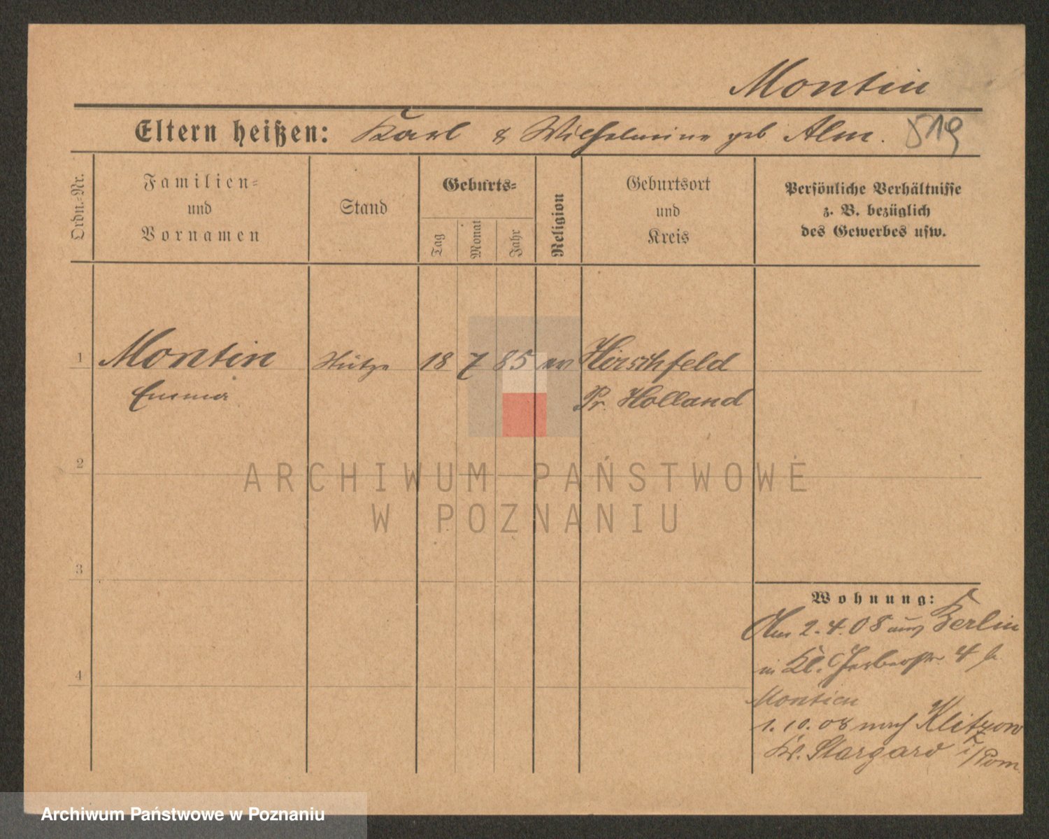 Podgląd karty osobowej dostępny jest po kliknięciu na nazwisko lub ikonkę karty. Można dokonywać powiększenia (ikony na górze) lub przechodzić między kolejnymi skanami (strzałki po bokach).