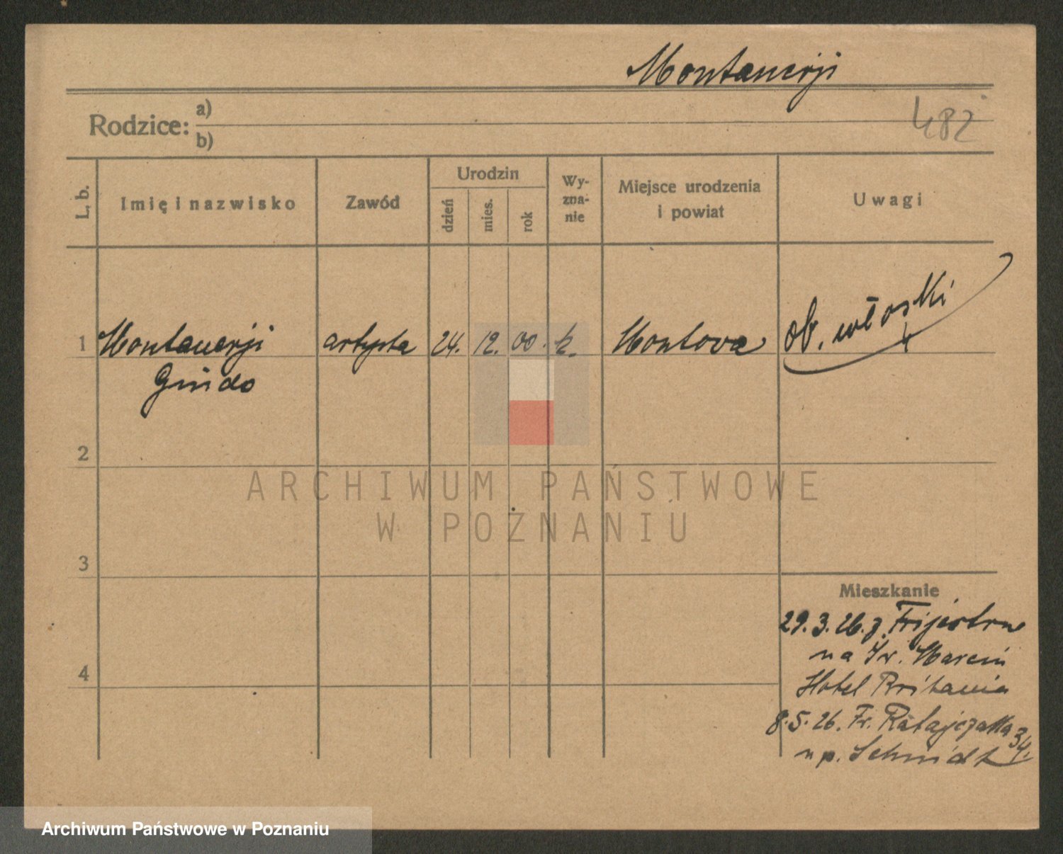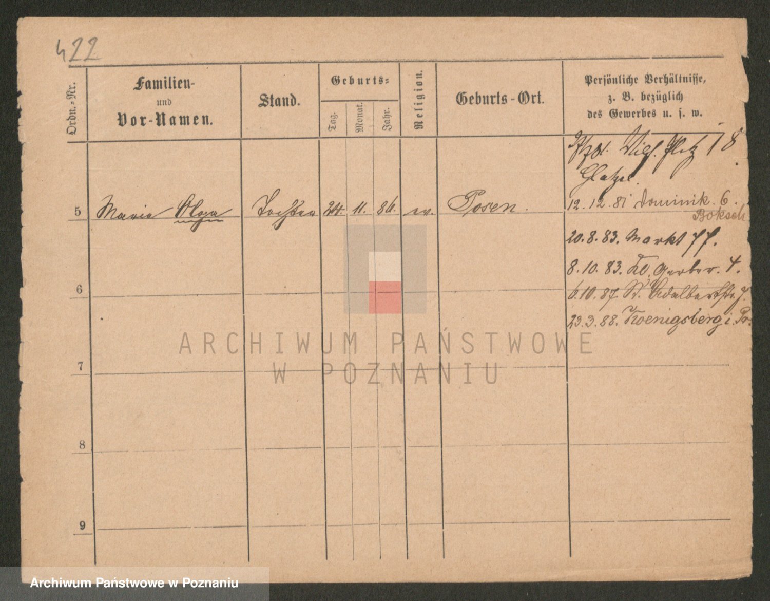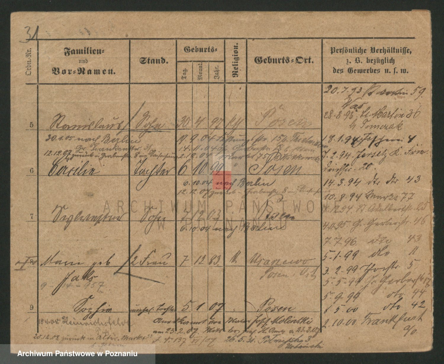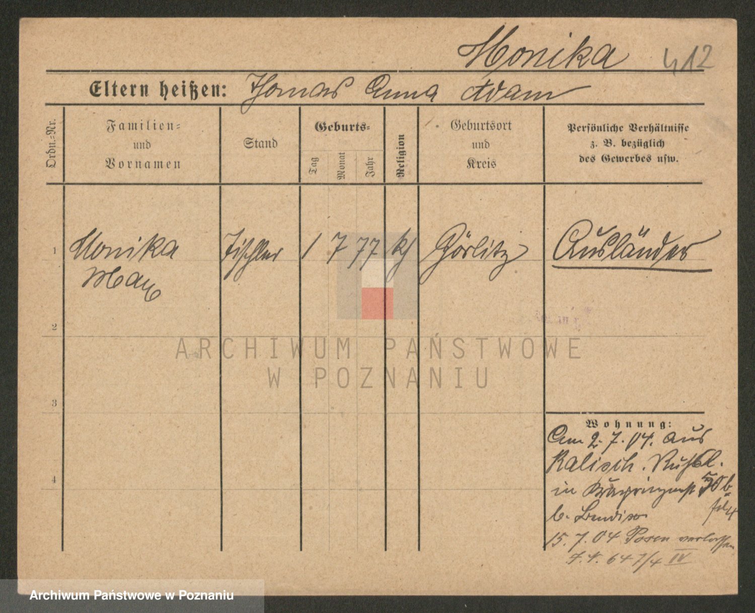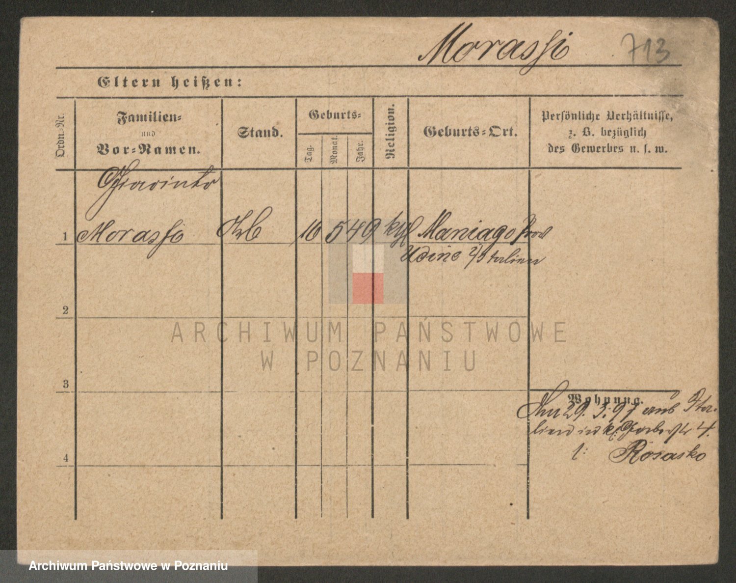 Podgląd karty osobowej dostępny jest po kliknięciu na nazwisko lub ikonkę karty. Można dokonywać powiększenia (ikony na górze) lub przechodzić między kolejnymi skanami (strzałki po bokach).