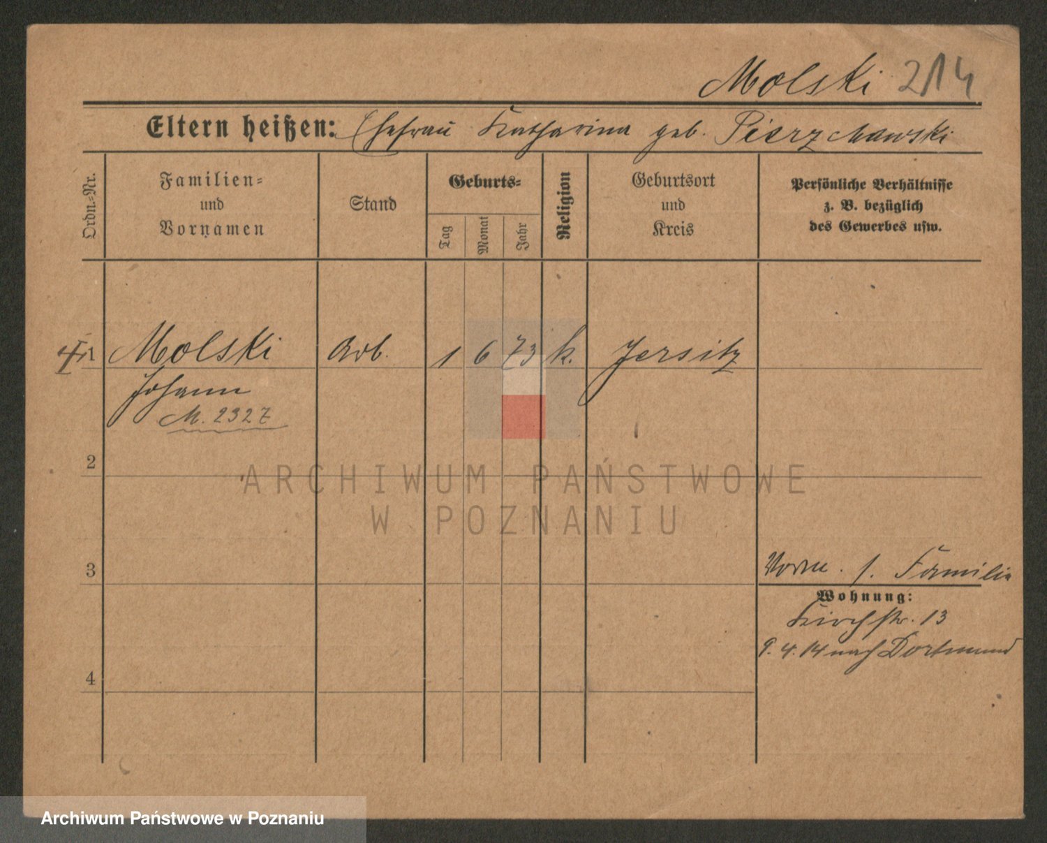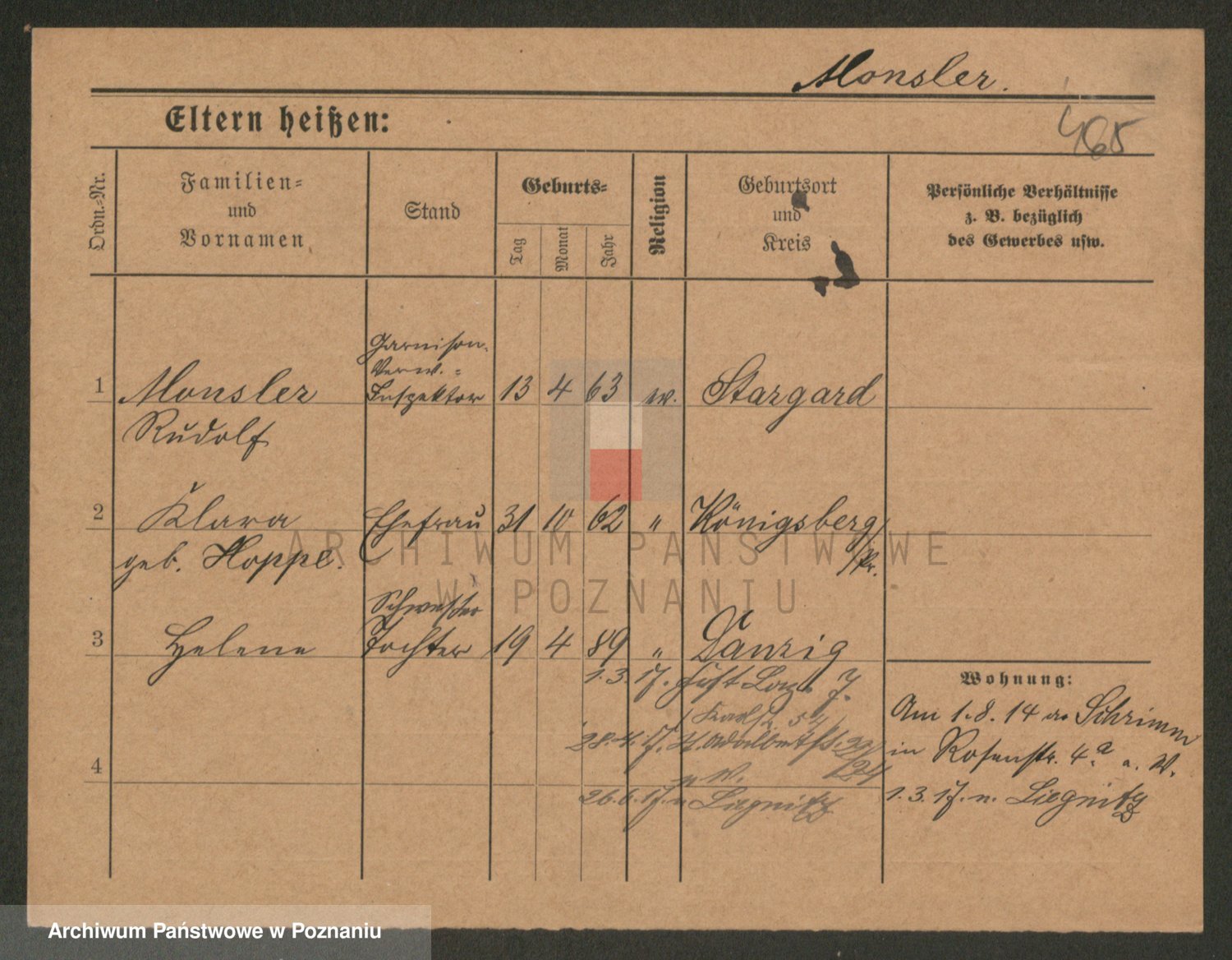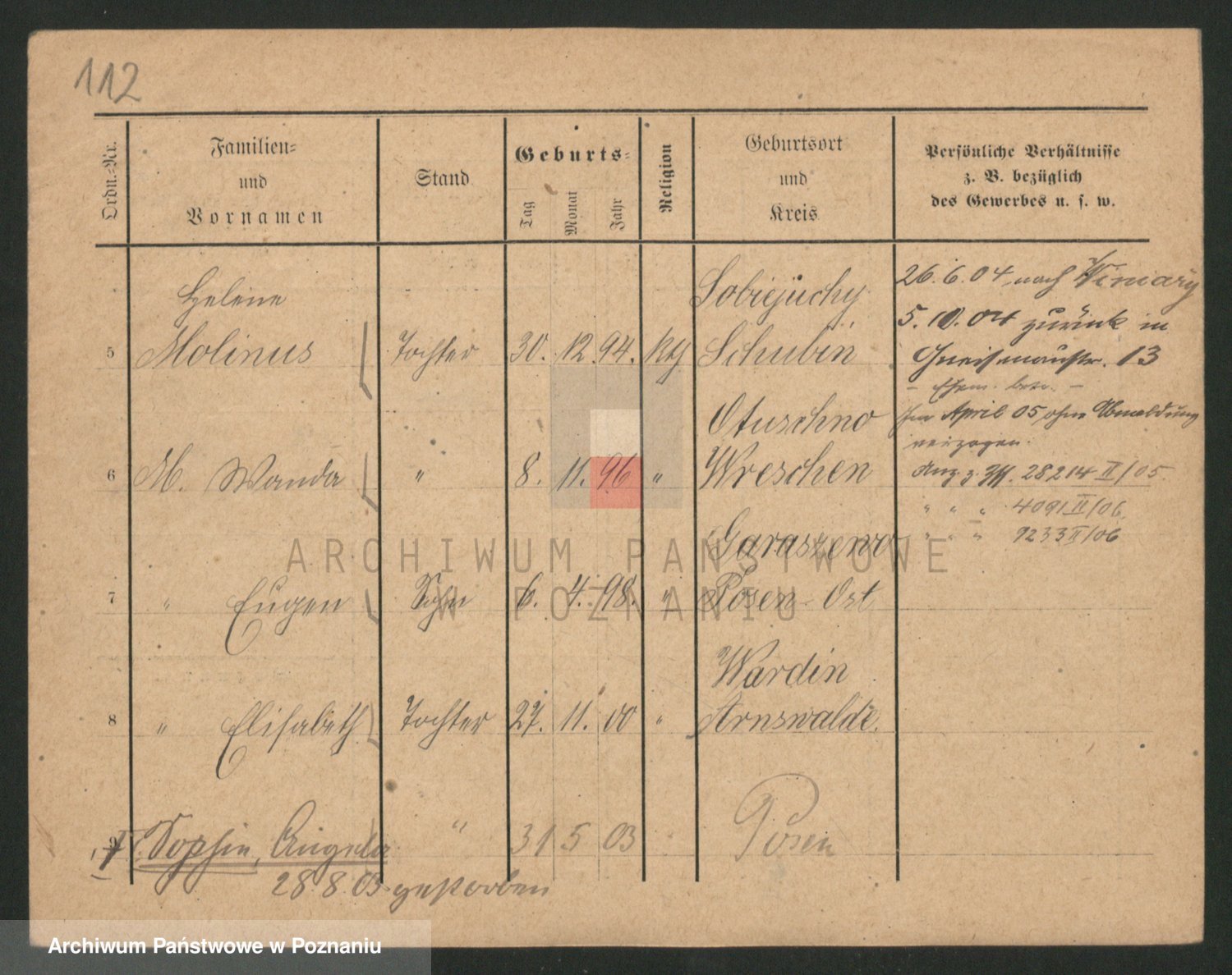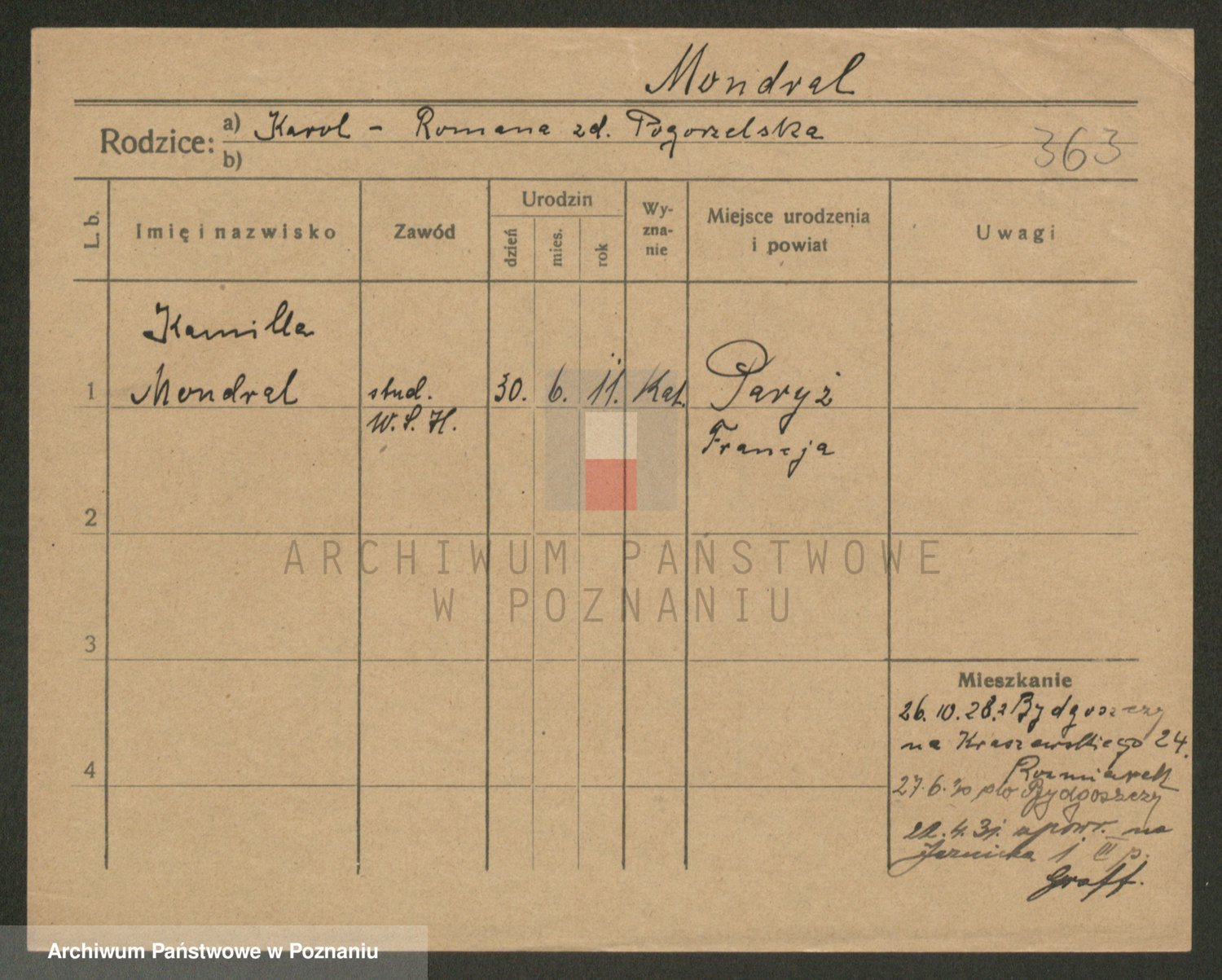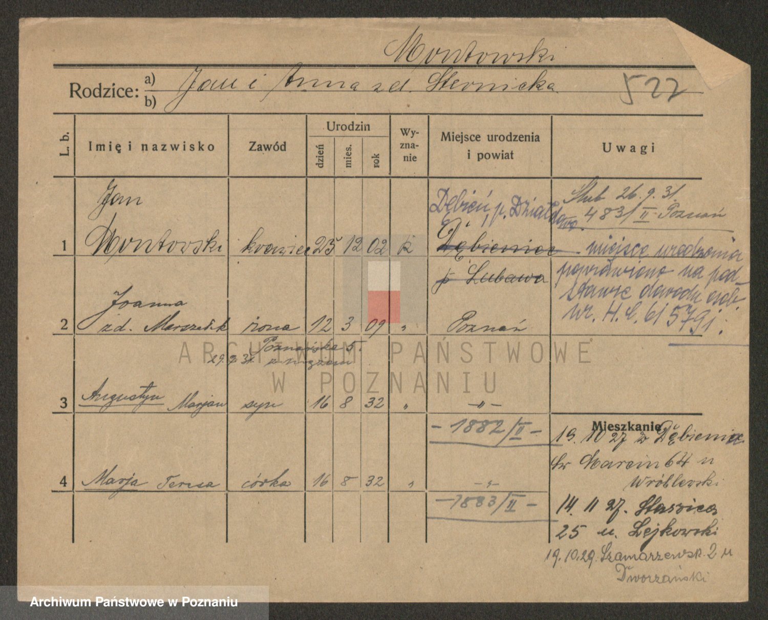 Podgląd karty osobowej dostępny jest po kliknięciu na nazwisko lub ikonkę karty. Można dokonywać powiększenia (ikony na górze) lub przechodzić między kolejnymi skanami (strzałki po bokach).