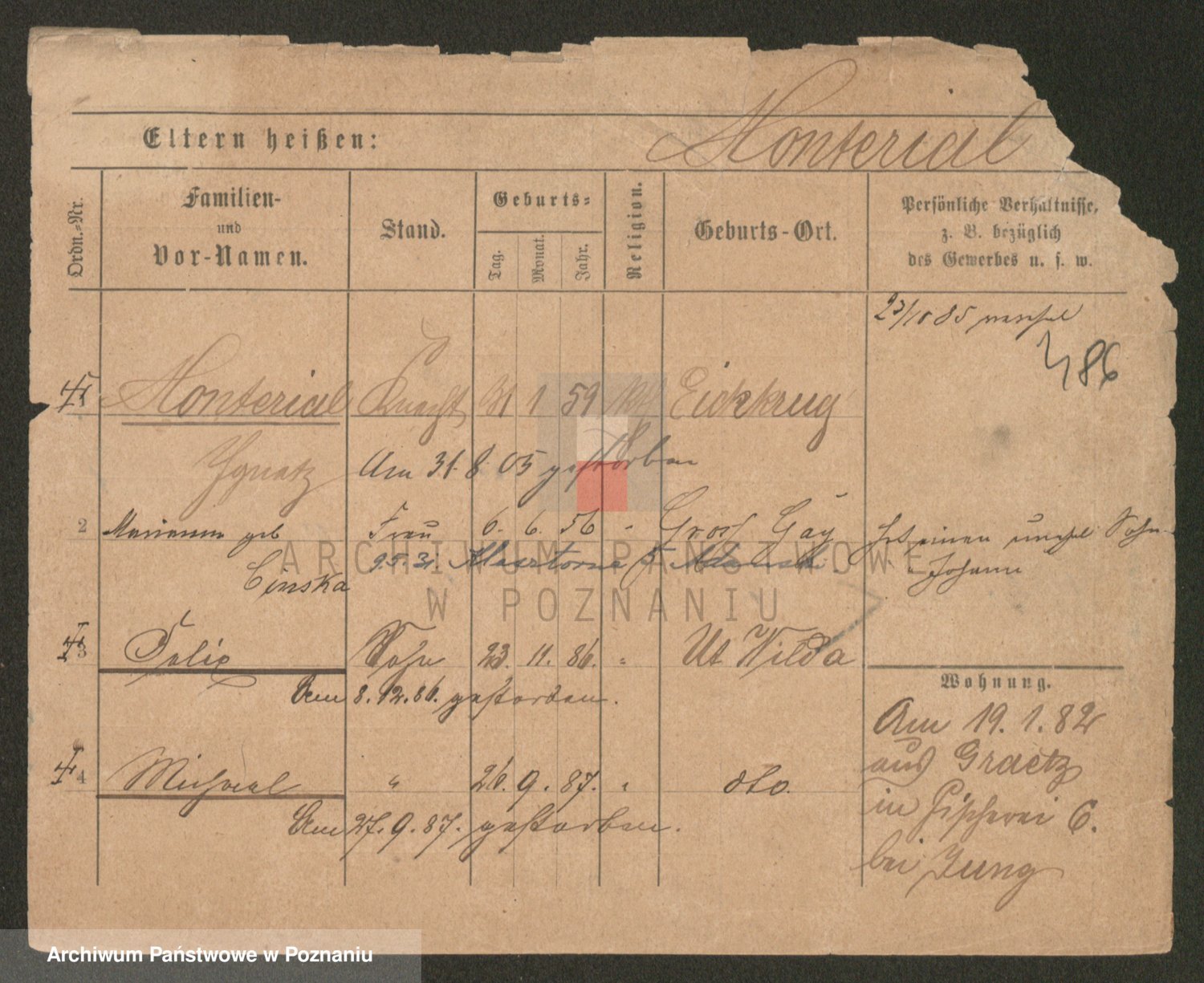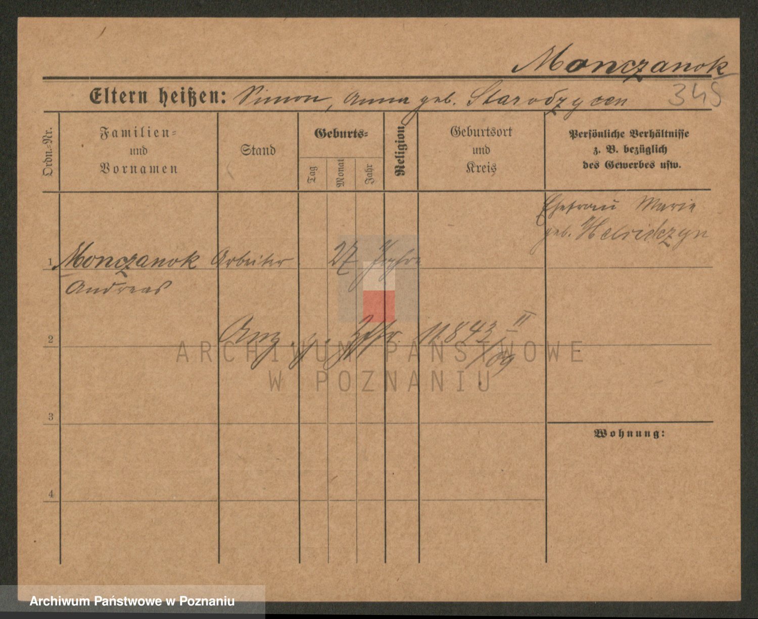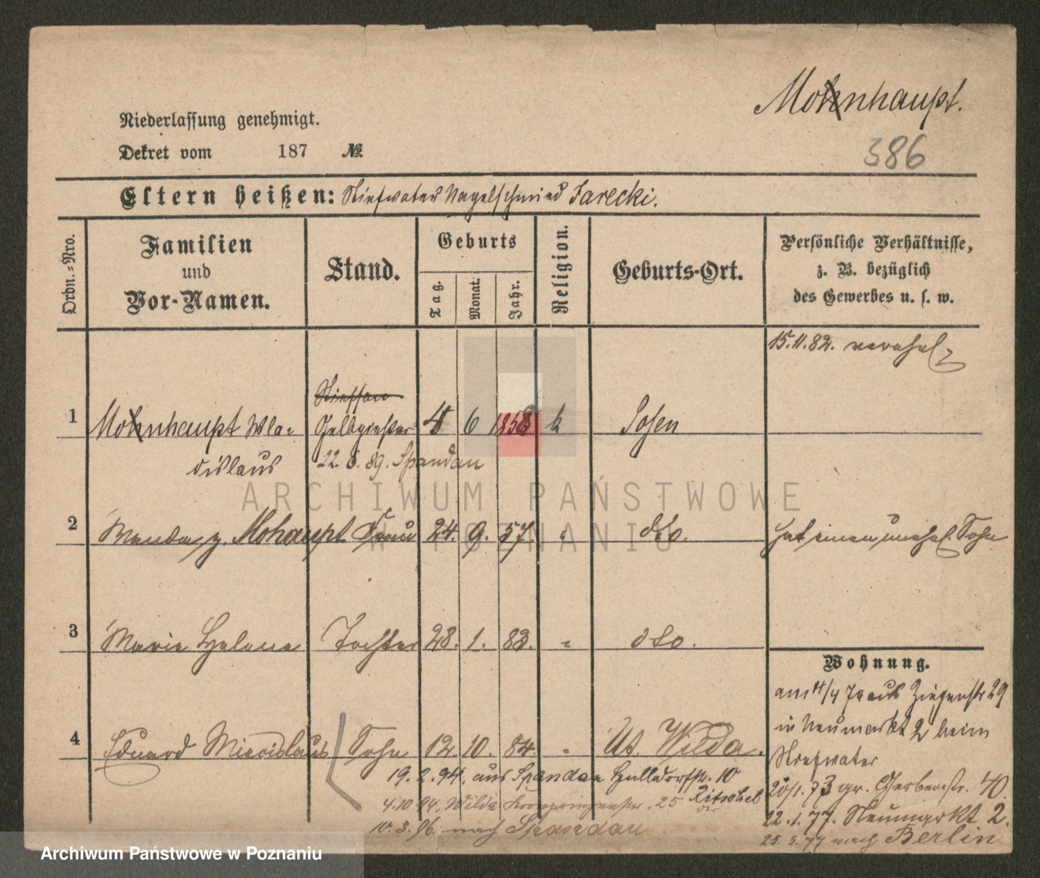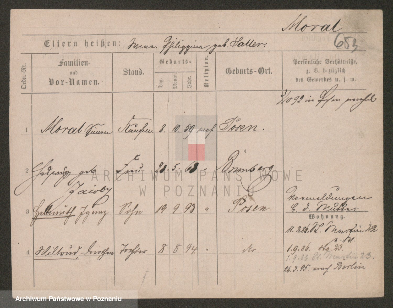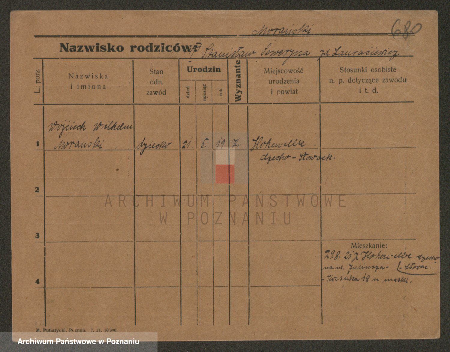 Podgląd karty osobowej dostępny jest po kliknięciu na nazwisko lub ikonkę karty. Można dokonywać powiększenia (ikony na górze) lub przechodzić między kolejnymi skanami (strzałki po bokach).