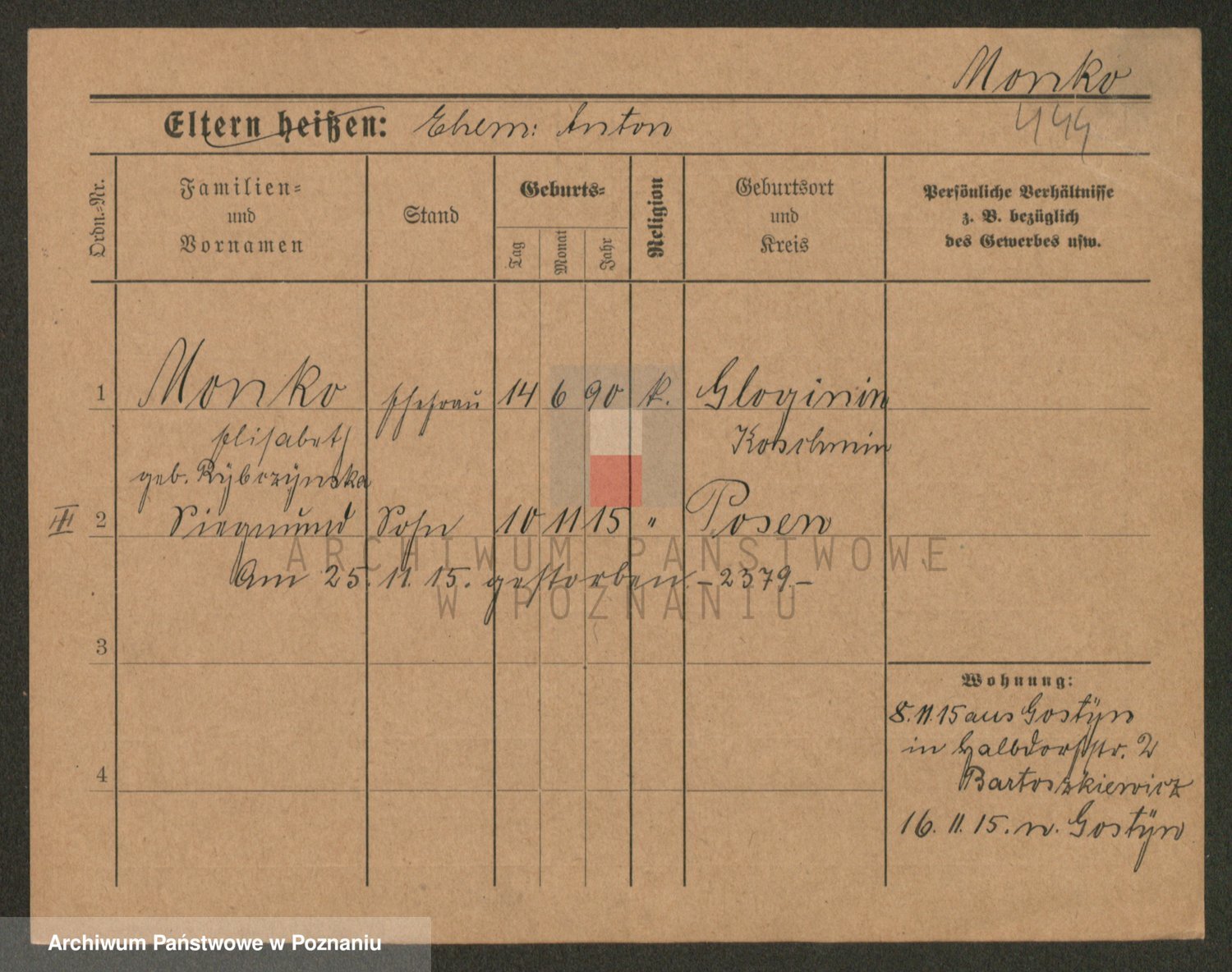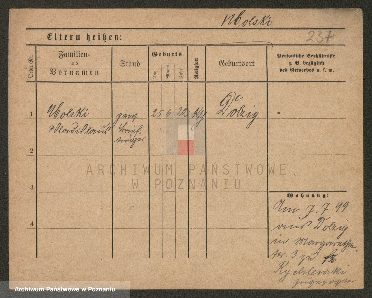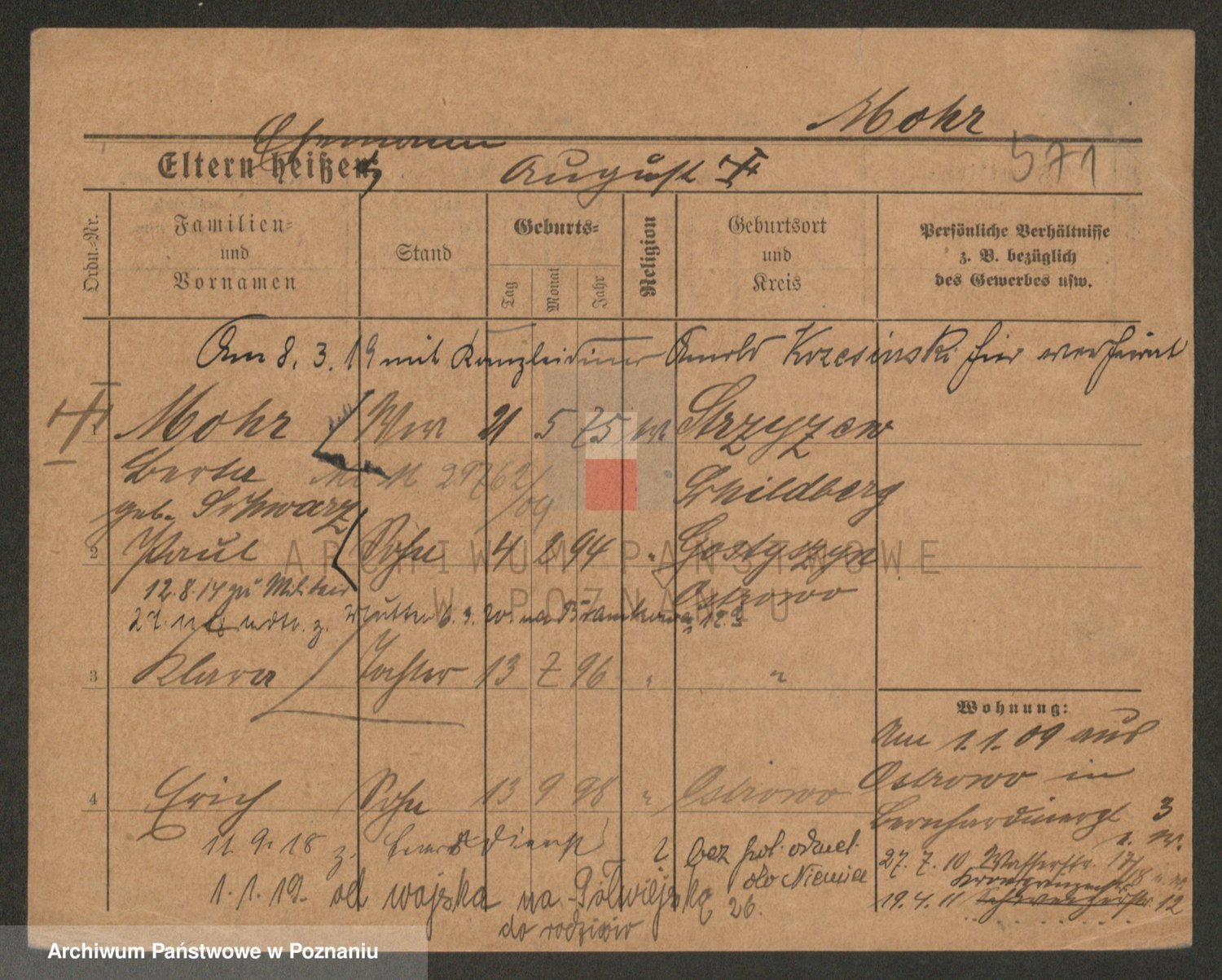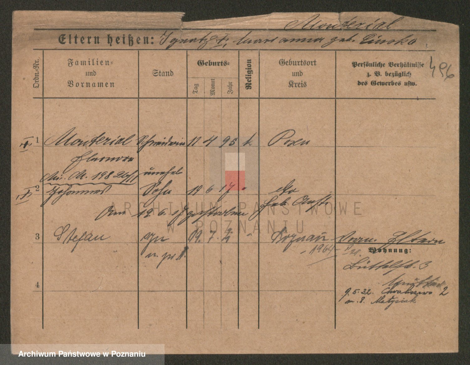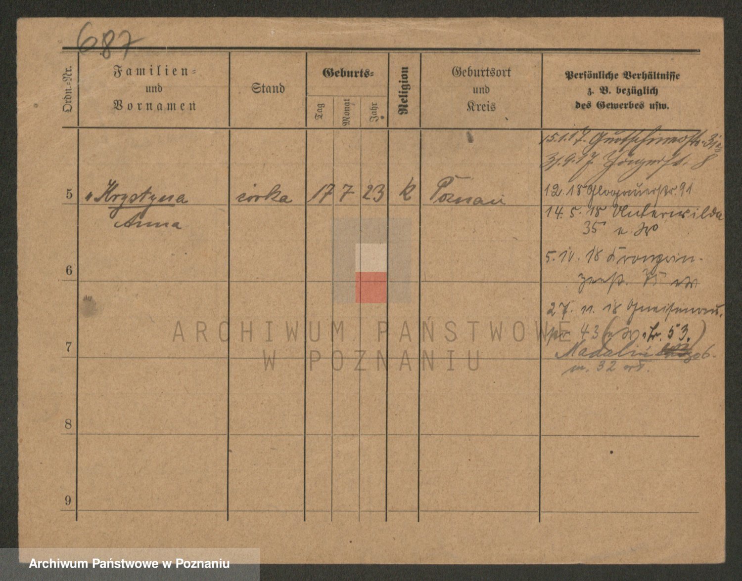 Podgląd karty osobowej dostępny jest po kliknięciu na nazwisko lub ikonkę karty. Można dokonywać powiększenia (ikony na górze) lub przechodzić między kolejnymi skanami (strzałki po bokach).