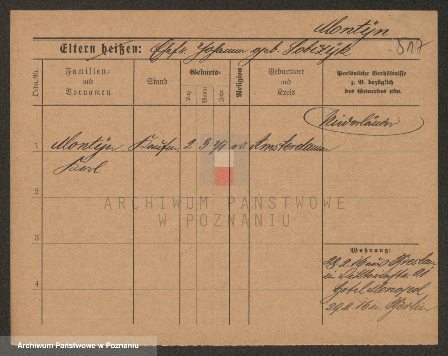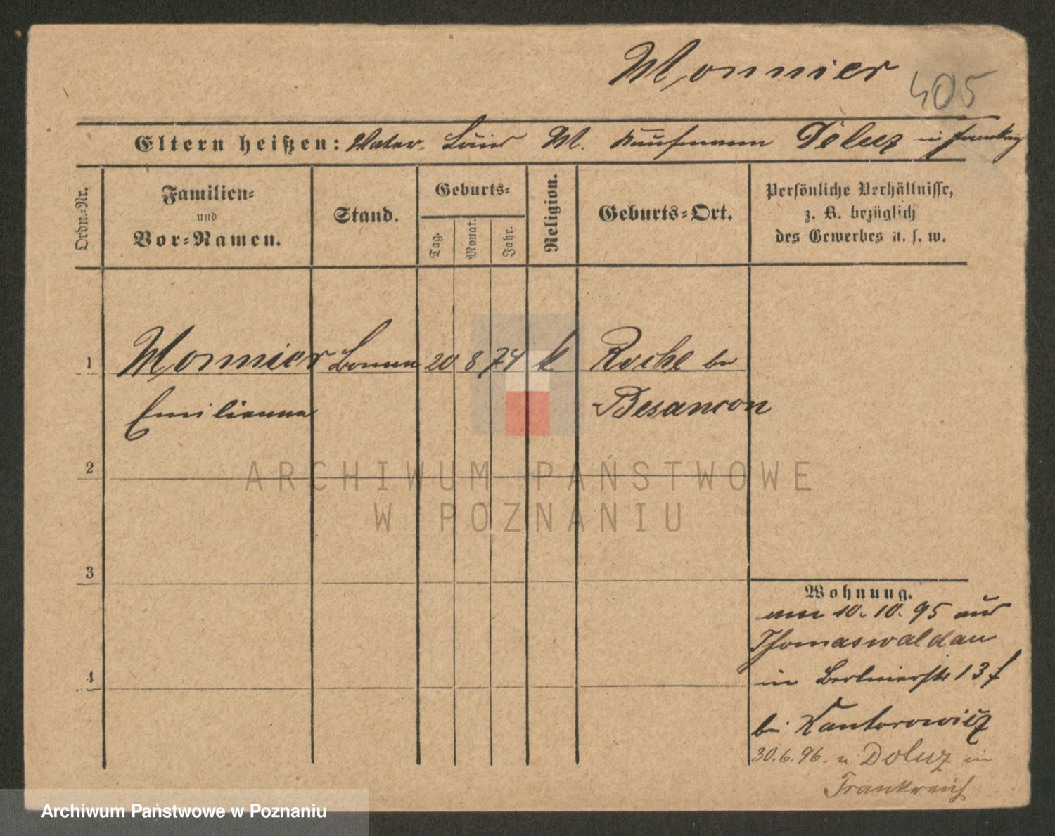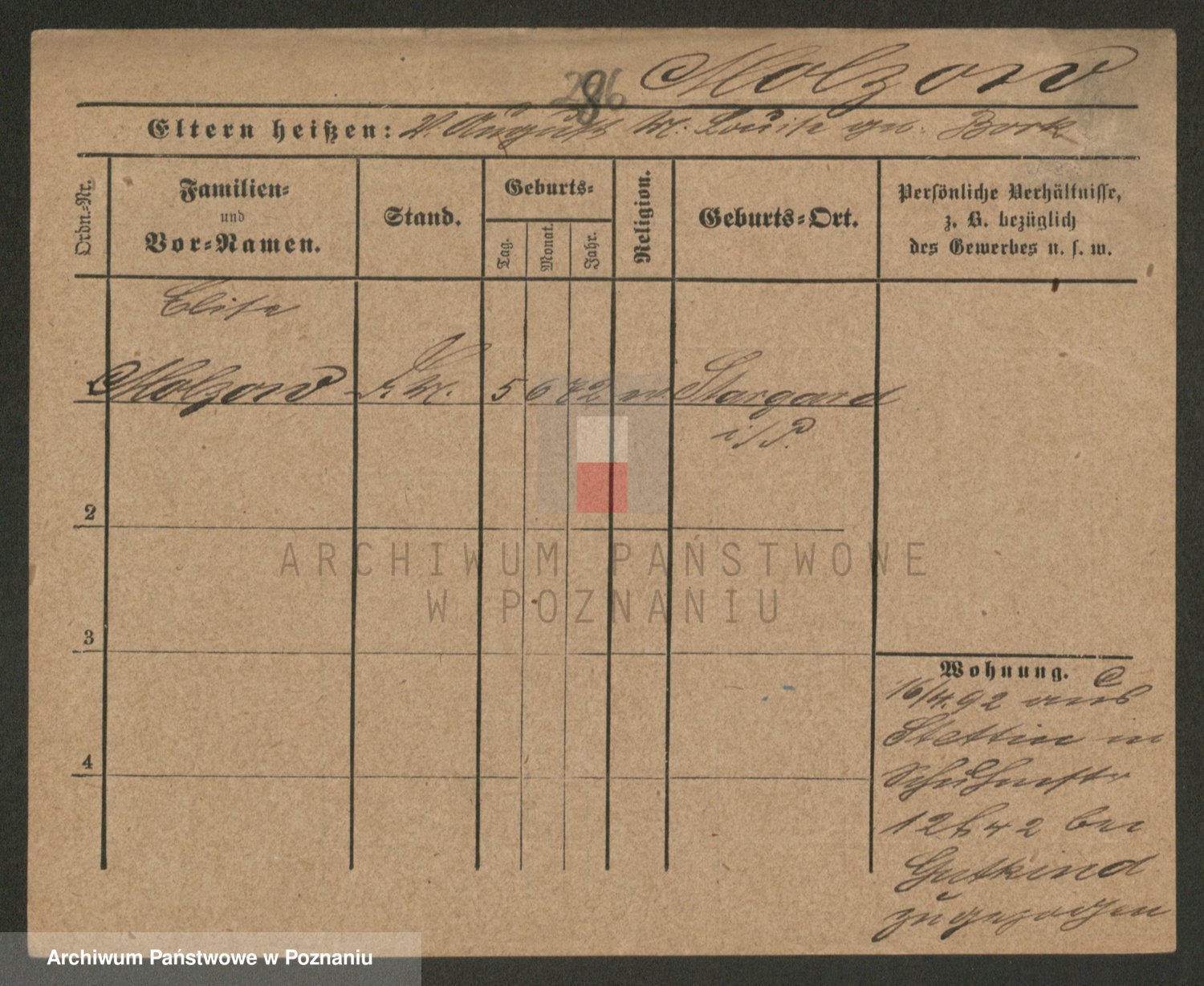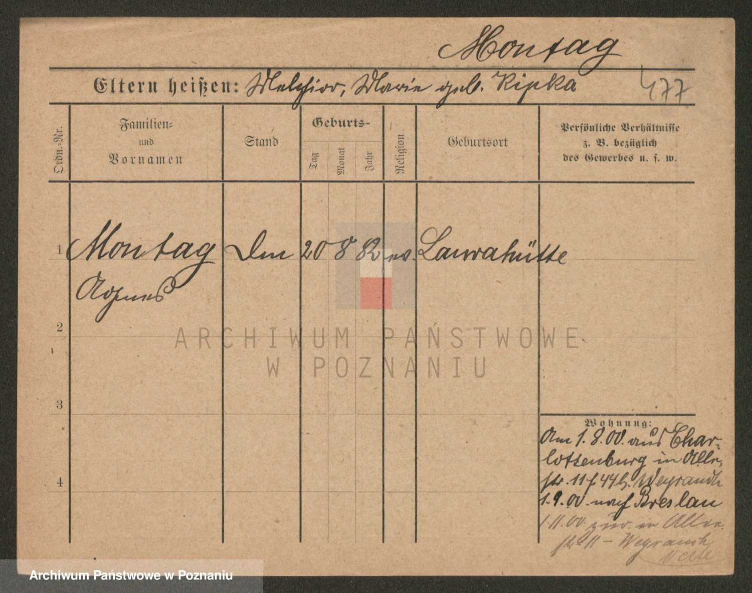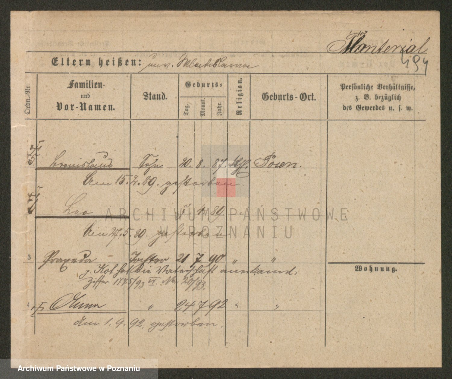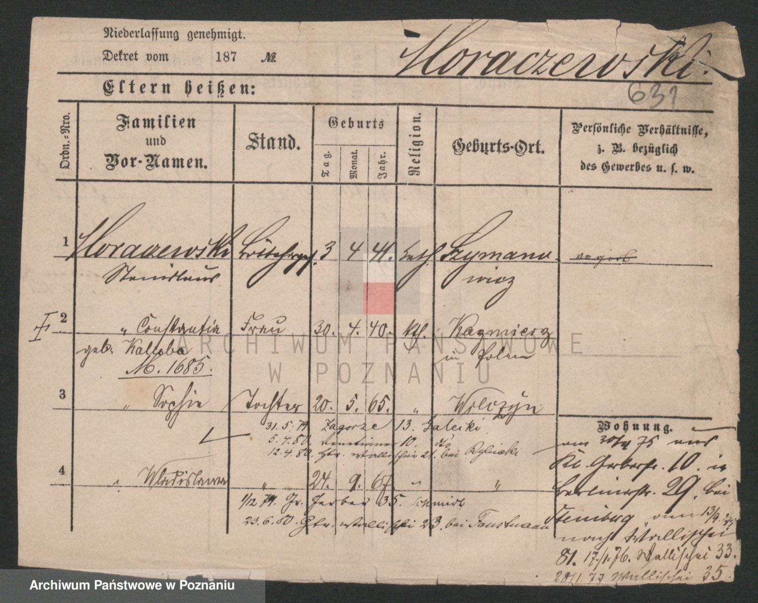 Podgląd karty osobowej dostępny jest po kliknięciu na nazwisko lub ikonkę karty. Można dokonywać powiększenia (ikony na górze) lub przechodzić między kolejnymi skanami (strzałki po bokach).