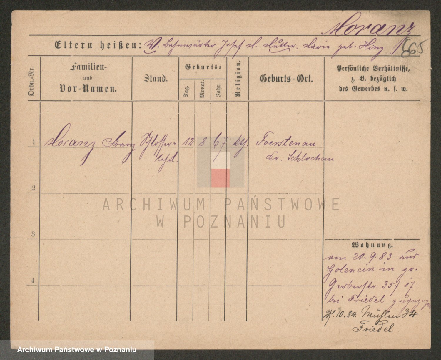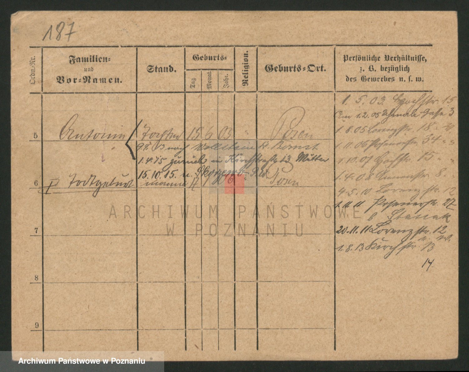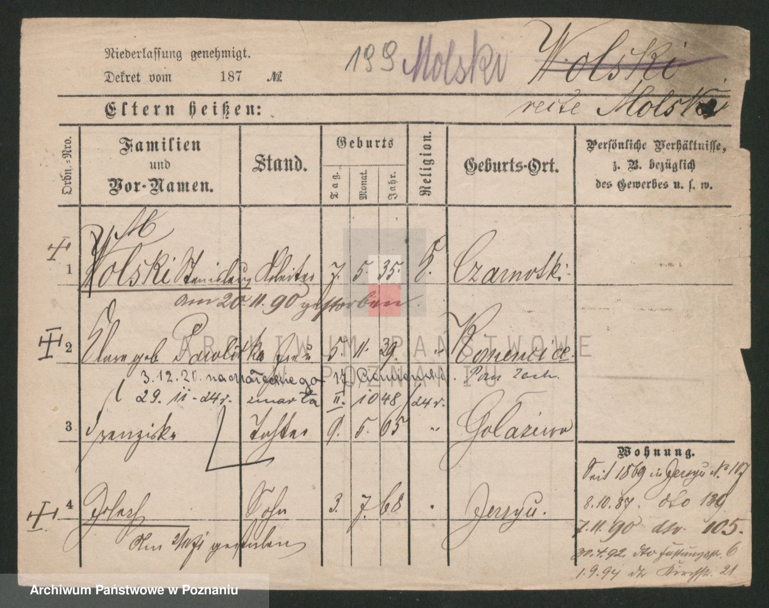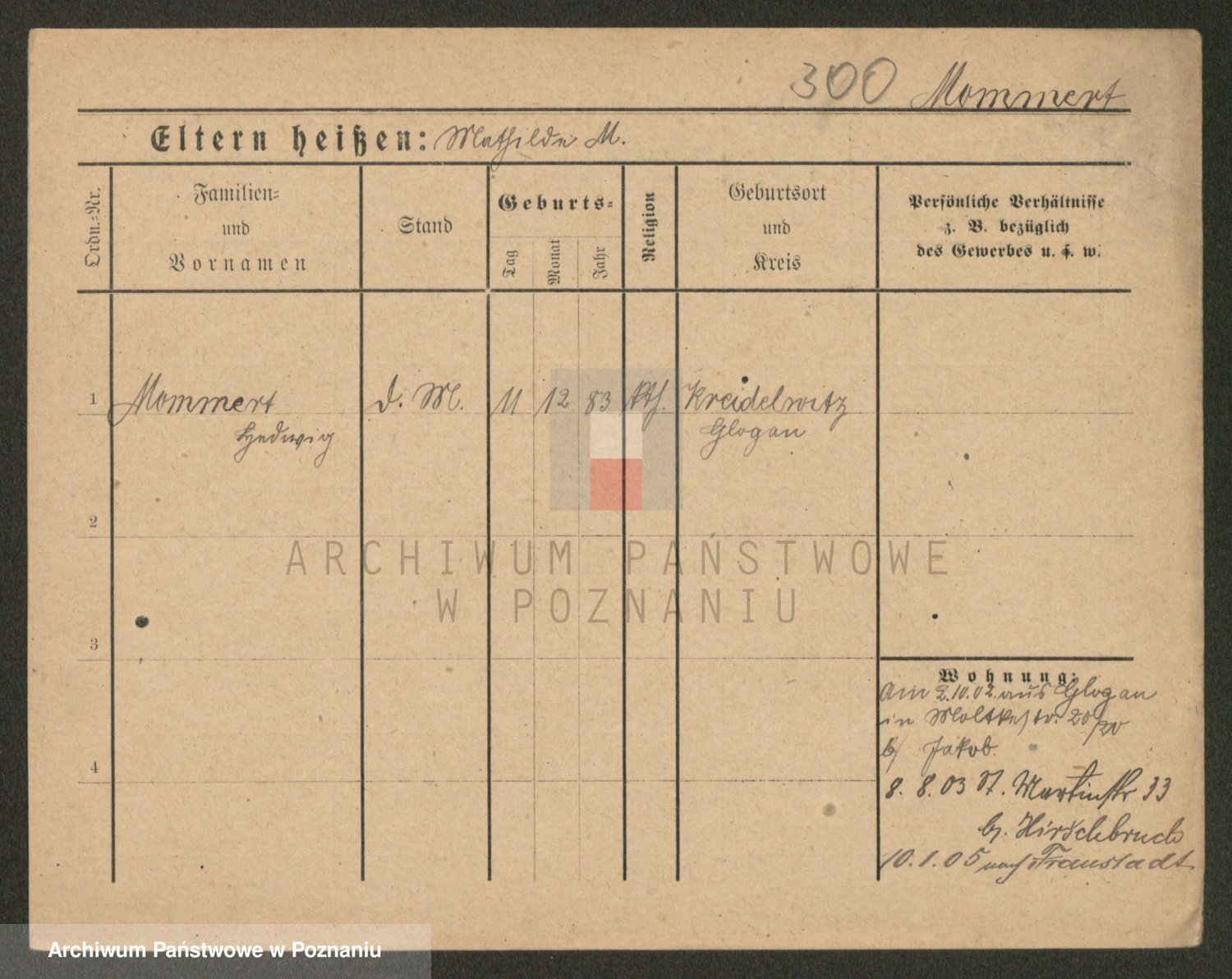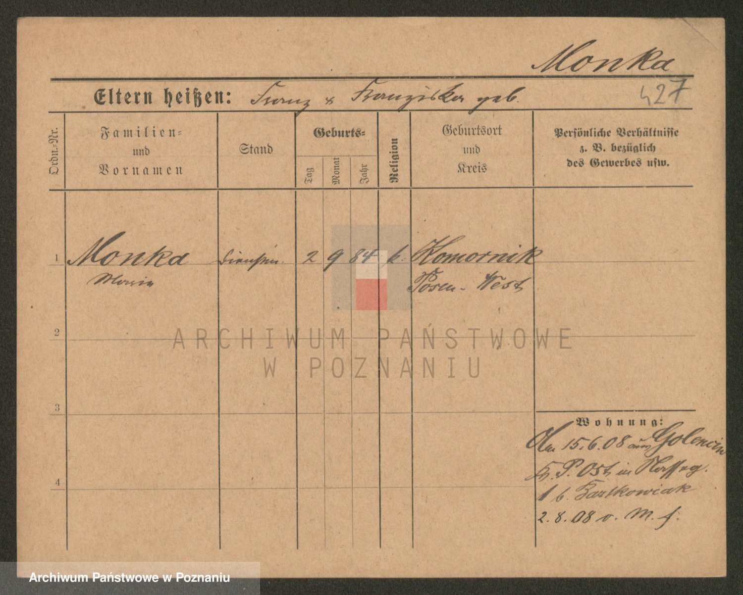 Podgląd karty osobowej dostępny jest po kliknięciu na nazwisko lub ikonkę karty. Można dokonywać powiększenia (ikony na górze) lub przechodzić między kolejnymi skanami (strzałki po bokach).