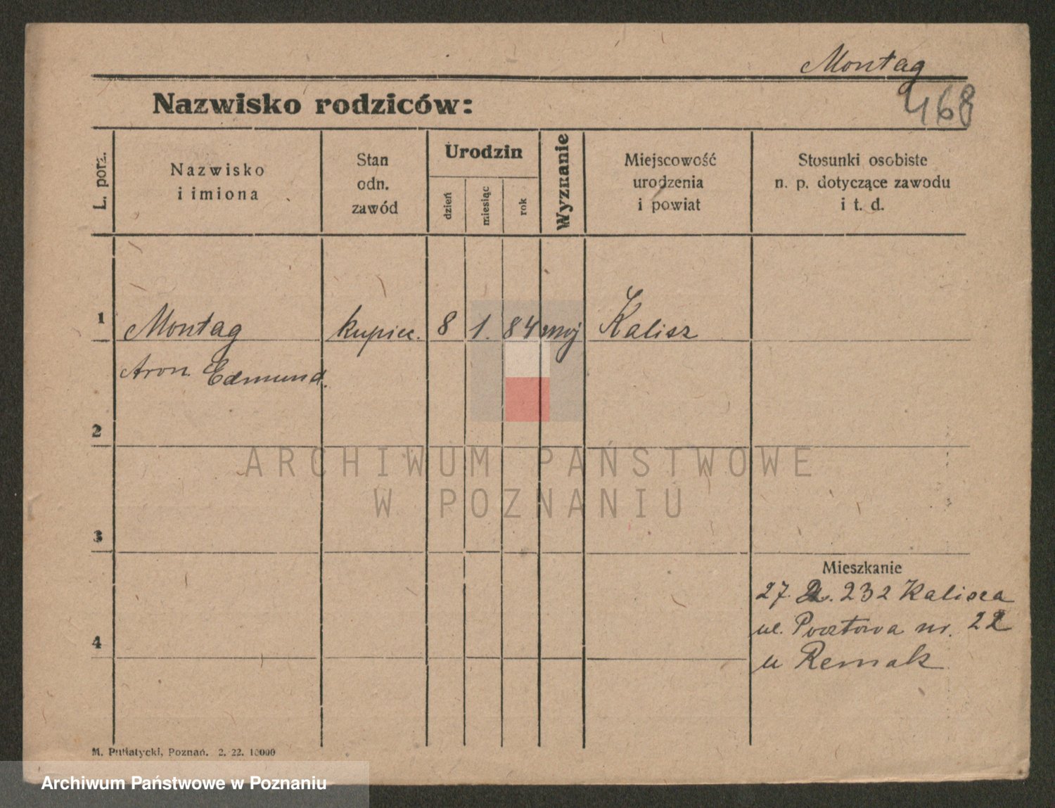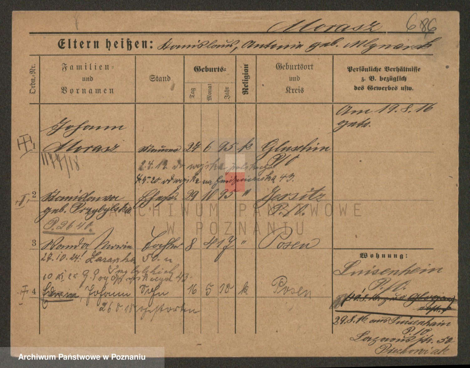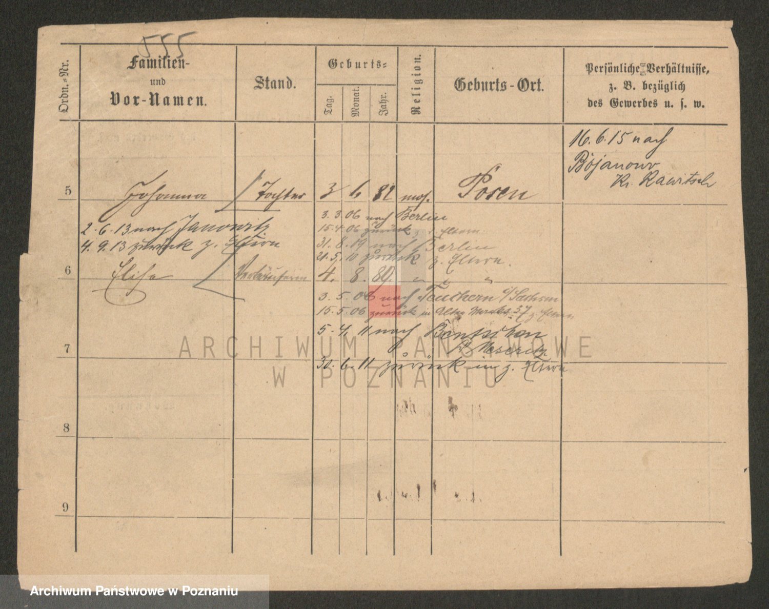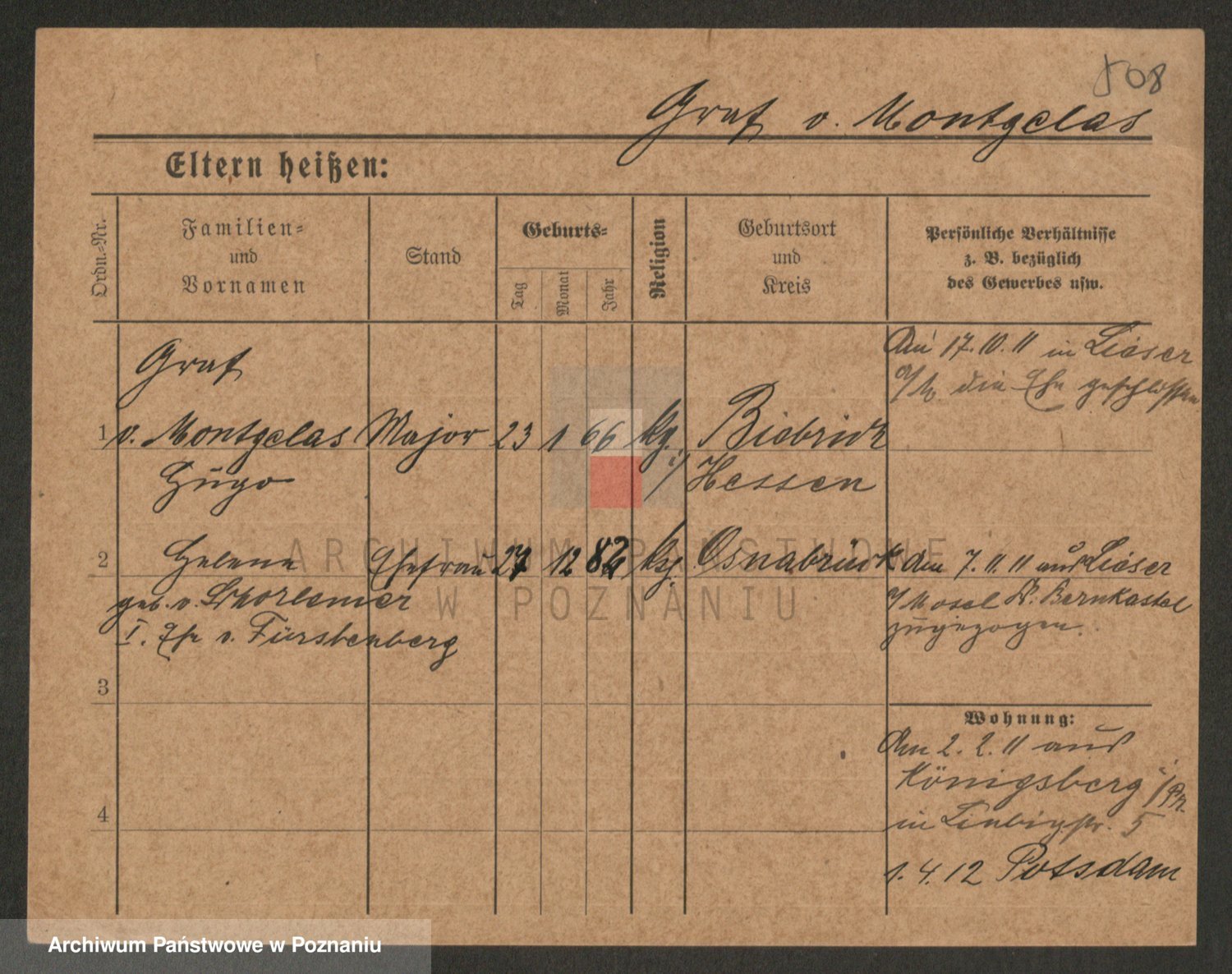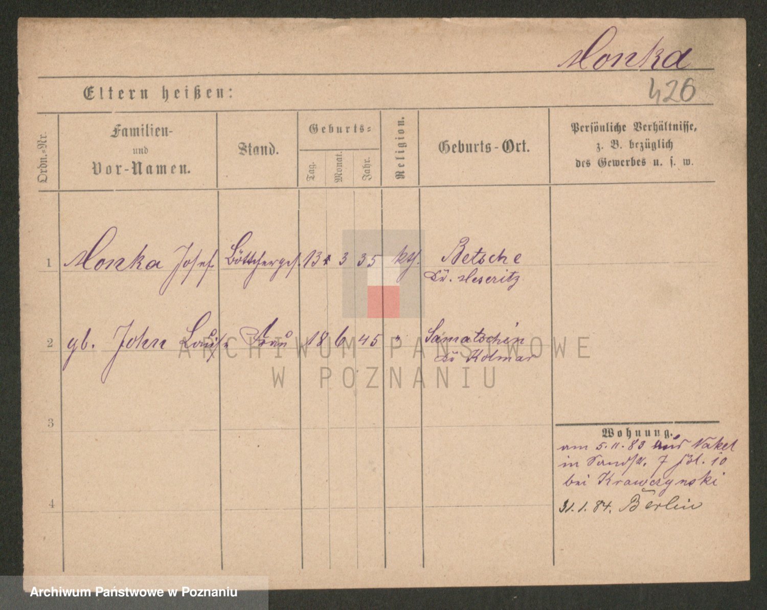 Podgląd karty osobowej dostępny jest po kliknięciu na nazwisko lub ikonkę karty. Można dokonywać powiększenia (ikony na górze) lub przechodzić między kolejnymi skanami (strzałki po bokach).