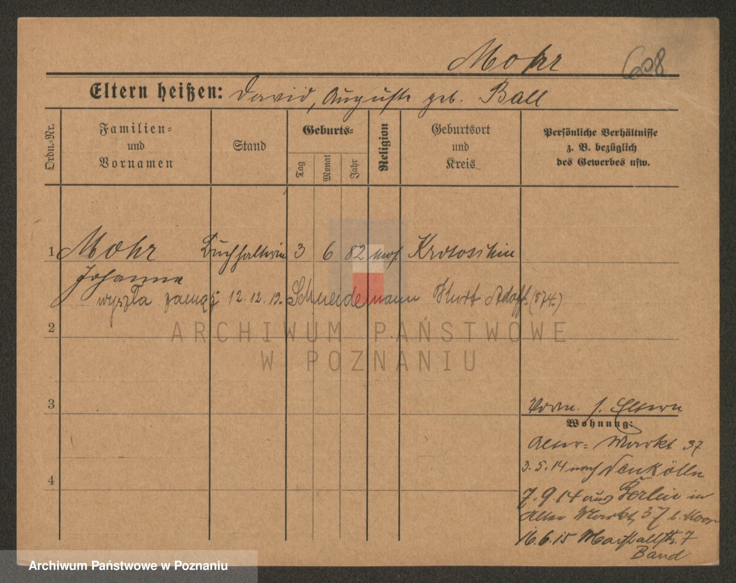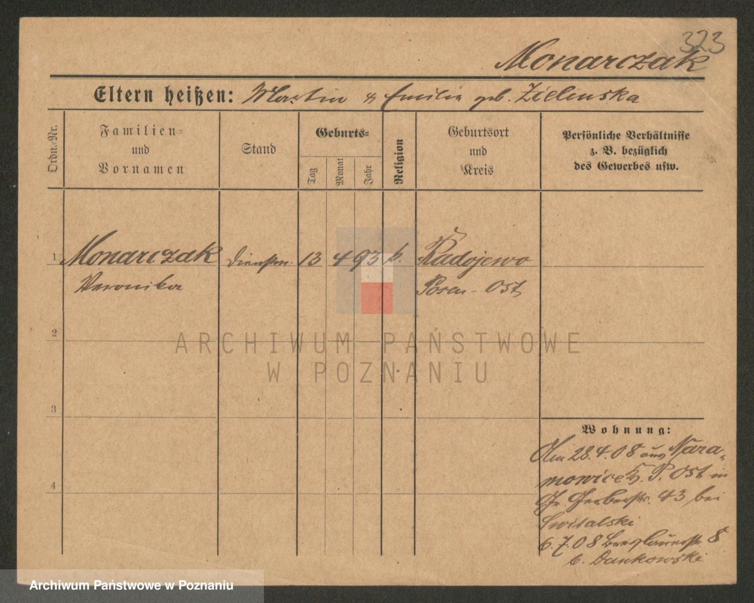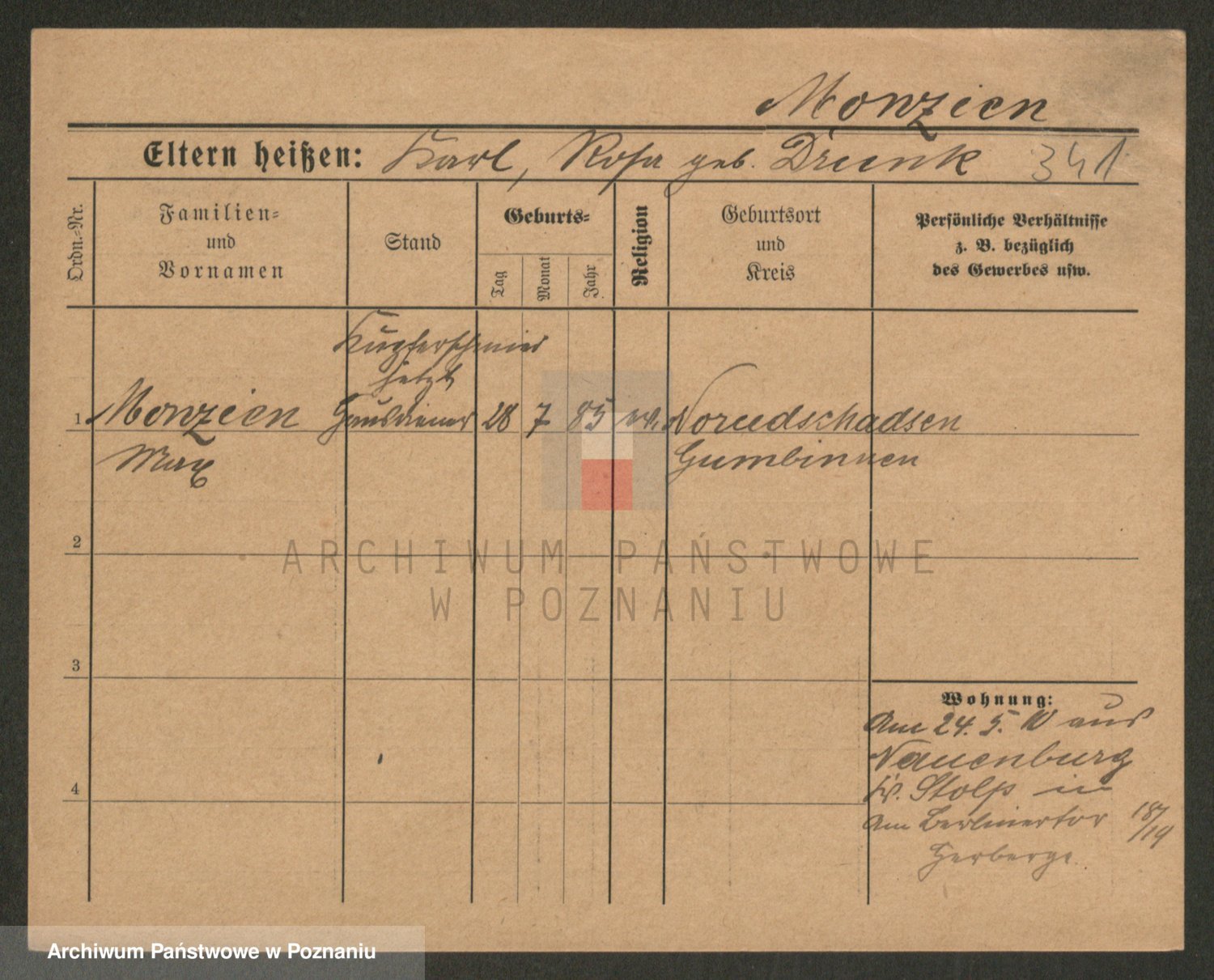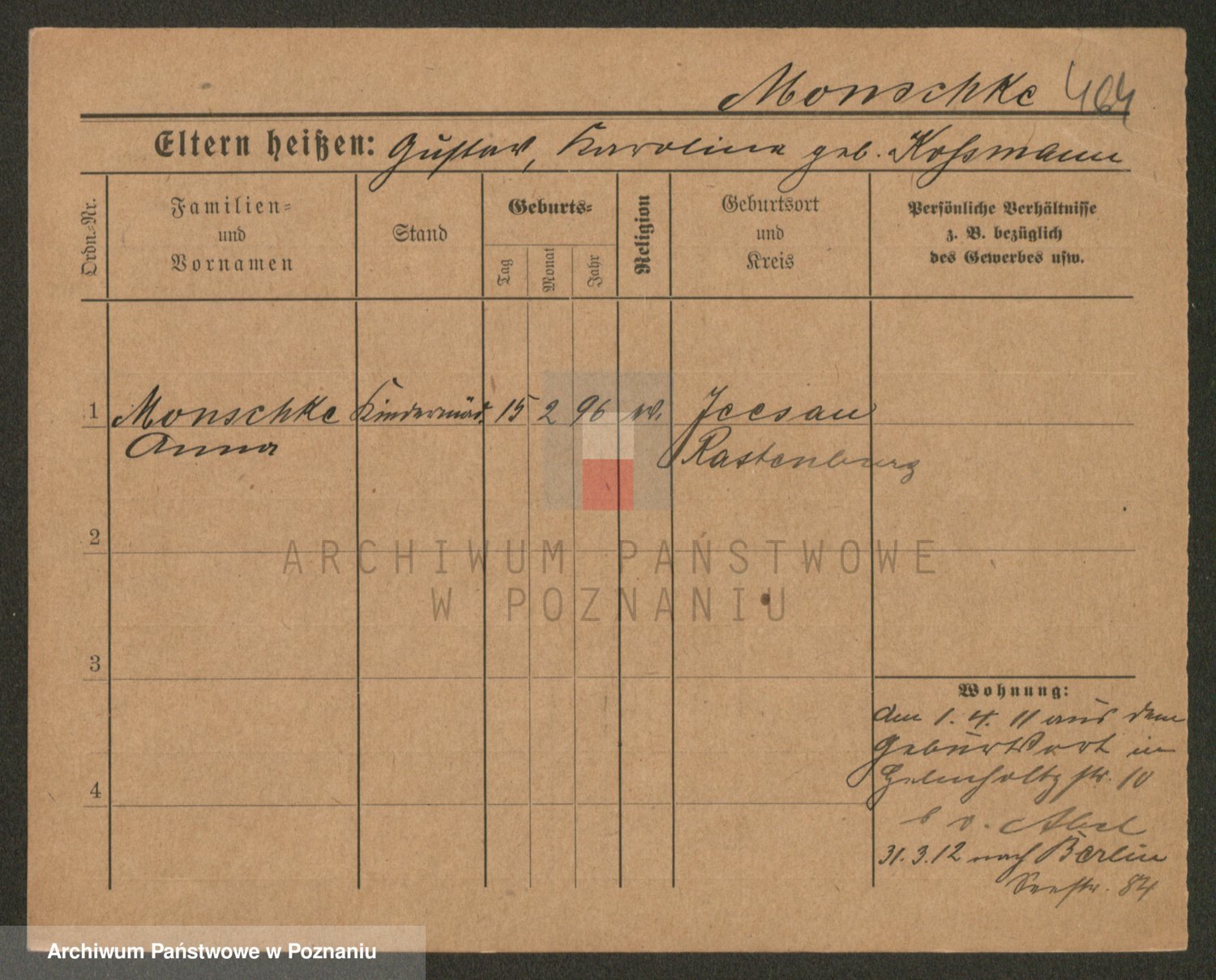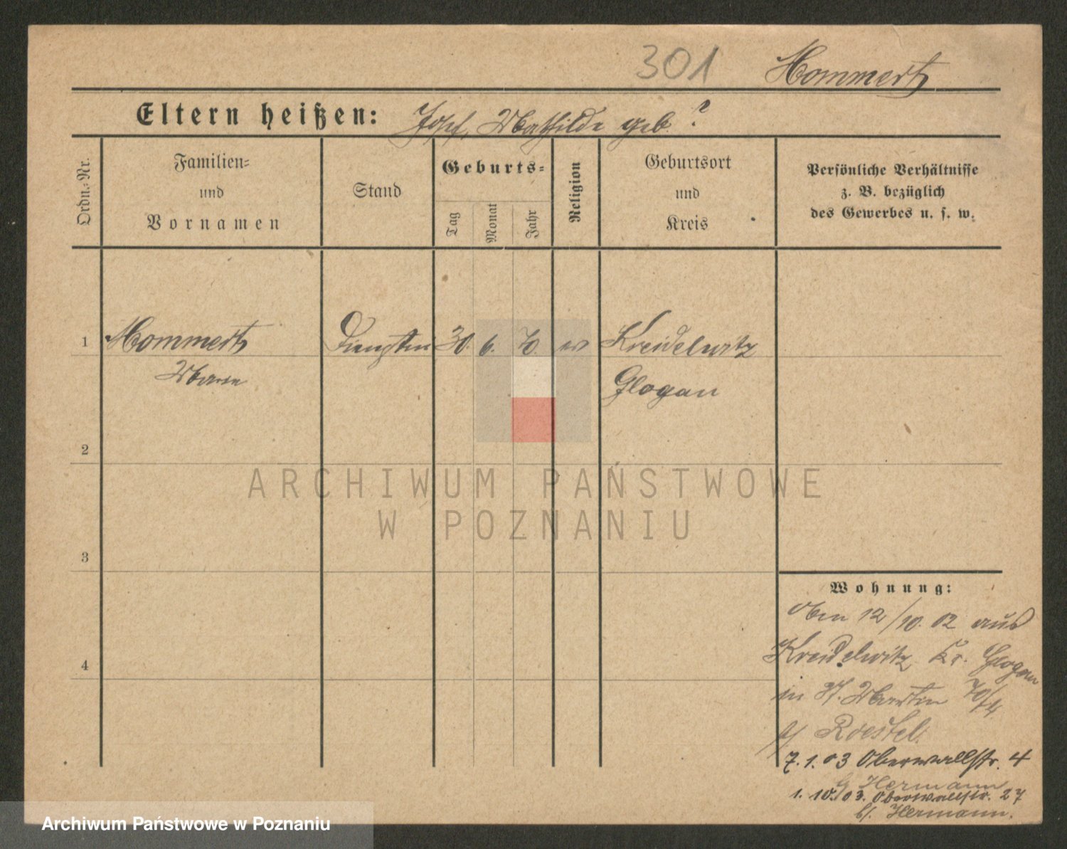 Podgląd karty osobowej dostępny jest po kliknięciu na nazwisko lub ikonkę karty. Można dokonywać powiększenia (ikony na górze) lub przechodzić między kolejnymi skanami (strzałki po bokach).