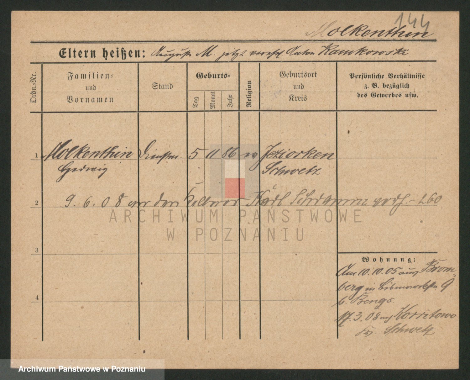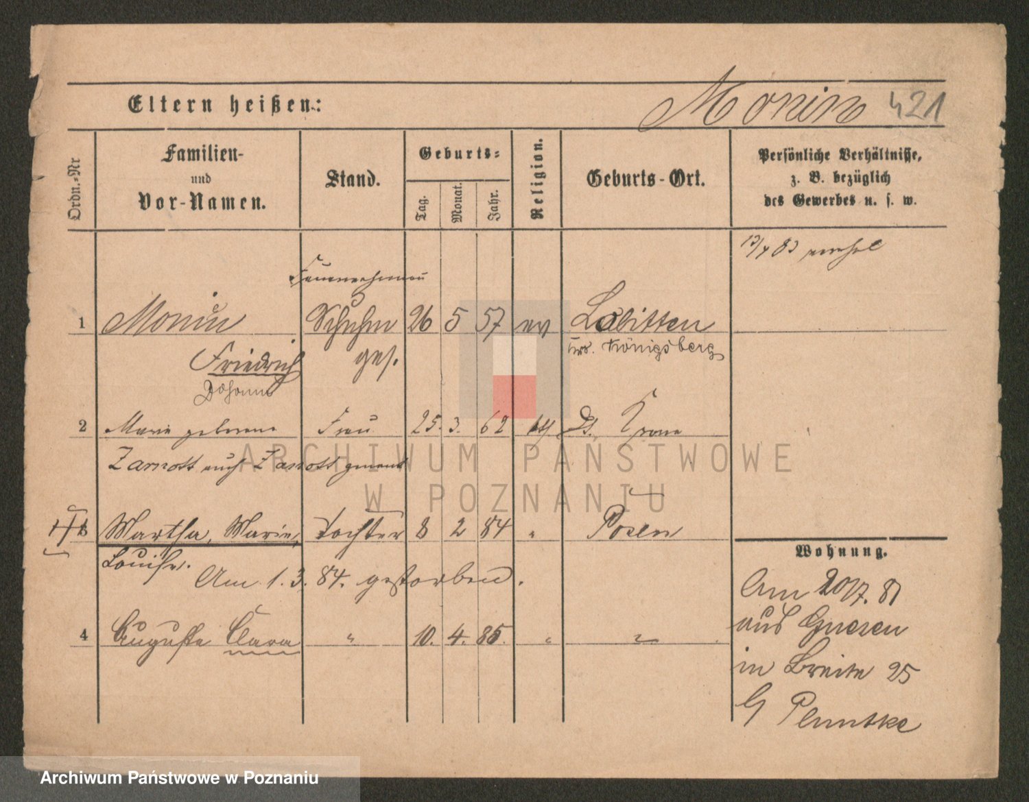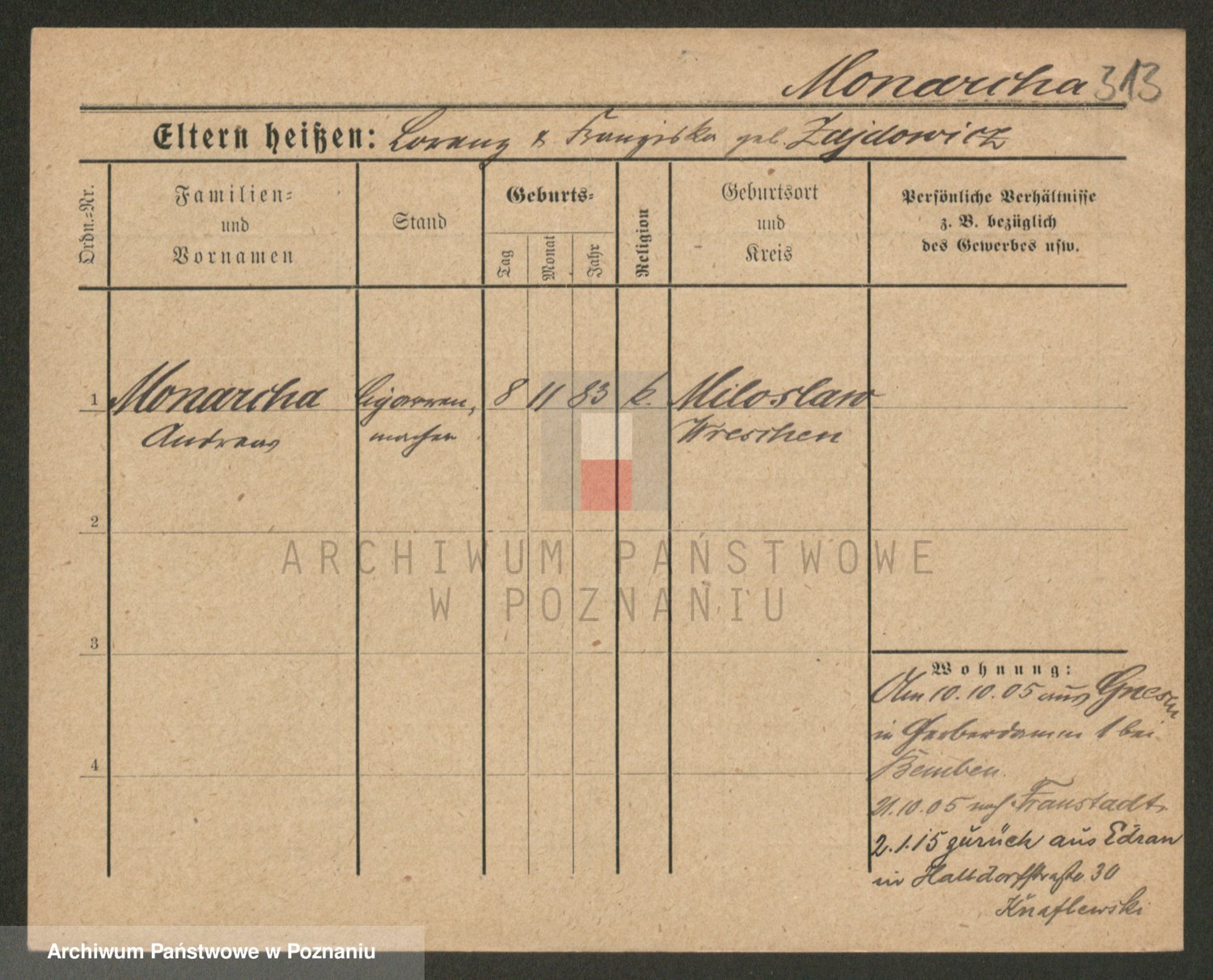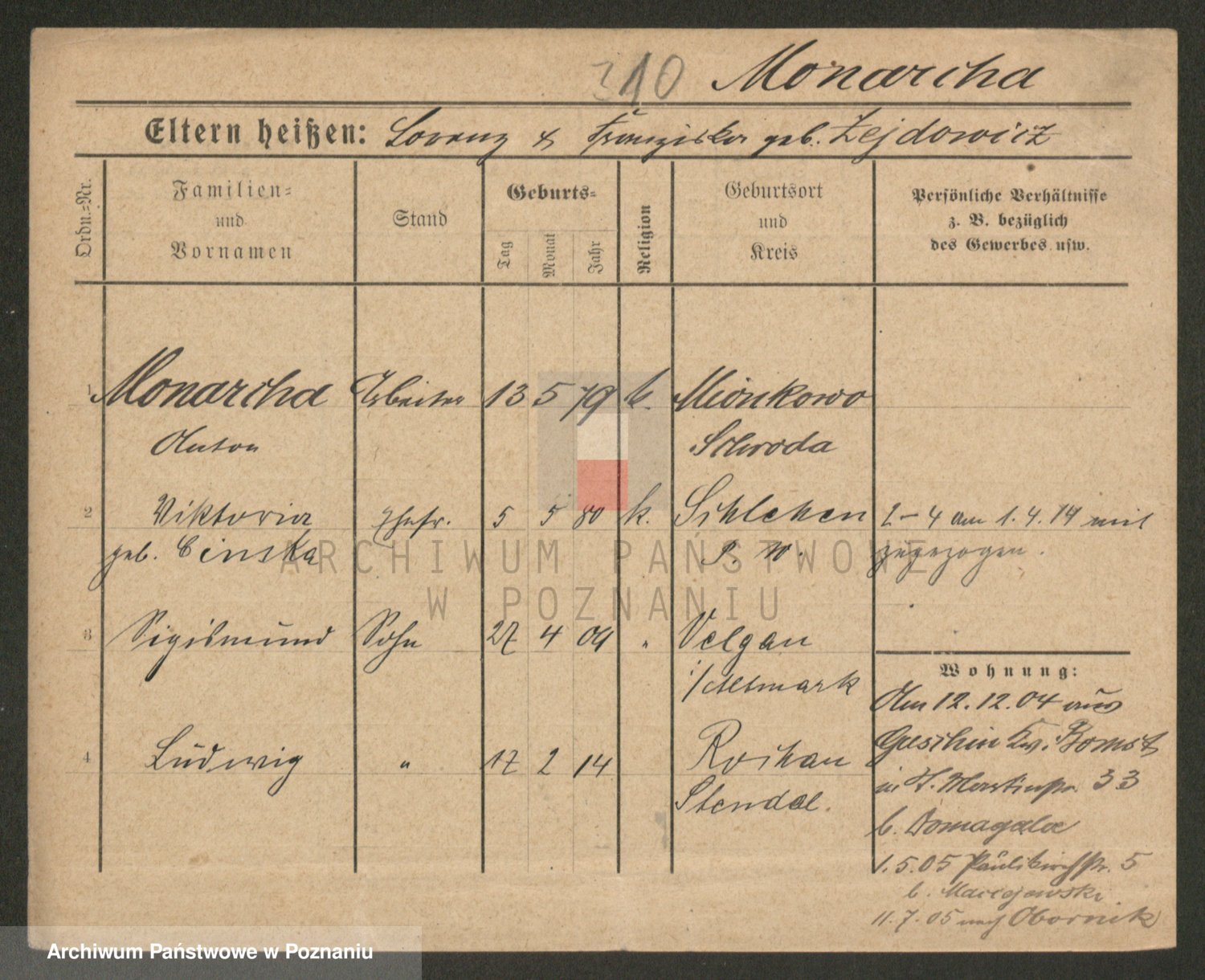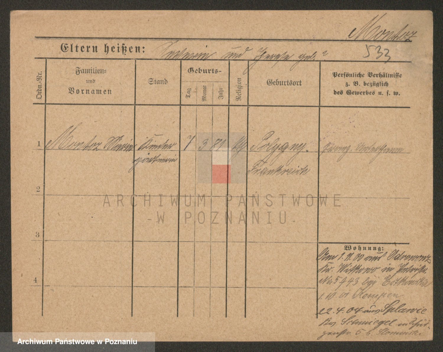 Podgląd karty osobowej dostępny jest po kliknięciu na nazwisko lub ikonkę karty. Można dokonywać powiększenia (ikony na górze) lub przechodzić między kolejnymi skanami (strzałki po bokach).