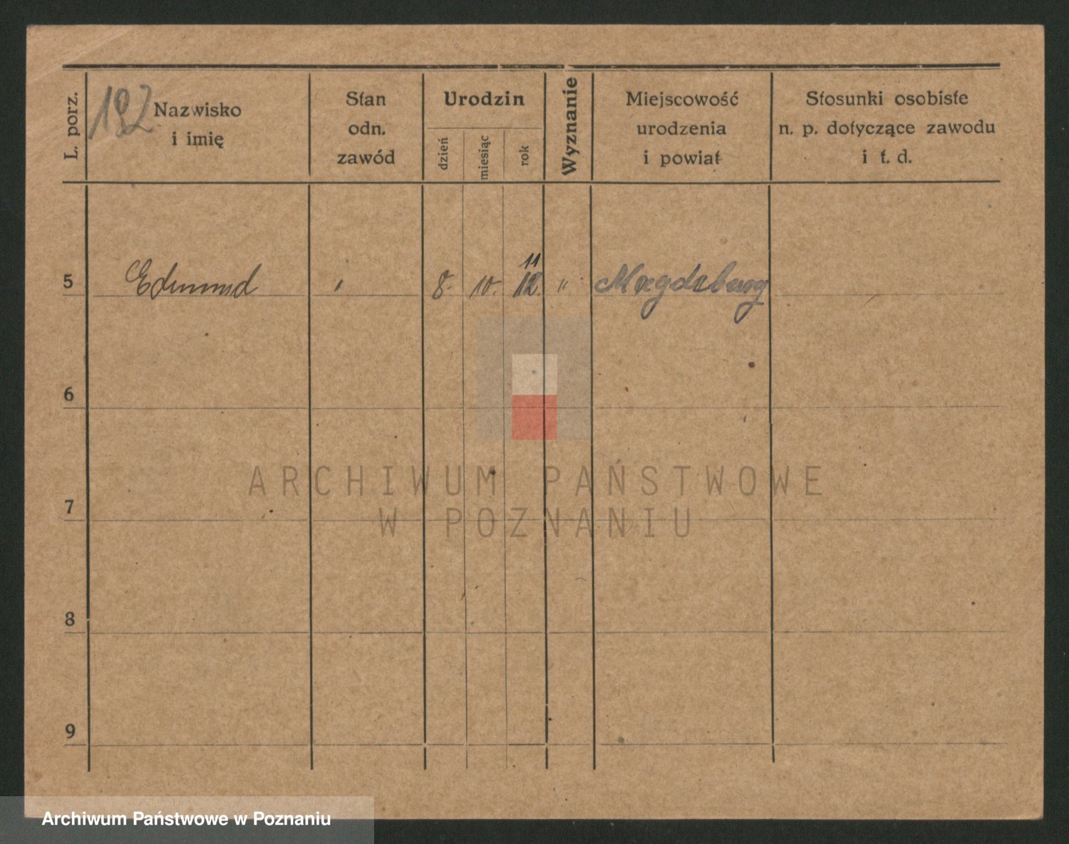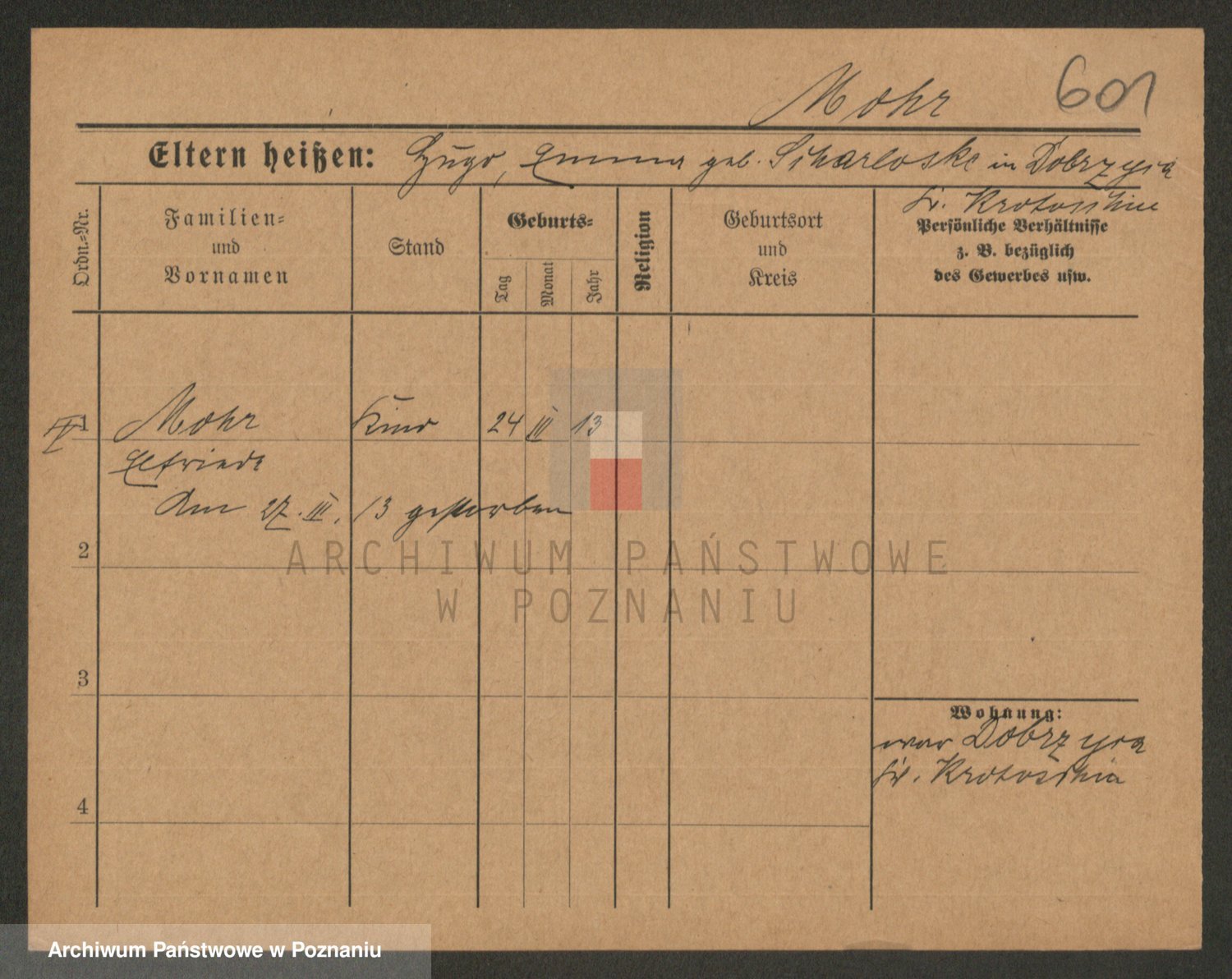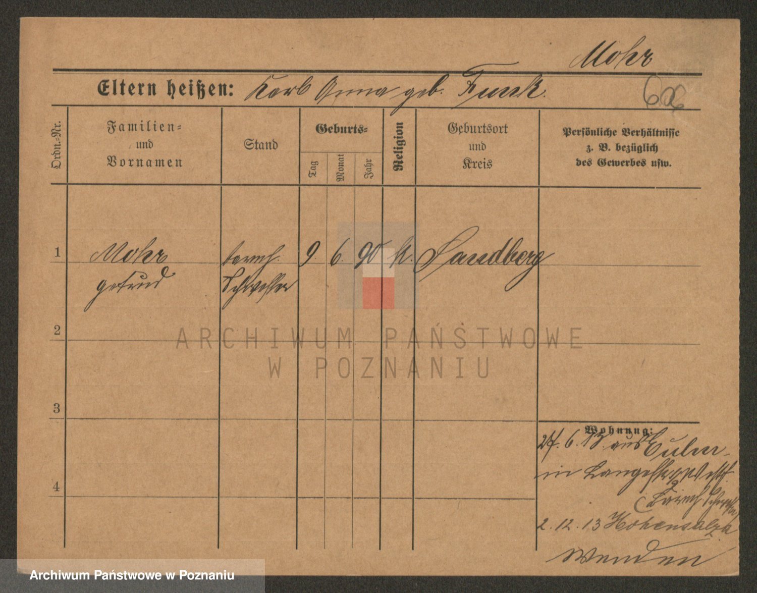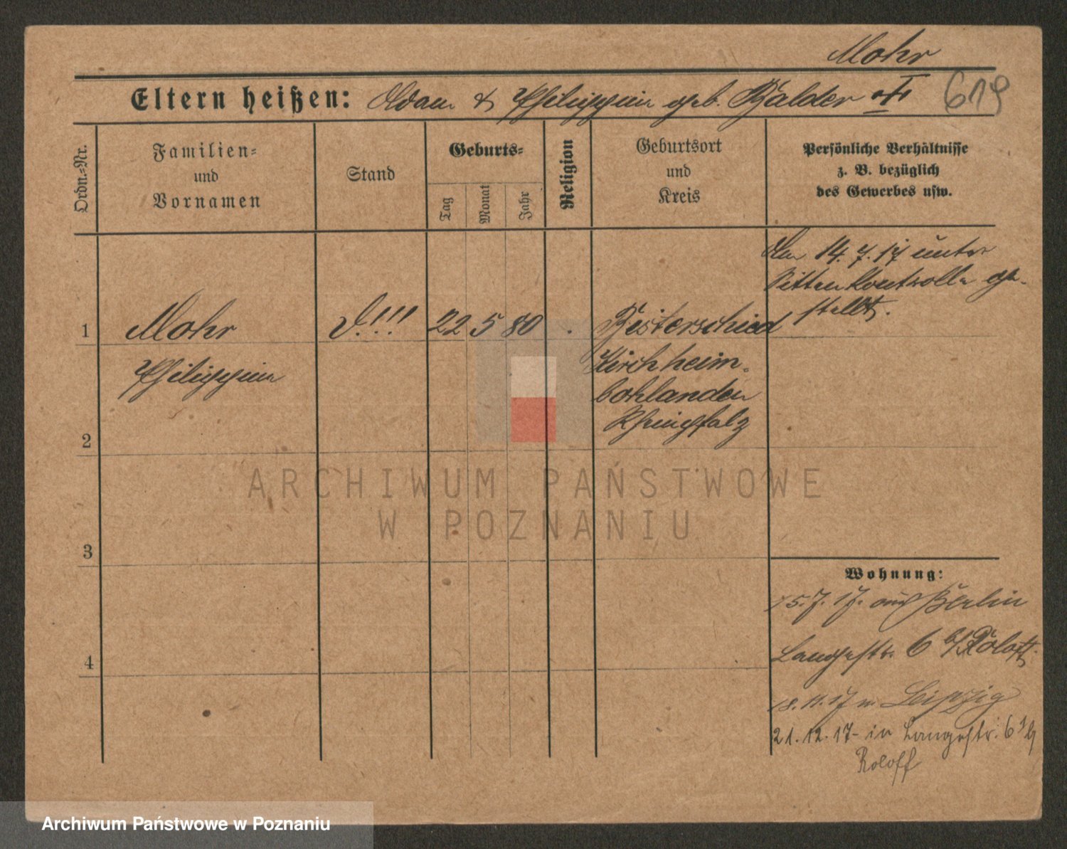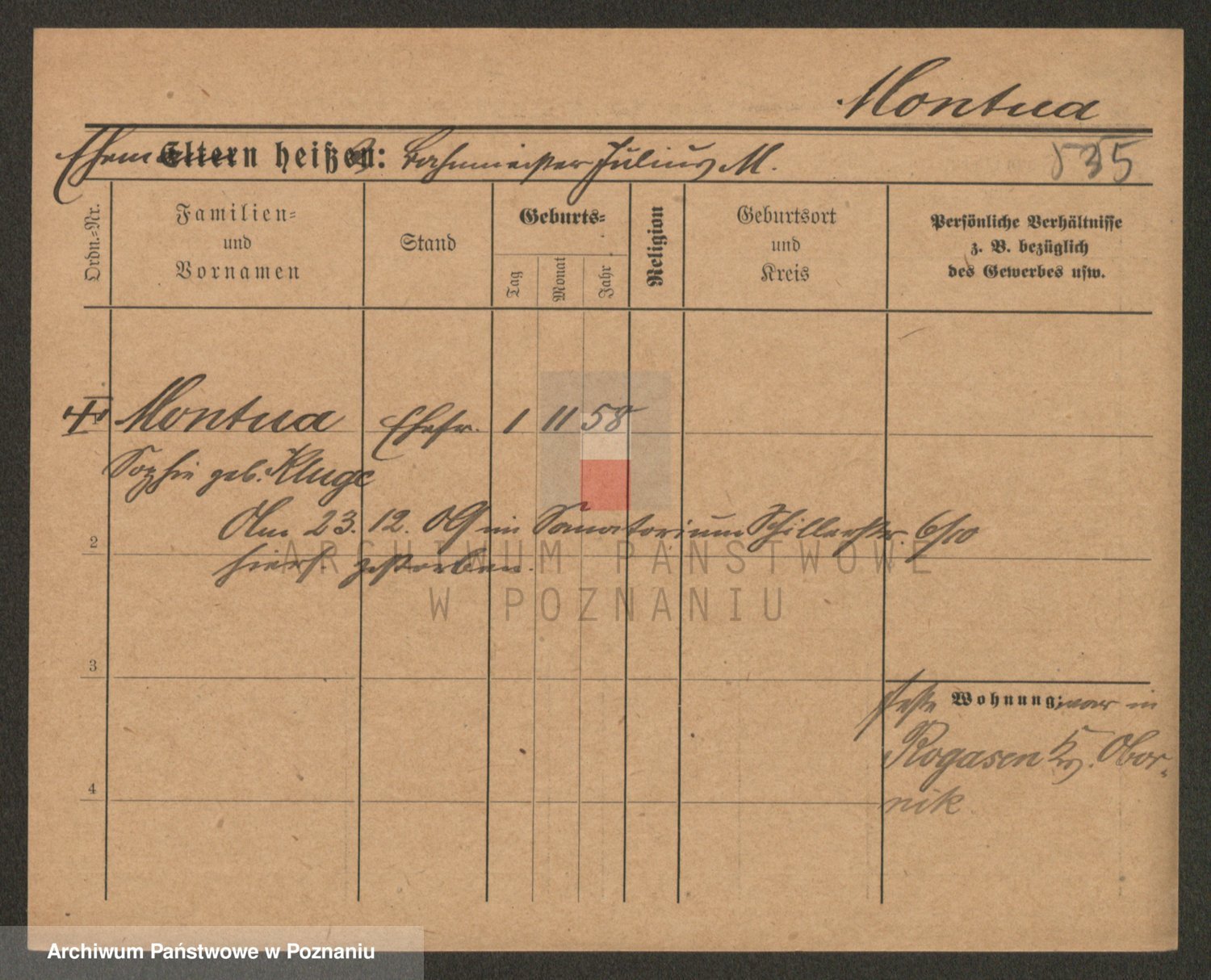 Podgląd karty osobowej dostępny jest po kliknięciu na nazwisko lub ikonkę karty. Można dokonywać powiększenia (ikony na górze) lub przechodzić między kolejnymi skanami (strzałki po bokach).