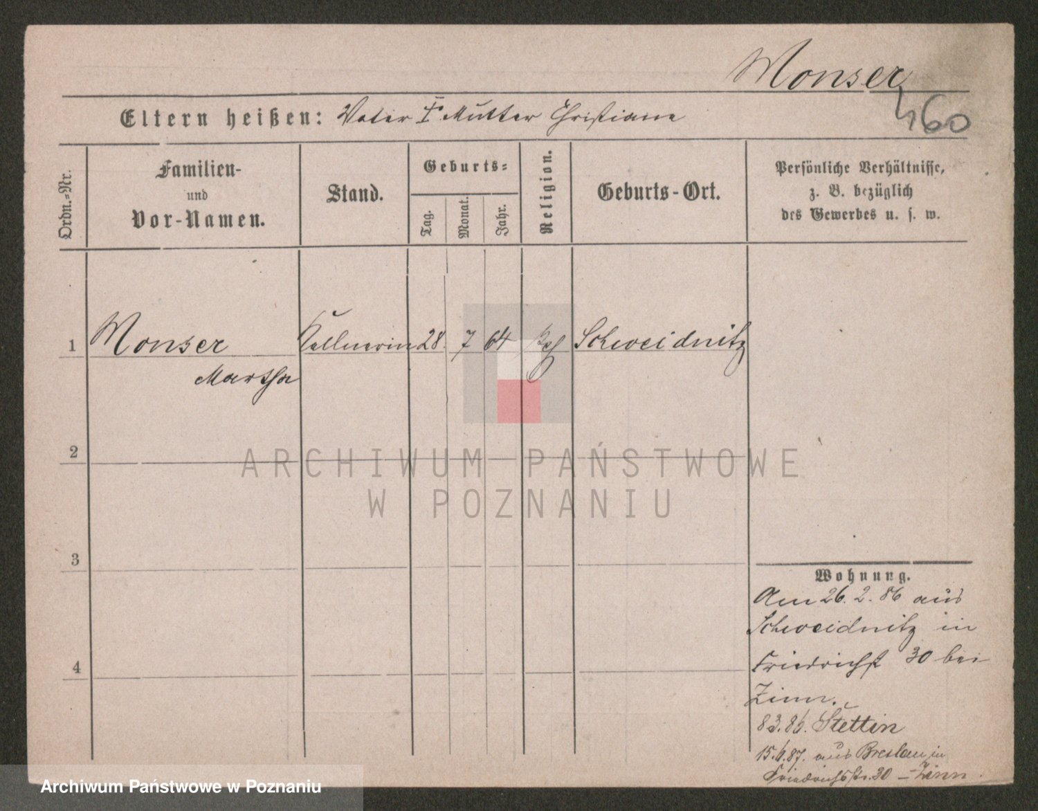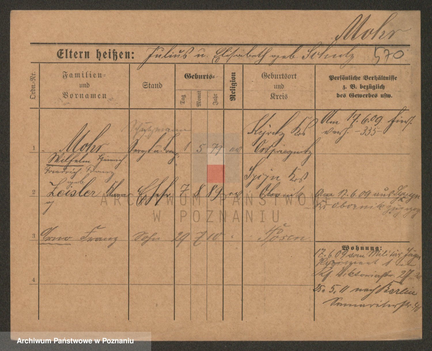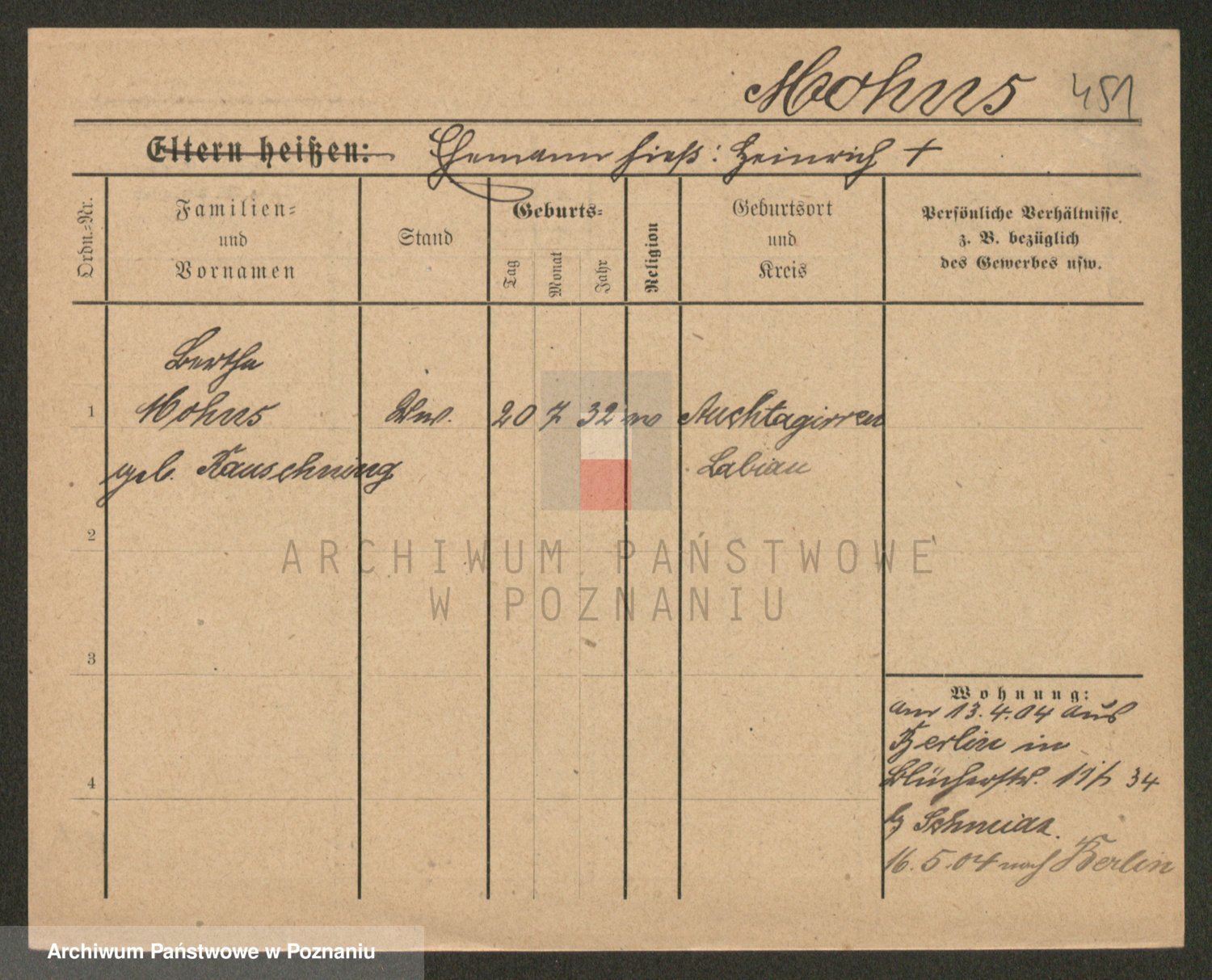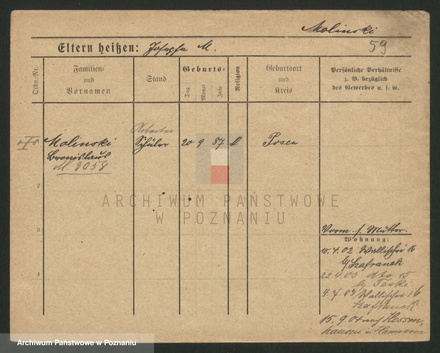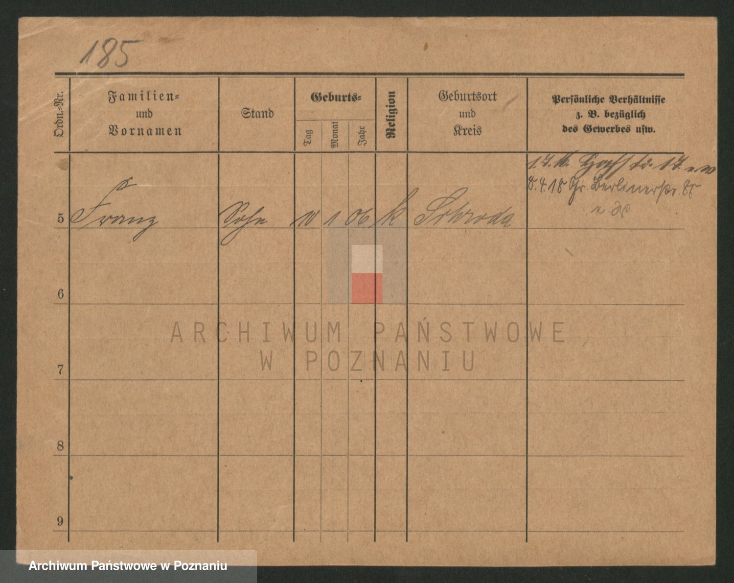 Podgląd karty osobowej dostępny jest po kliknięciu na nazwisko lub ikonkę karty. Można dokonywać powiększenia (ikony na górze) lub przechodzić między kolejnymi skanami (strzałki po bokach).