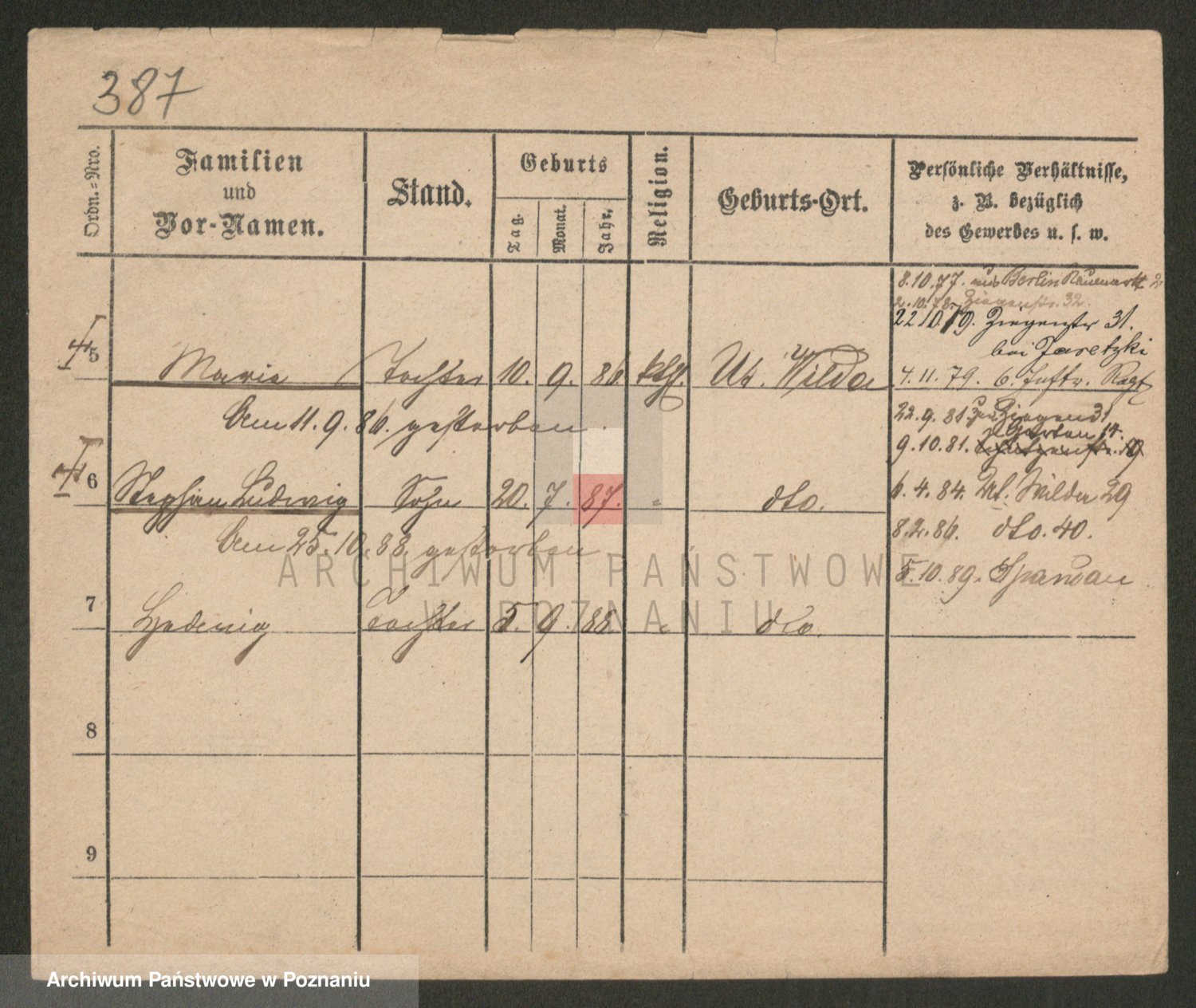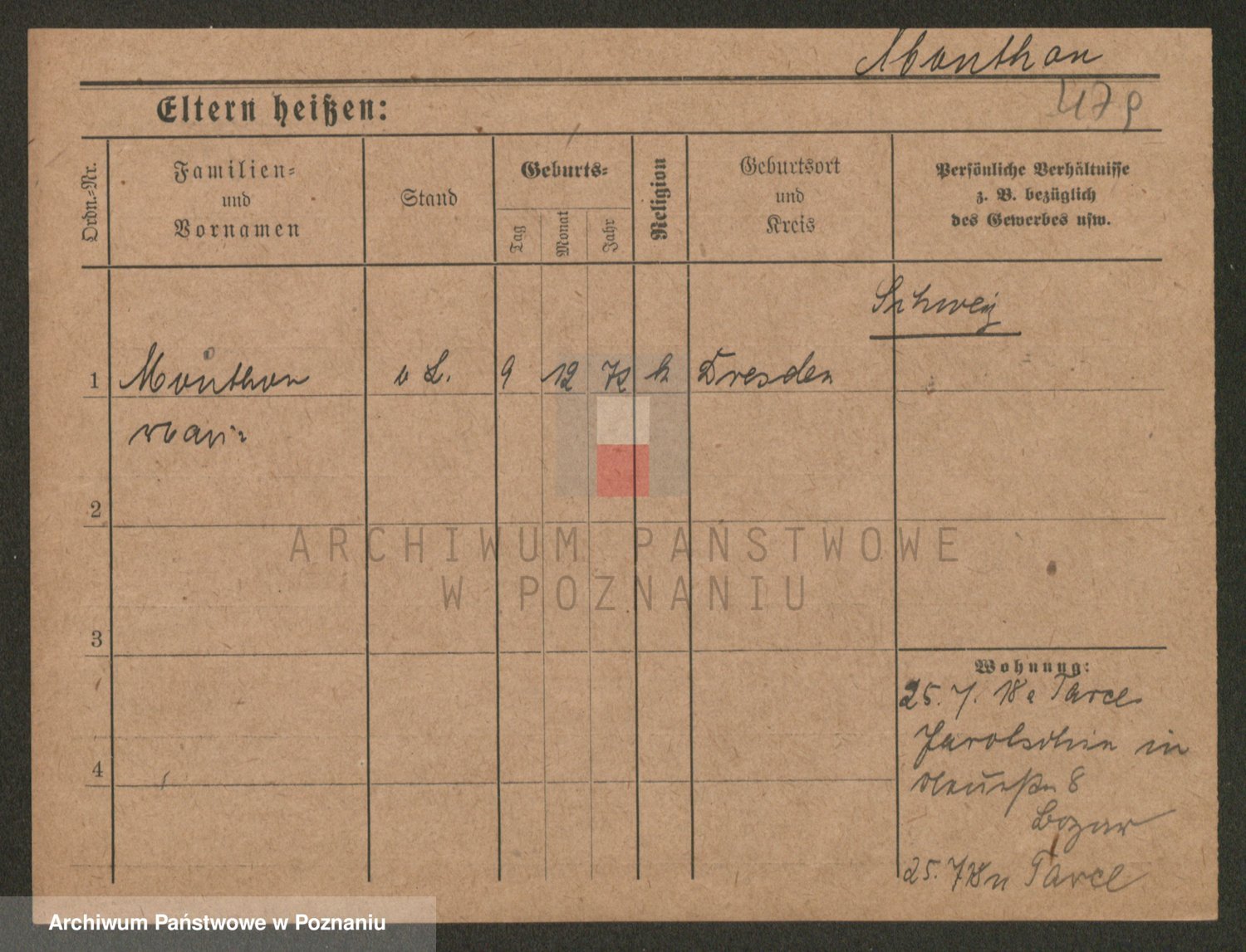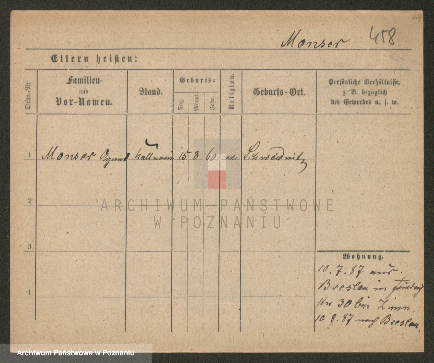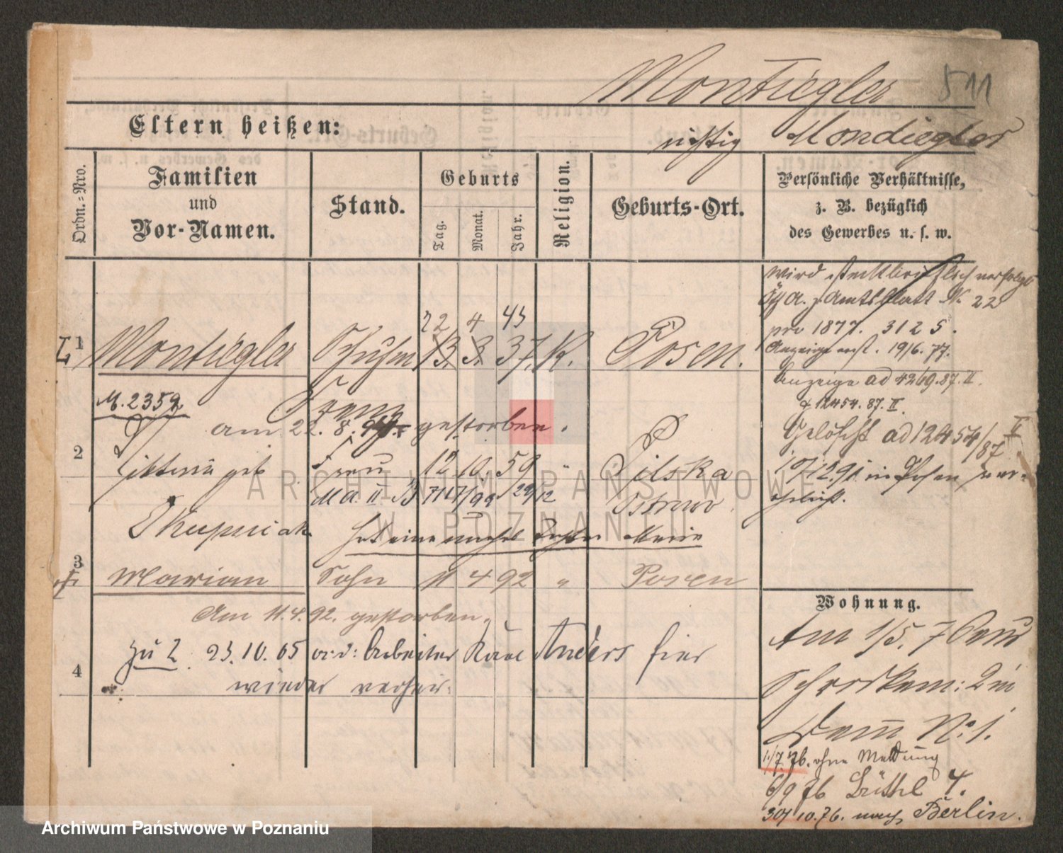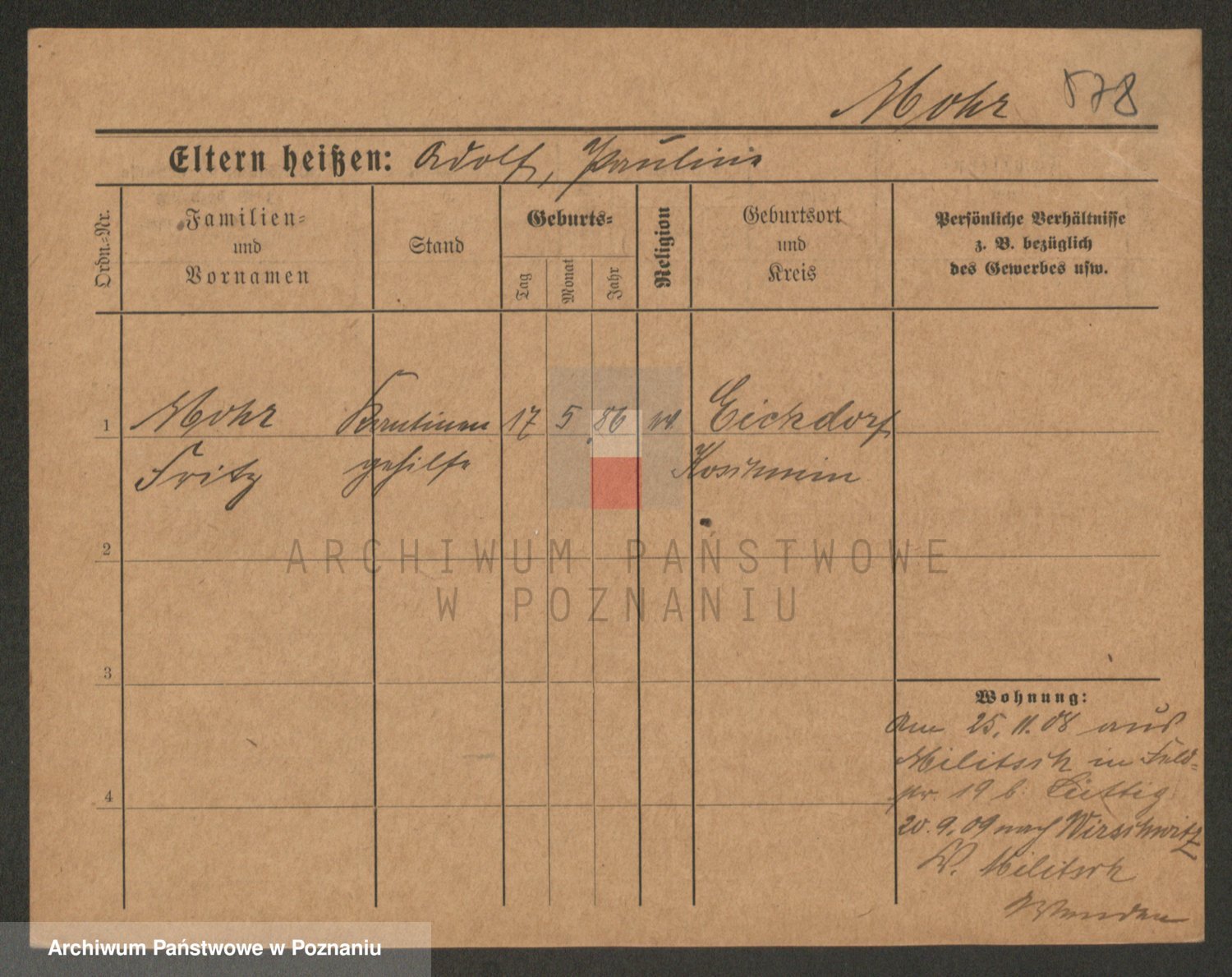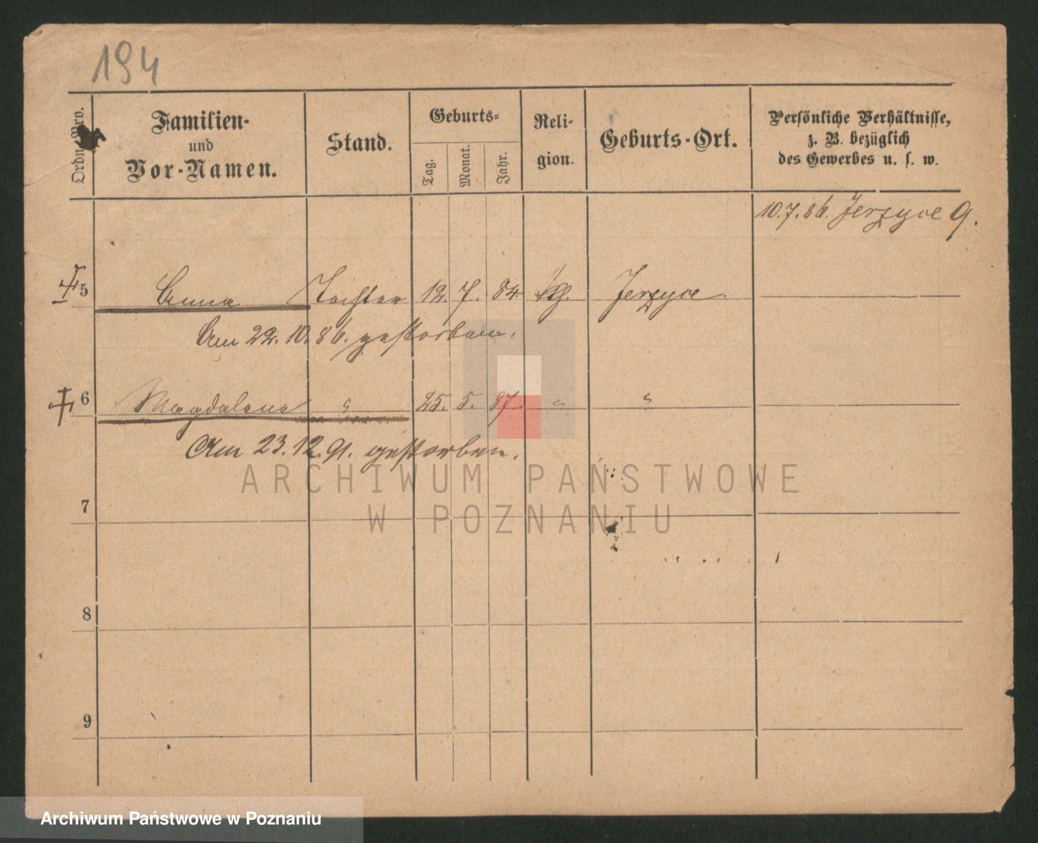 Podgląd karty osobowej dostępny jest po kliknięciu na nazwisko lub ikonkę karty. Można dokonywać powiększenia (ikony na górze) lub przechodzić między kolejnymi skanami (strzałki po bokach).