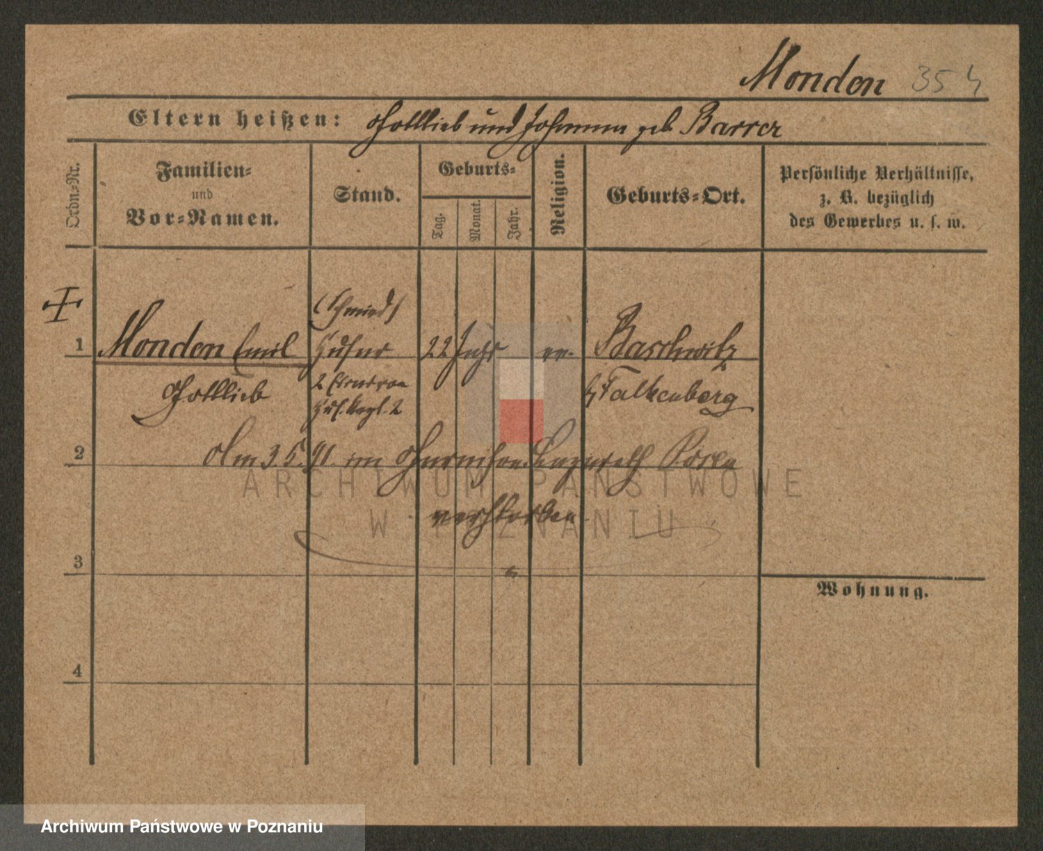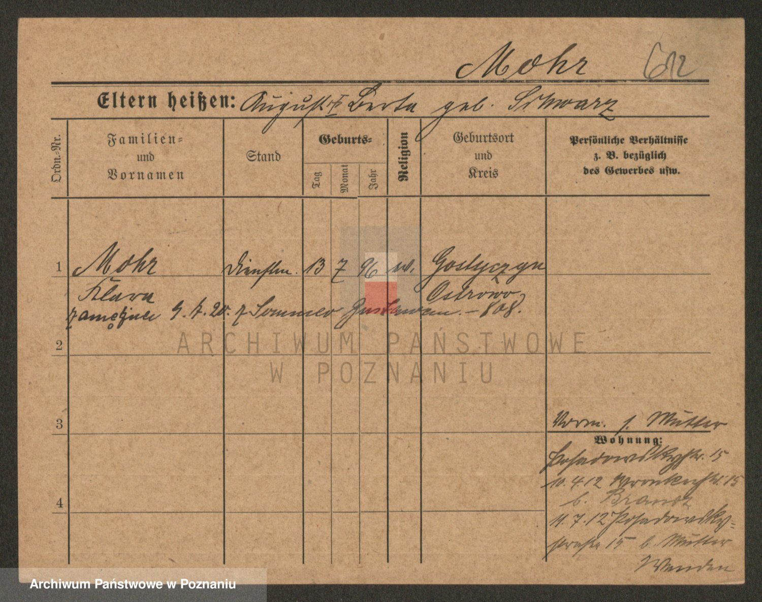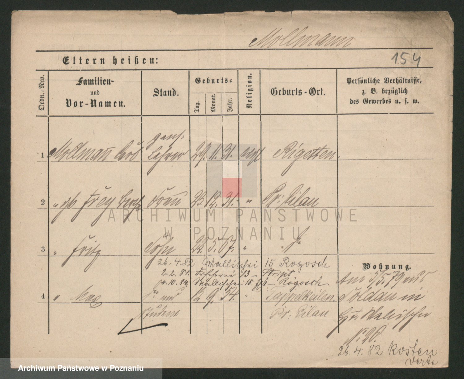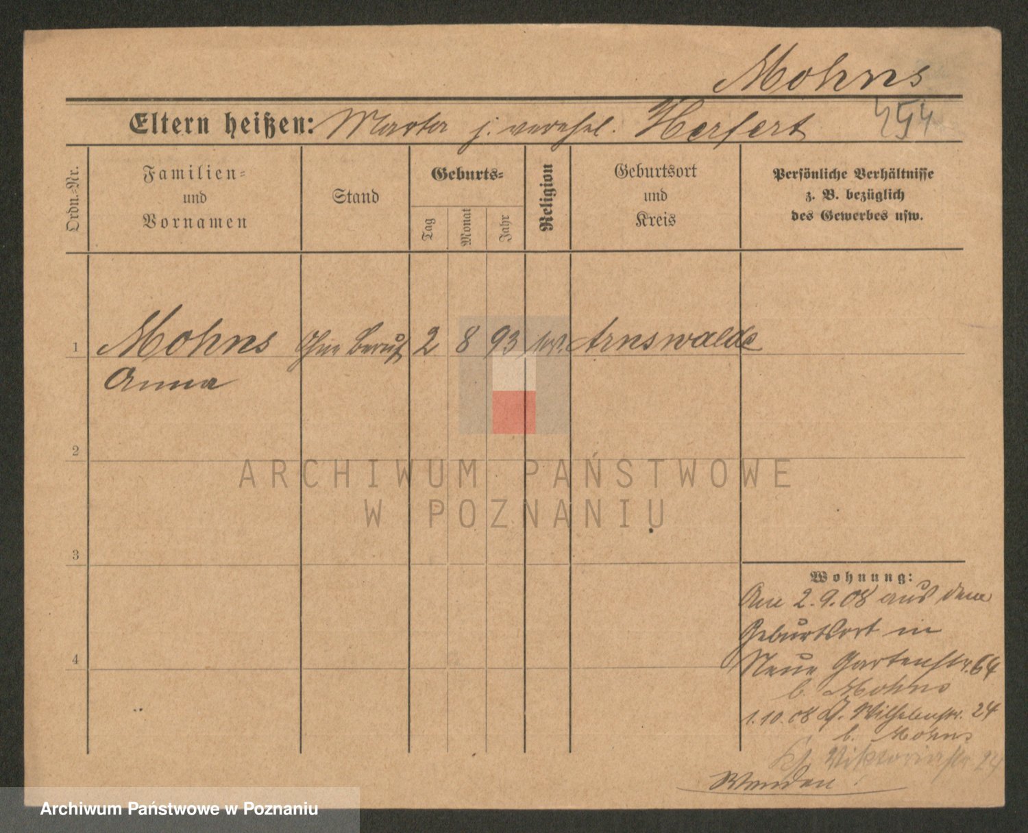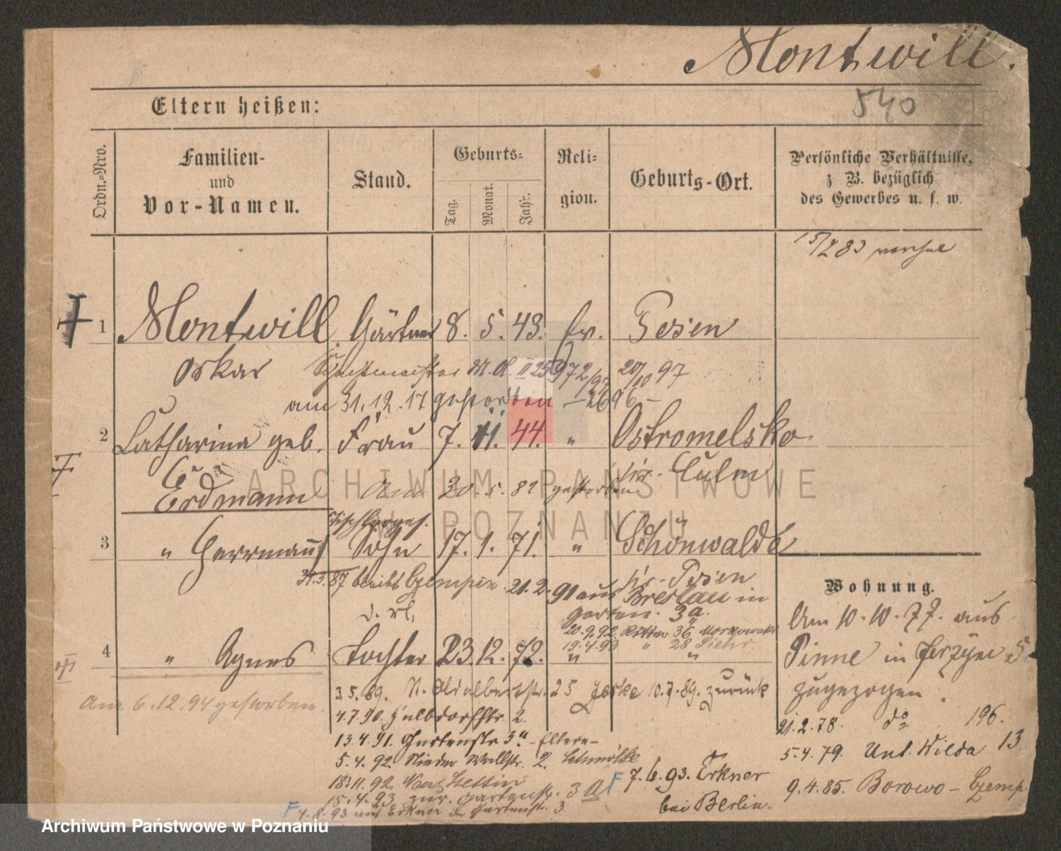 Podgląd karty osobowej dostępny jest po kliknięciu na nazwisko lub ikonkę karty. Można dokonywać powiększenia (ikony na górze) lub przechodzić między kolejnymi skanami (strzałki po bokach).