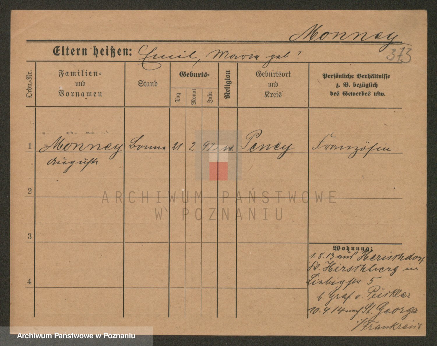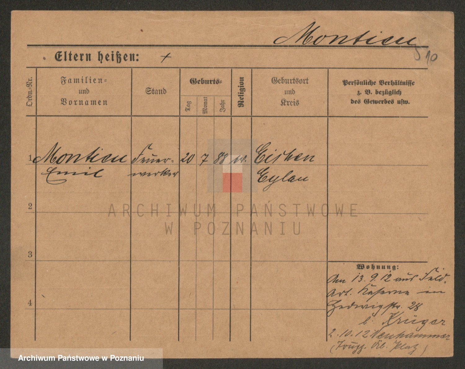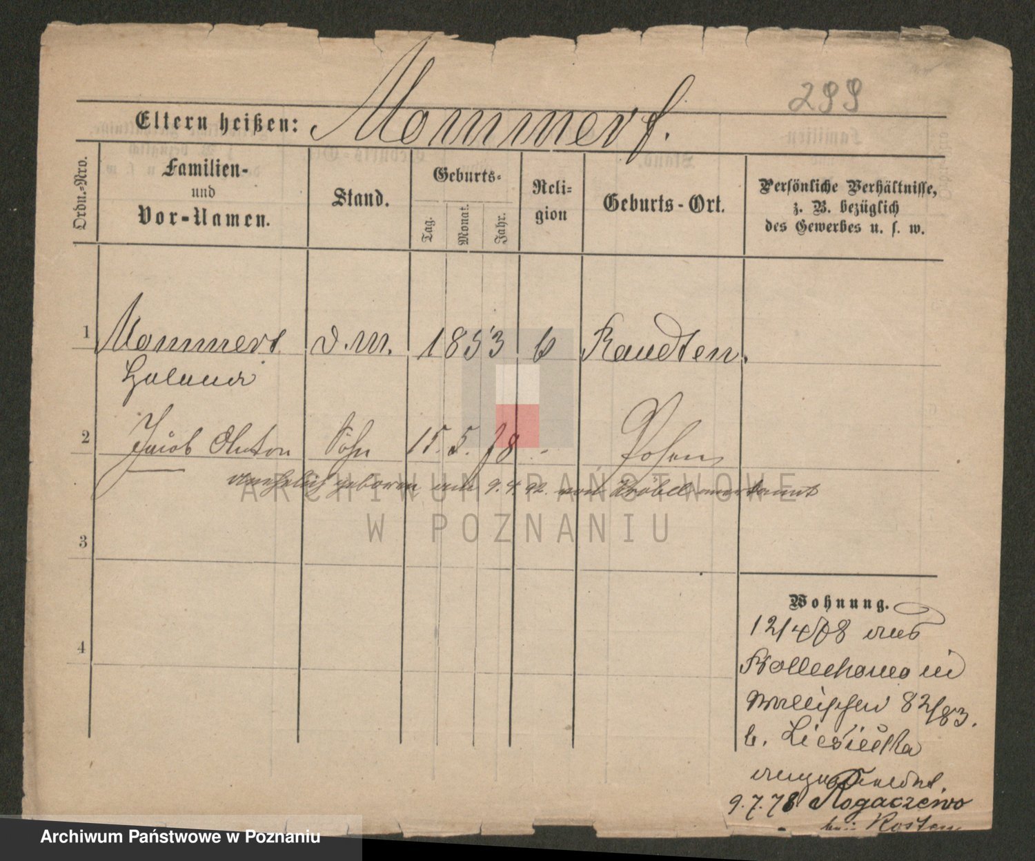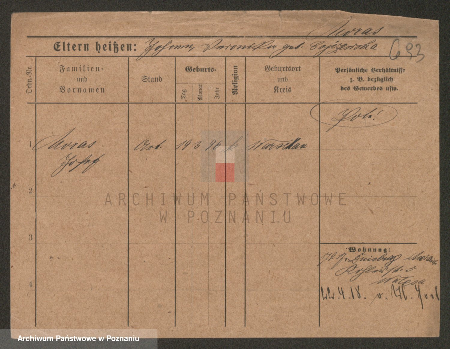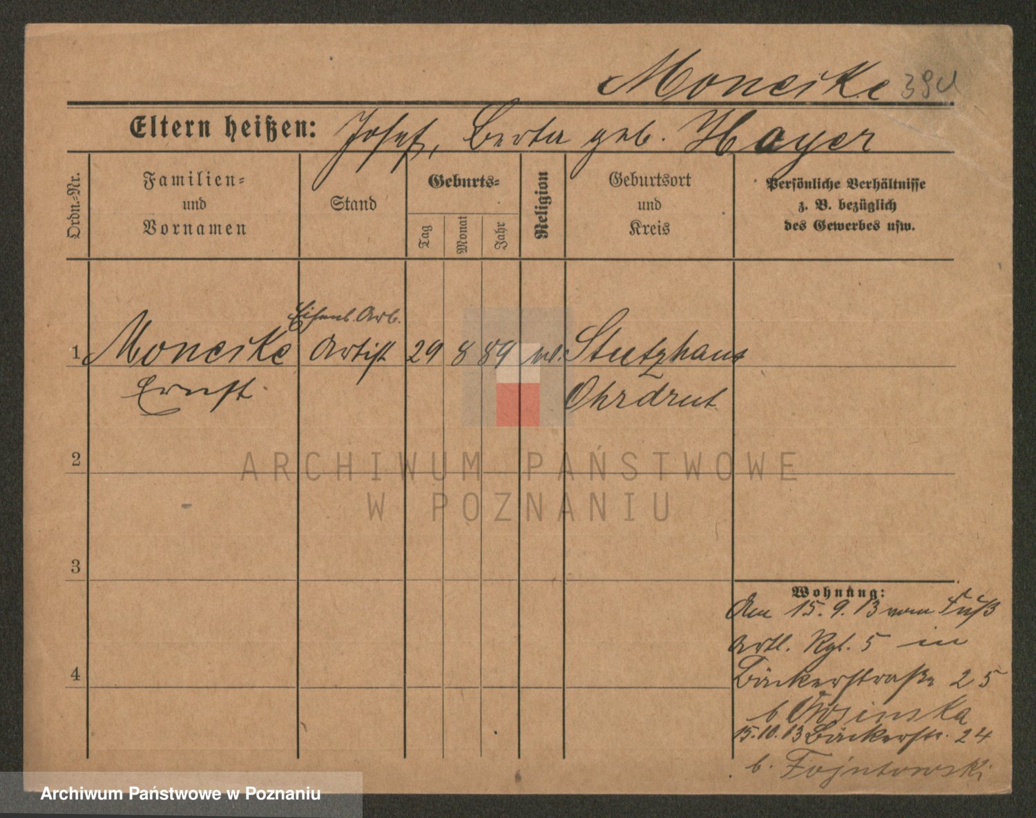 Podgląd karty osobowej dostępny jest po kliknięciu na nazwisko lub ikonkę karty. Można dokonywać powiększenia (ikony na górze) lub przechodzić między kolejnymi skanami (strzałki po bokach).