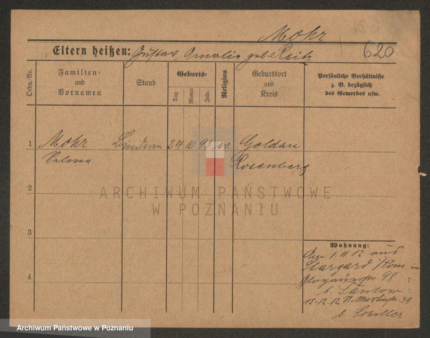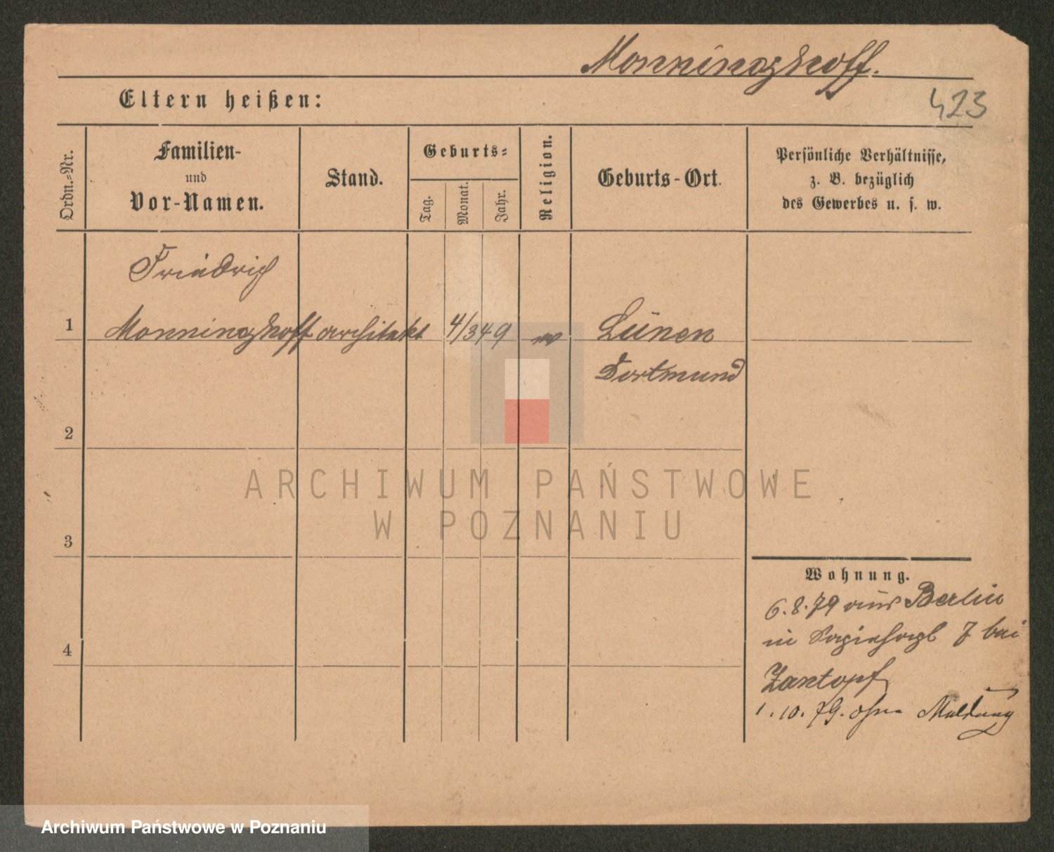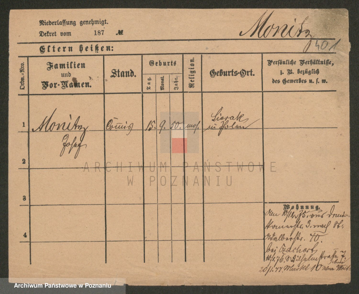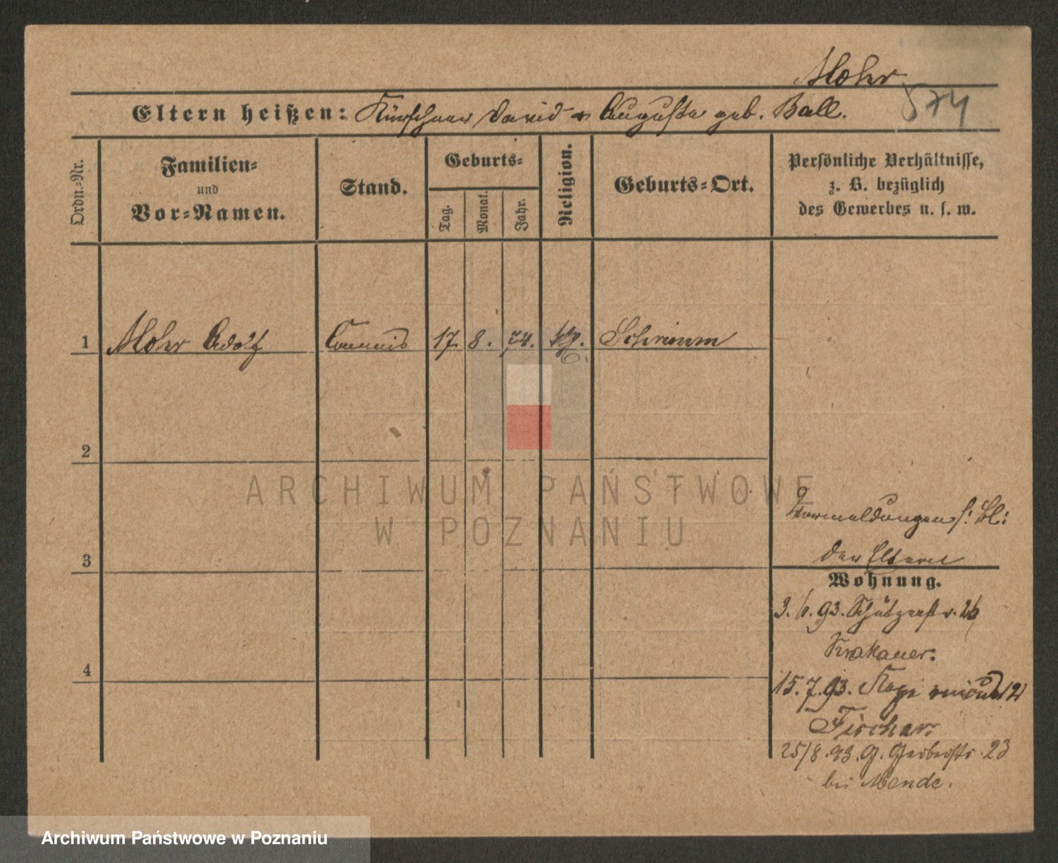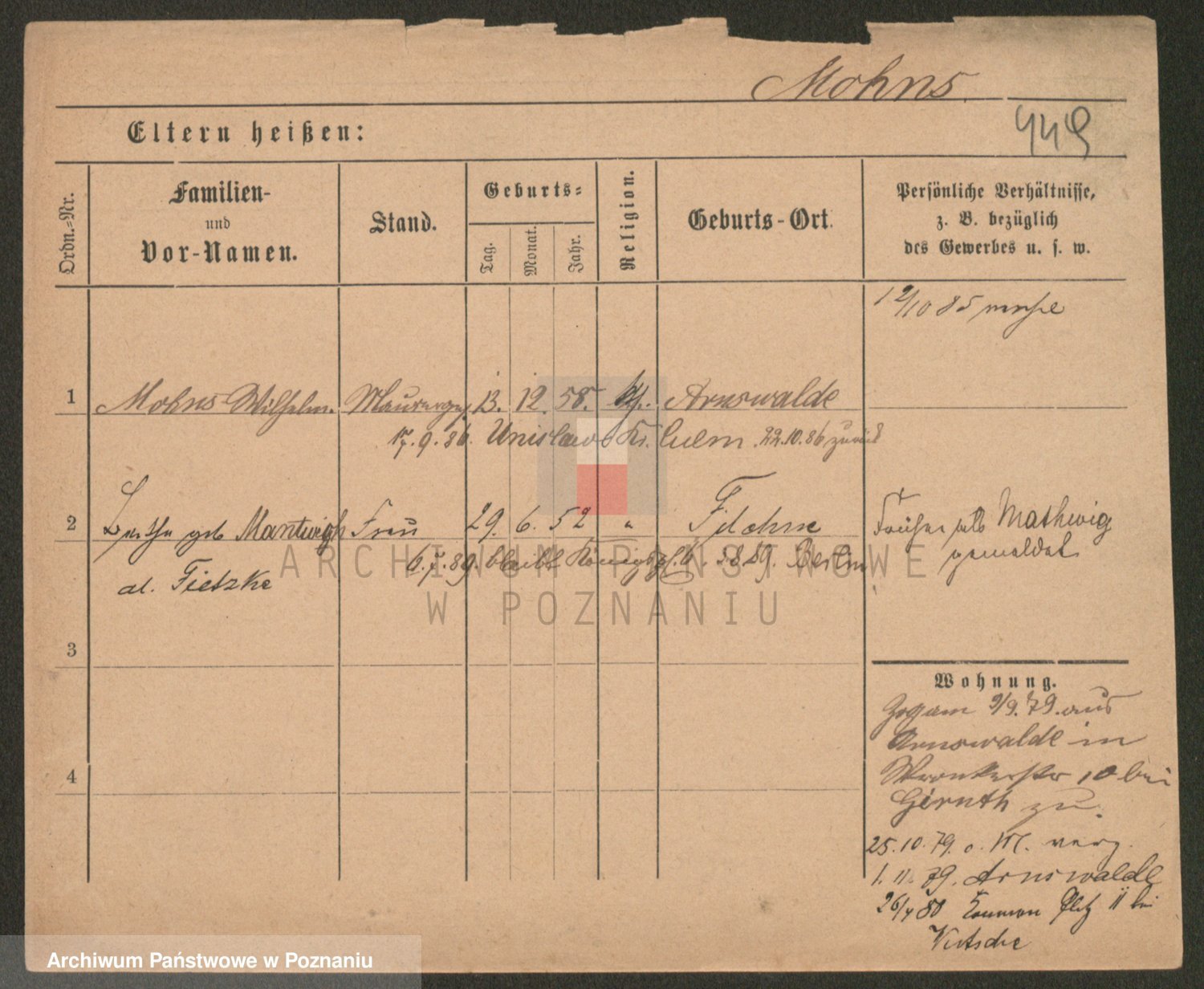 Podgląd karty osobowej dostępny jest po kliknięciu na nazwisko lub ikonkę karty. Można dokonywać powiększenia (ikony na górze) lub przechodzić między kolejnymi skanami (strzałki po bokach).