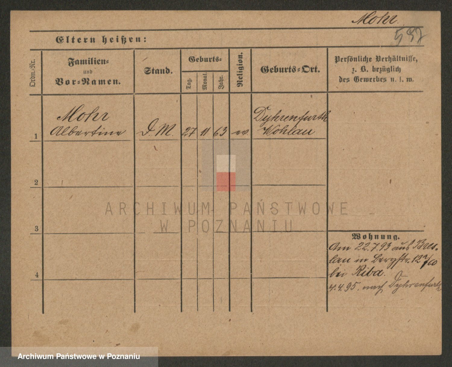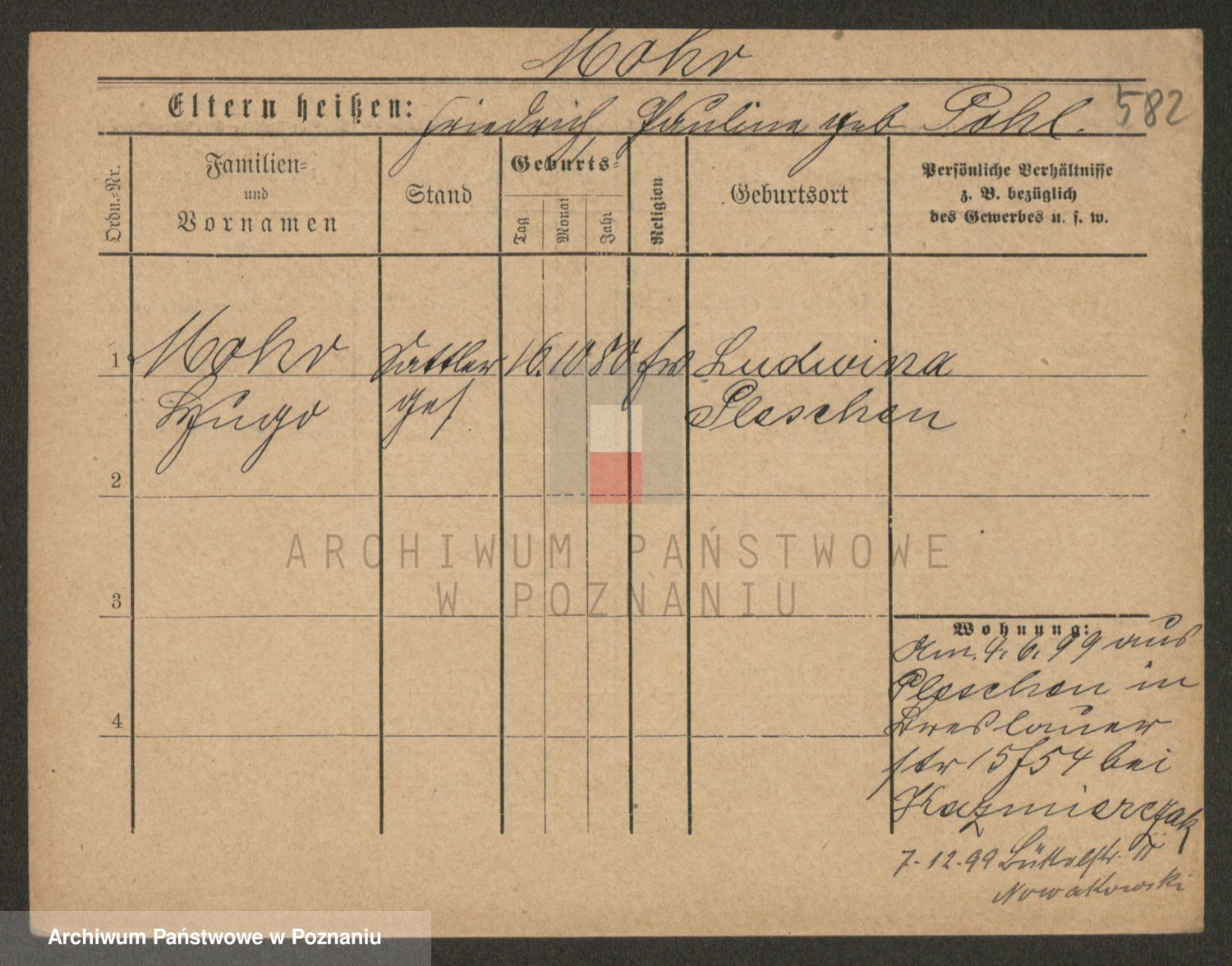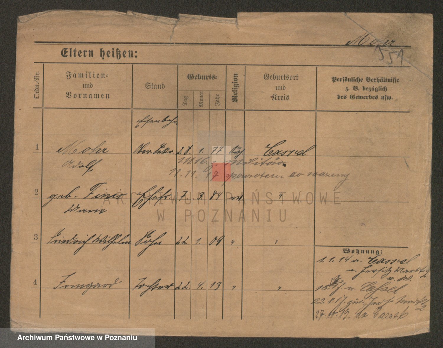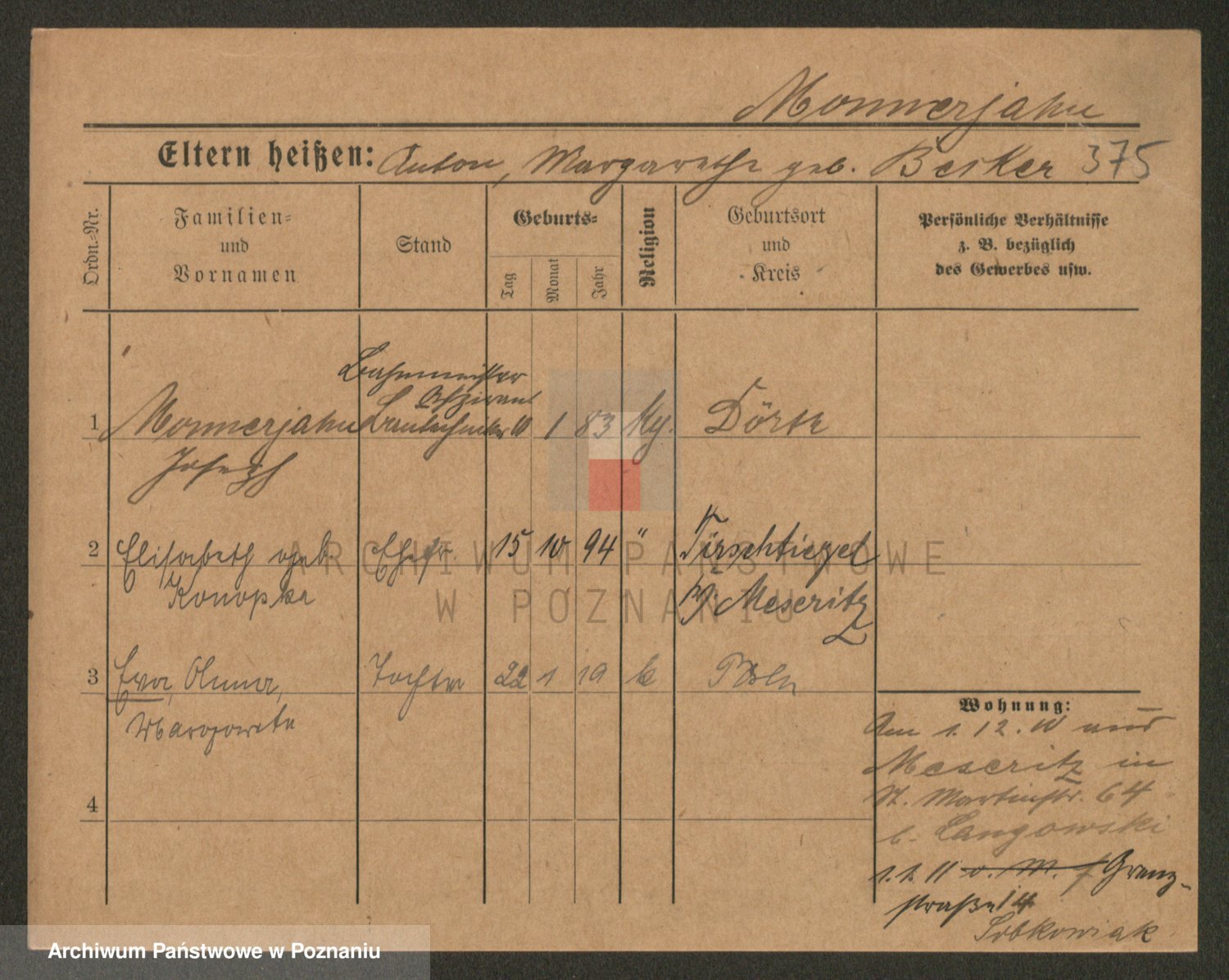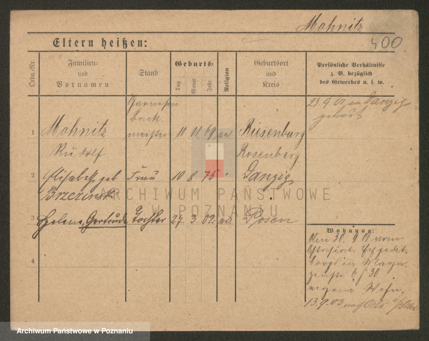 Podgląd karty osobowej dostępny jest po kliknięciu na nazwisko lub ikonkę karty. Można dokonywać powiększenia (ikony na górze) lub przechodzić między kolejnymi skanami (strzałki po bokach).