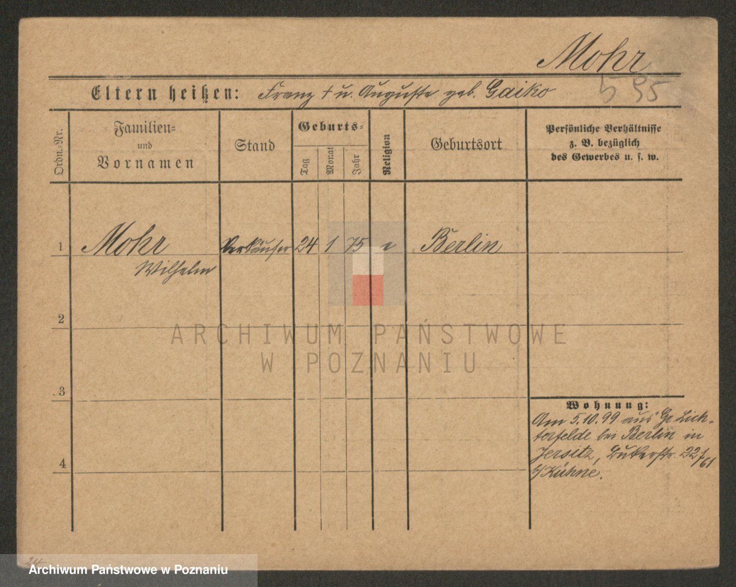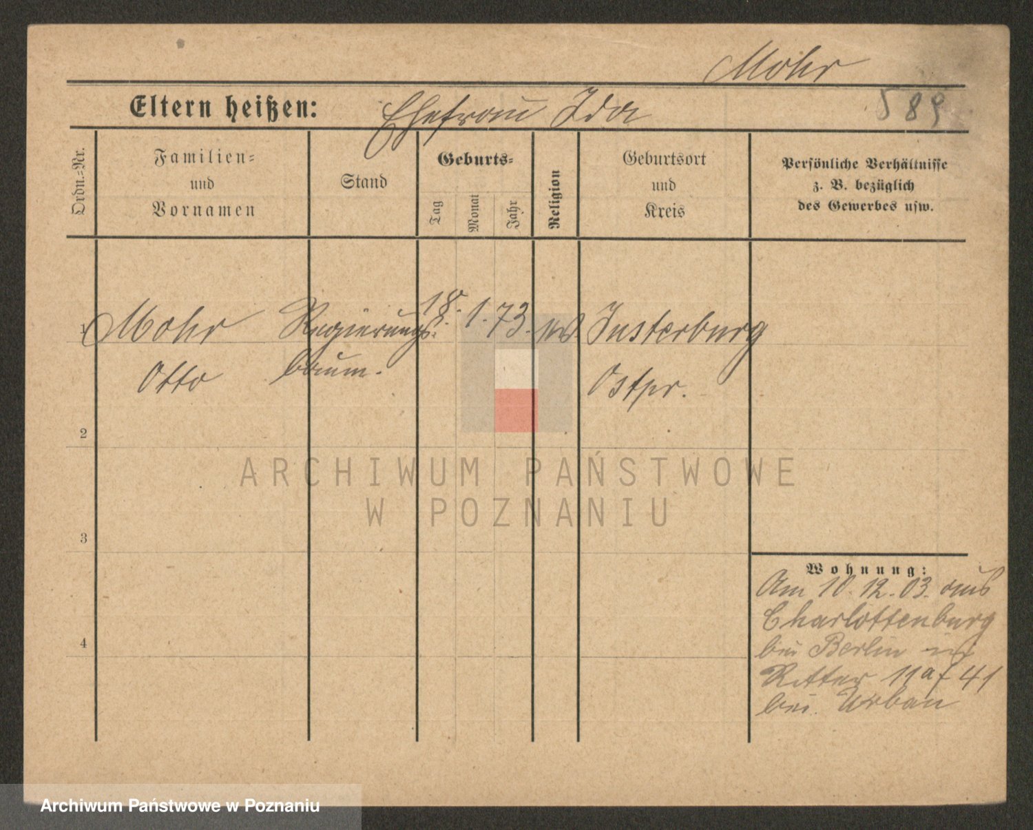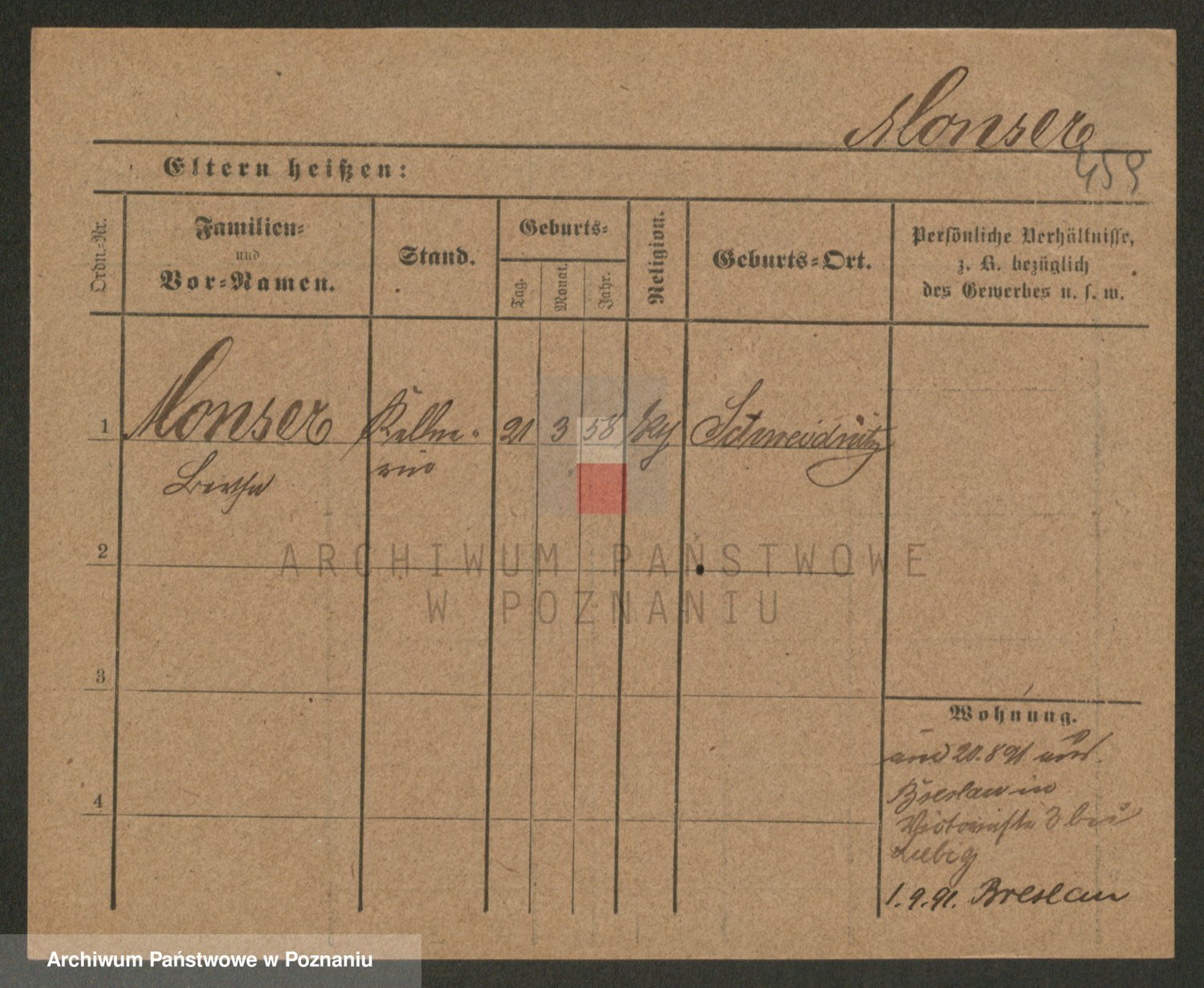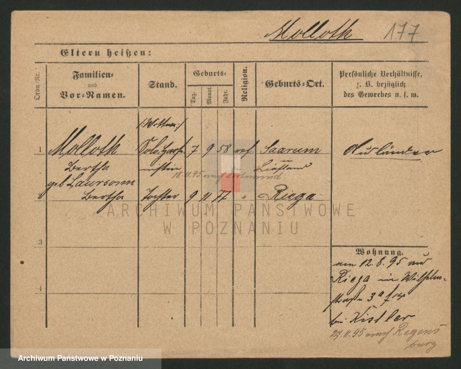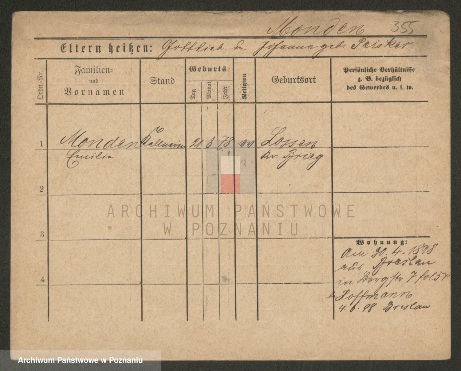 Podgląd karty osobowej dostępny jest po kliknięciu na nazwisko lub ikonkę karty. Można dokonywać powiększenia (ikony na górze) lub przechodzić między kolejnymi skanami (strzałki po bokach).