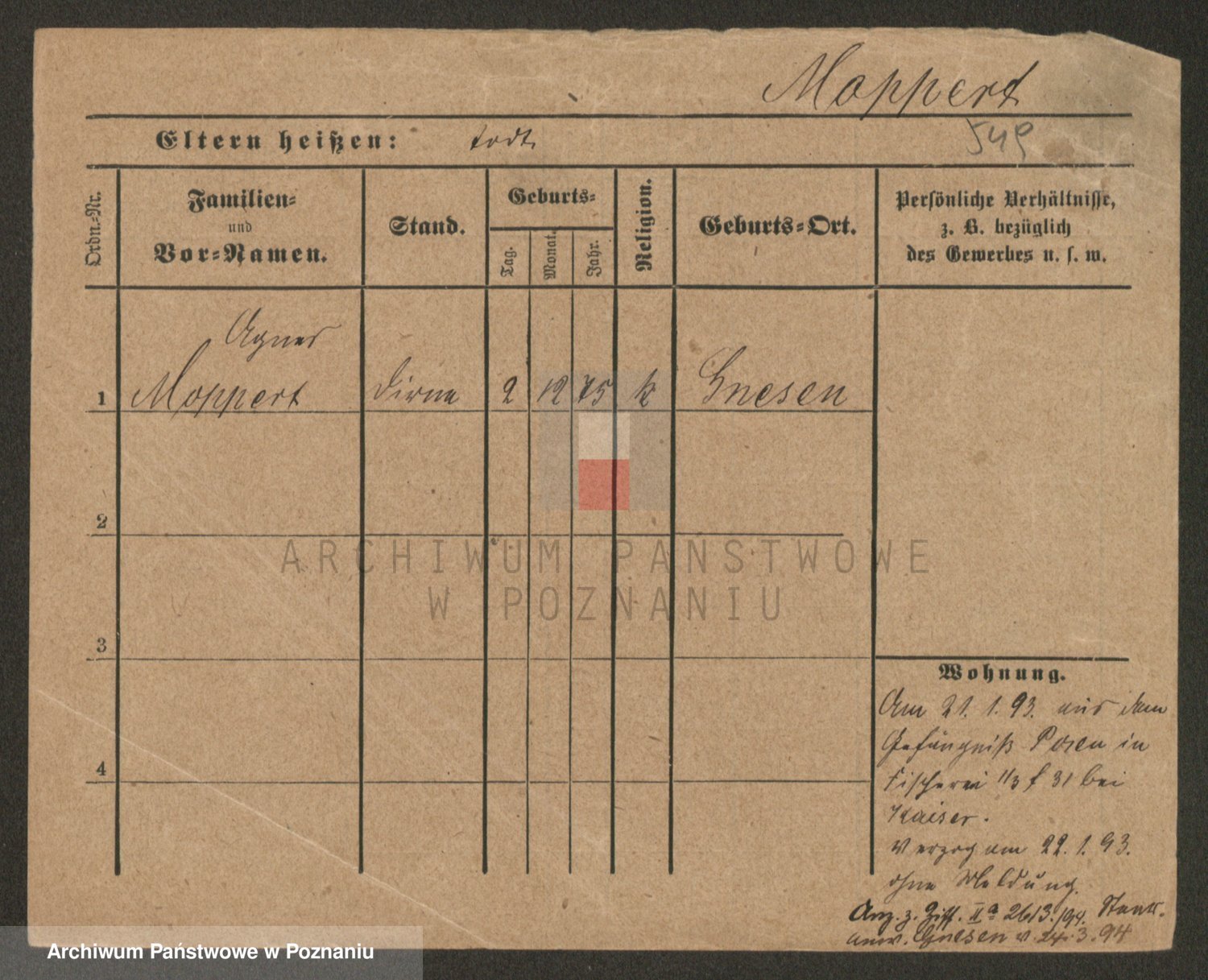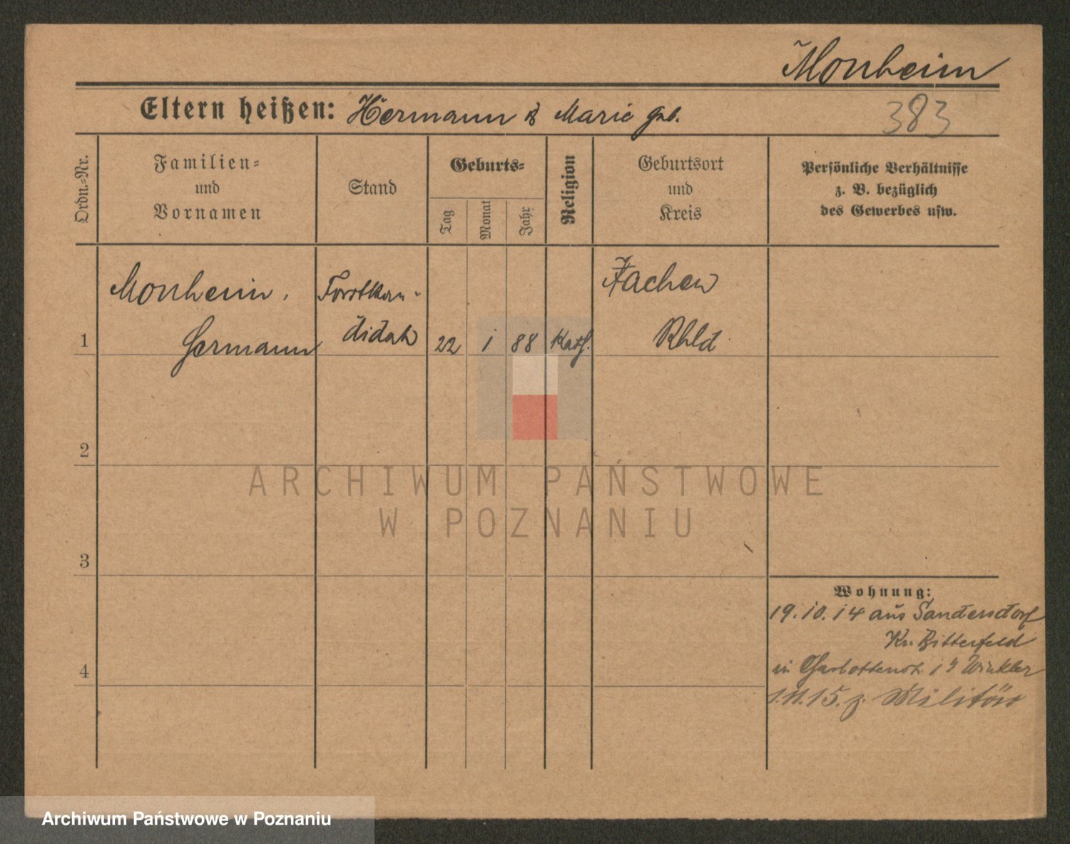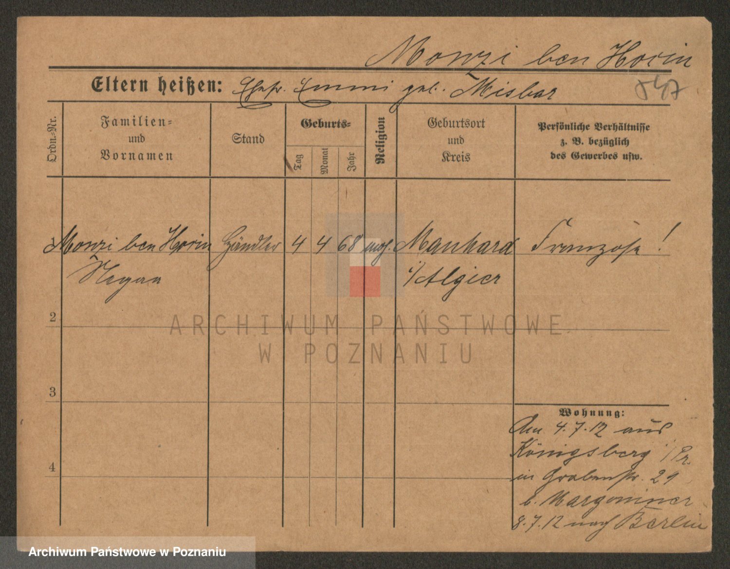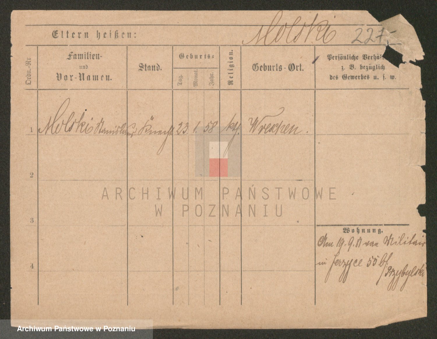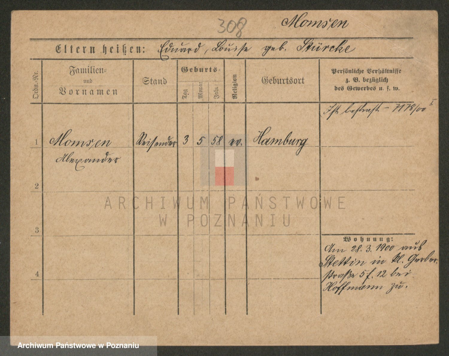 Podgląd karty osobowej dostępny jest po kliknięciu na nazwisko lub ikonkę karty. Można dokonywać powiększenia (ikony na górze) lub przechodzić między kolejnymi skanami (strzałki po bokach).