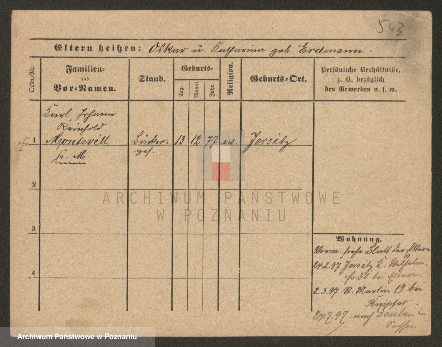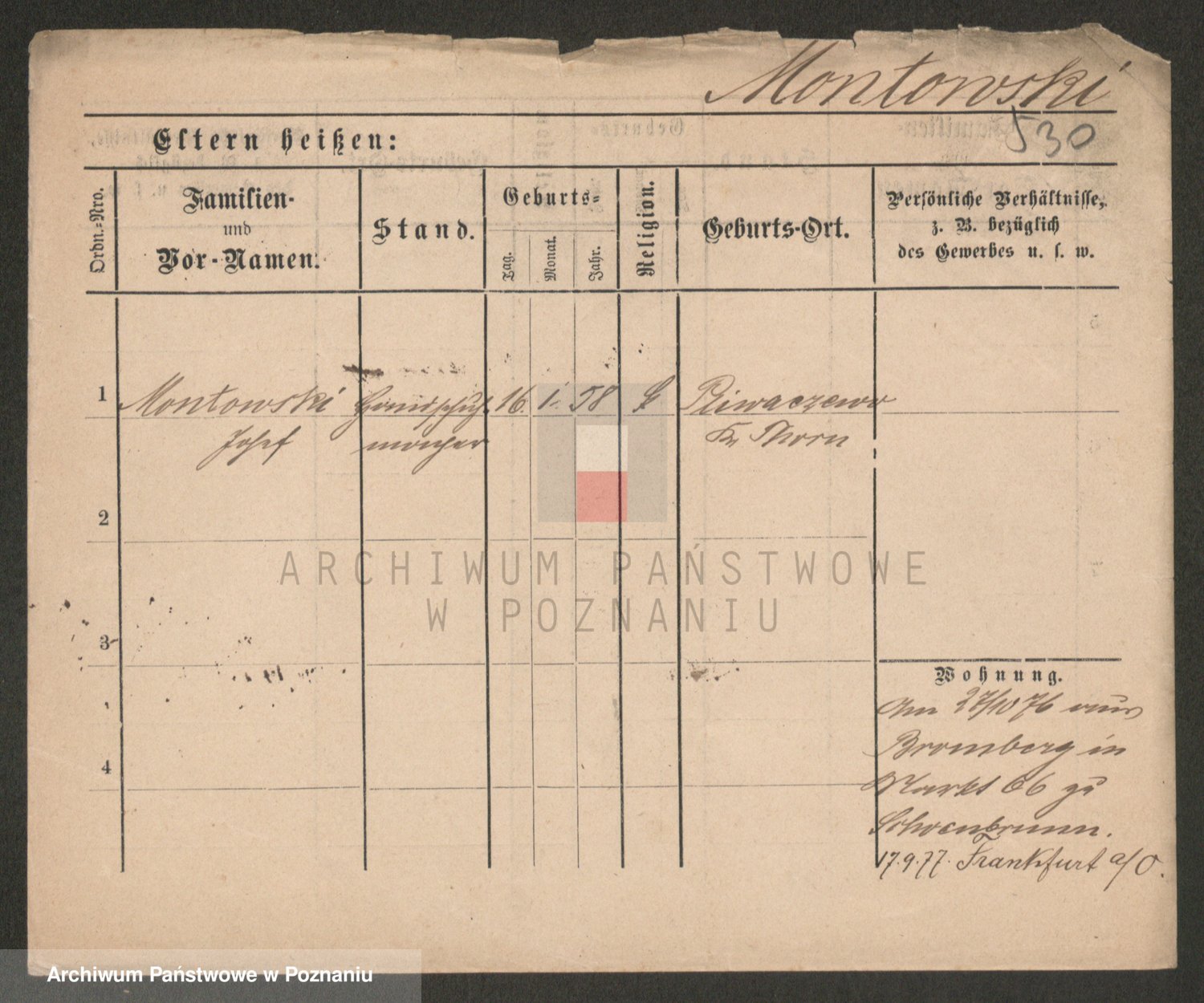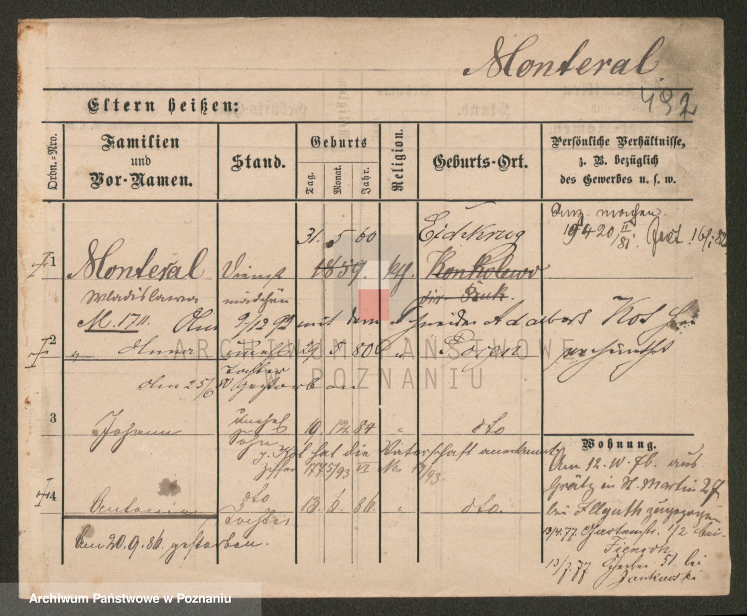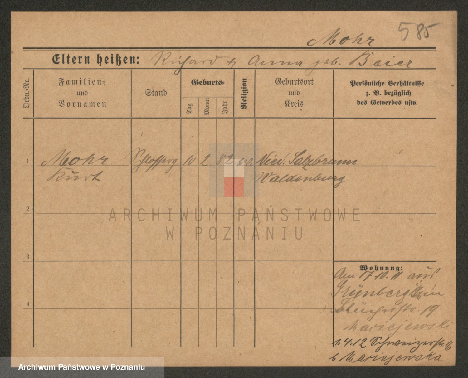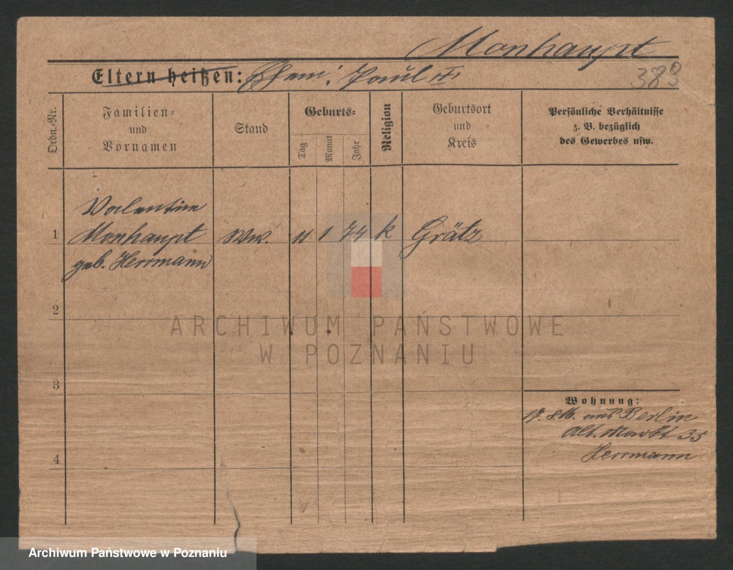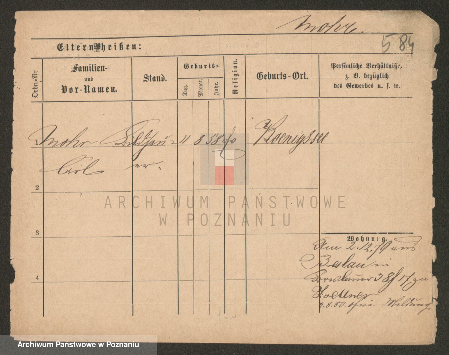 Podgląd karty osobowej dostępny jest po kliknięciu na nazwisko lub ikonkę karty. Można dokonywać powiększenia (ikony na górze) lub przechodzić między kolejnymi skanami (strzałki po bokach).