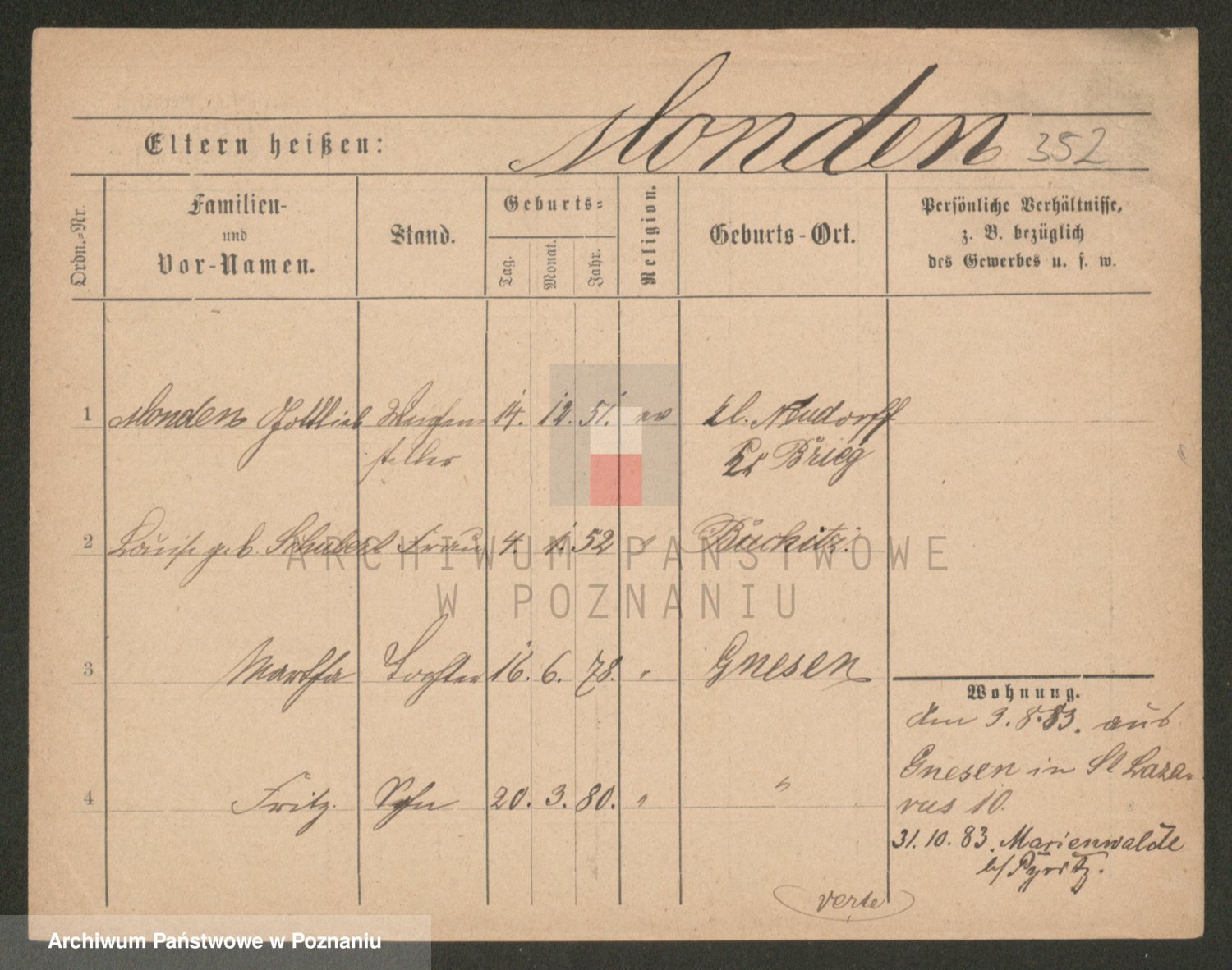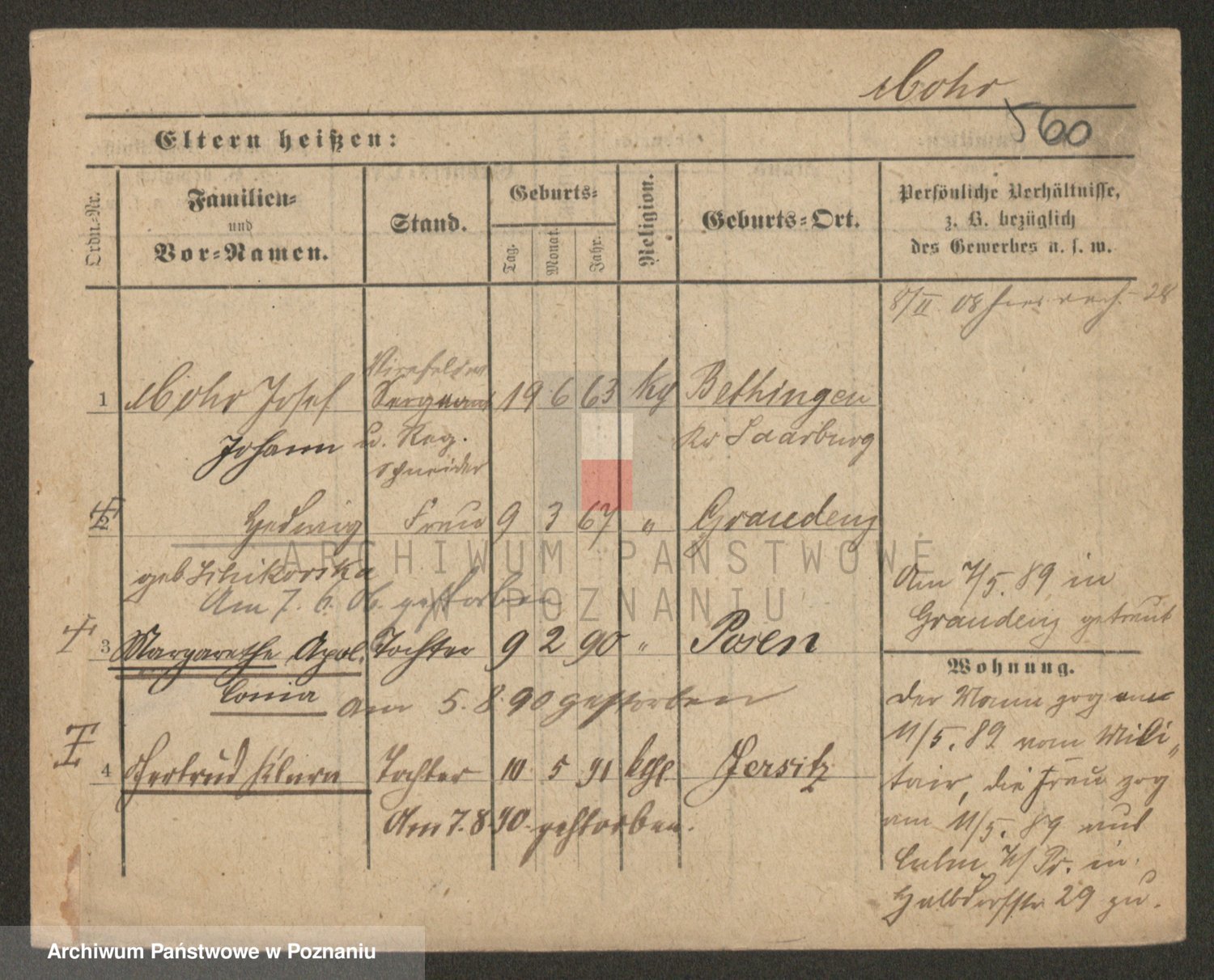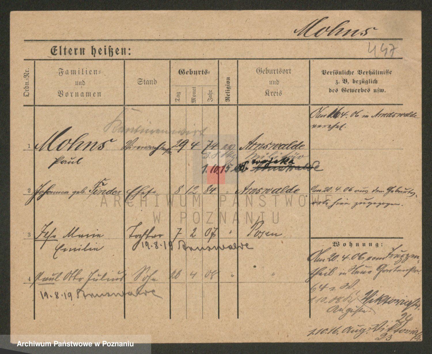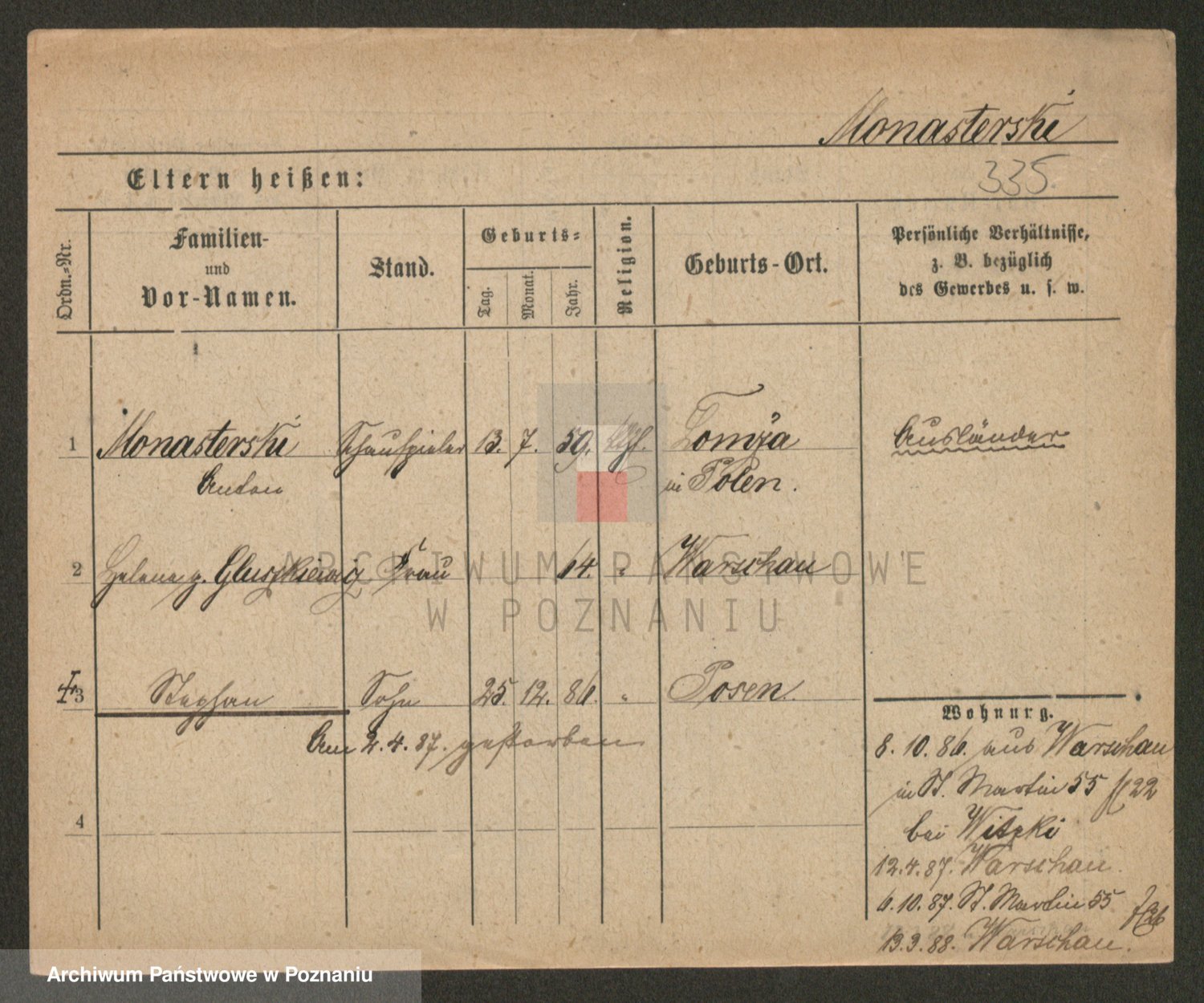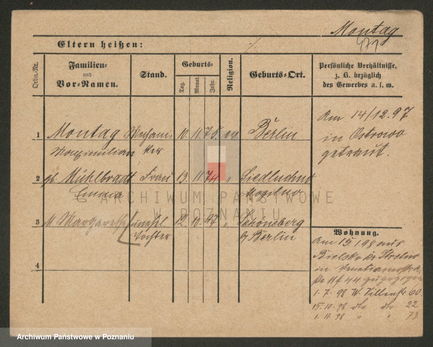 Podgląd karty osobowej dostępny jest po kliknięciu na nazwisko lub ikonkę karty. Można dokonywać powiększenia (ikony na górze) lub przechodzić między kolejnymi skanami (strzałki po bokach).