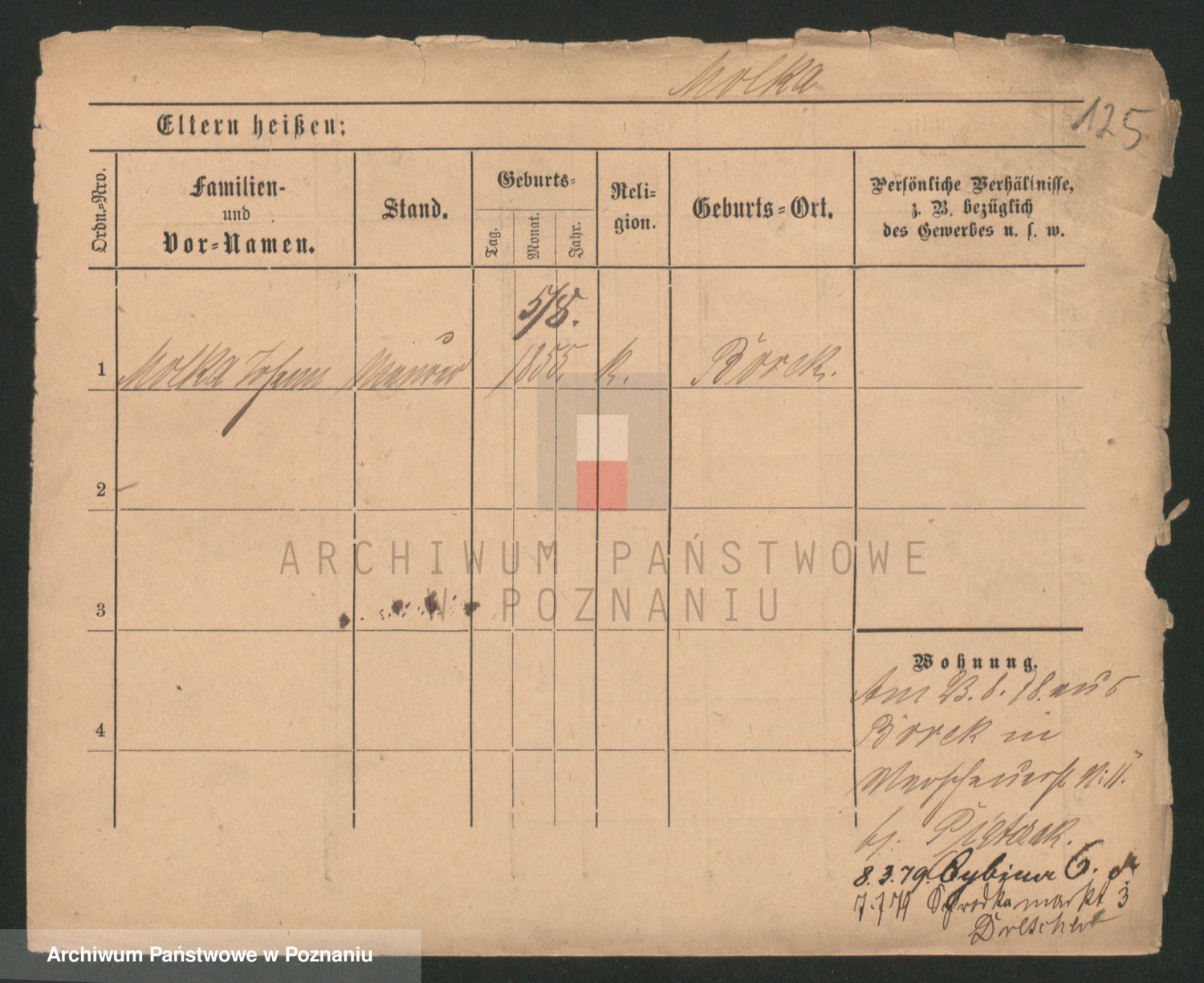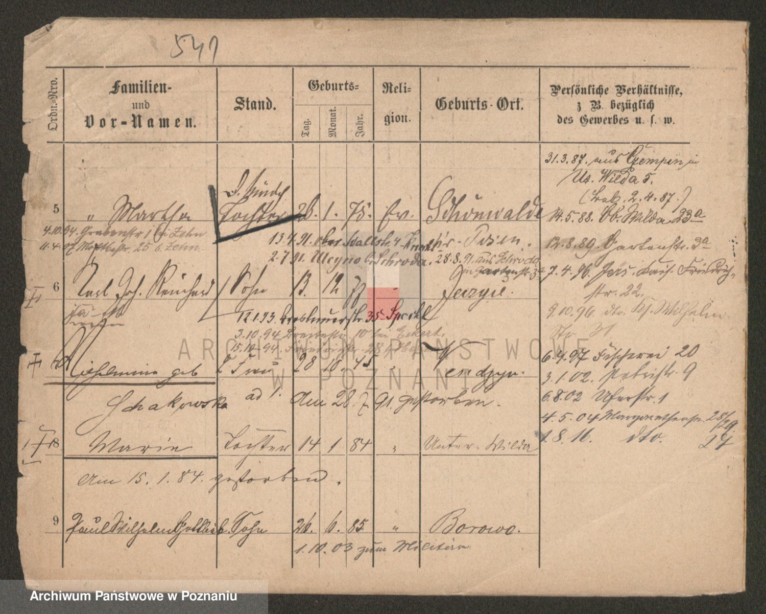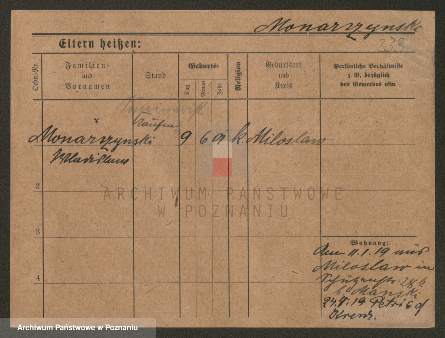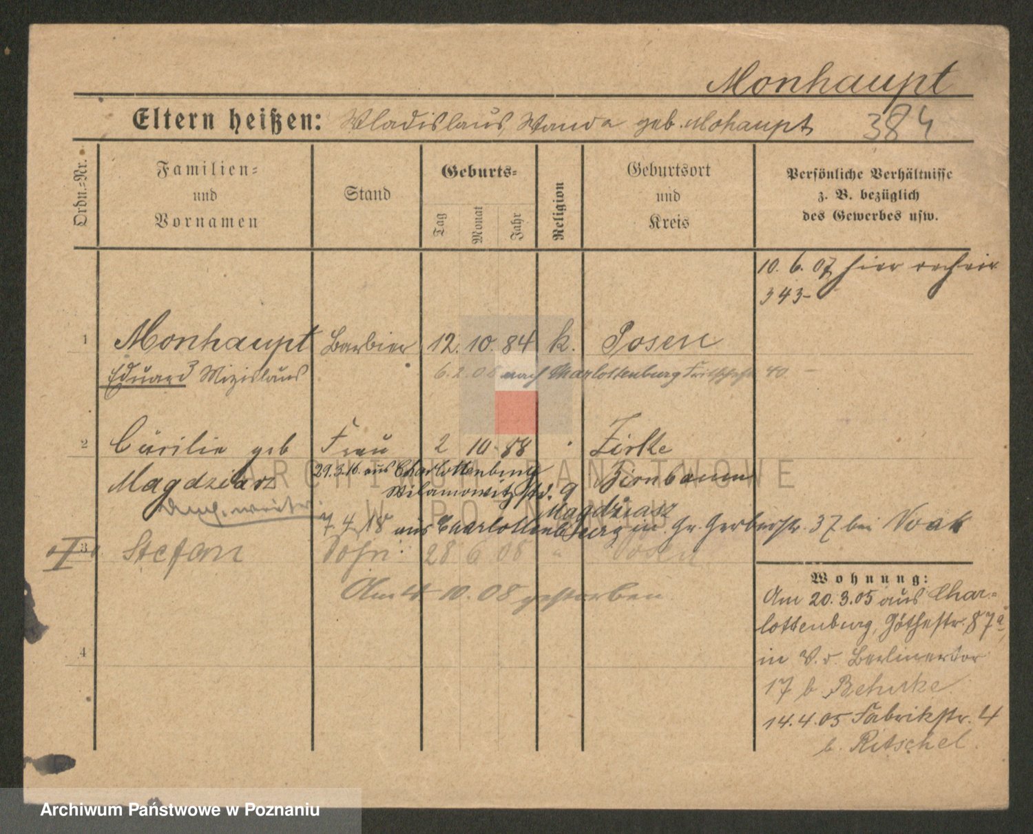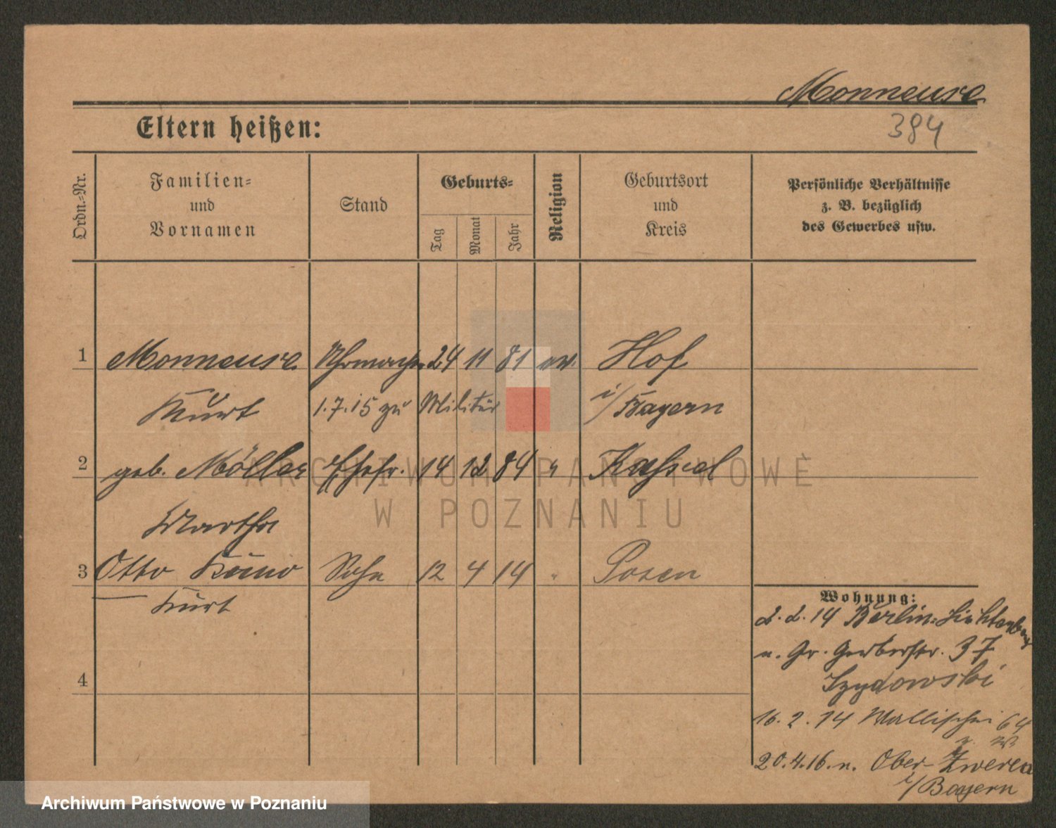Podgląd karty osobowej dostępny jest po kliknięciu na nazwisko lub ikonkę karty. Można dokonywać powiększenia (ikony na górze) lub przechodzić między kolejnymi skanami (strzałki po bokach).