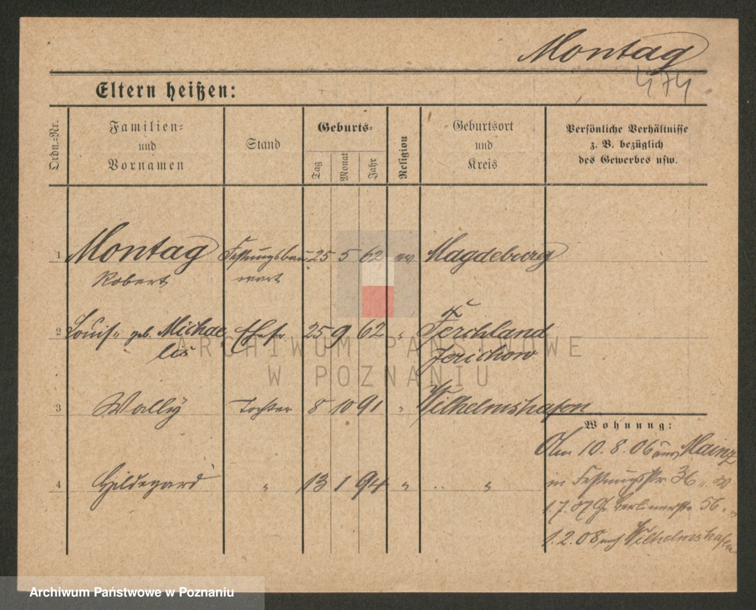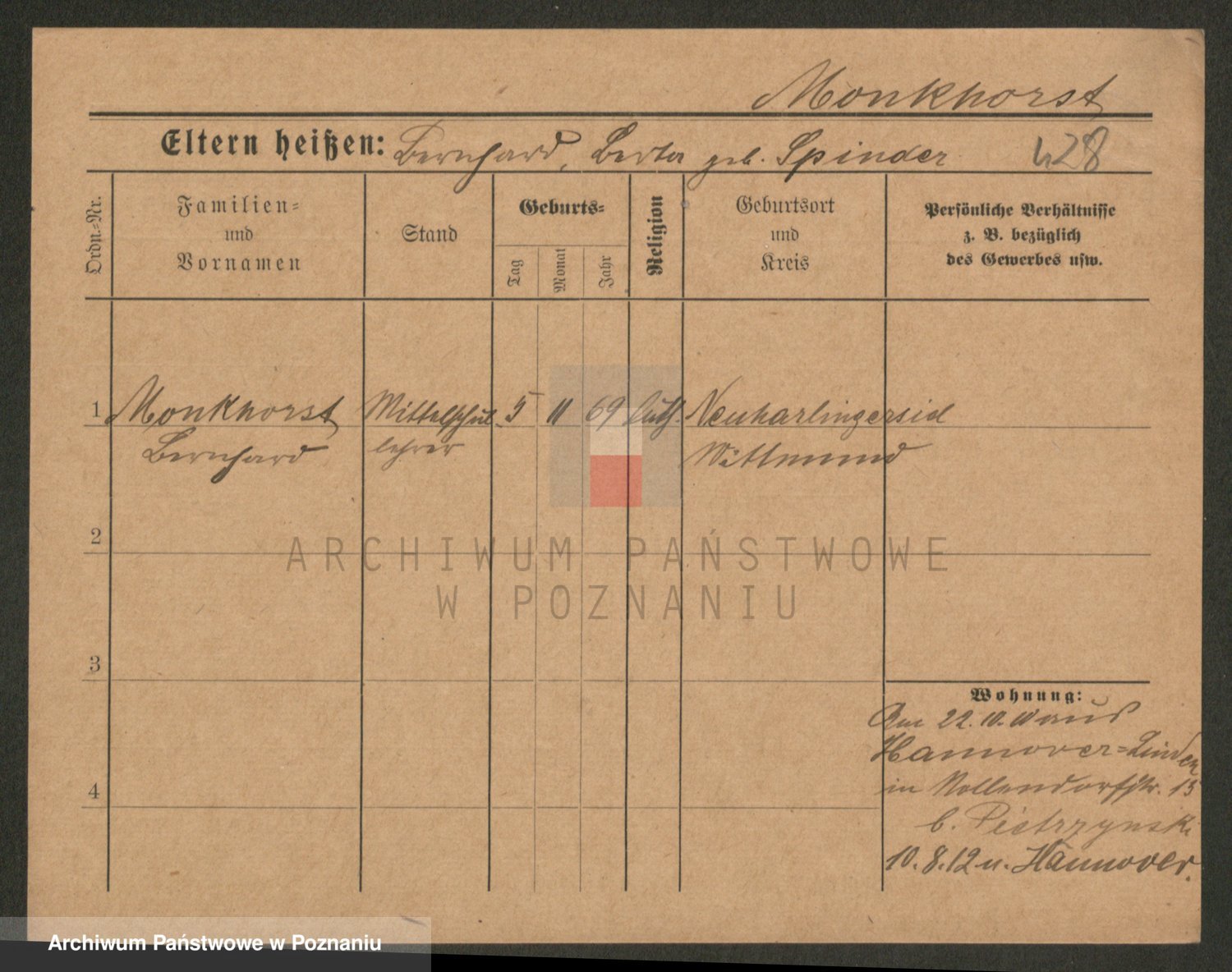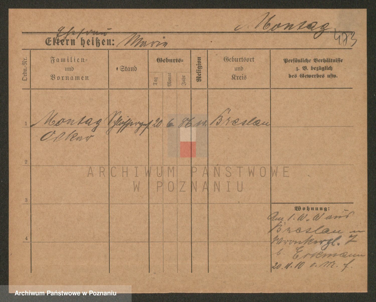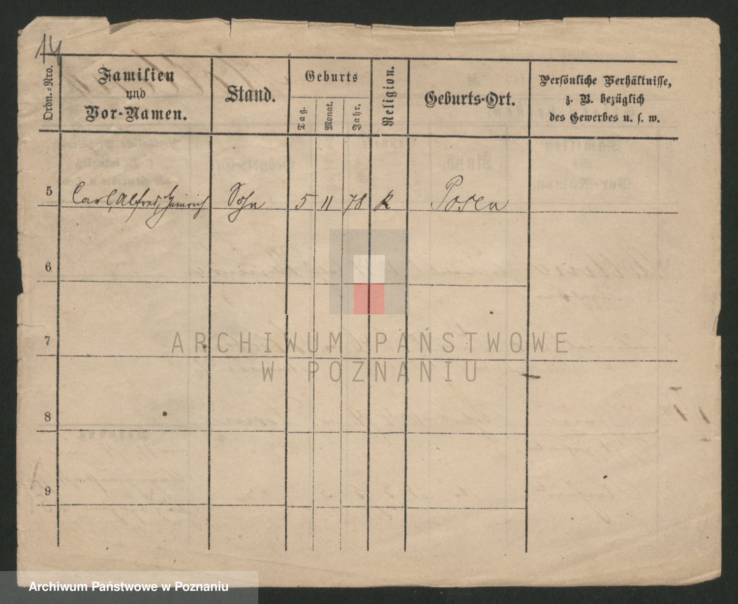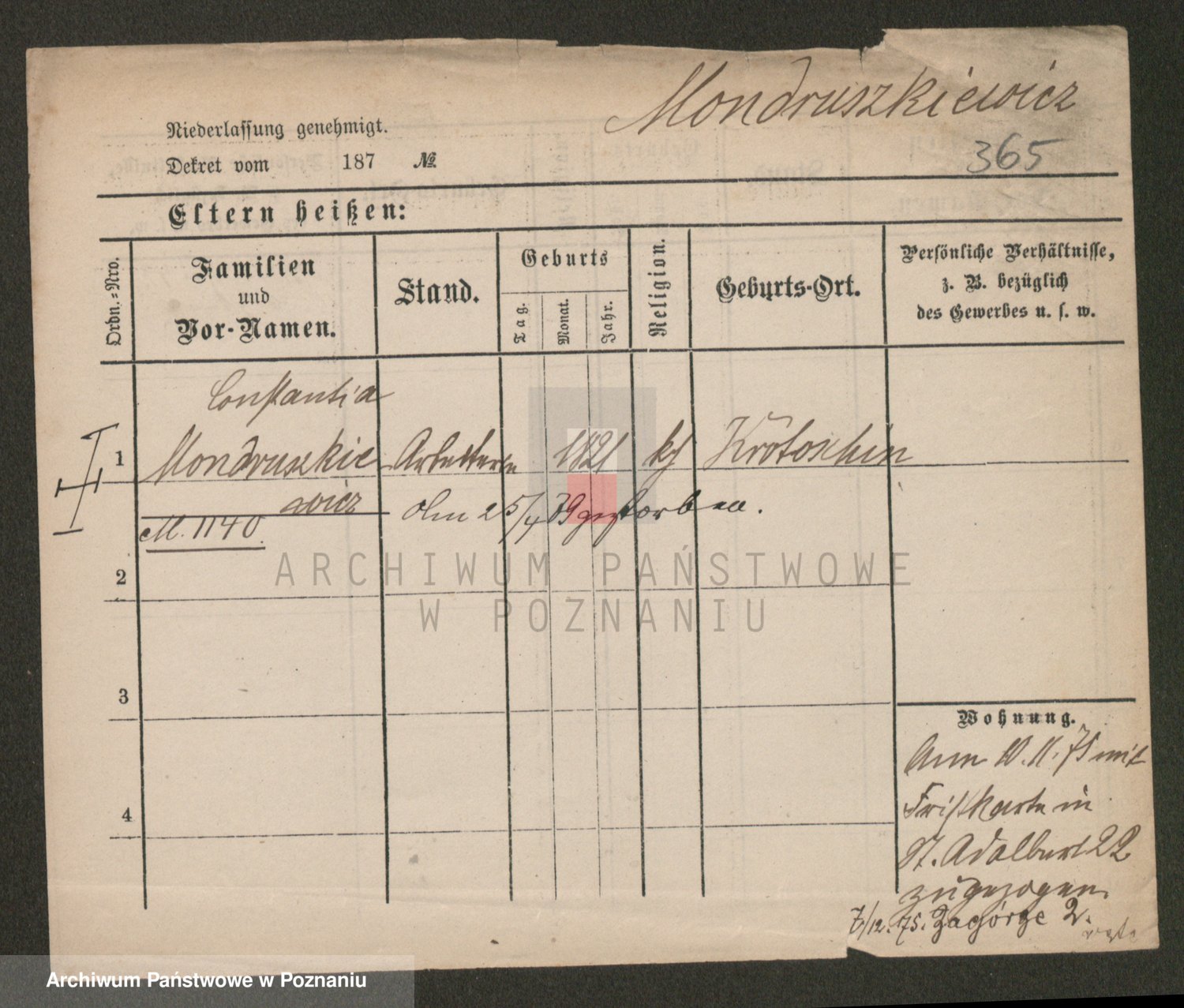 Podgląd karty osobowej dostępny jest po kliknięciu na nazwisko lub ikonkę karty. Można dokonywać powiększenia (ikony na górze) lub przechodzić między kolejnymi skanami (strzałki po bokach).