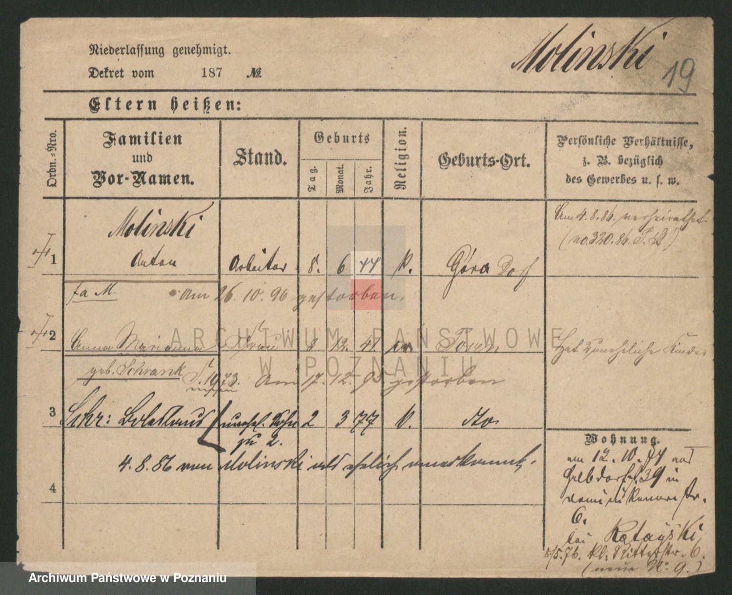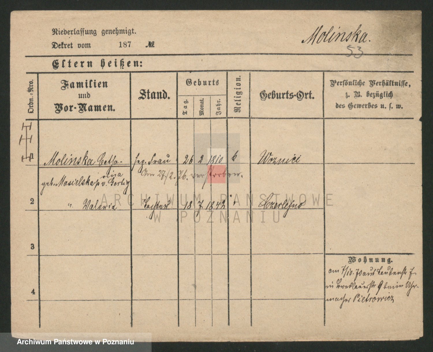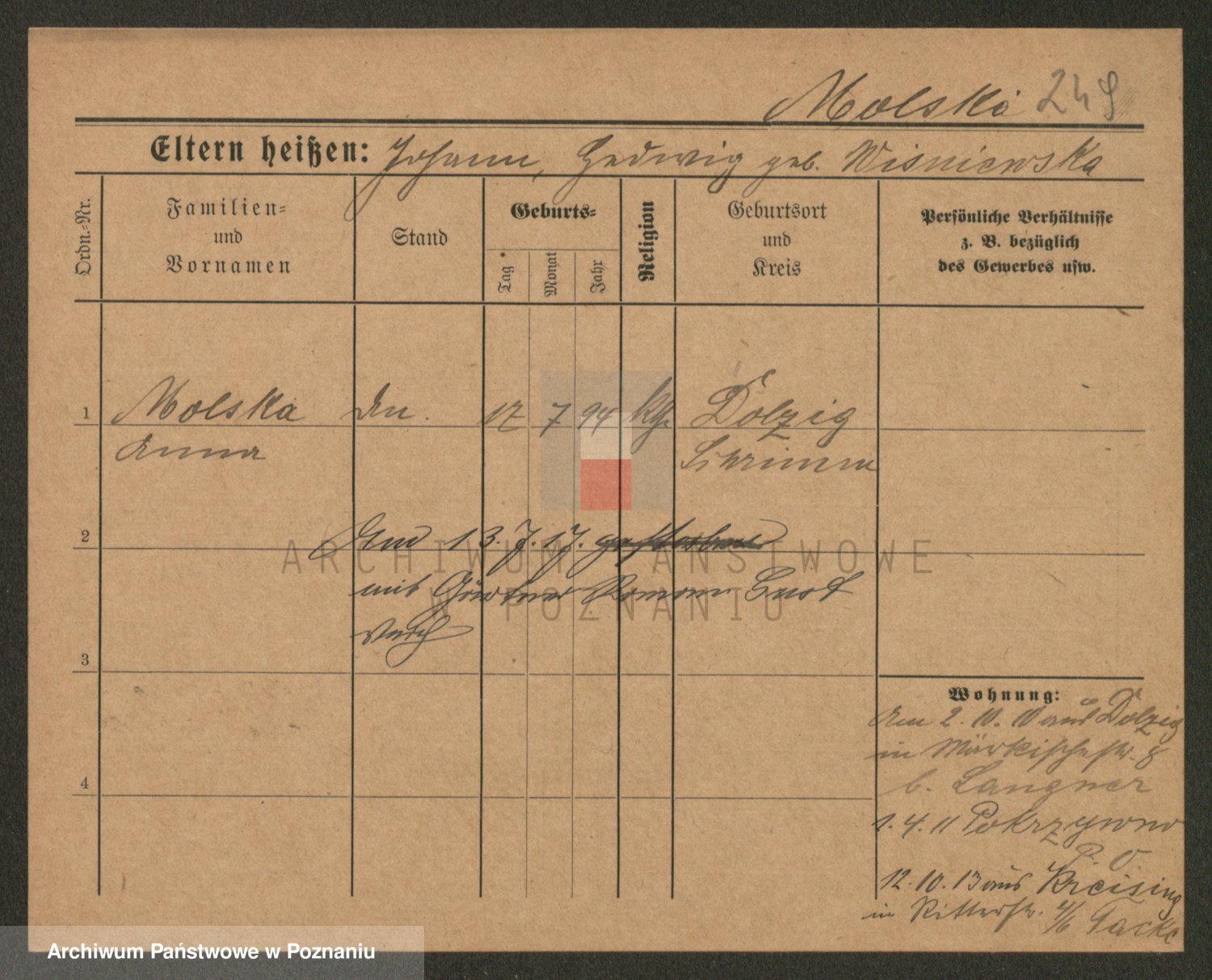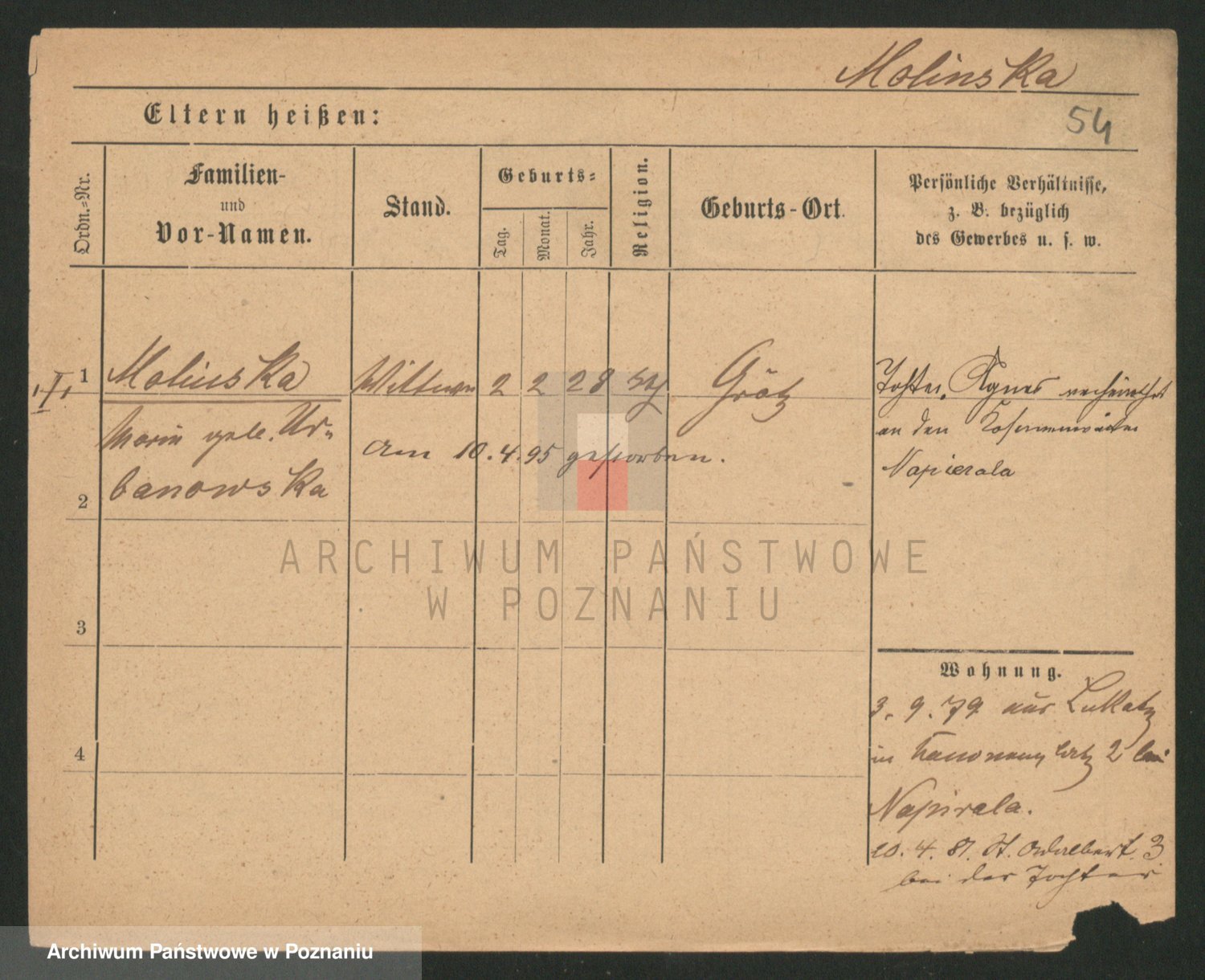 Molinski zd. Schrank, Anna Marianna