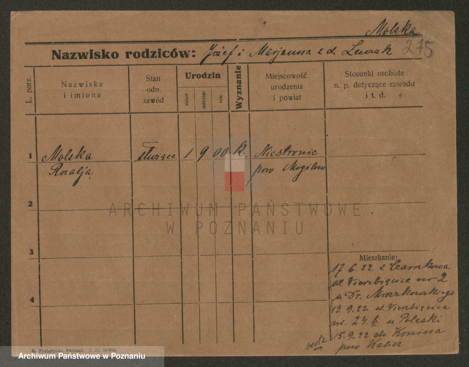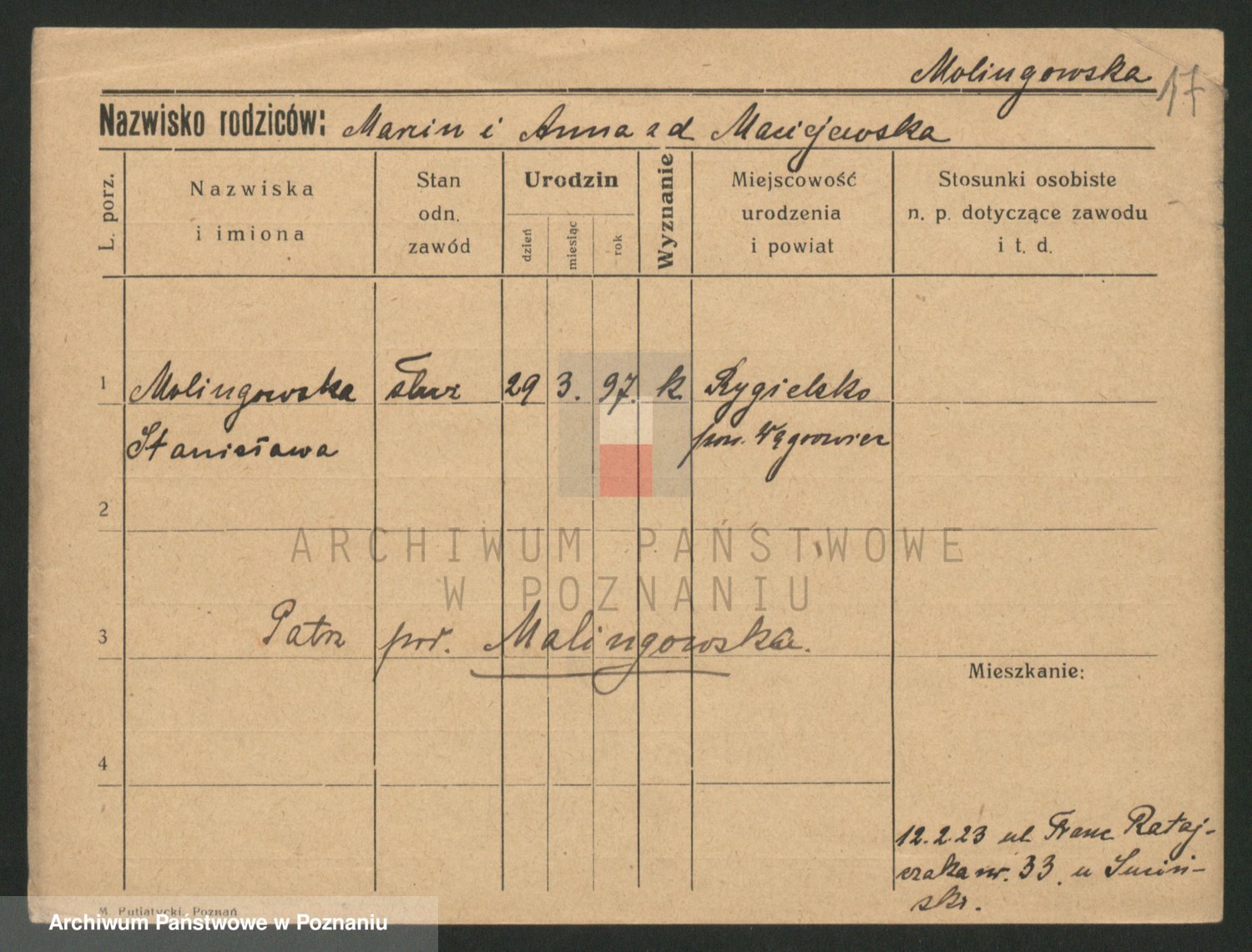 Molinkiewicz zd. Kwiatkowska, Franciszka