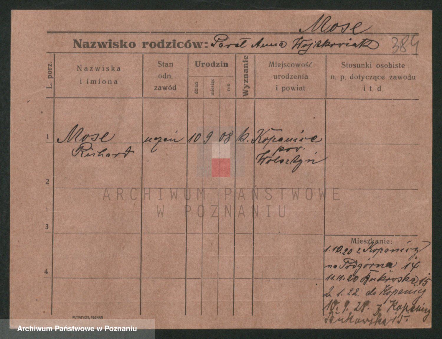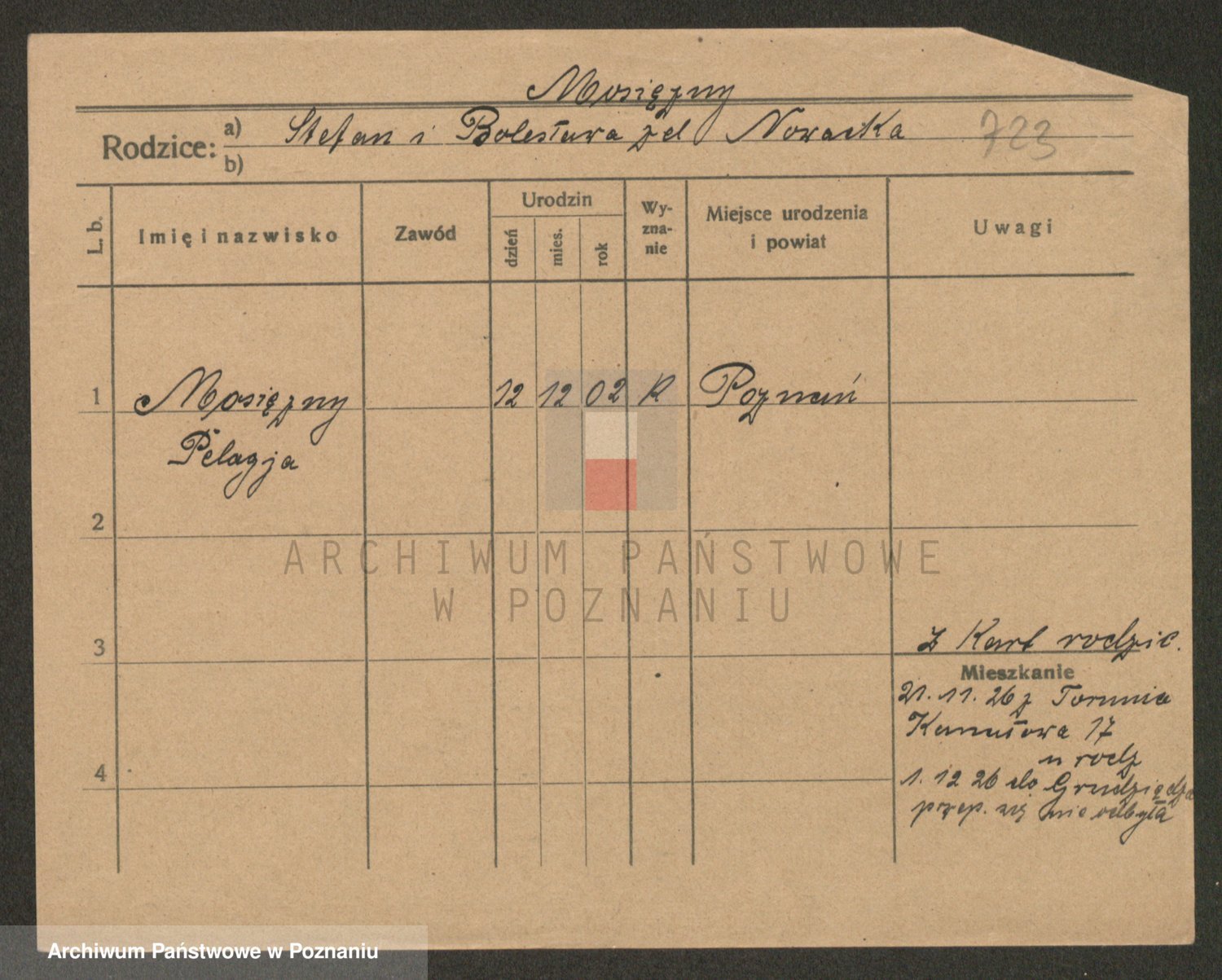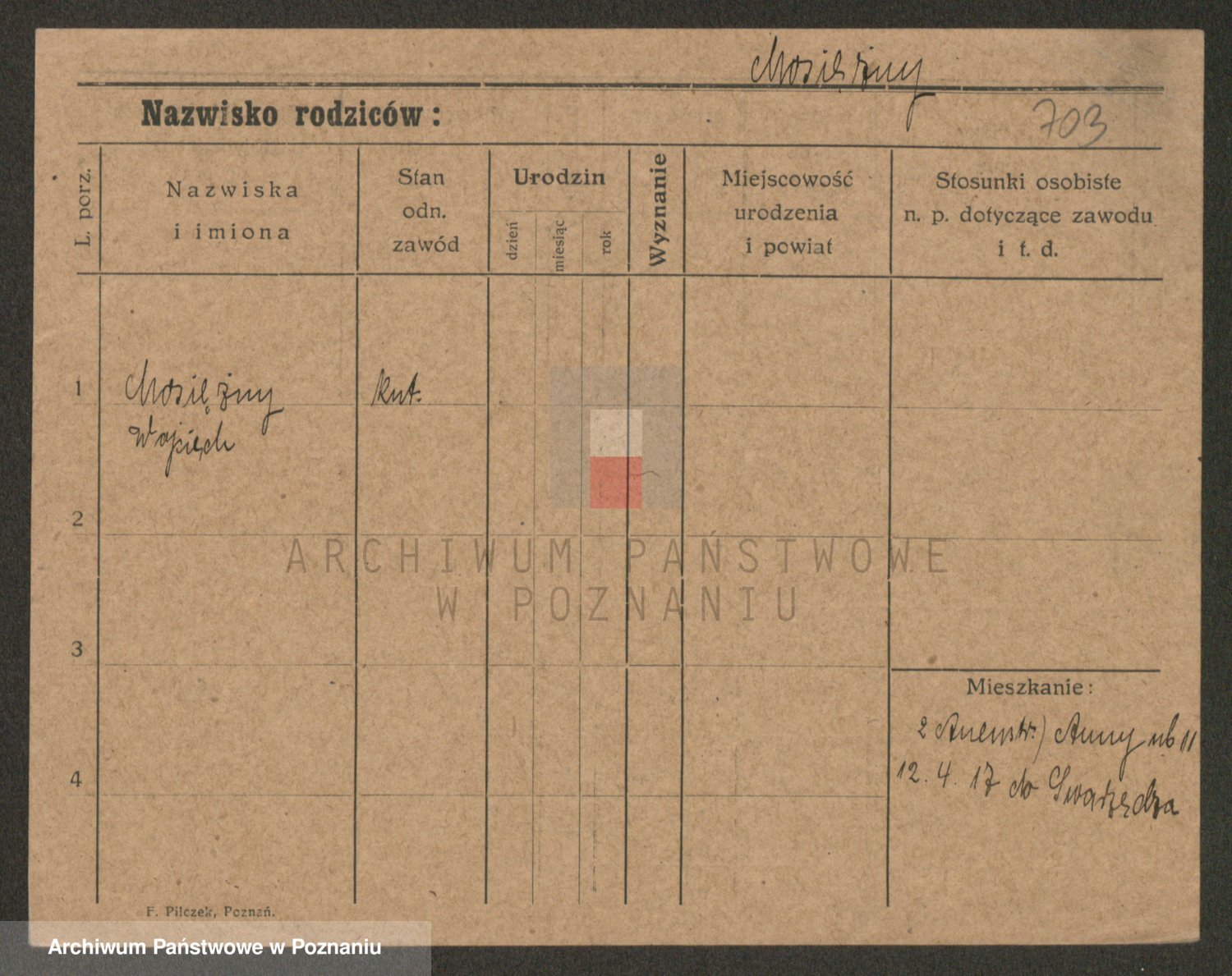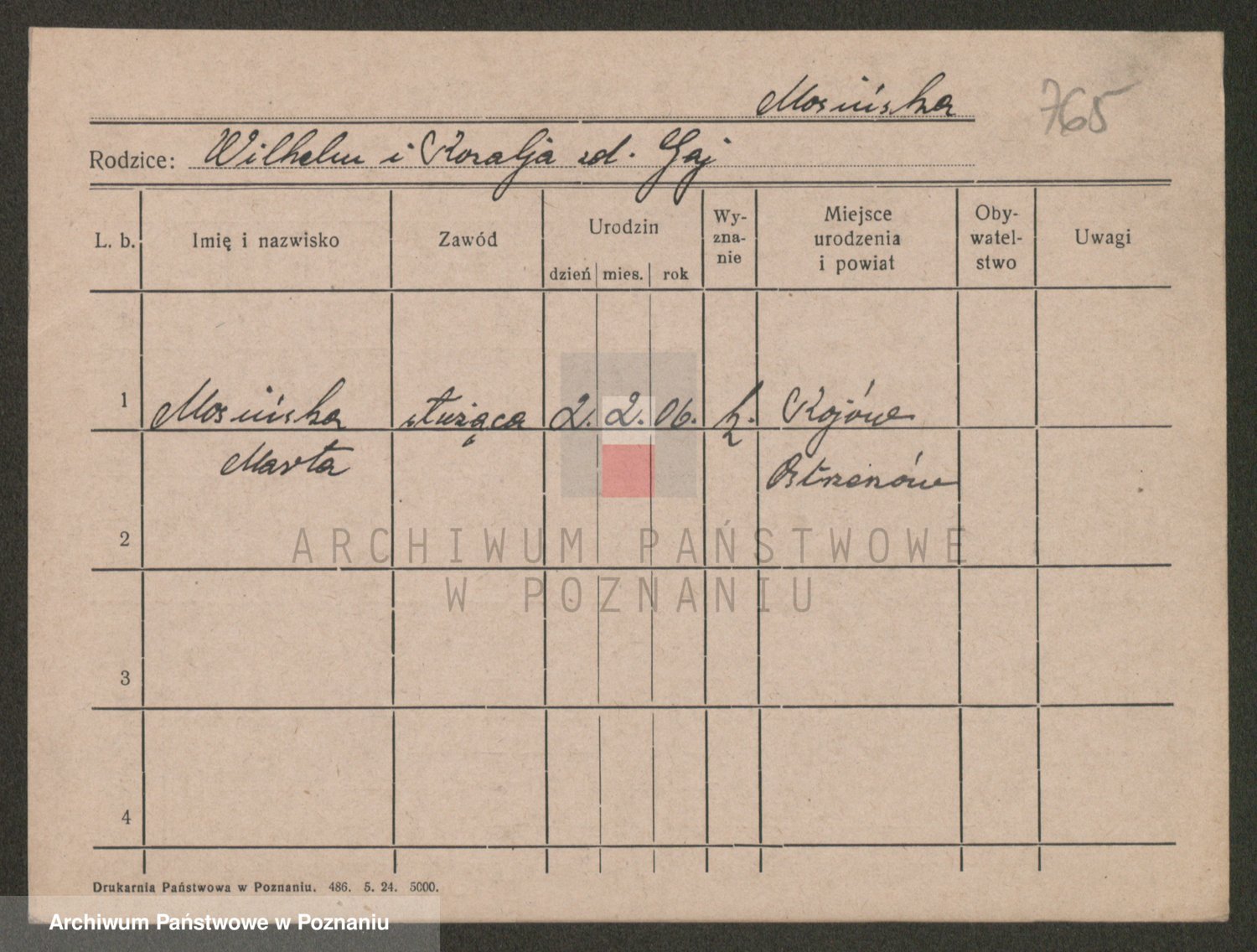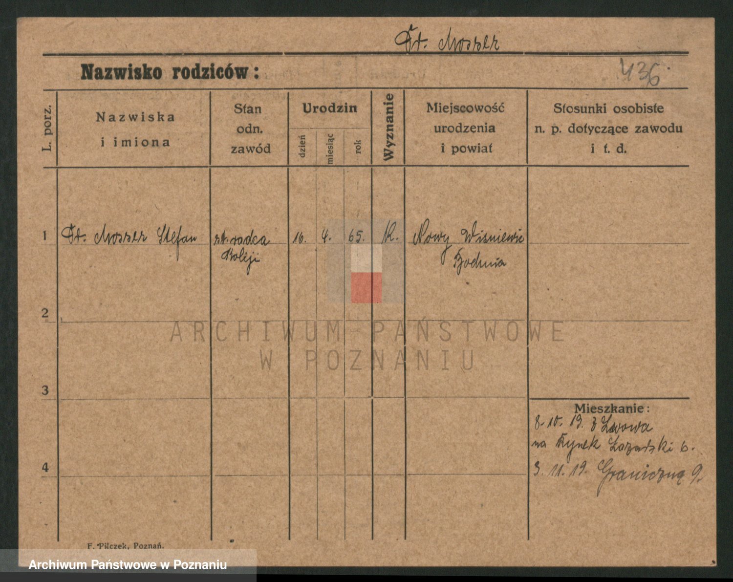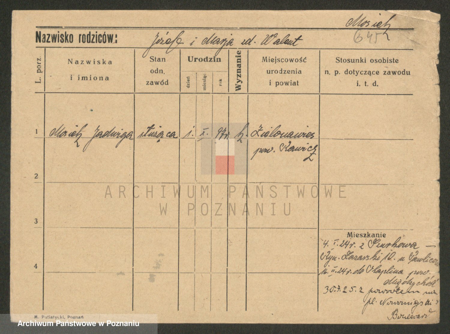 Podgląd karty osobowej dostępny jest po kliknięciu na nazwisko lub ikonkę karty. Można dokonywać powiększenia (ikony na górze) lub przechodzić między kolejnymi skanami (strzałki po bokach).