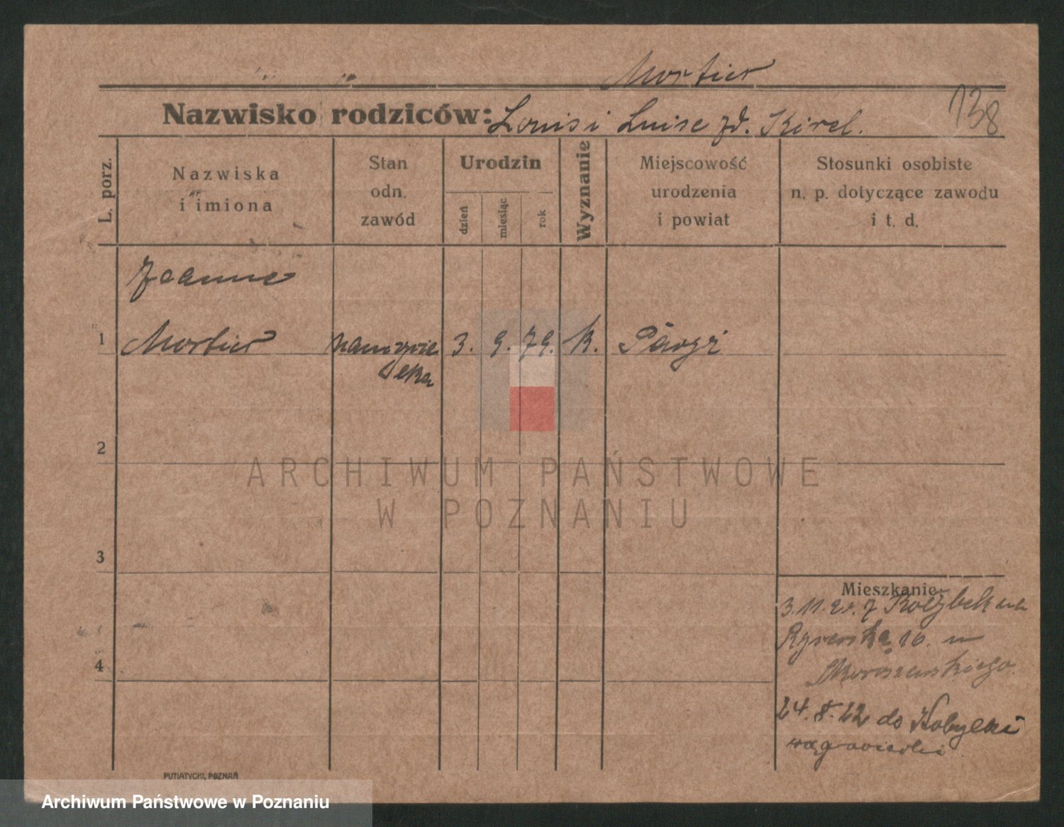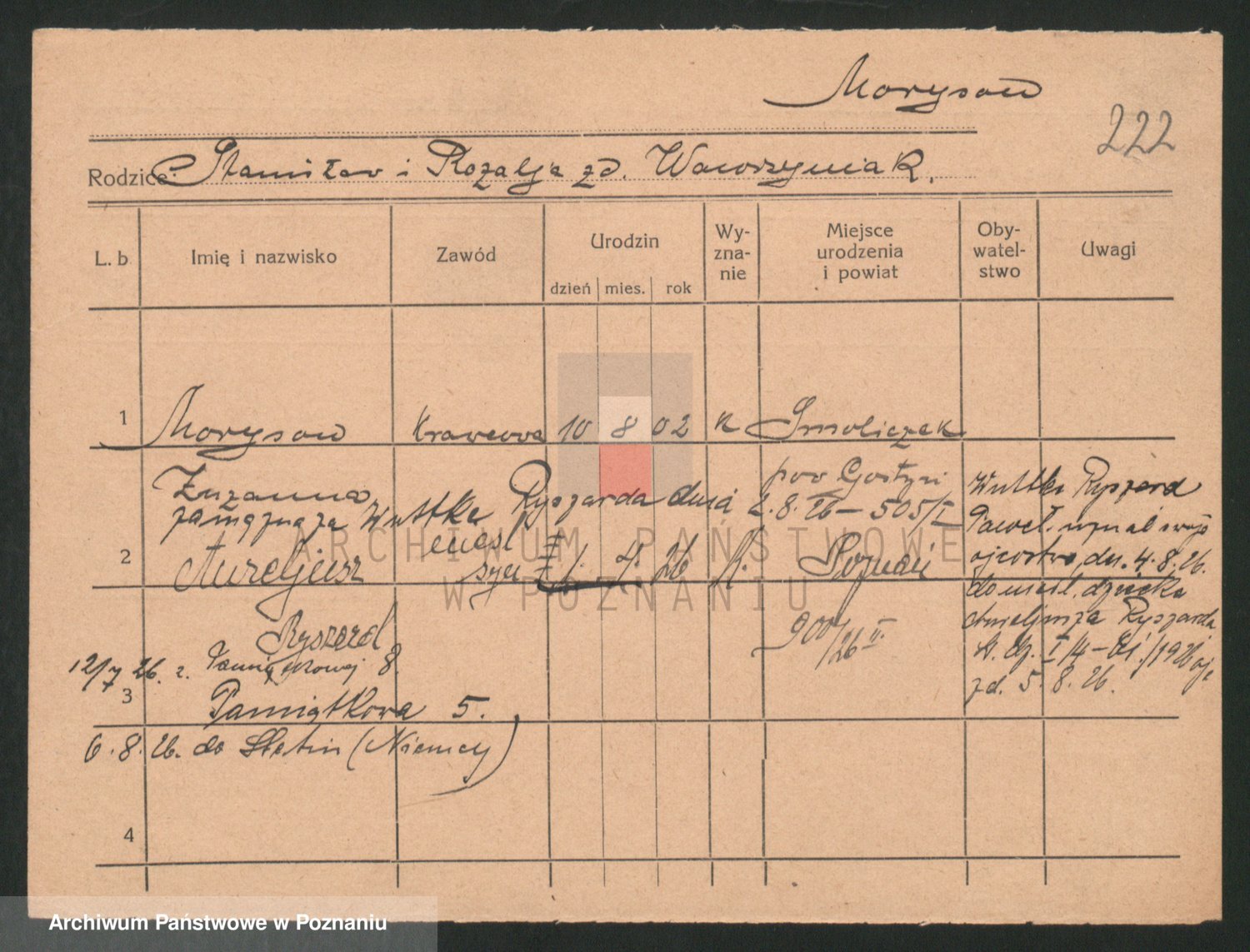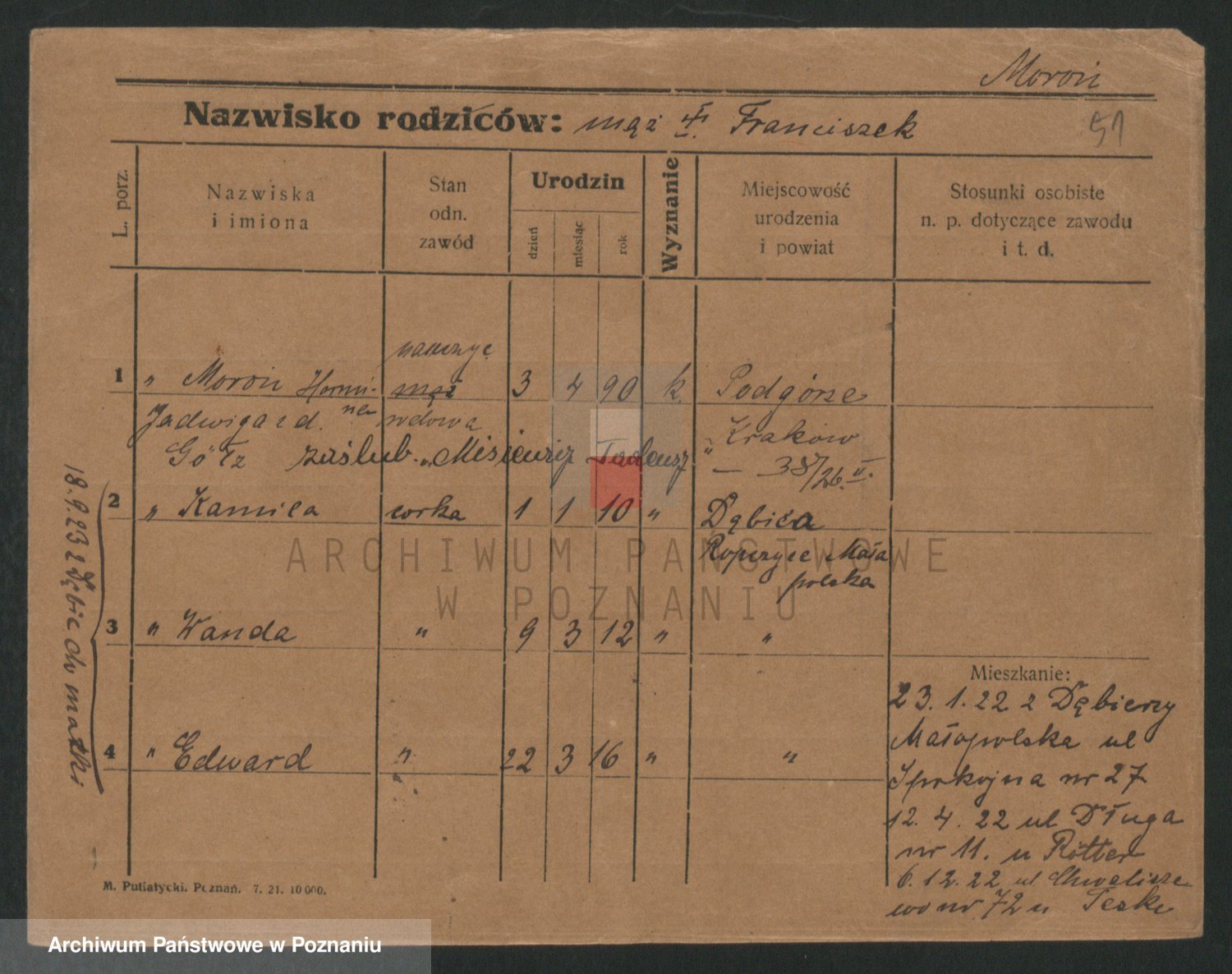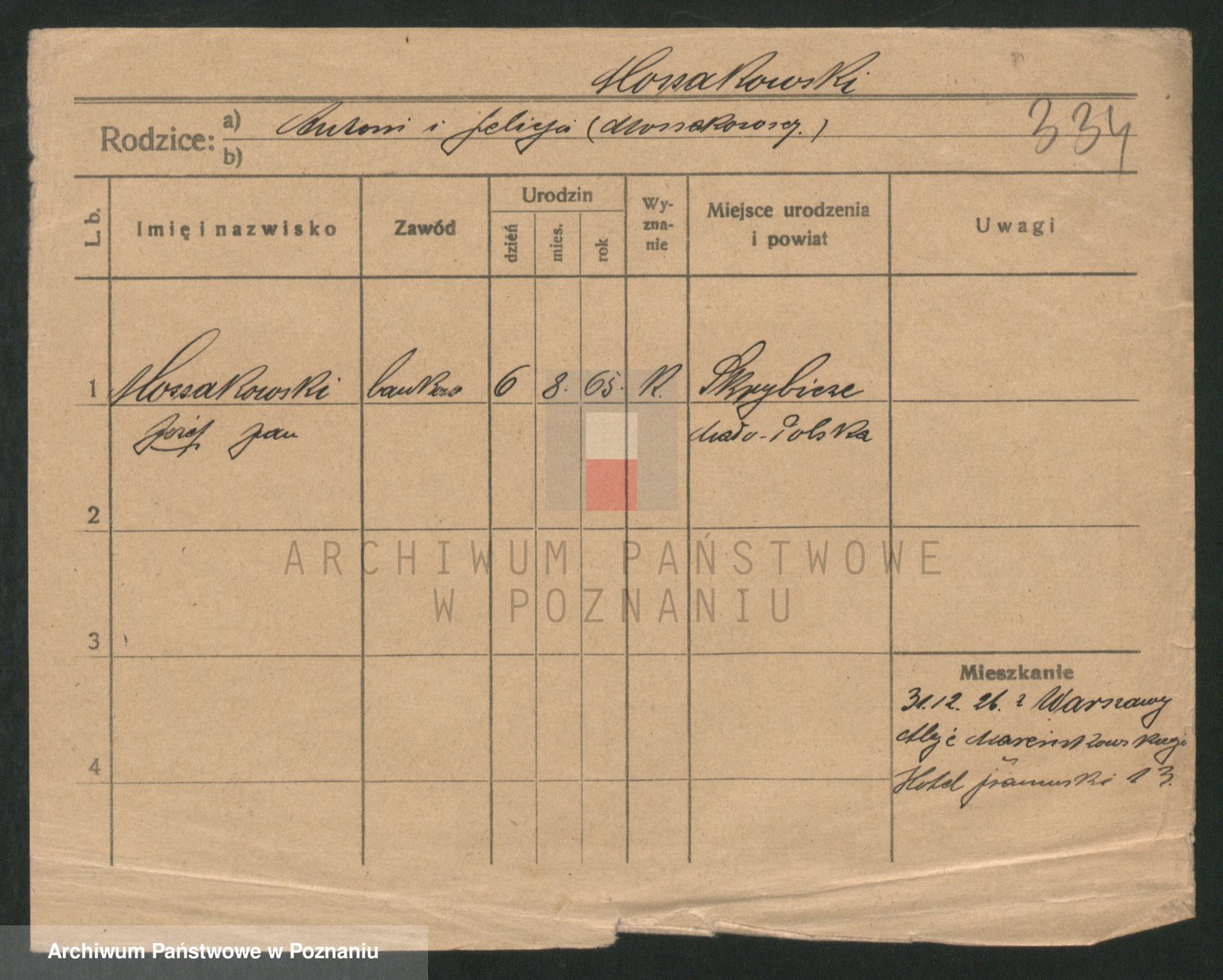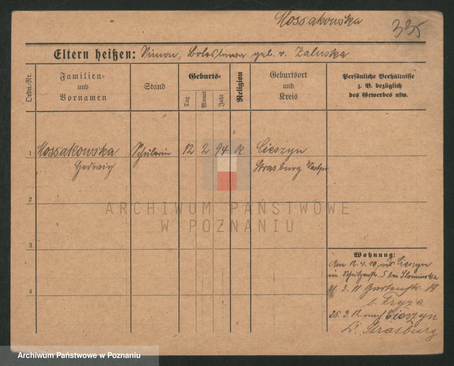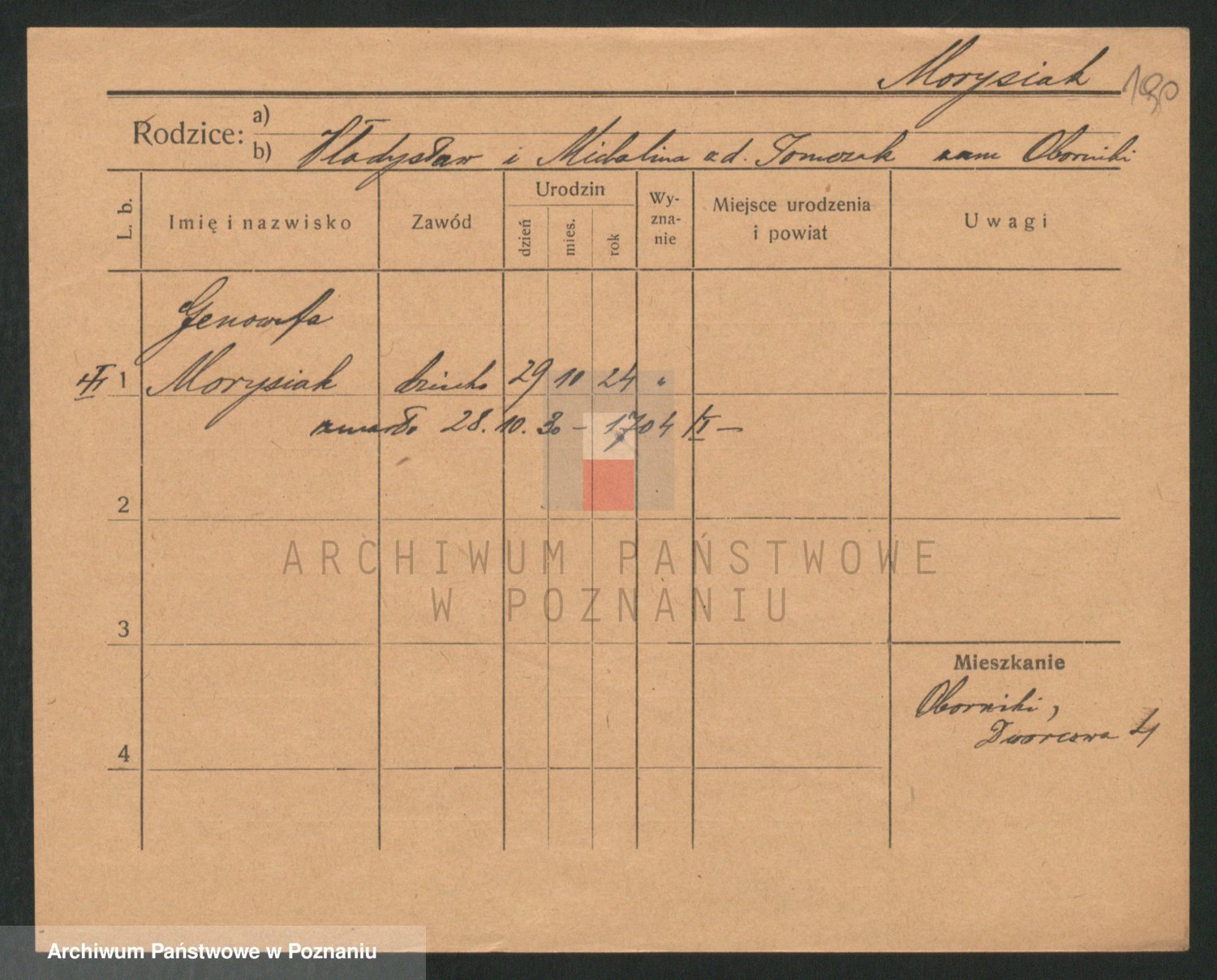Podgląd karty osobowej dostępny jest po kliknięciu na nazwisko lub ikonkę karty. Można dokonywać powiększenia (ikony na górze) lub przechodzić między kolejnymi skanami (strzałki po bokach).