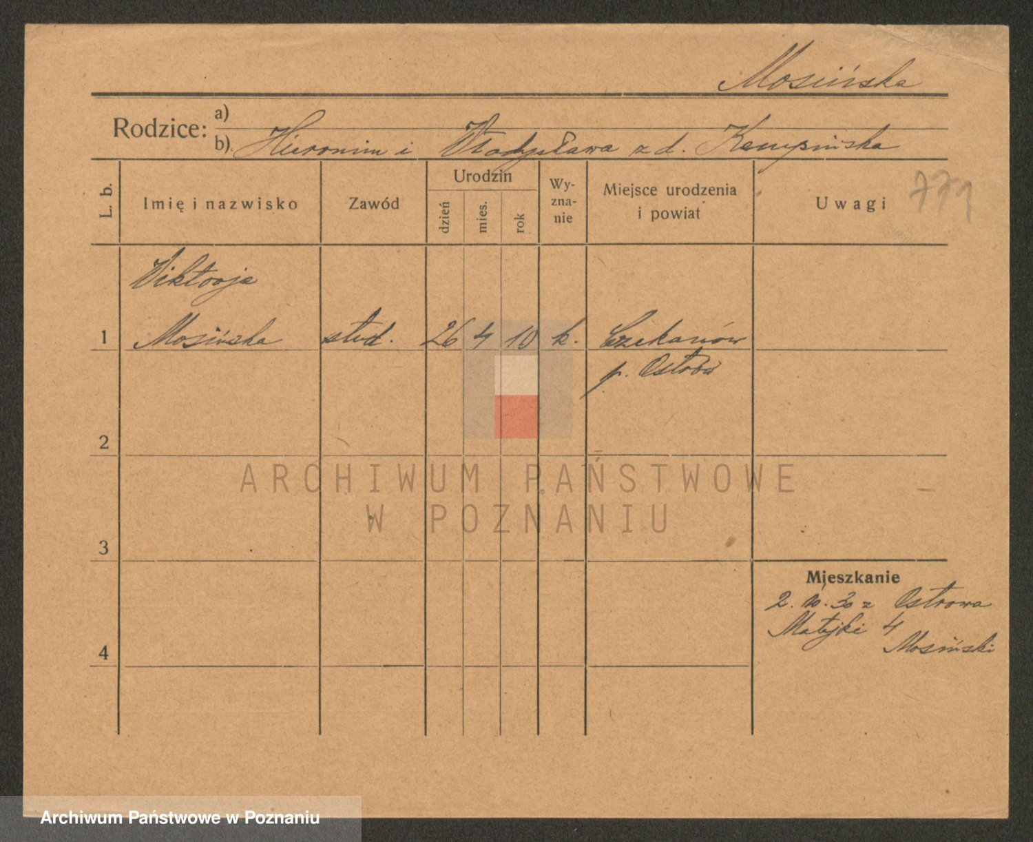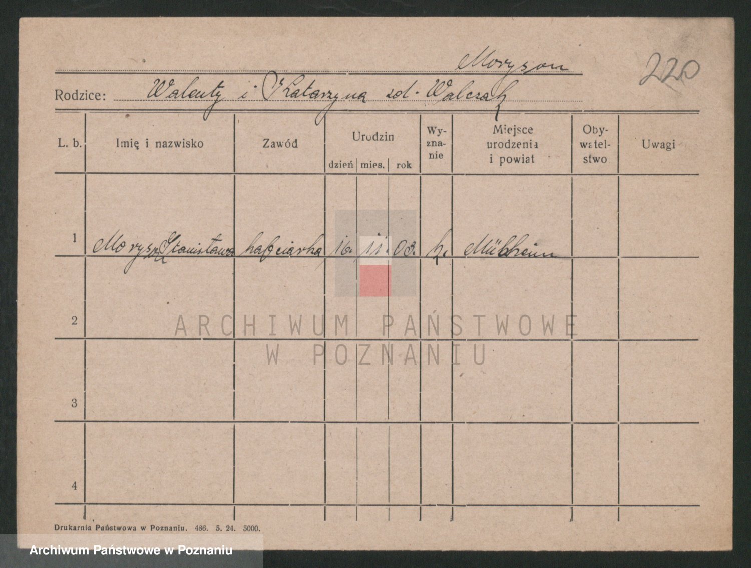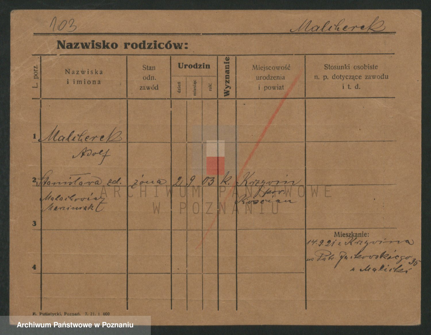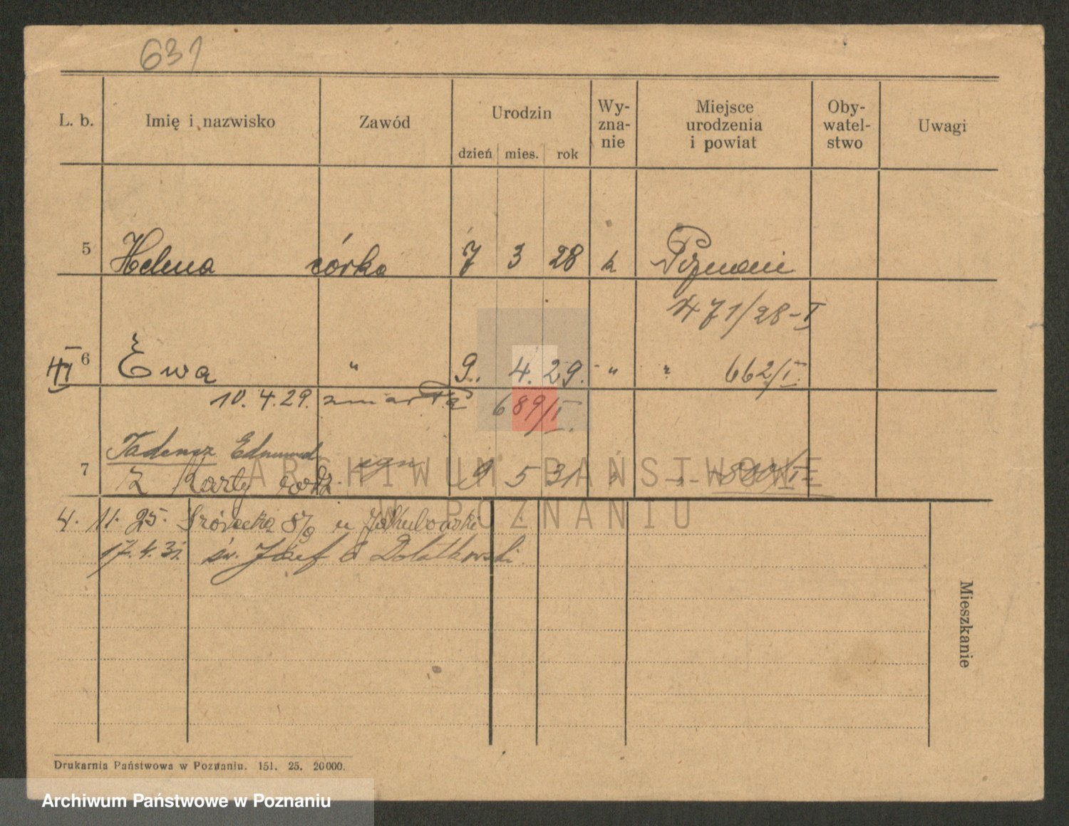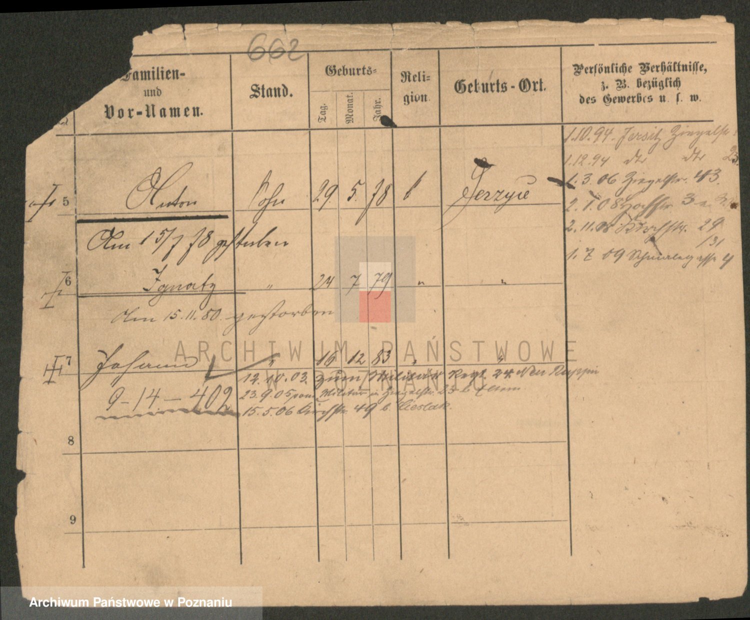 Podgląd karty osobowej dostępny jest po kliknięciu na nazwisko lub ikonkę karty. Można dokonywać powiększenia (ikony na górze) lub przechodzić między kolejnymi skanami (strzałki po bokach).