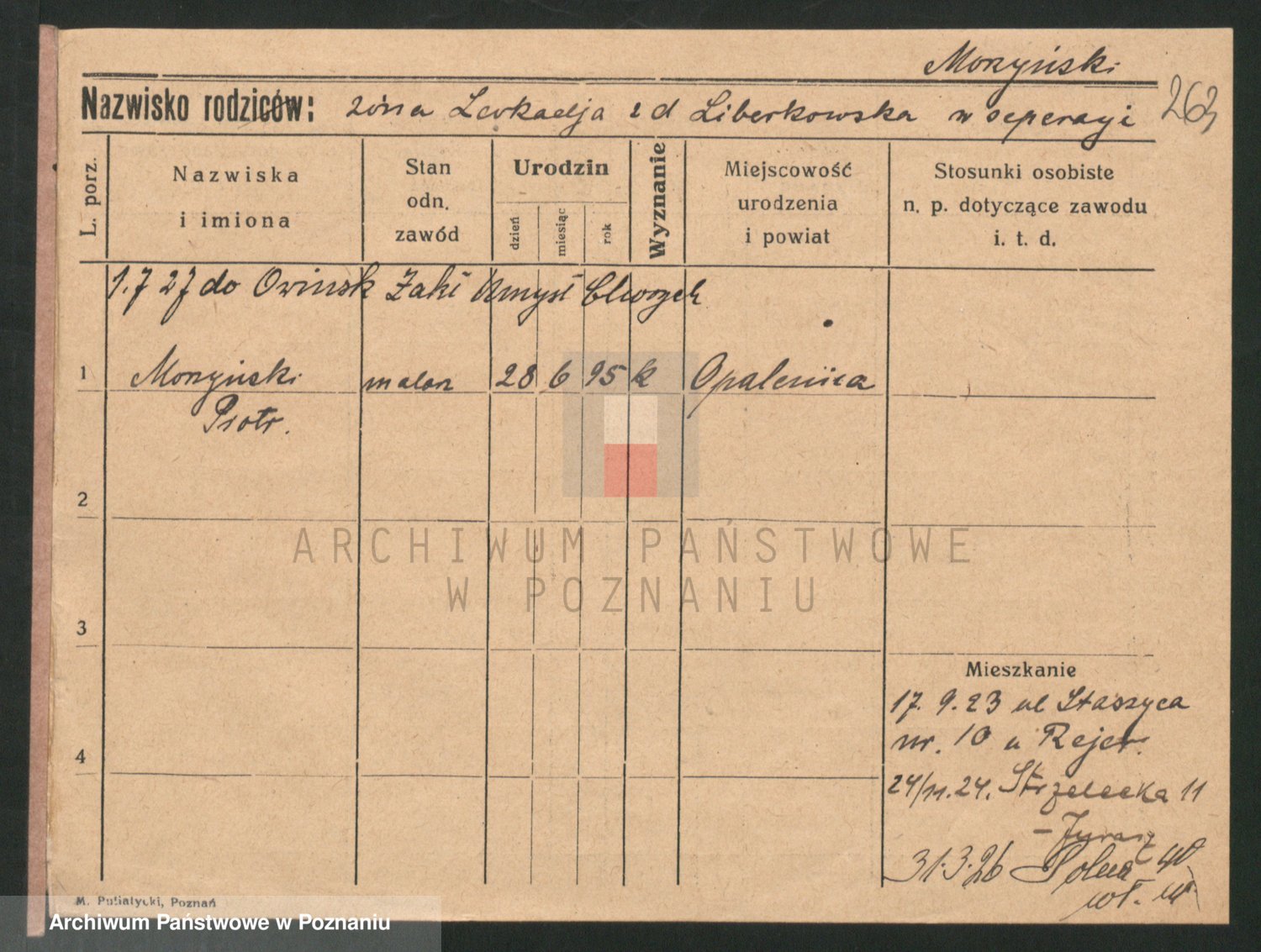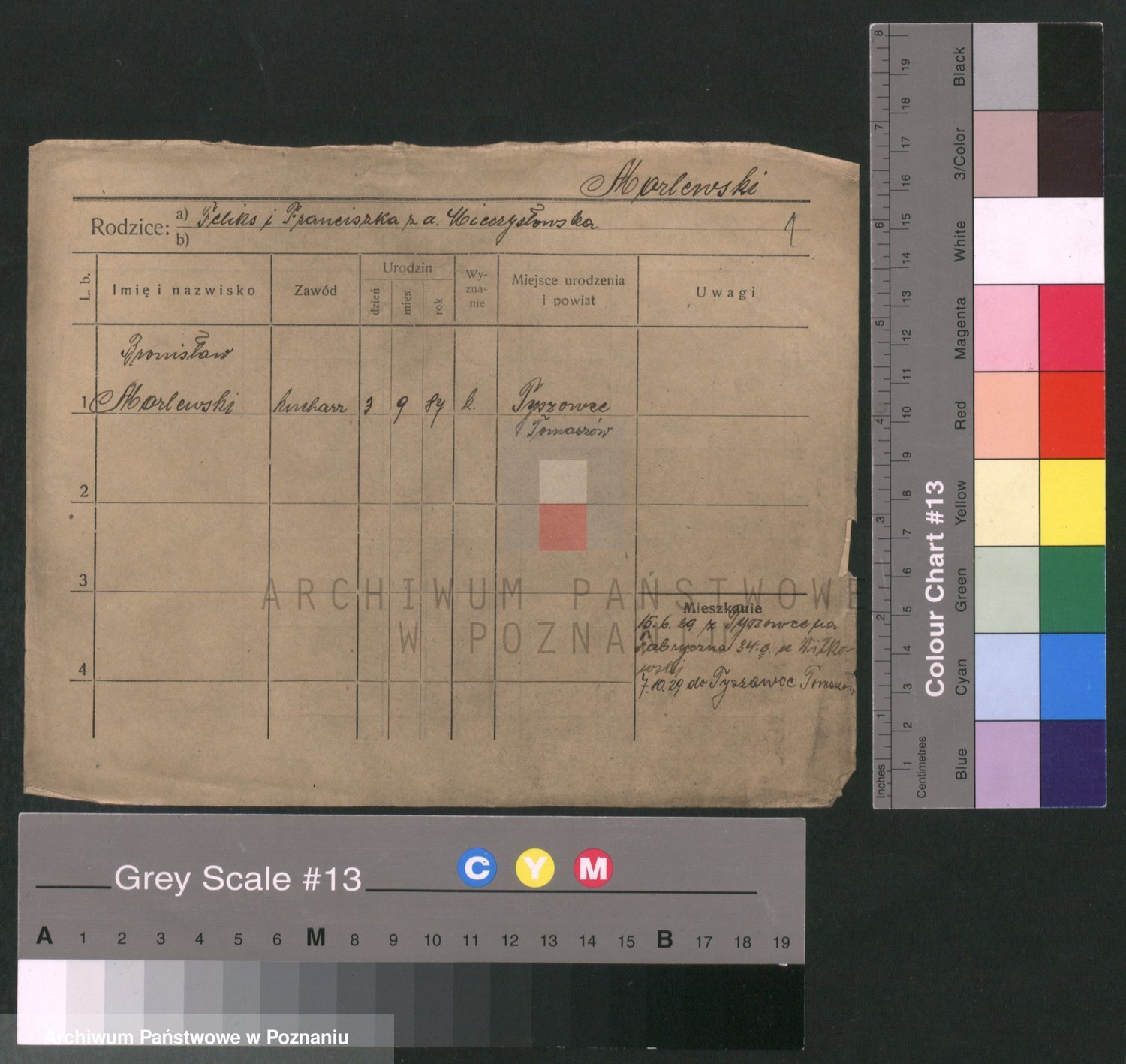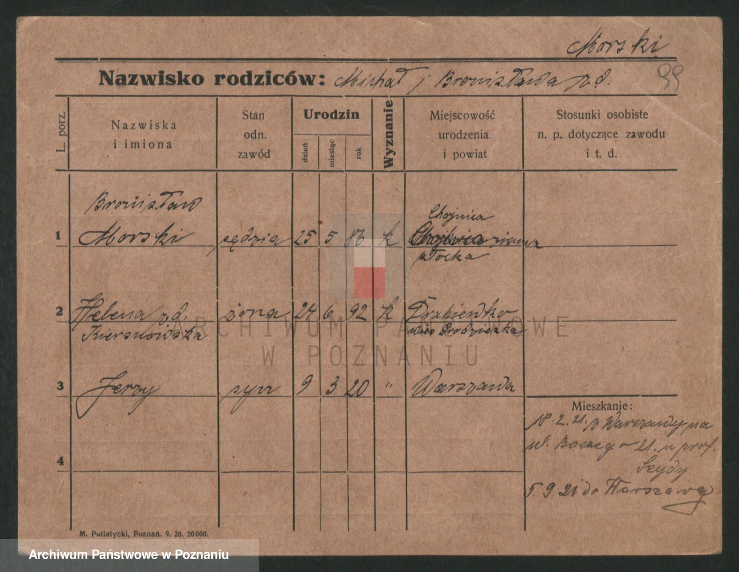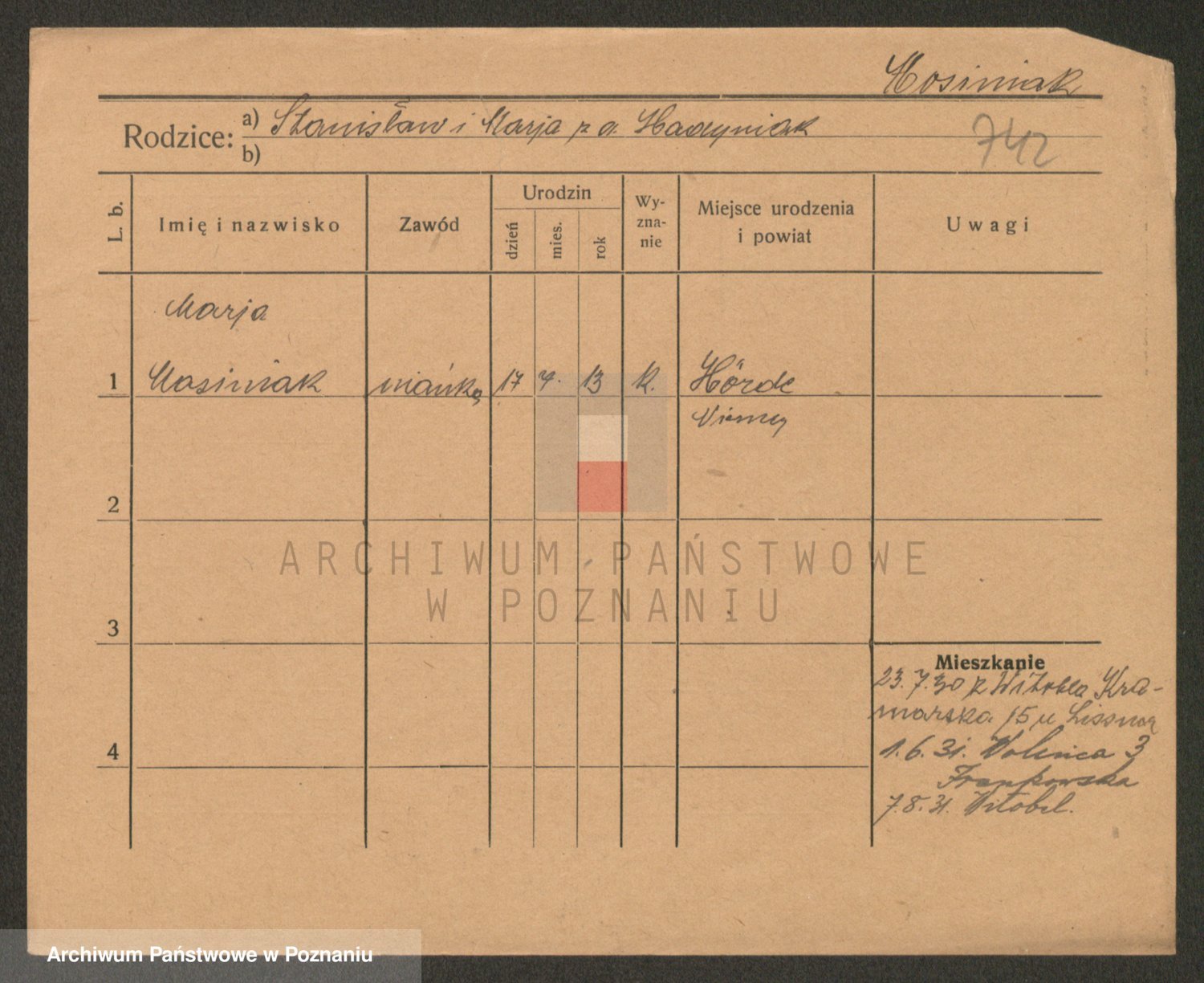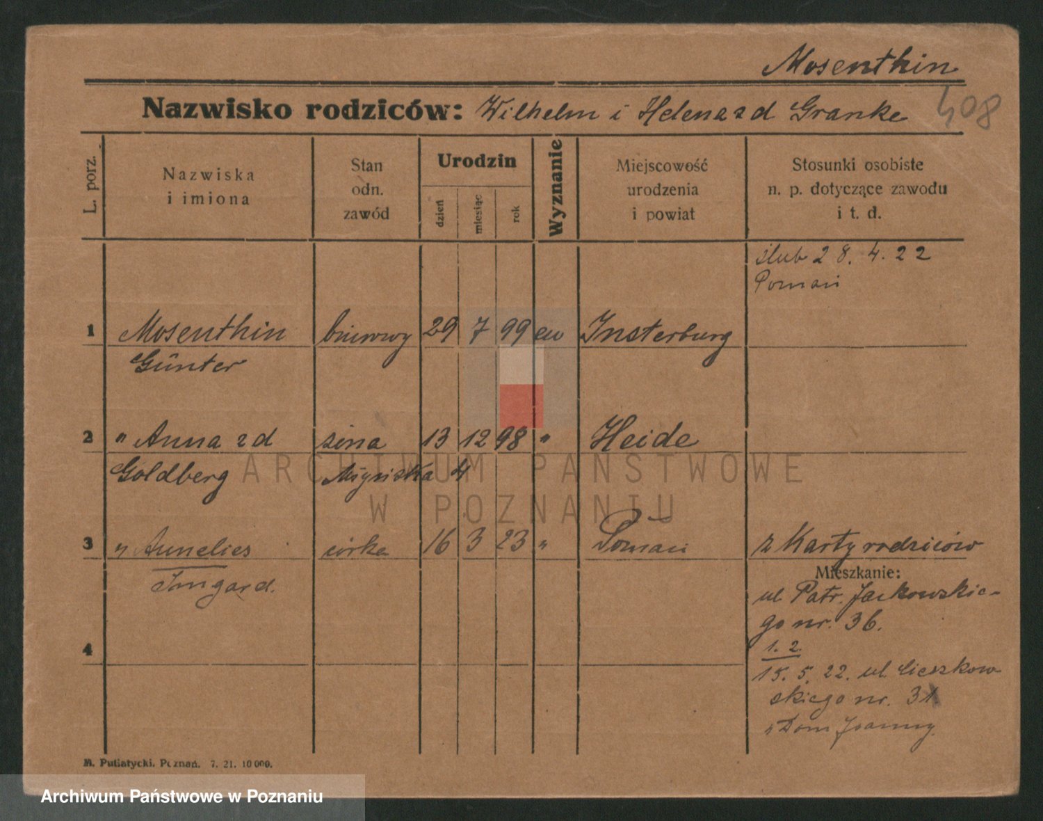 Podgląd karty osobowej dostępny jest po kliknięciu na nazwisko lub ikonkę karty. Można dokonywać powiększenia (ikony na górze) lub przechodzić między kolejnymi skanami (strzałki po bokach).
