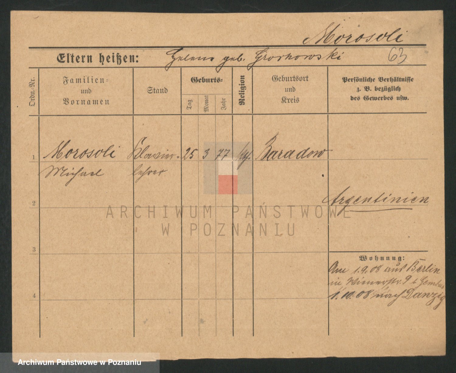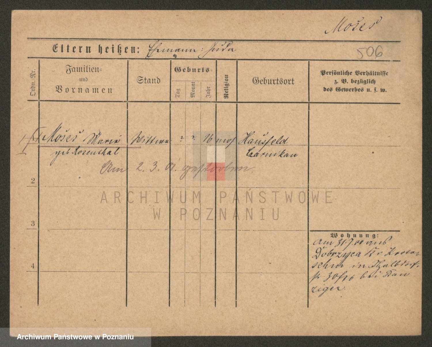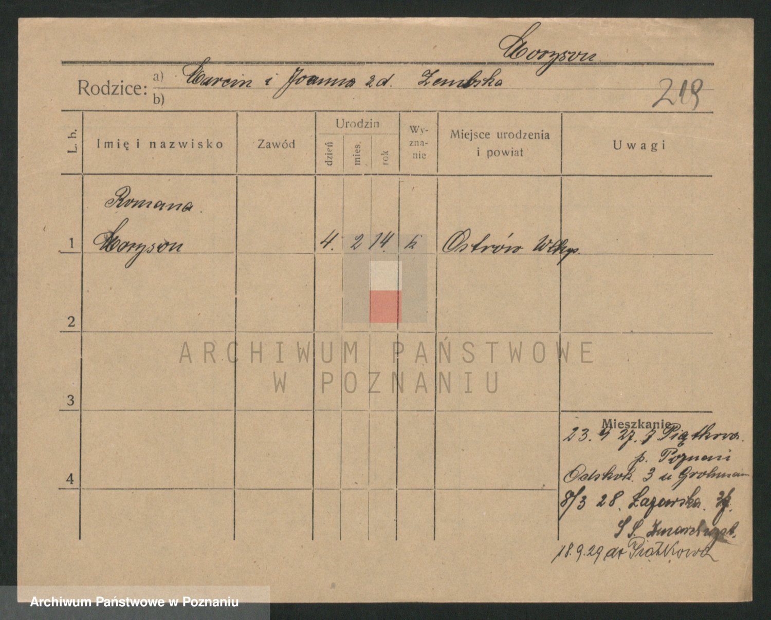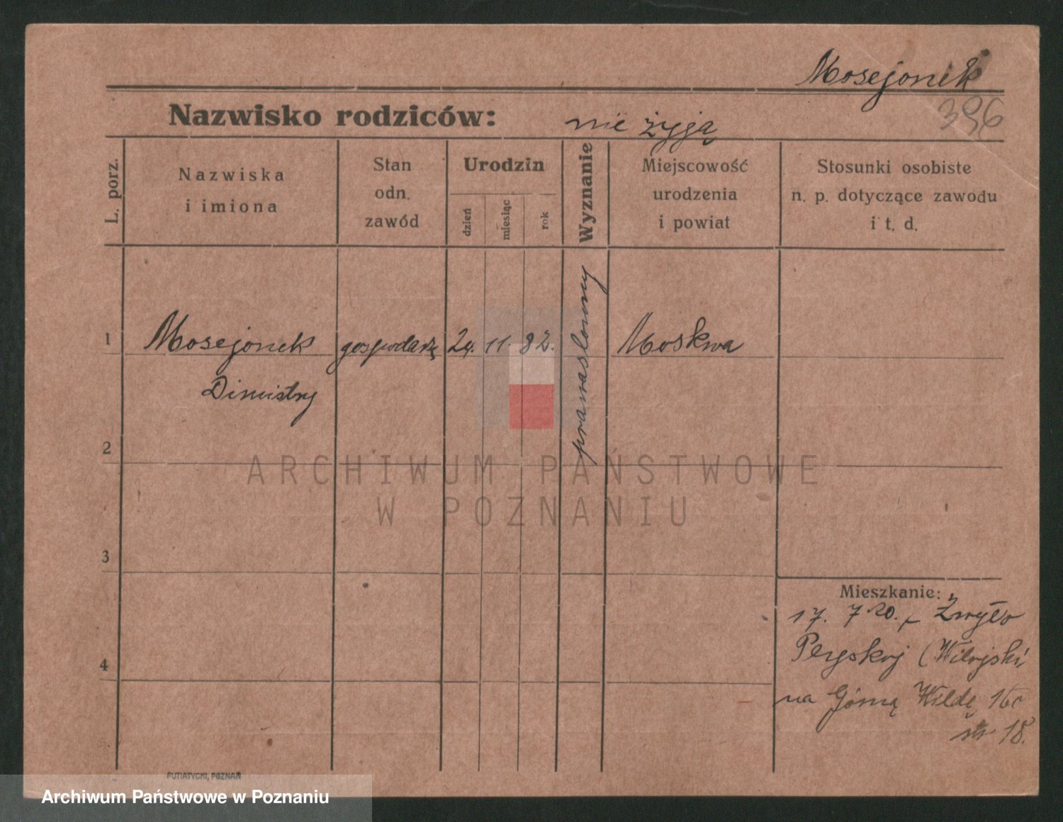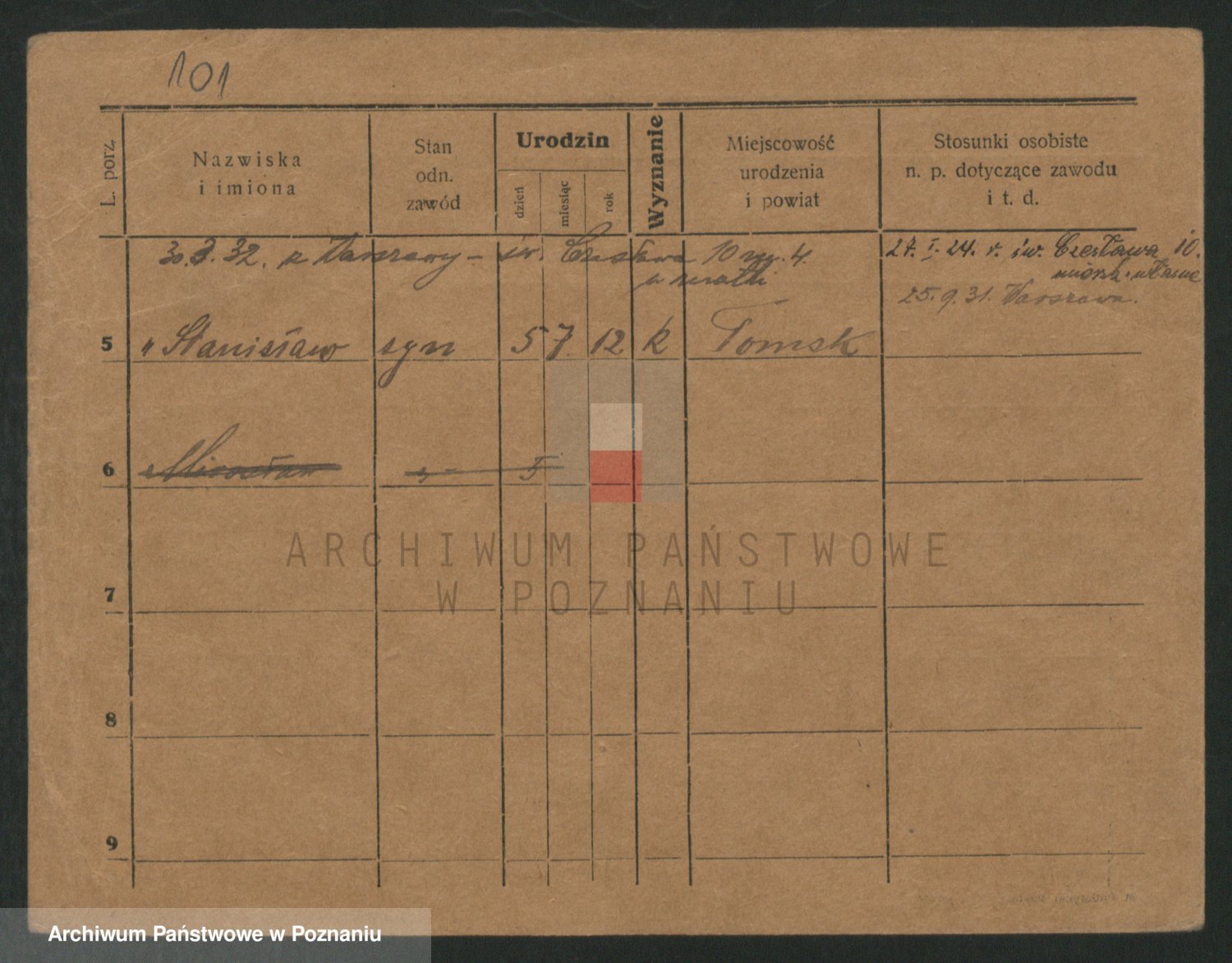 Podgląd karty osobowej dostępny jest po kliknięciu na nazwisko lub ikonkę karty. Można dokonywać powiększenia (ikony na górze) lub przechodzić między kolejnymi skanami (strzałki po bokach).