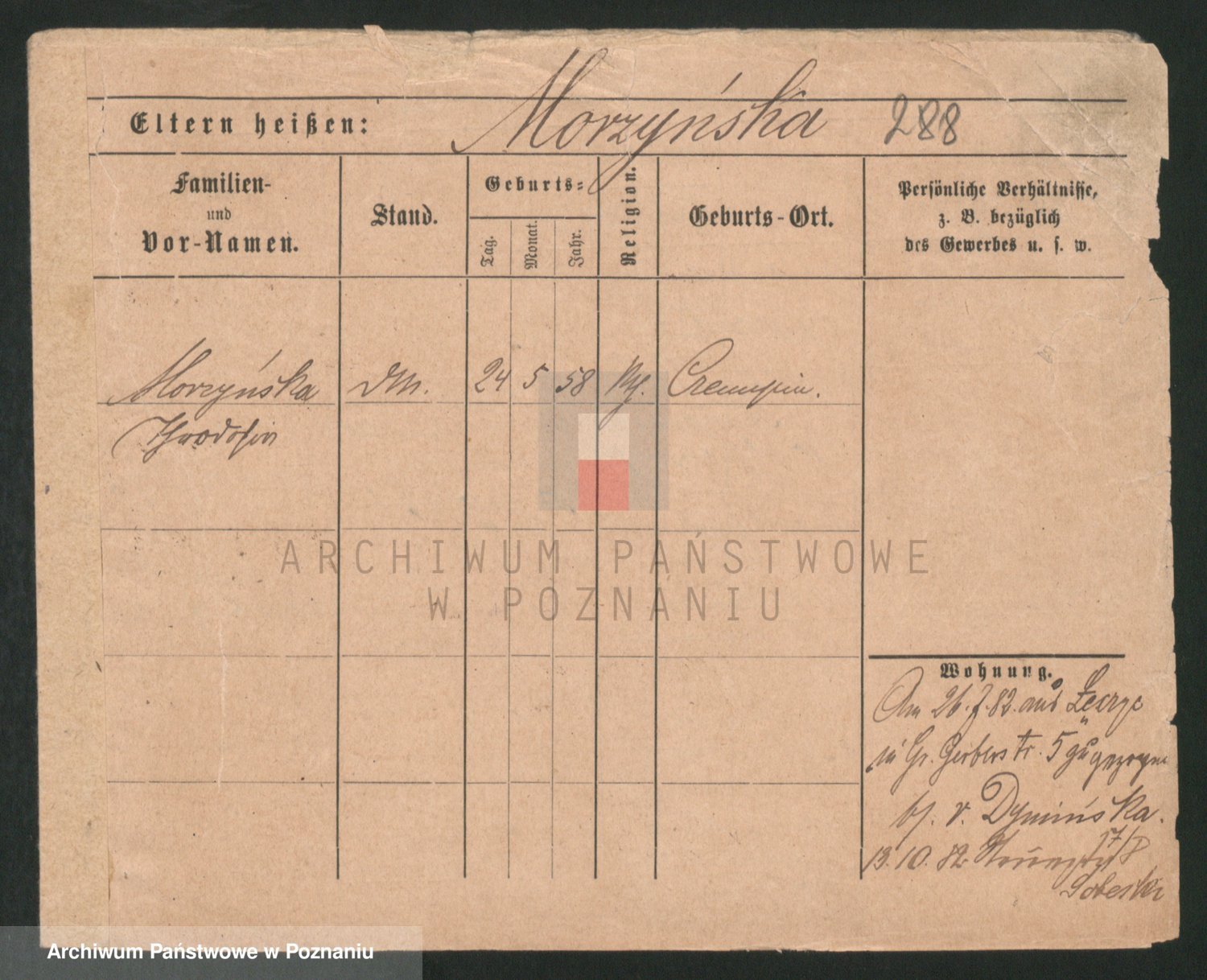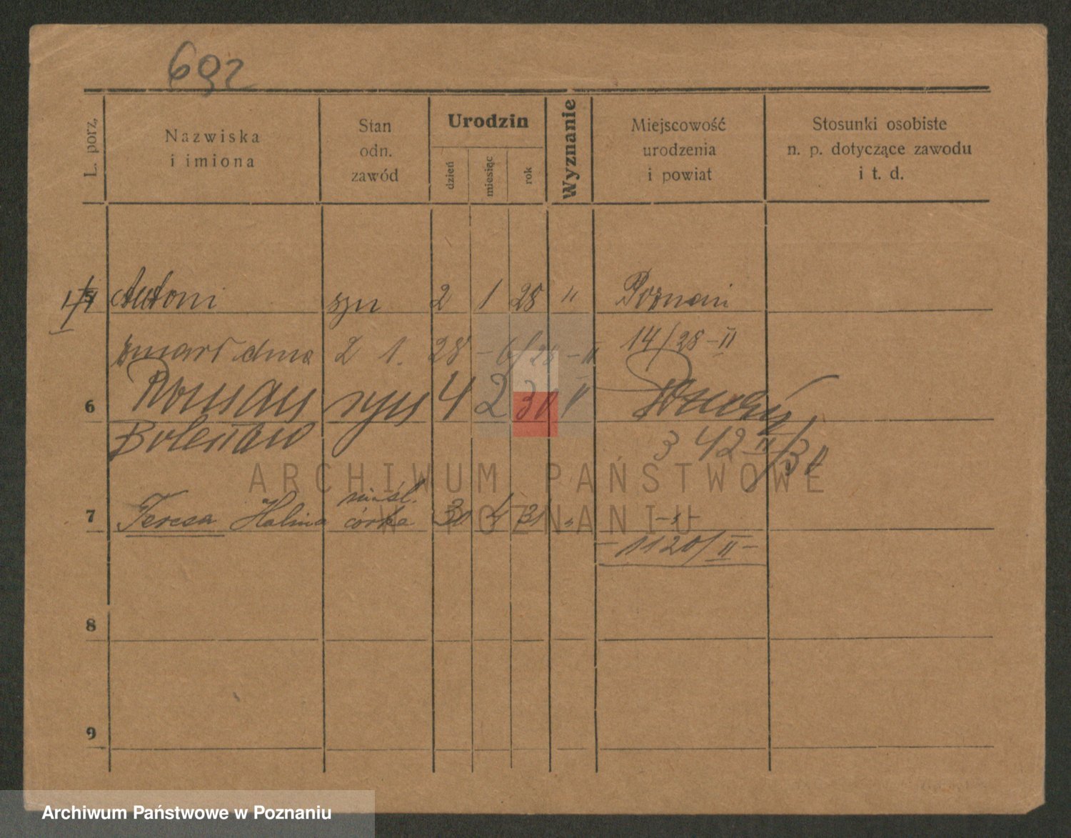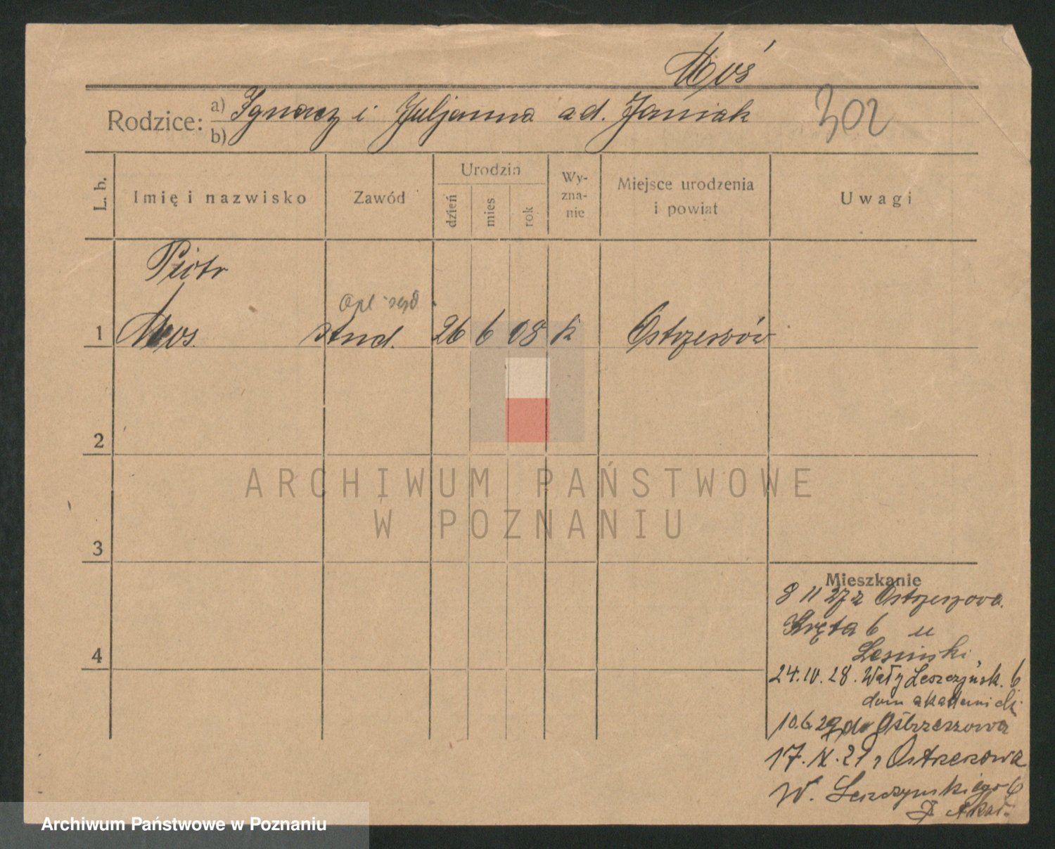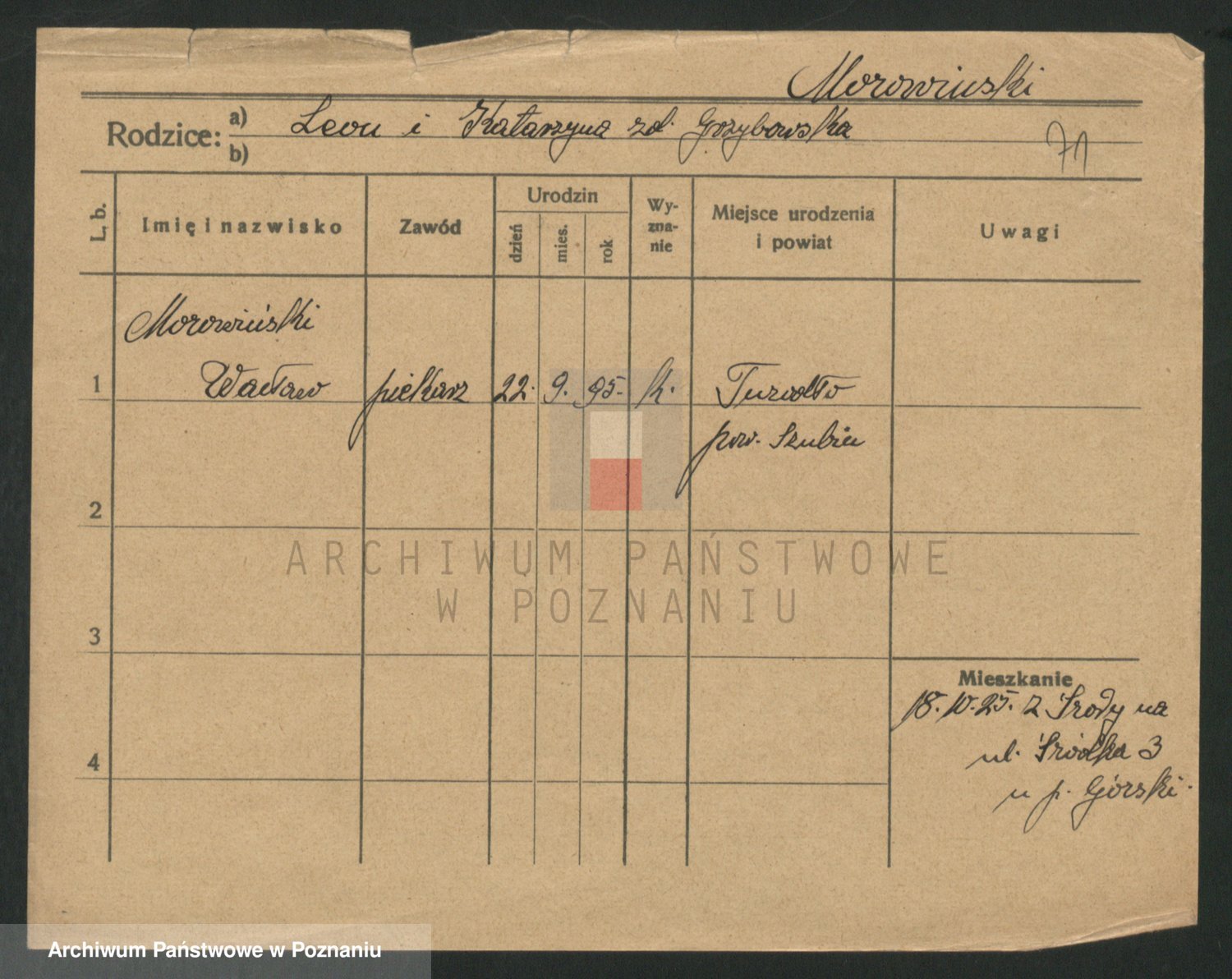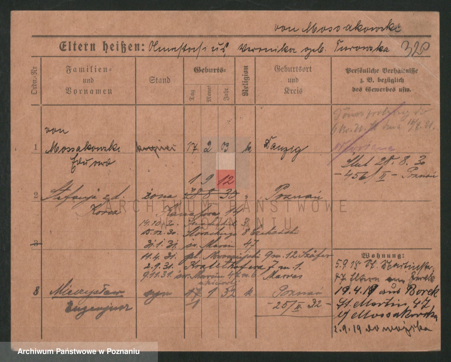 Podgląd karty osobowej dostępny jest po kliknięciu na nazwisko lub ikonkę karty. Można dokonywać powiększenia (ikony na górze) lub przechodzić między kolejnymi skanami (strzałki po bokach).