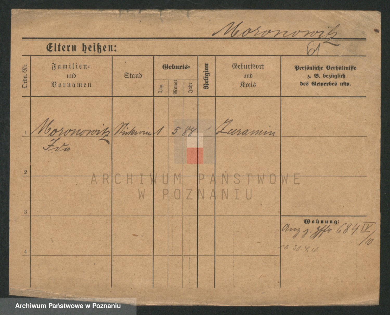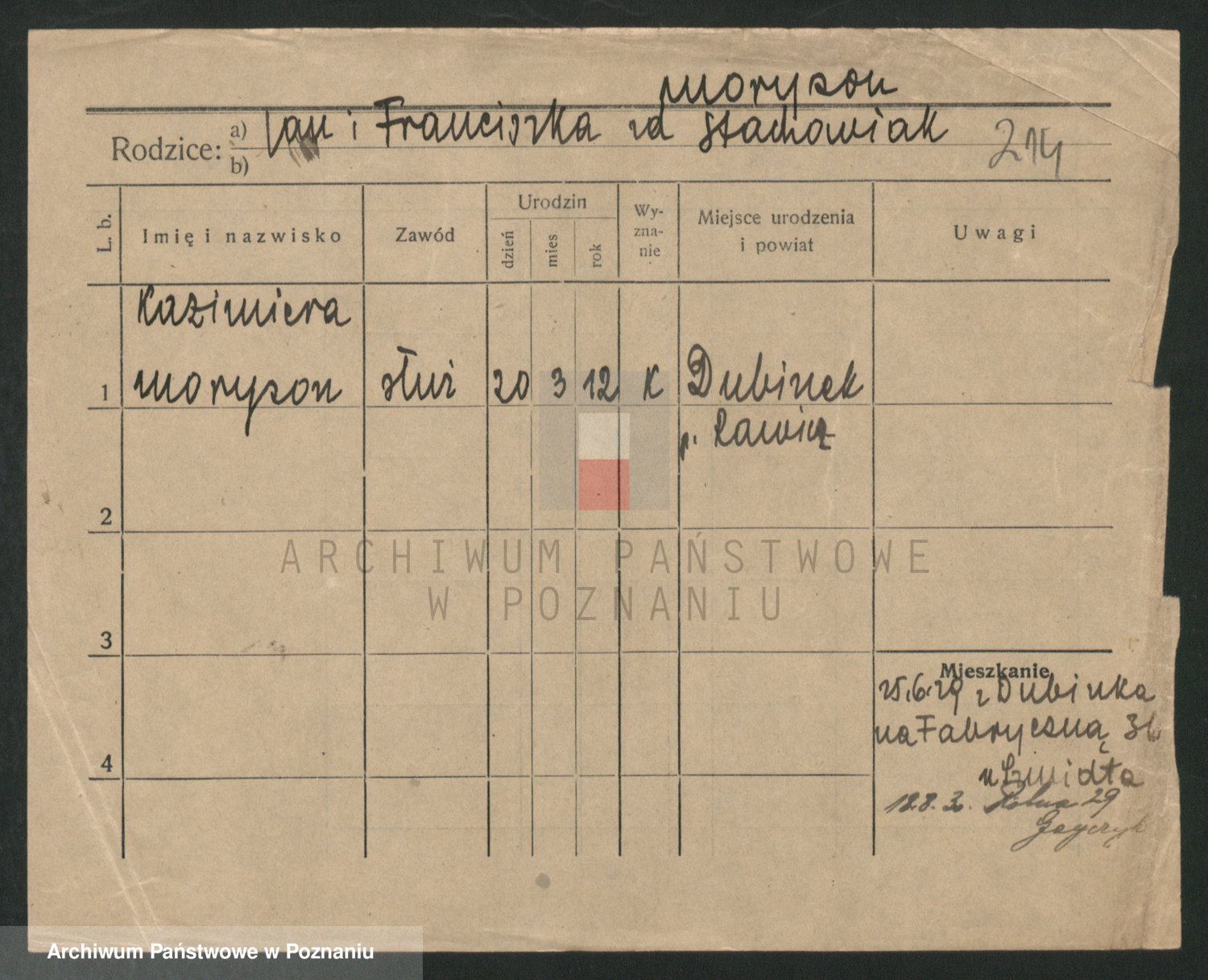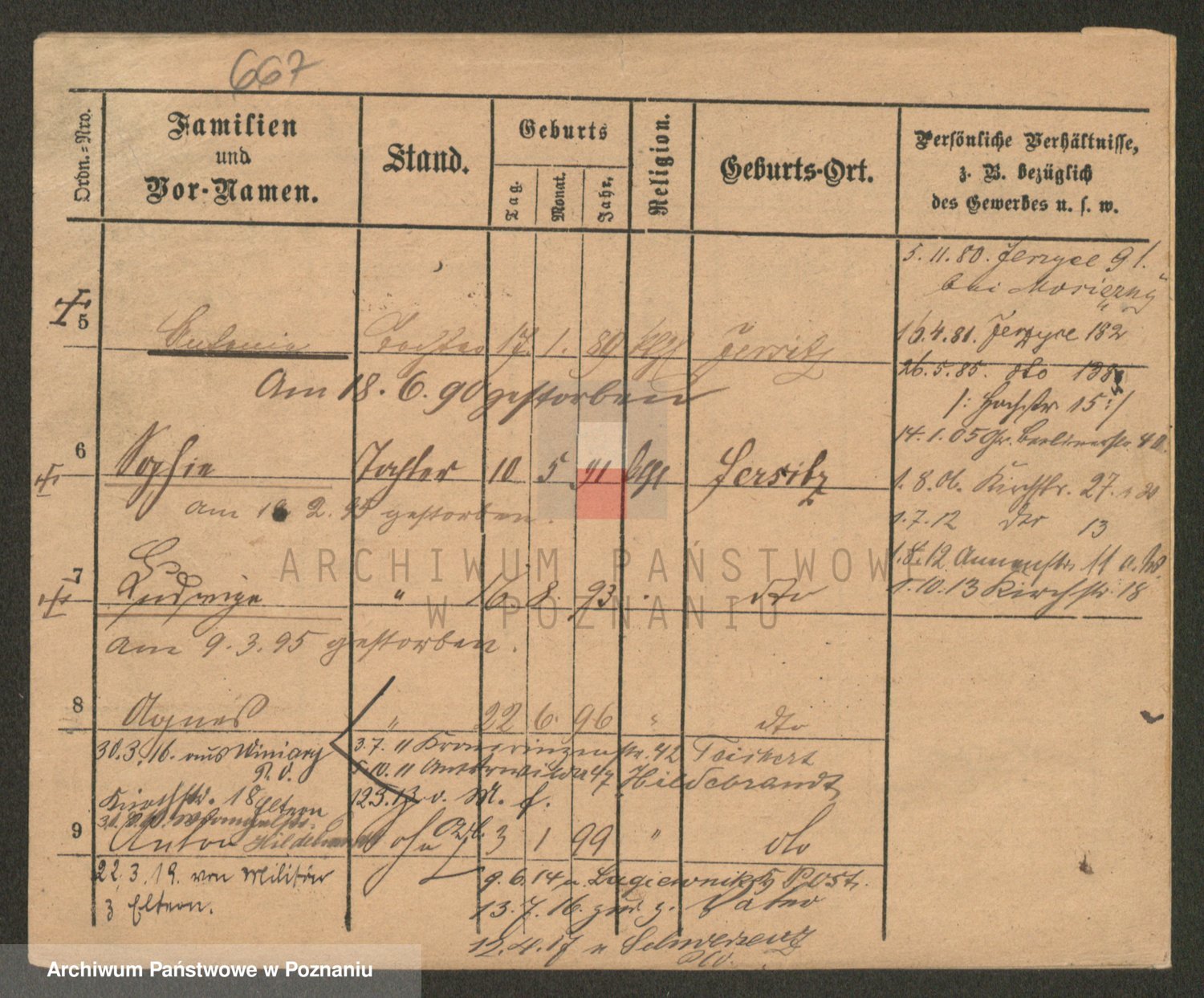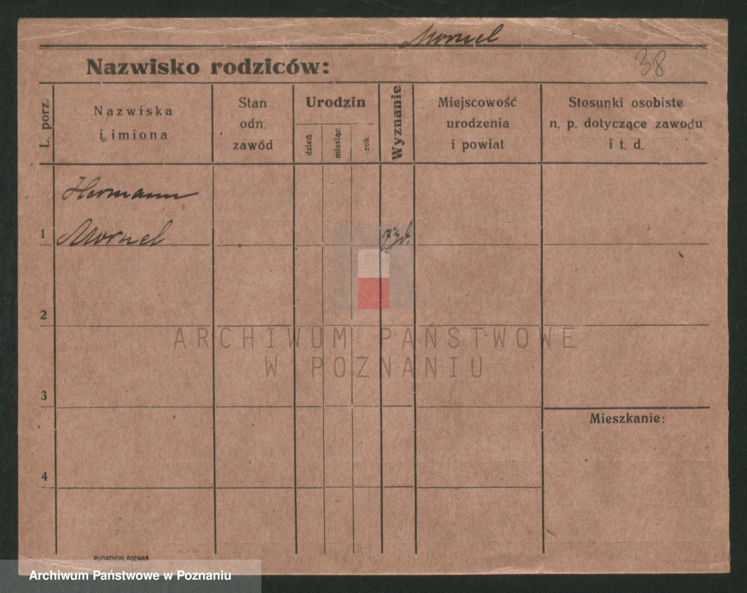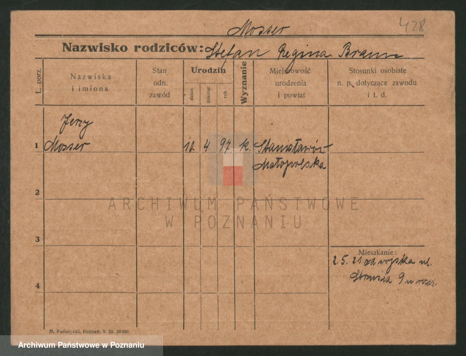 Podgląd karty osobowej dostępny jest po kliknięciu na nazwisko lub ikonkę karty. Można dokonywać powiększenia (ikony na górze) lub przechodzić między kolejnymi skanami (strzałki po bokach).
