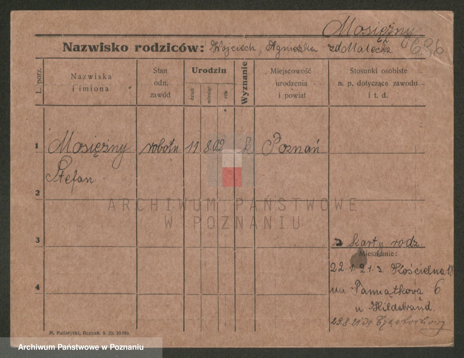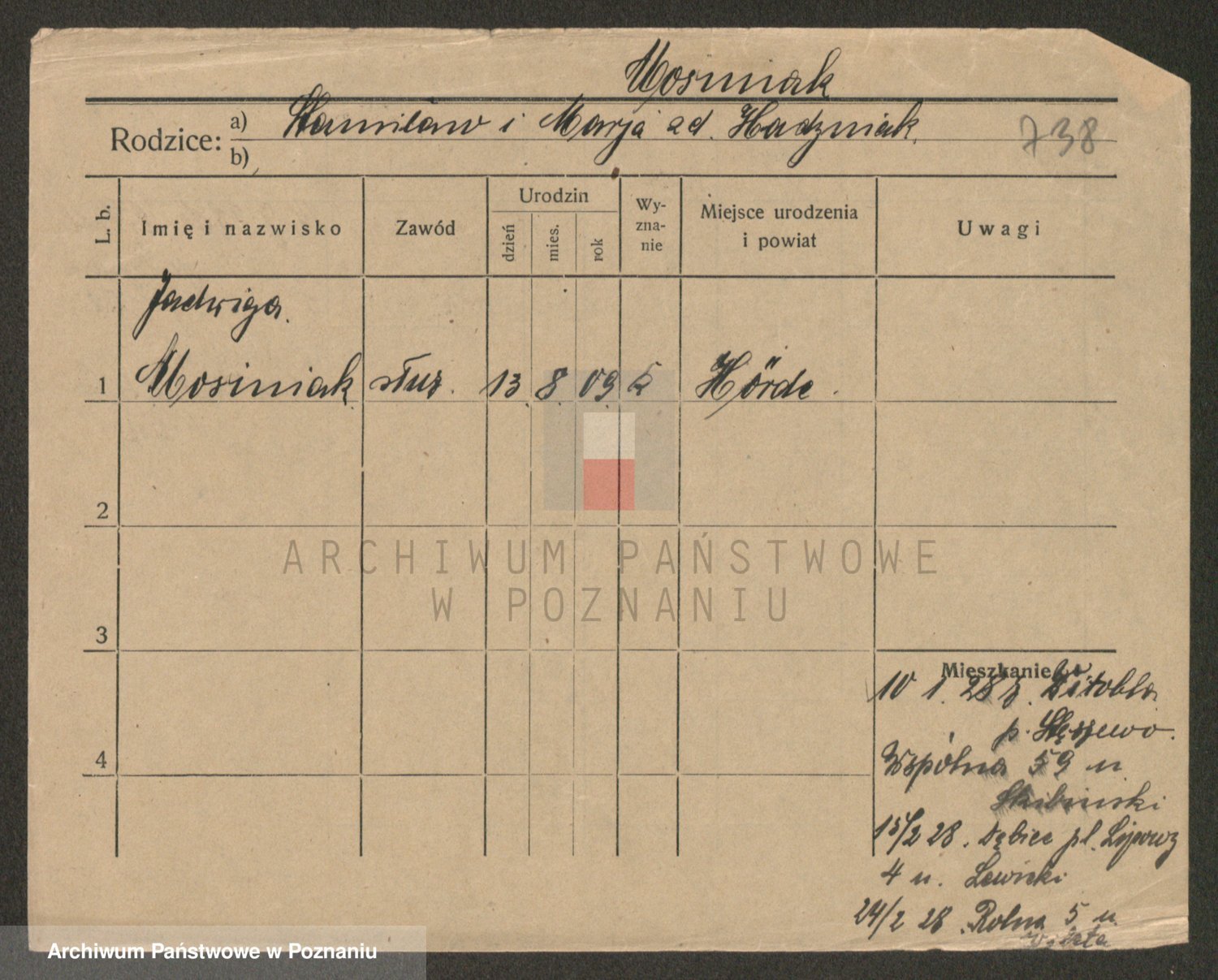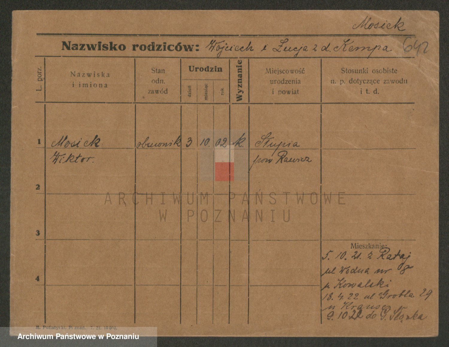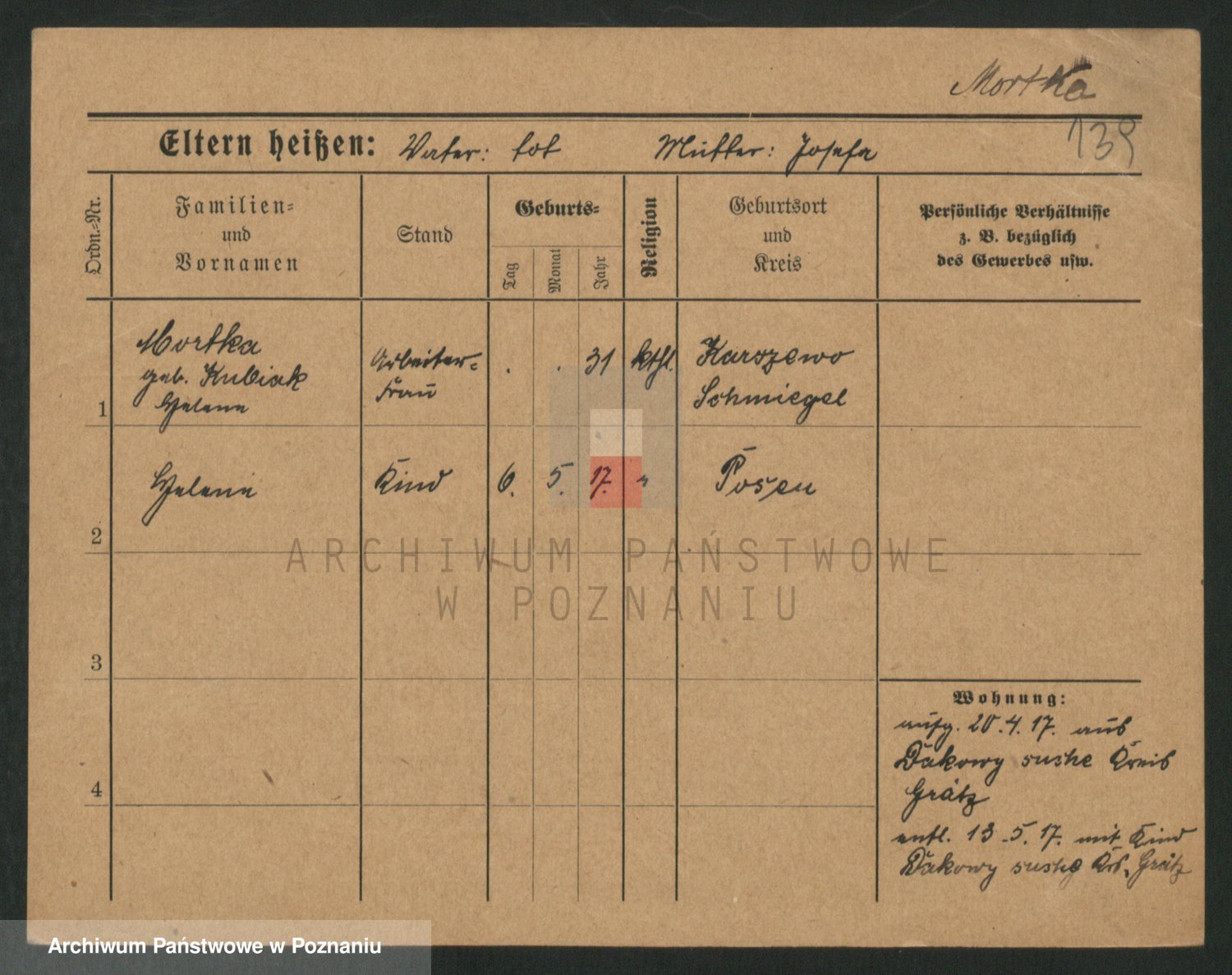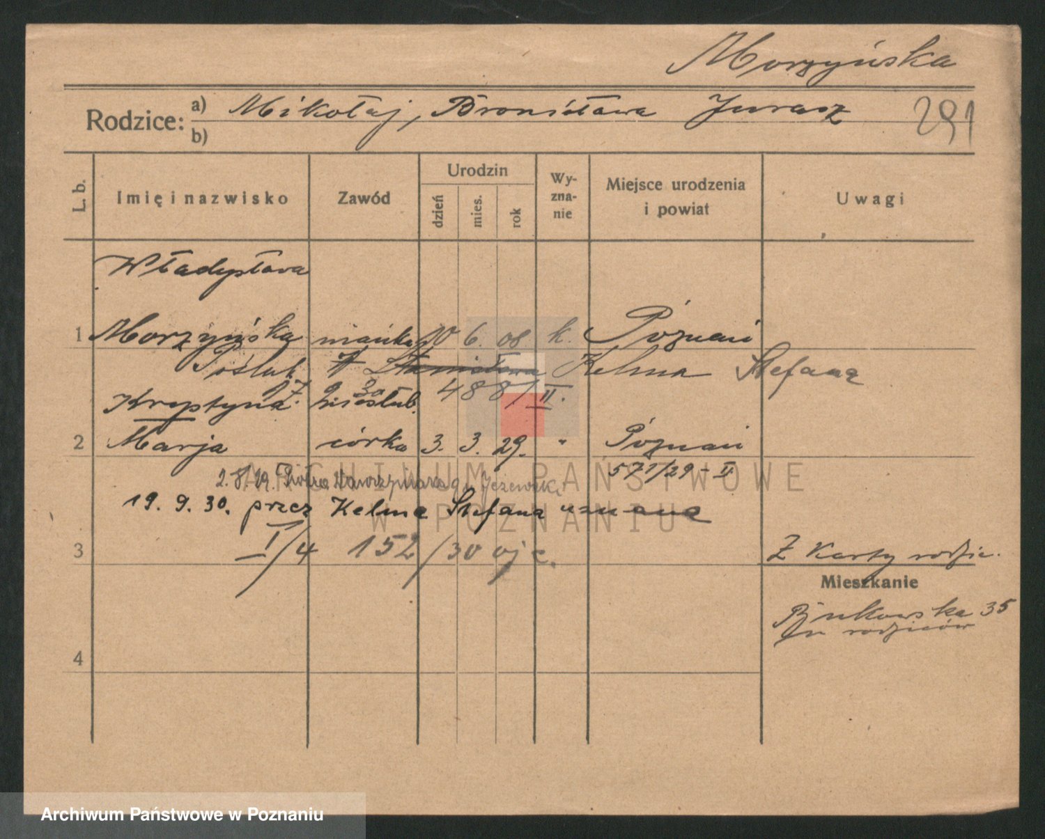 Podgląd karty osobowej dostępny jest po kliknięciu na nazwisko lub ikonkę karty. Można dokonywać powiększenia (ikony na górze) lub przechodzić między kolejnymi skanami (strzałki po bokach).