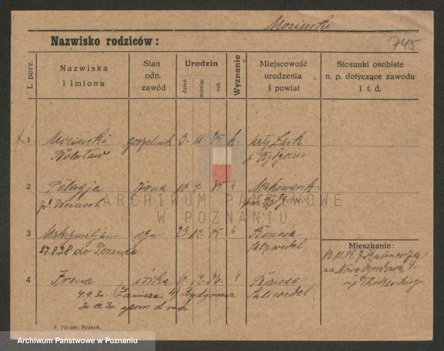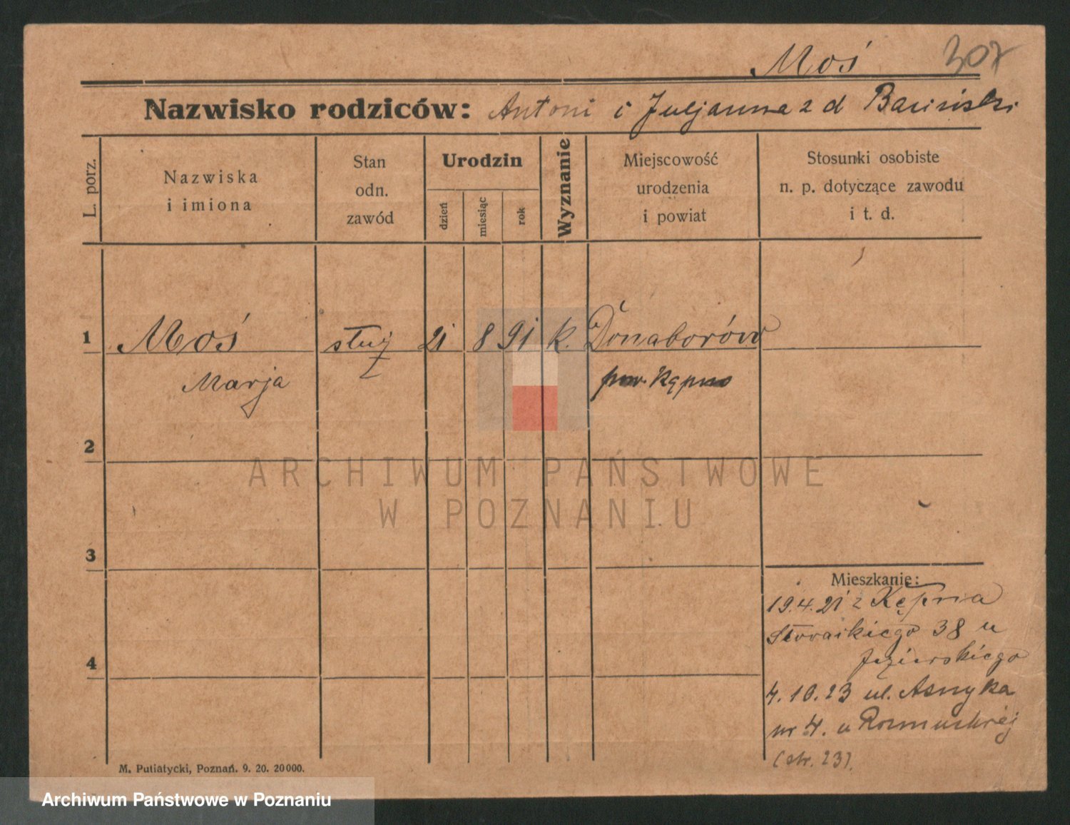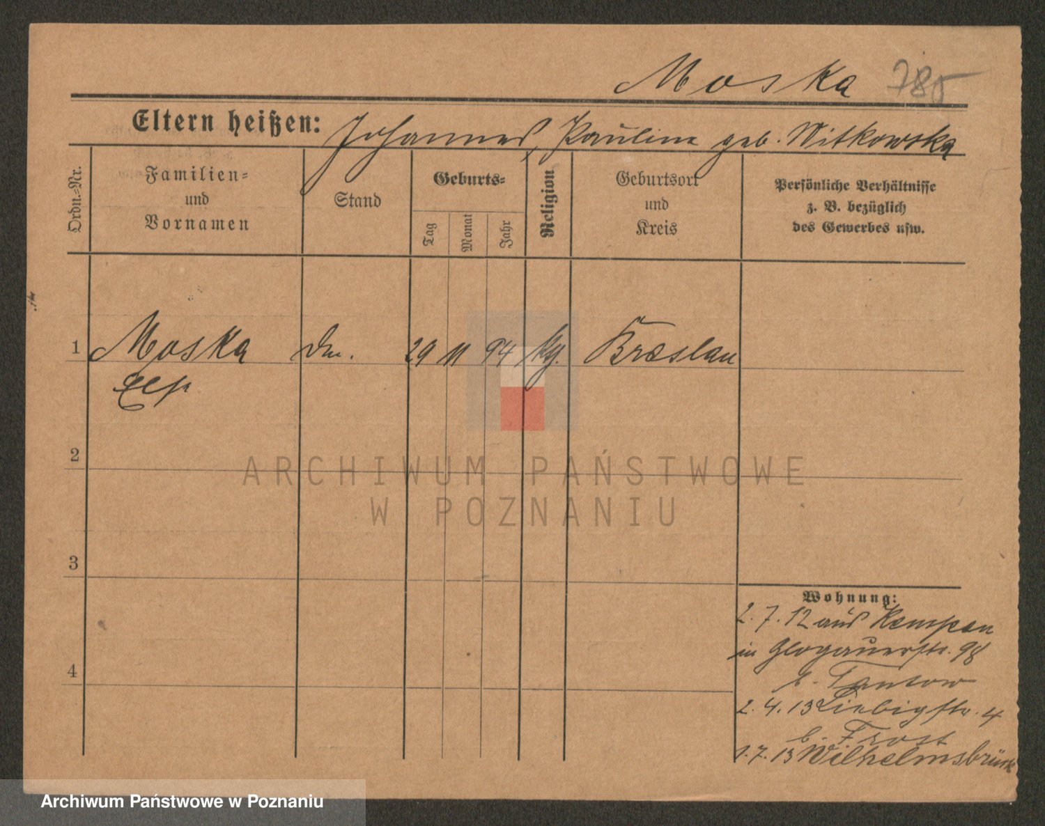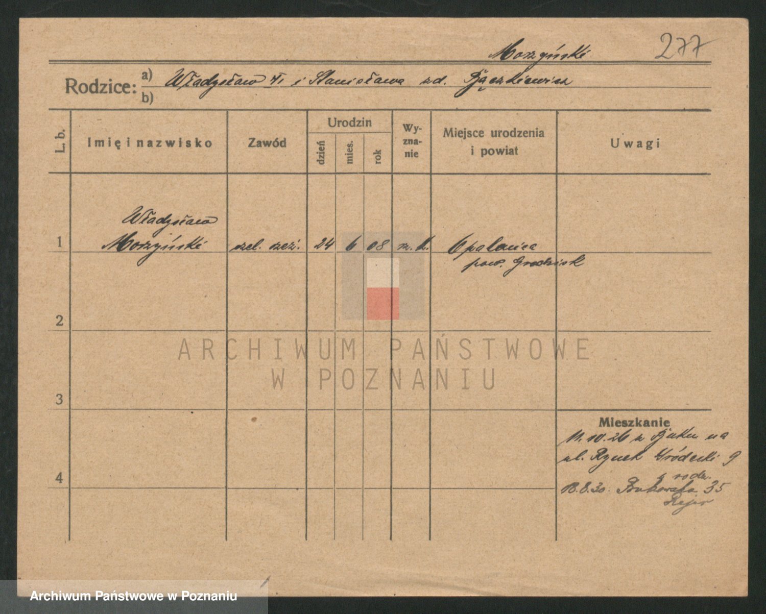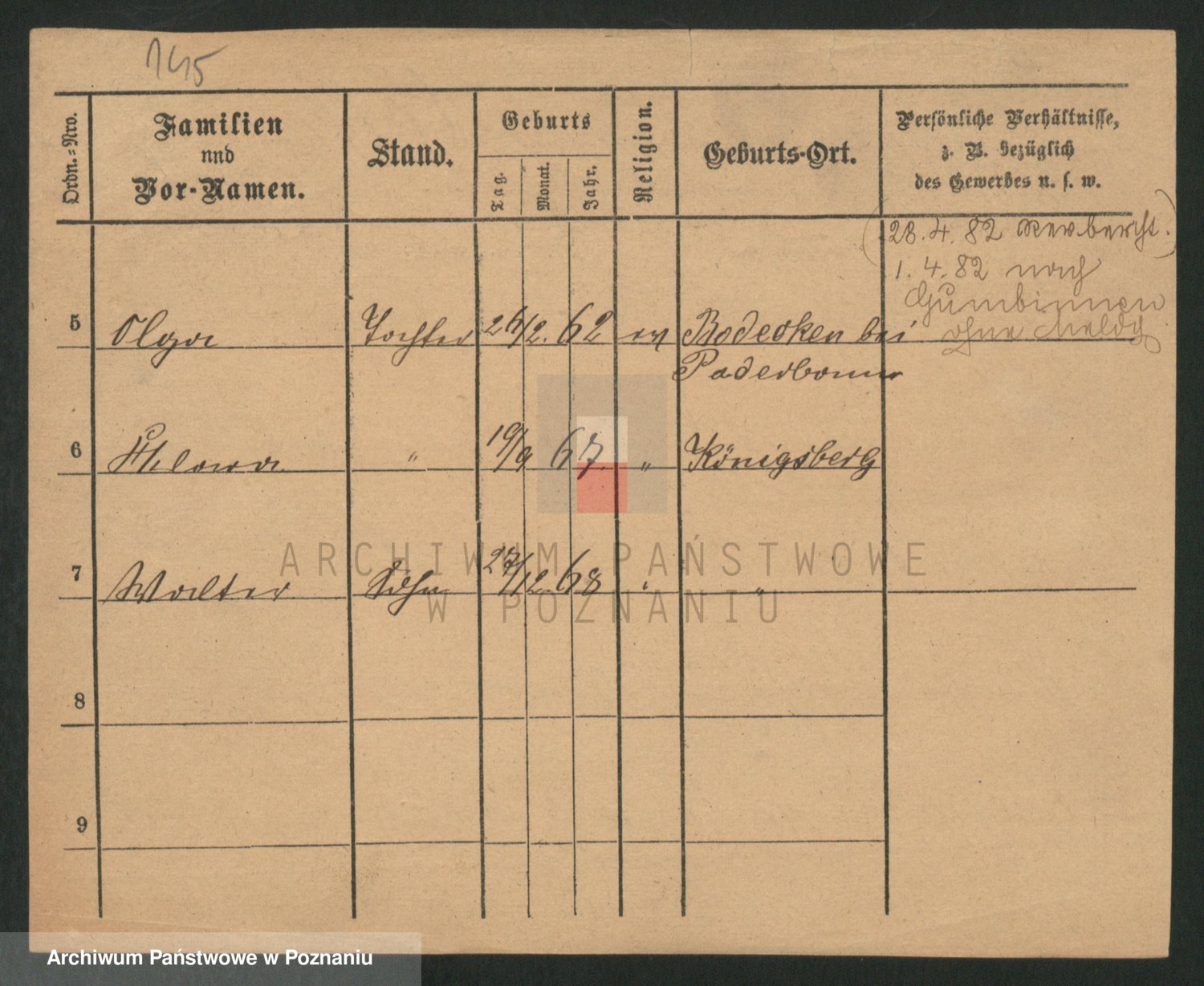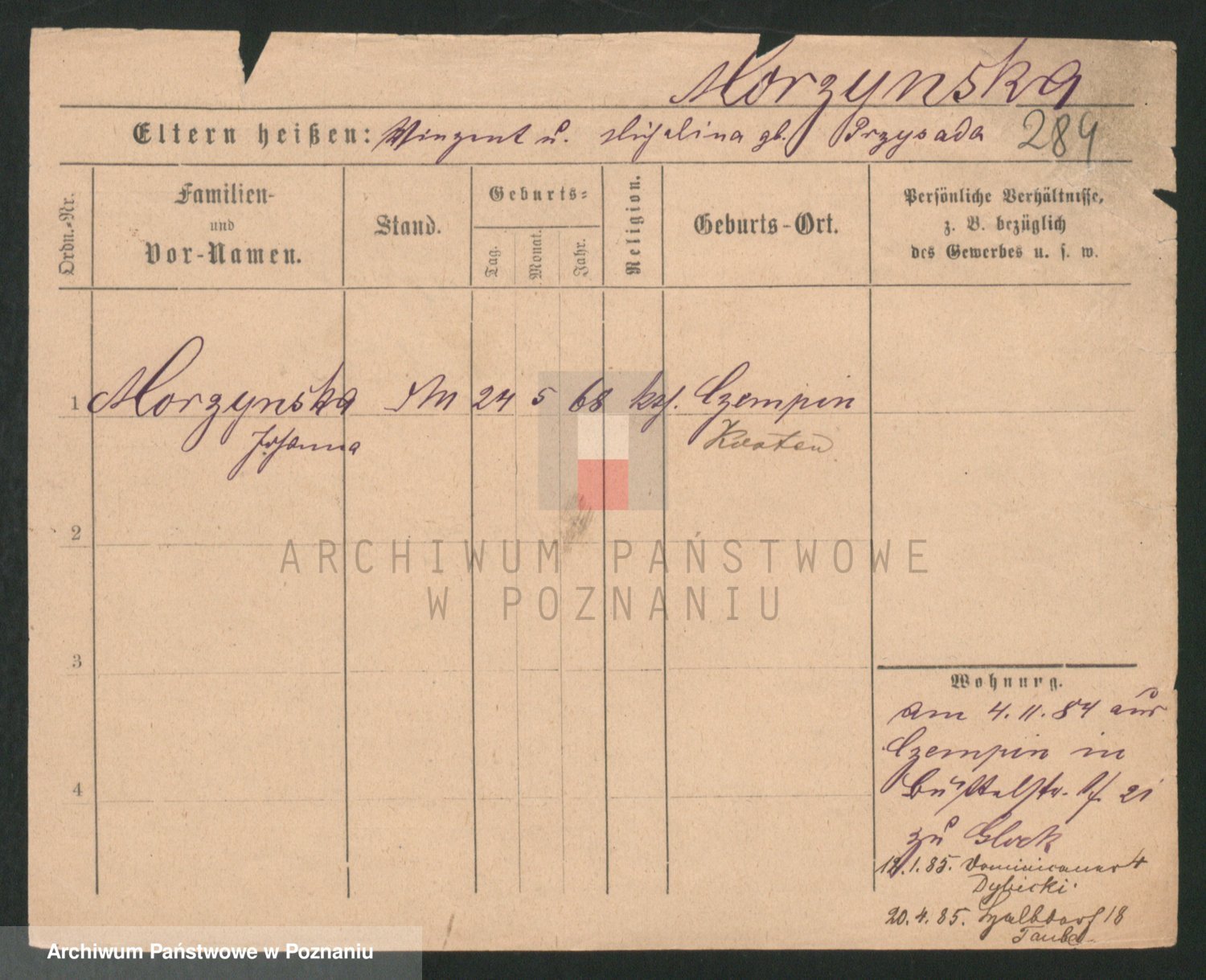 Podgląd karty osobowej dostępny jest po kliknięciu na nazwisko lub ikonkę karty. Można dokonywać powiększenia (ikony na górze) lub przechodzić między kolejnymi skanami (strzałki po bokach).