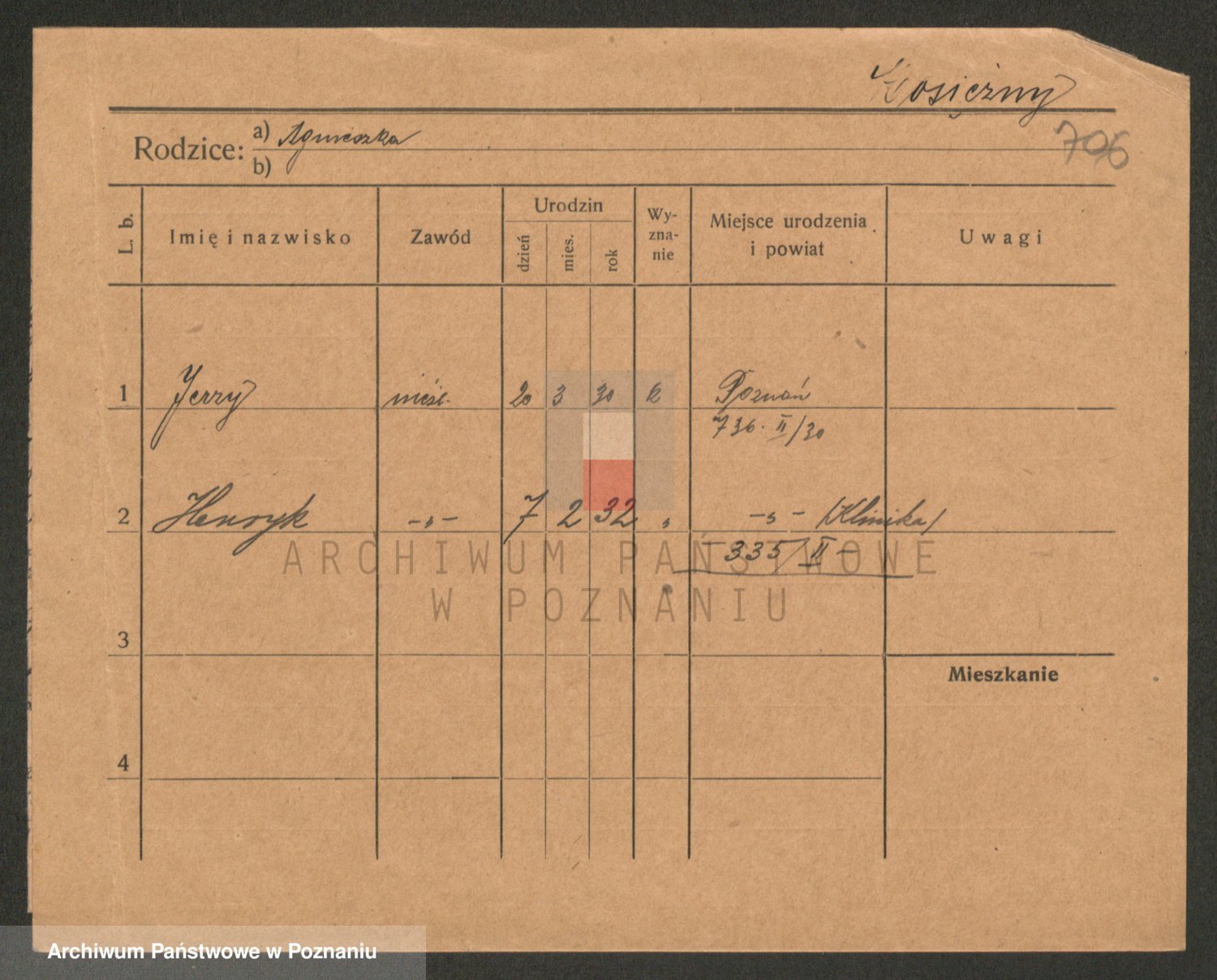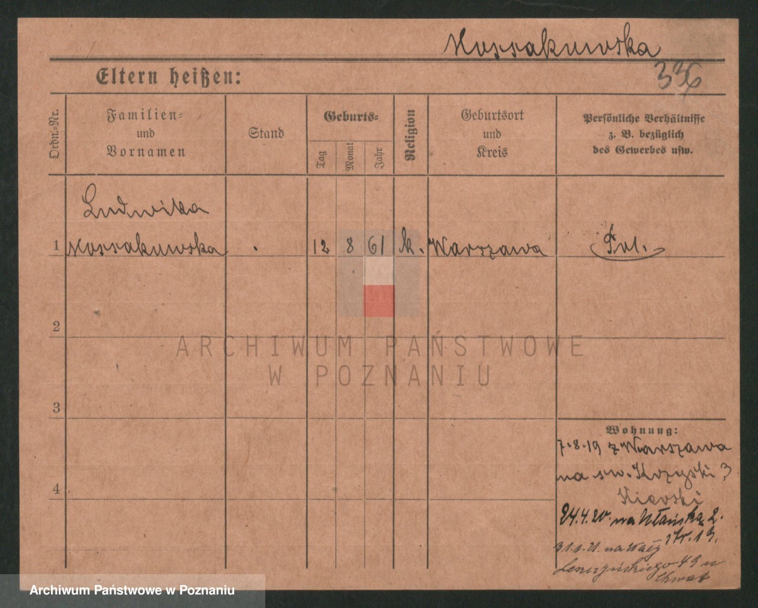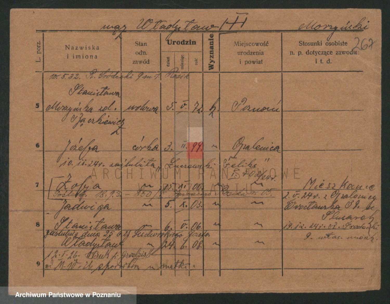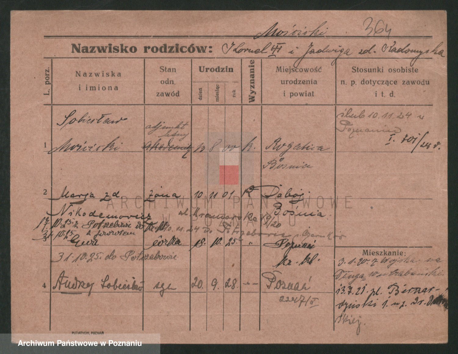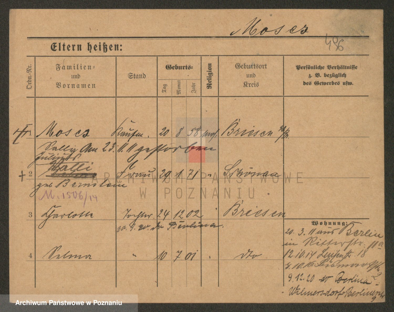 Podgląd karty osobowej dostępny jest po kliknięciu na nazwisko lub ikonkę karty. Można dokonywać powiększenia (ikony na górze) lub przechodzić między kolejnymi skanami (strzałki po bokach).