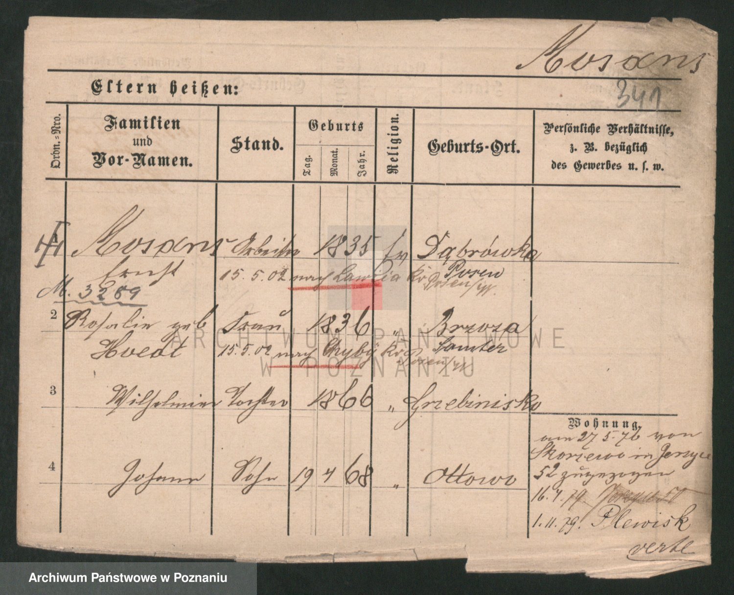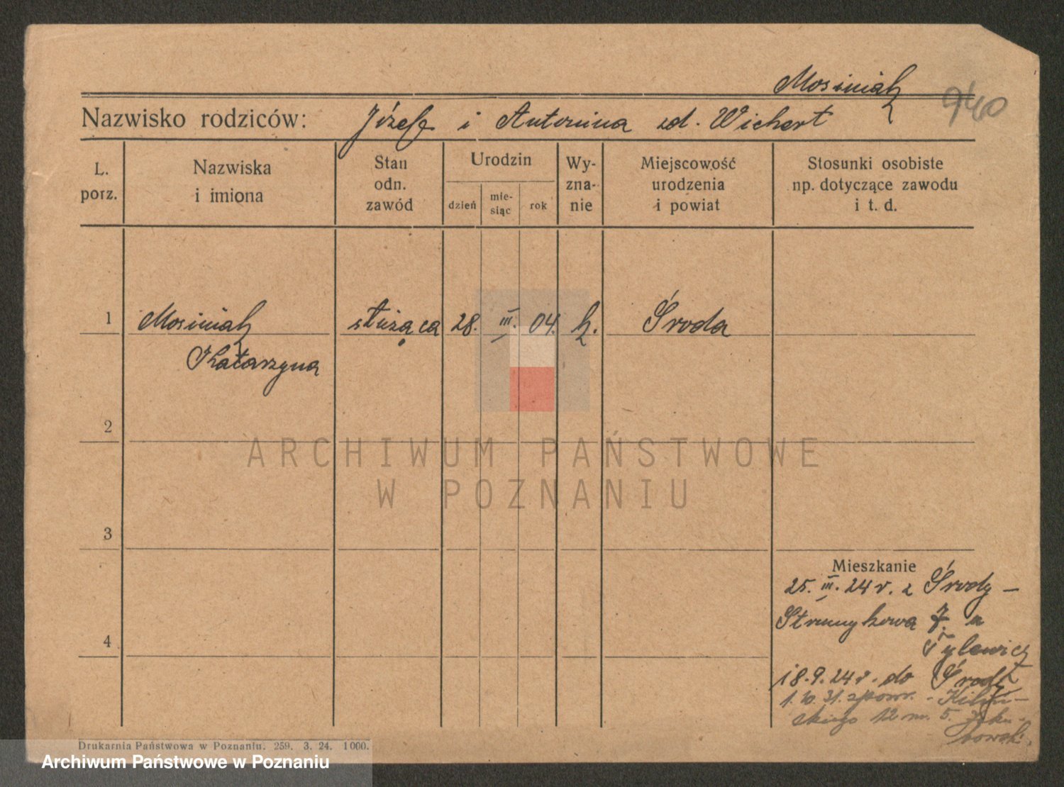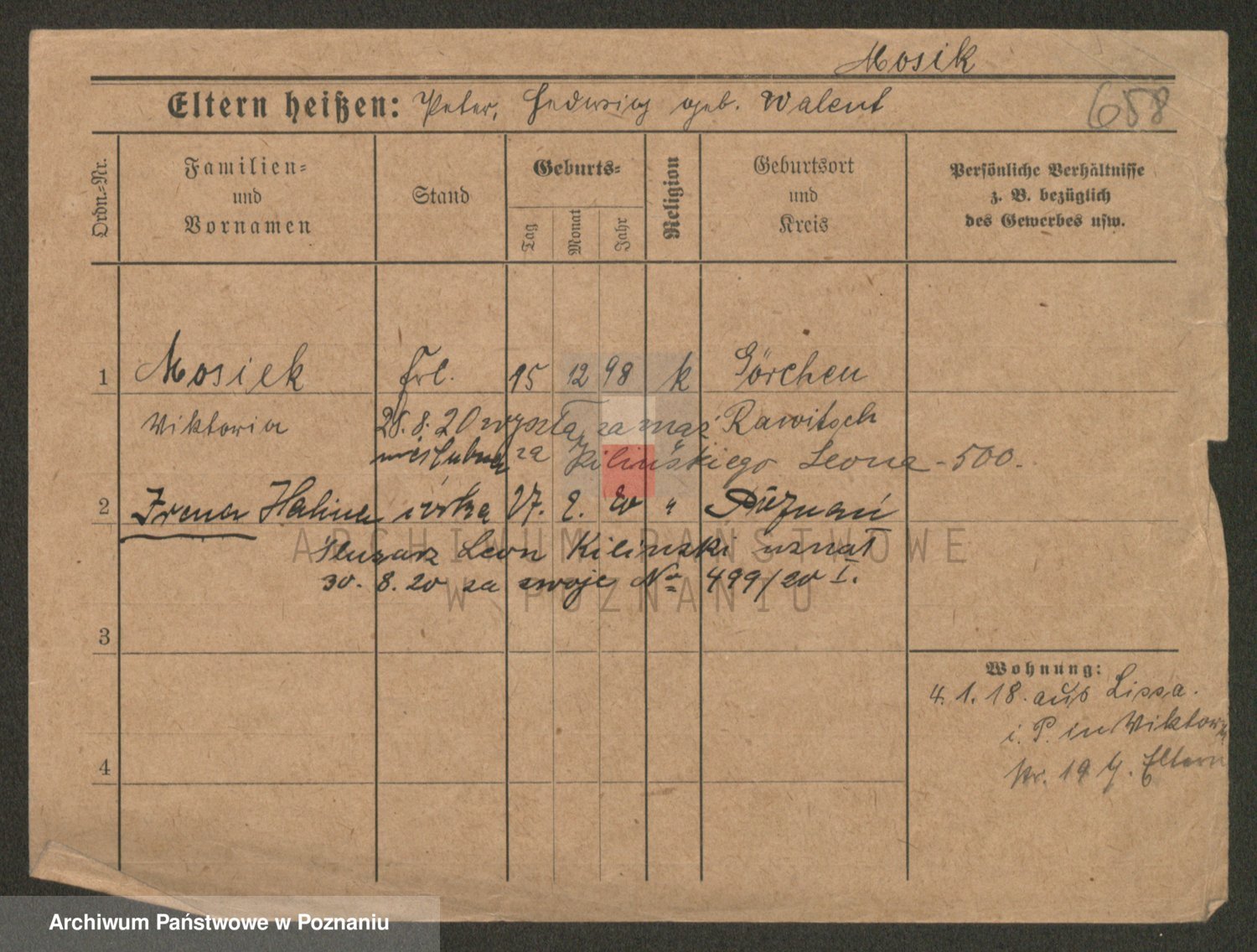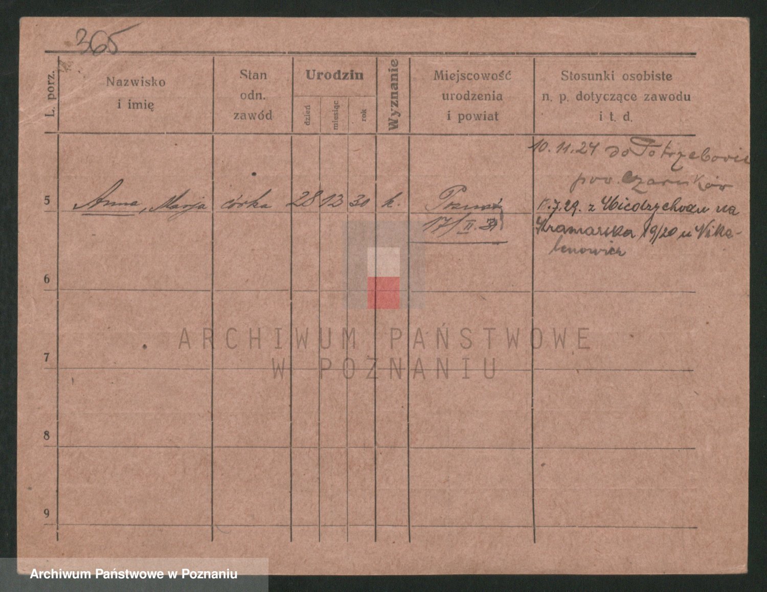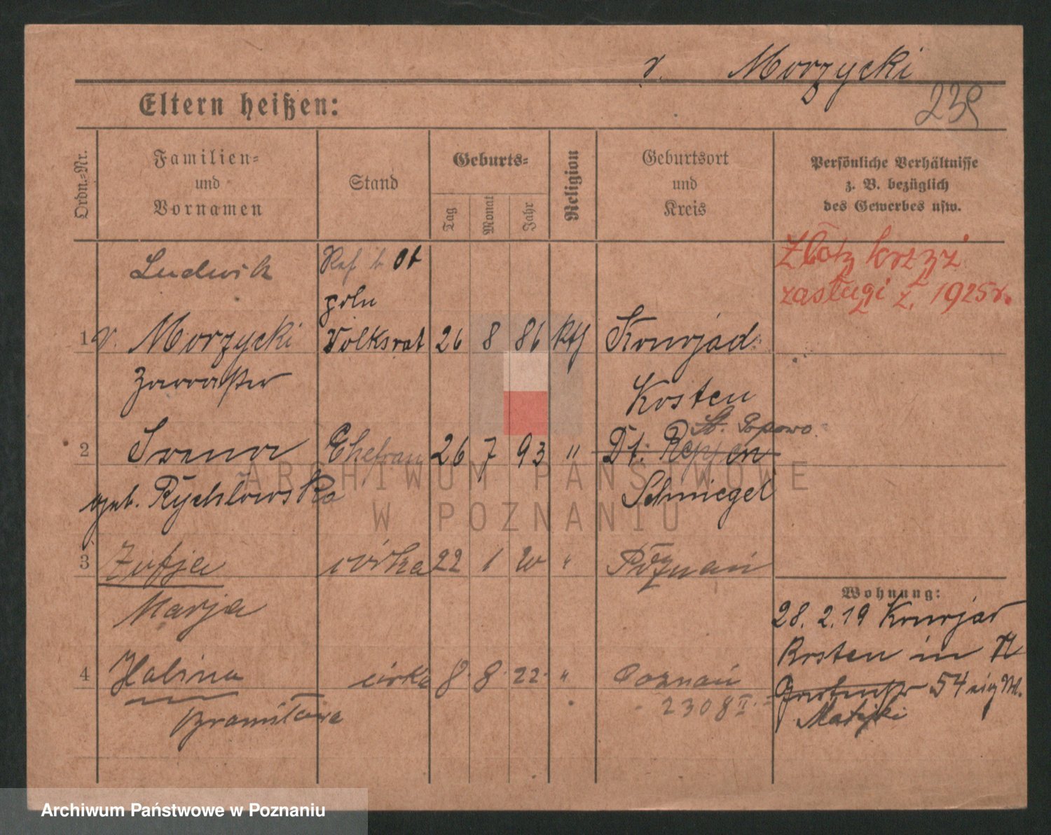 Podgląd karty osobowej dostępny jest po kliknięciu na nazwisko lub ikonkę karty. Można dokonywać powiększenia (ikony na górze) lub przechodzić między kolejnymi skanami (strzałki po bokach).