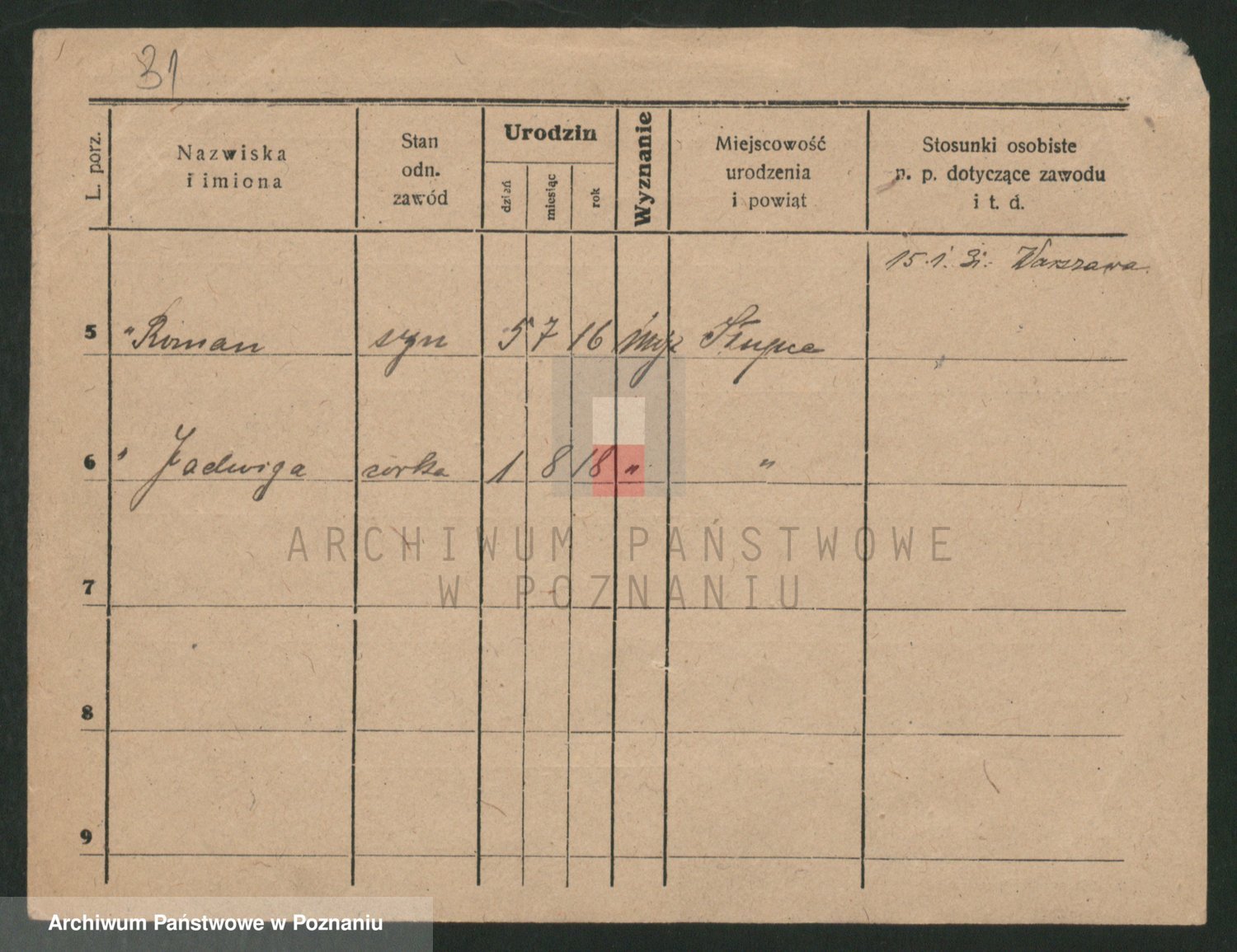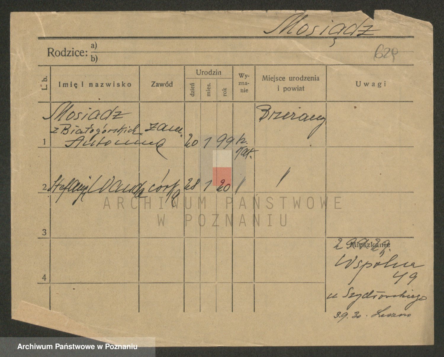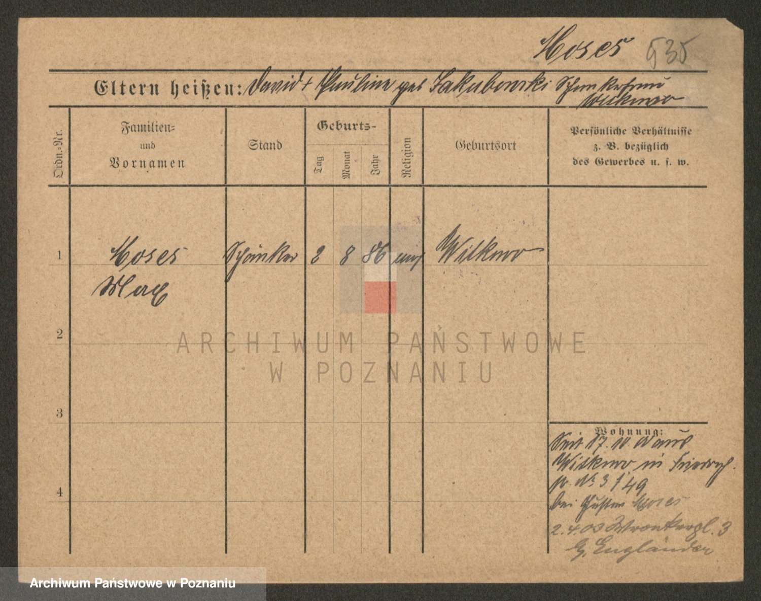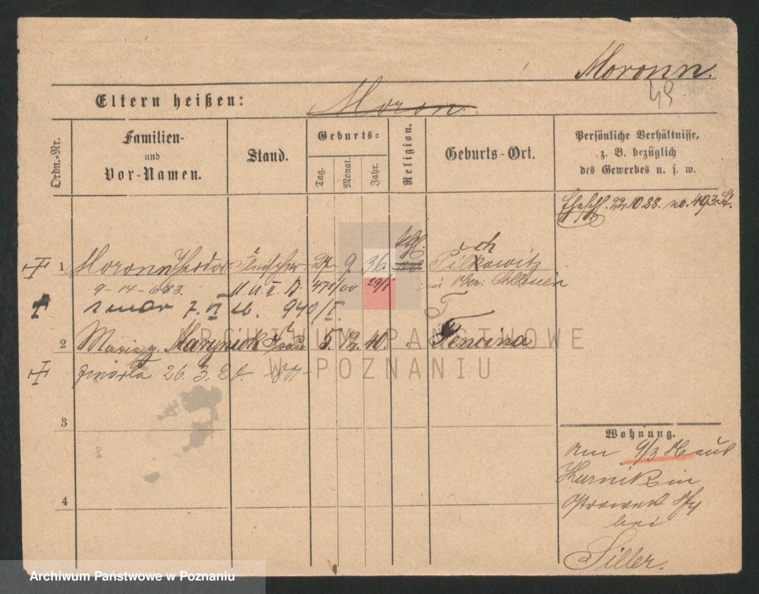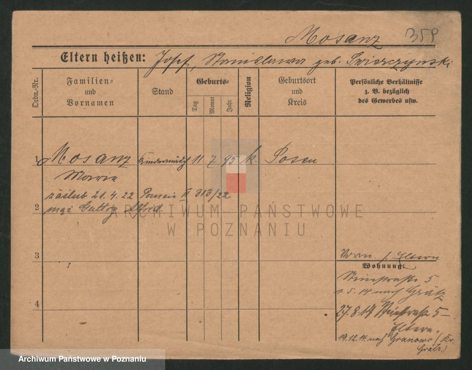 Podgląd karty osobowej dostępny jest po kliknięciu na nazwisko lub ikonkę karty. Można dokonywać powiększenia (ikony na górze) lub przechodzić między kolejnymi skanami (strzałki po bokach).