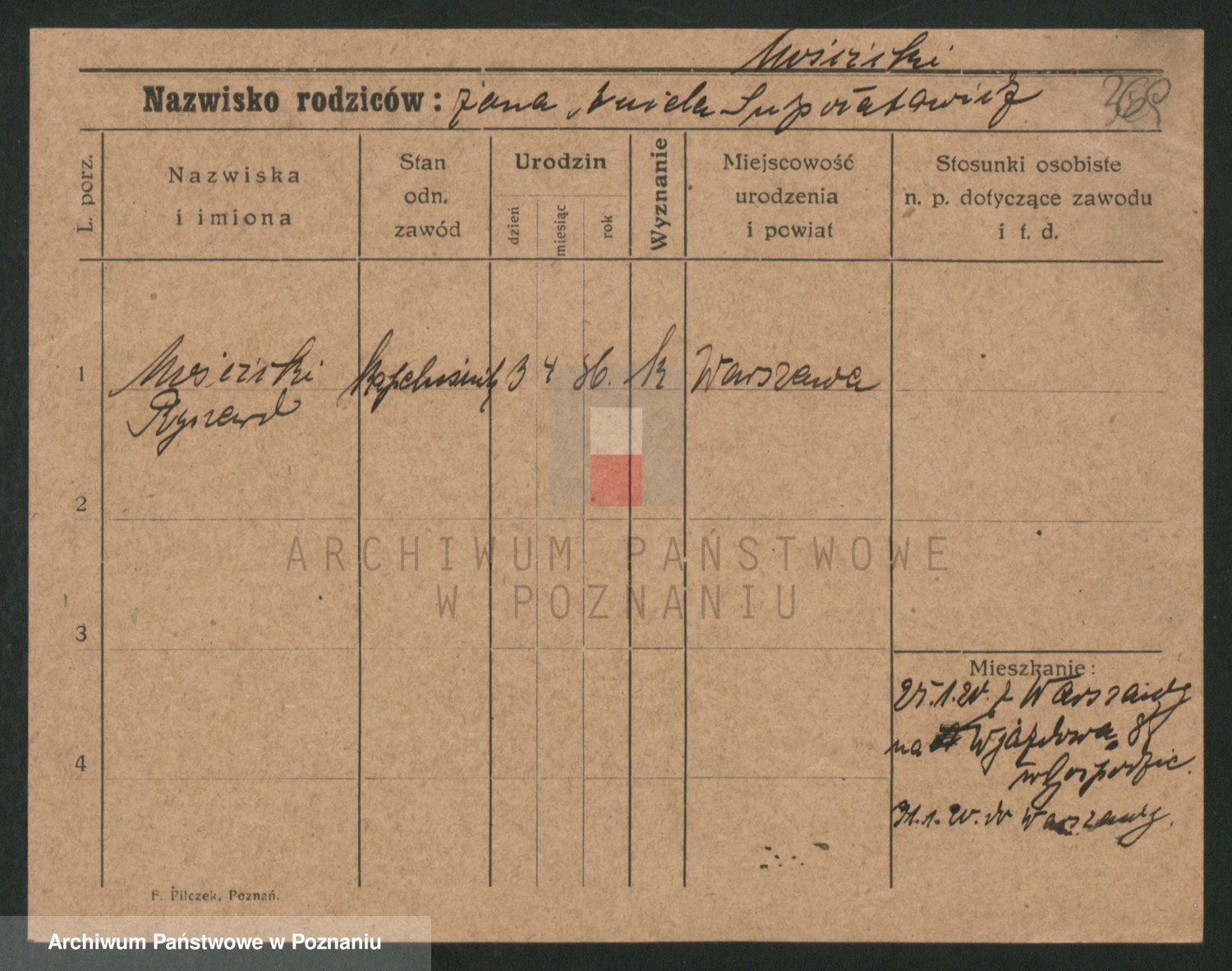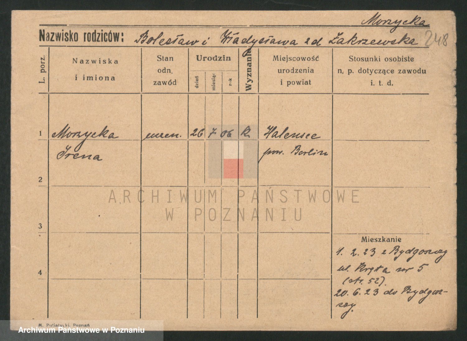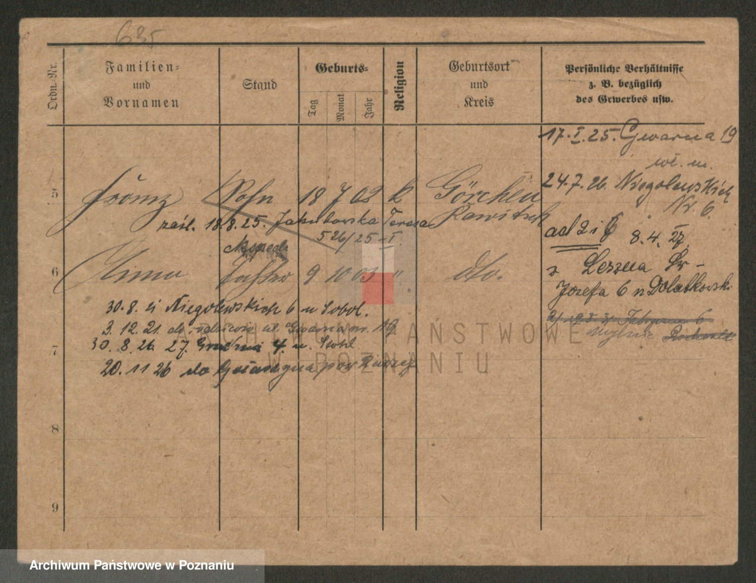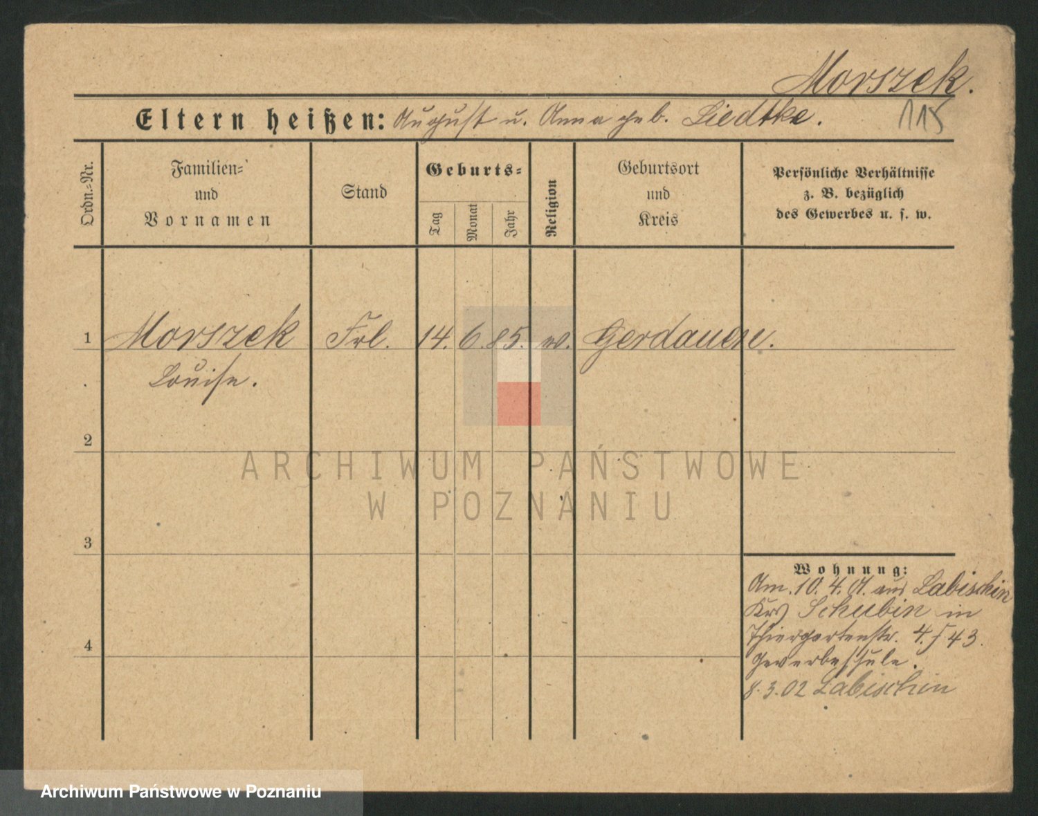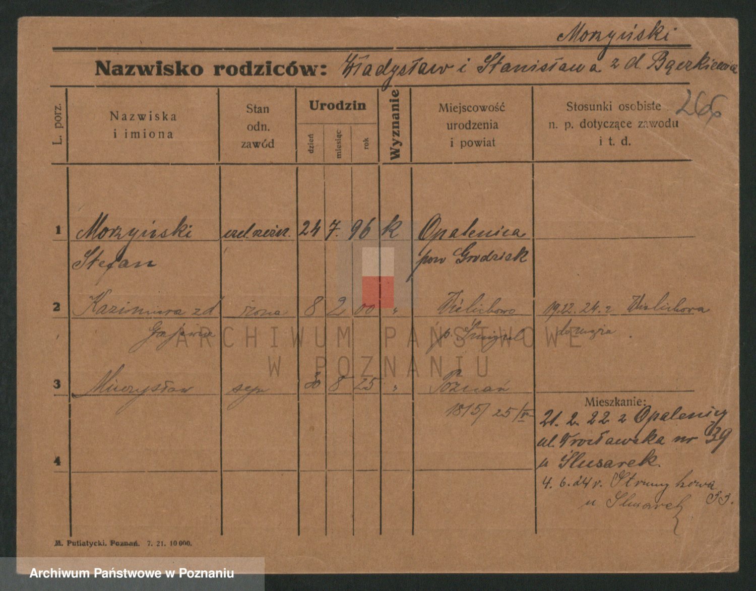Podgląd karty osobowej dostępny jest po kliknięciu na nazwisko lub ikonkę karty. Można dokonywać powiększenia (ikony na górze) lub przechodzić między kolejnymi skanami (strzałki po bokach).
