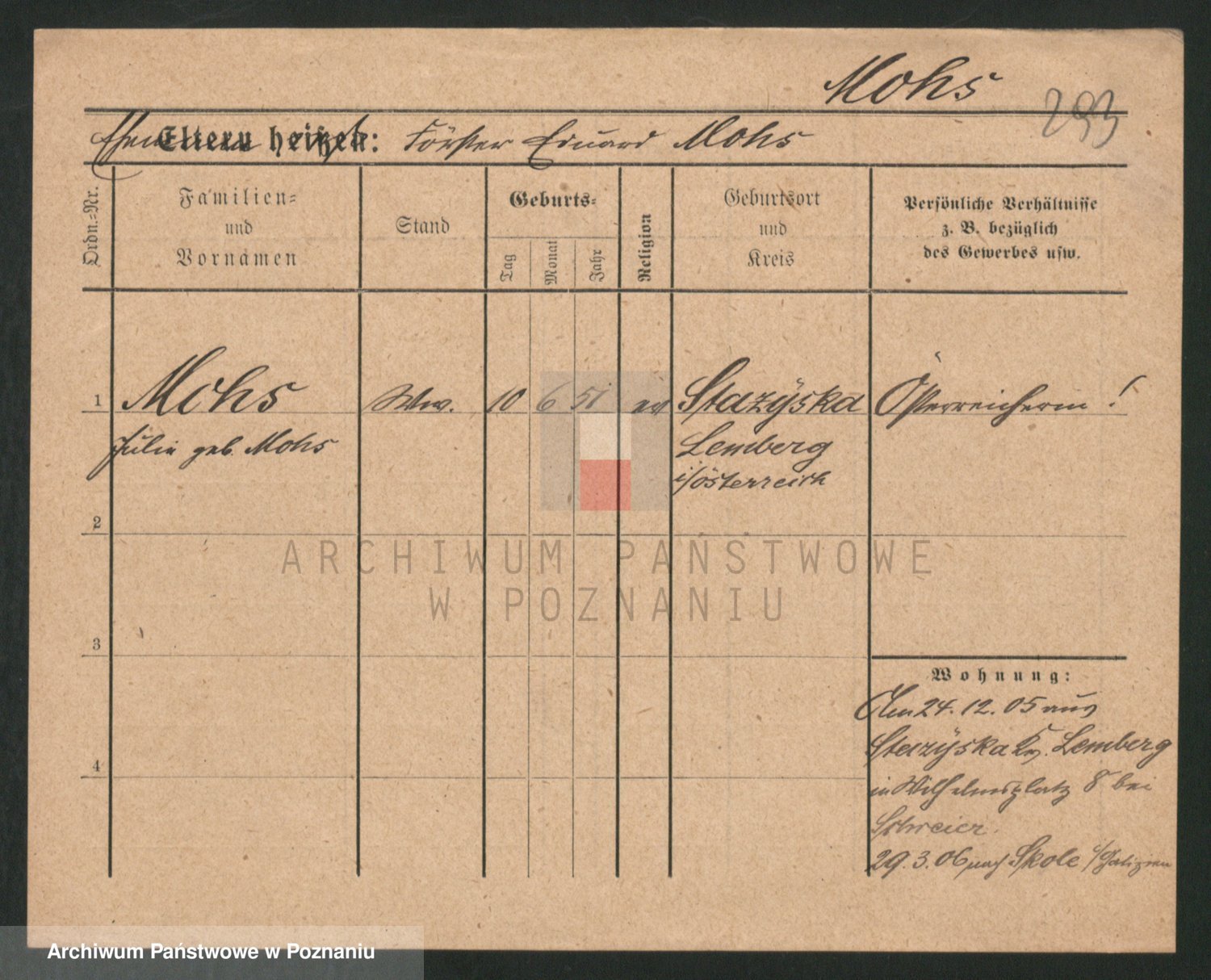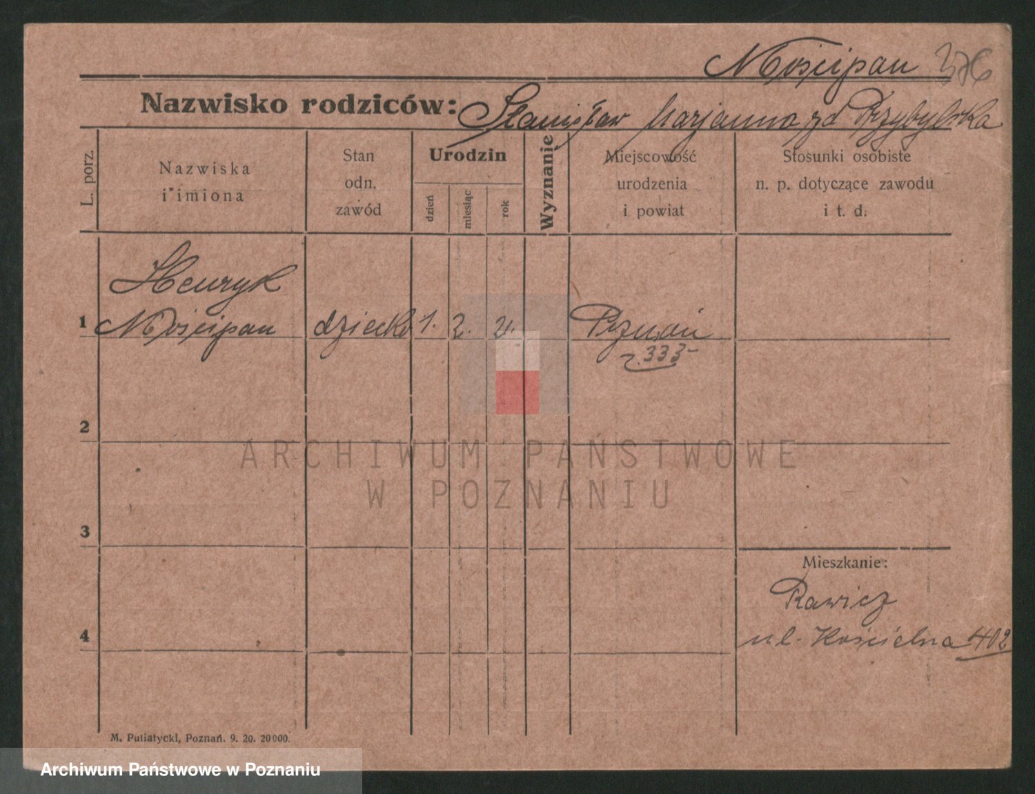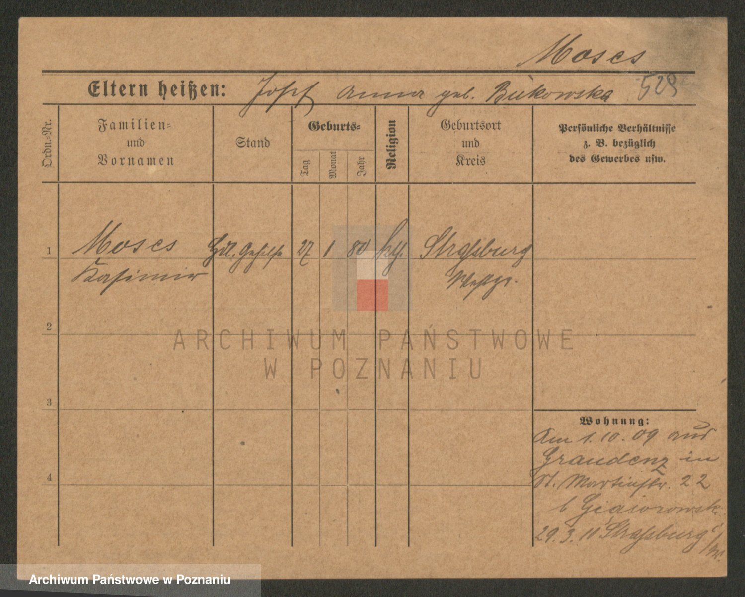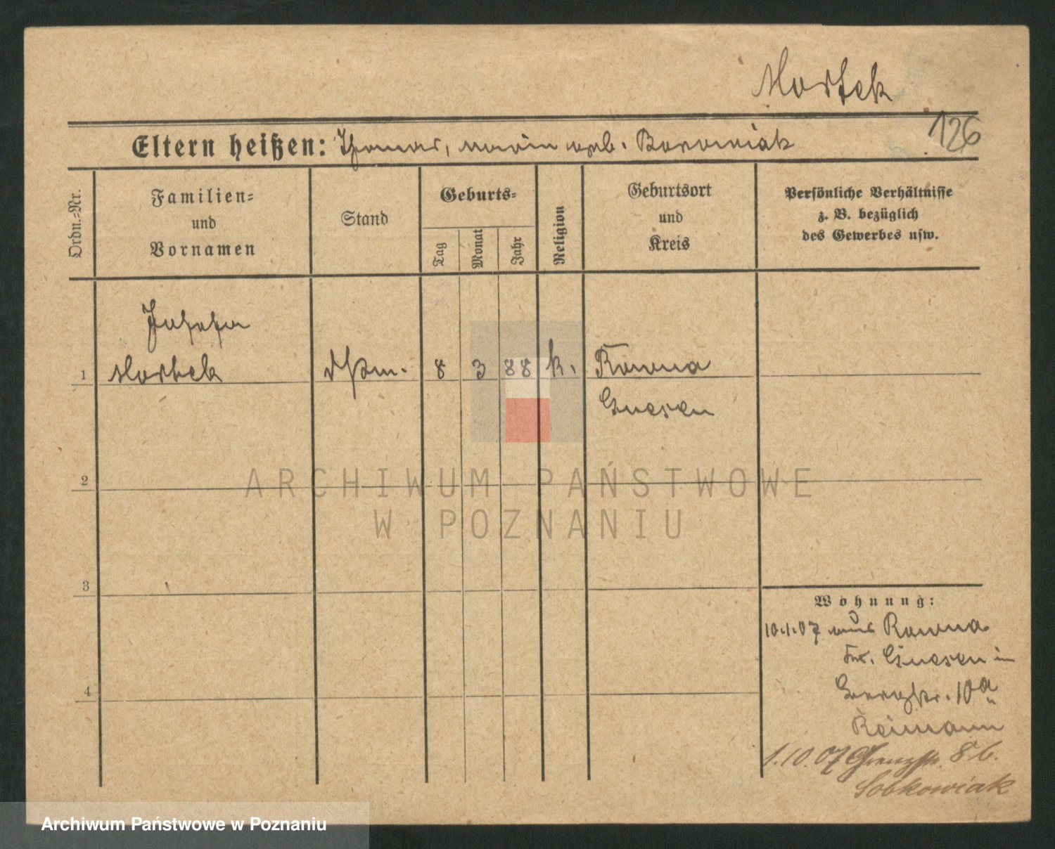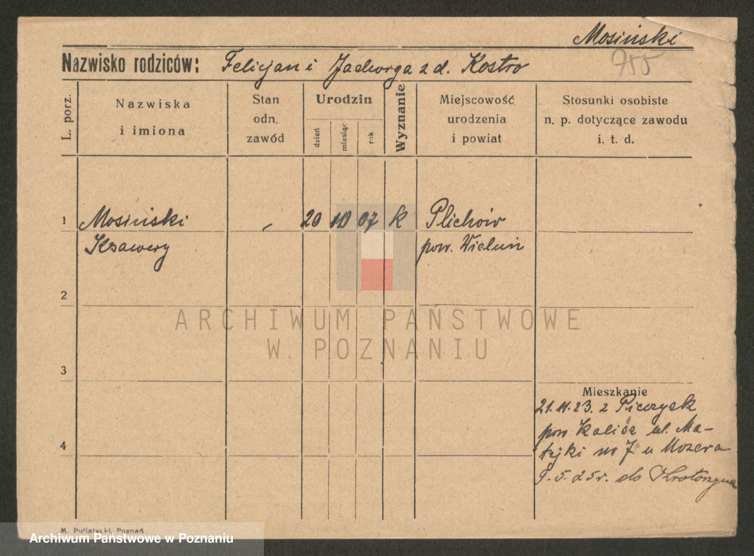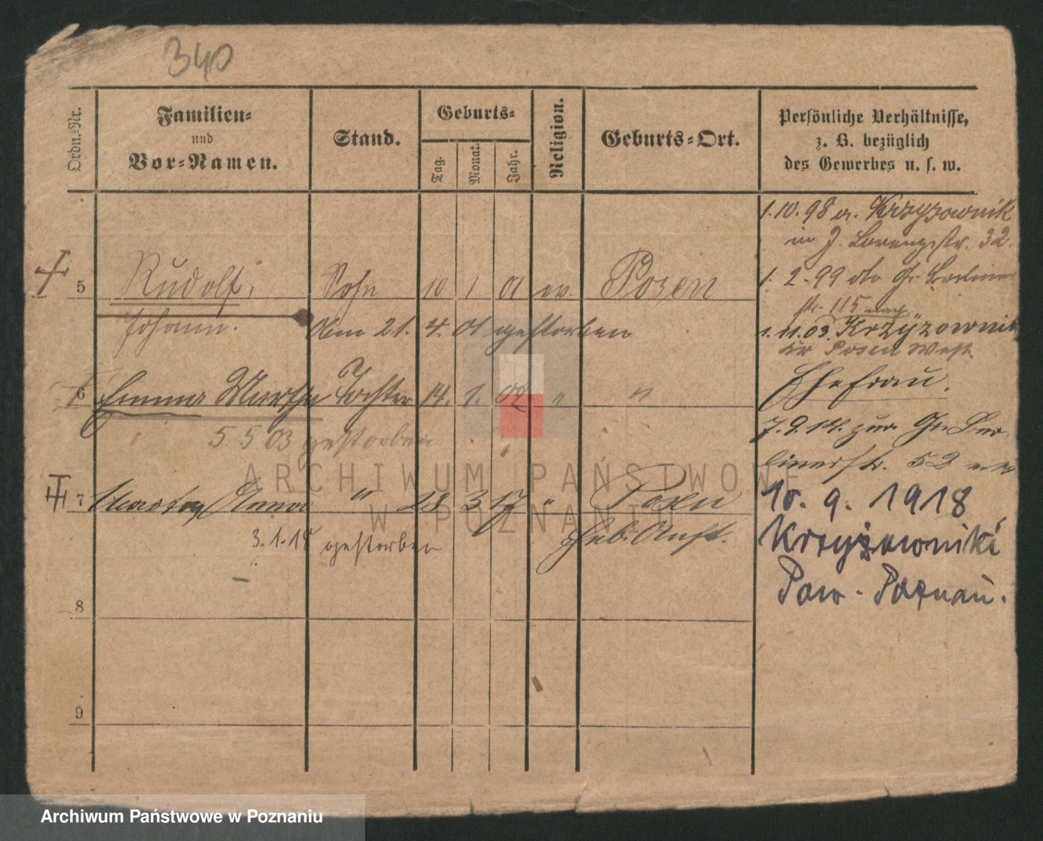 Podgląd karty osobowej dostępny jest po kliknięciu na nazwisko lub ikonkę karty. Można dokonywać powiększenia (ikony na górze) lub przechodzić między kolejnymi skanami (strzałki po bokach).