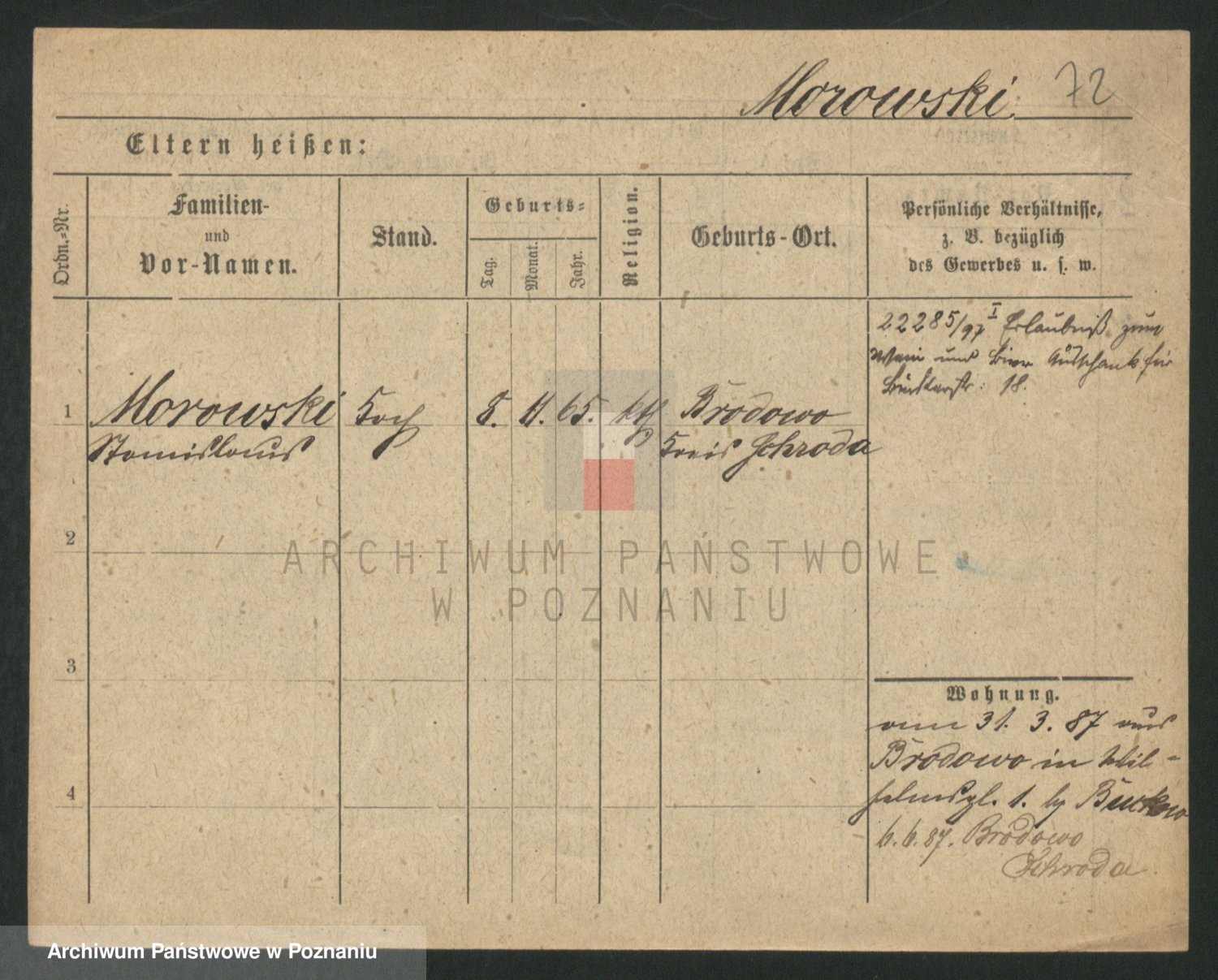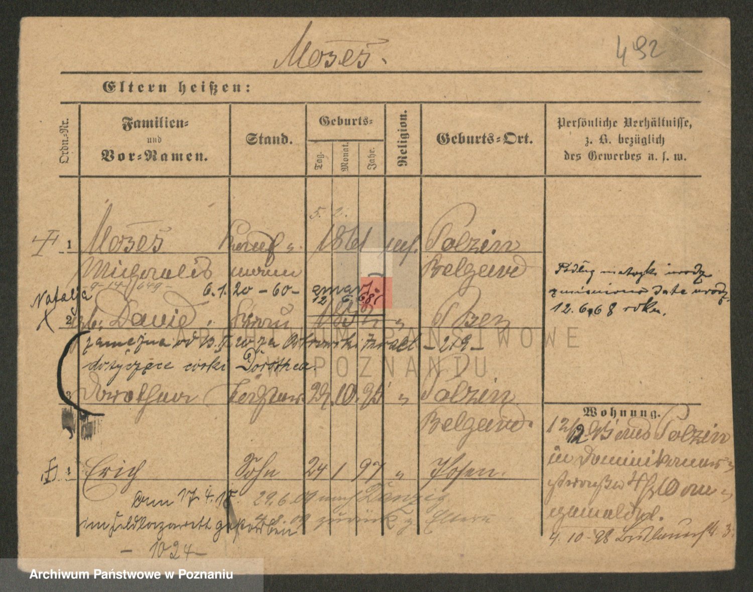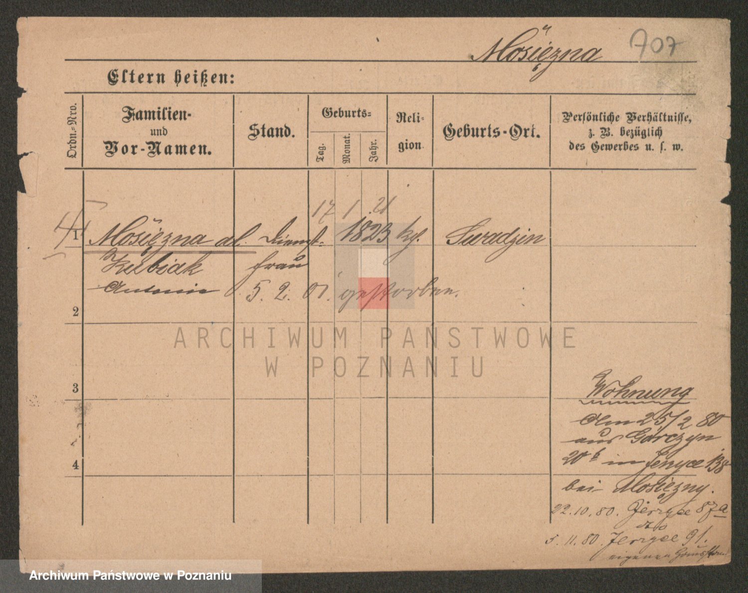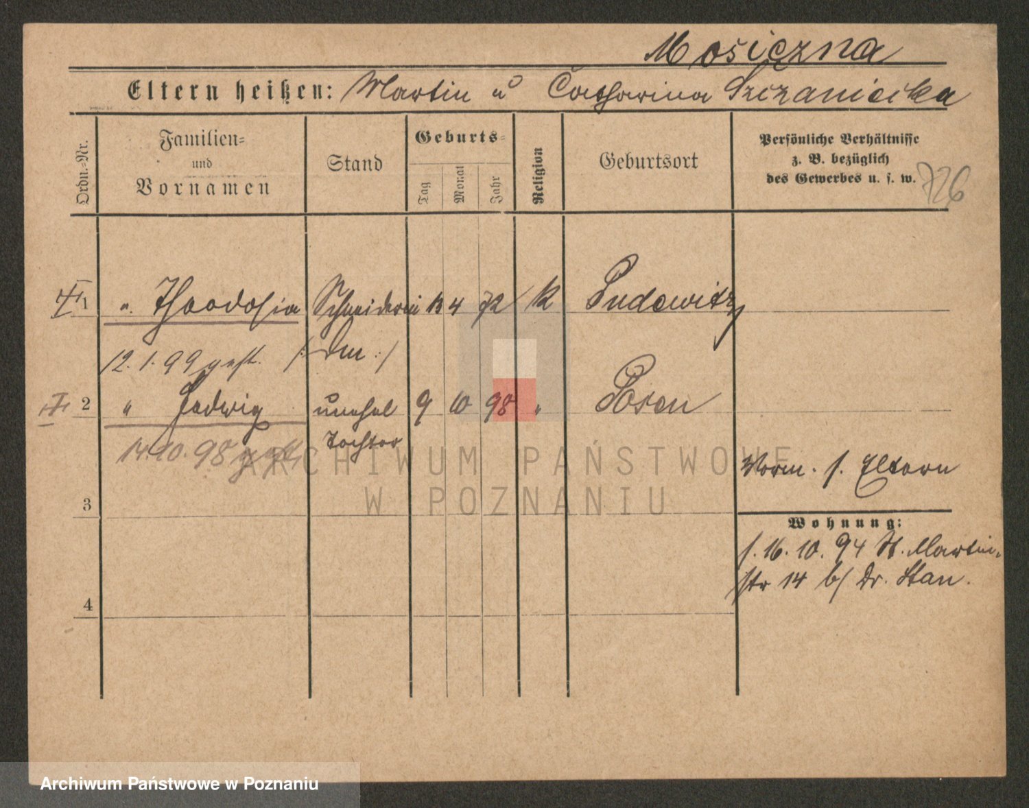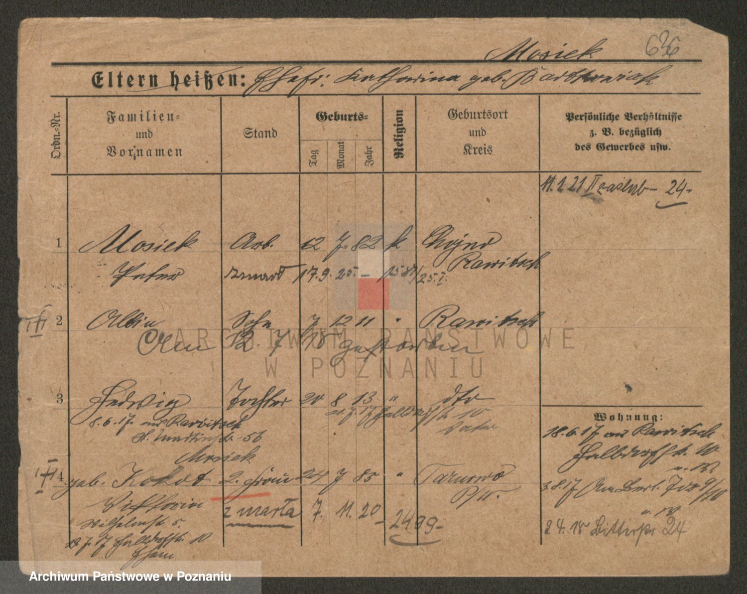 Podgląd karty osobowej dostępny jest po kliknięciu na nazwisko lub ikonkę karty. Można dokonywać powiększenia (ikony na górze) lub przechodzić między kolejnymi skanami (strzałki po bokach).
