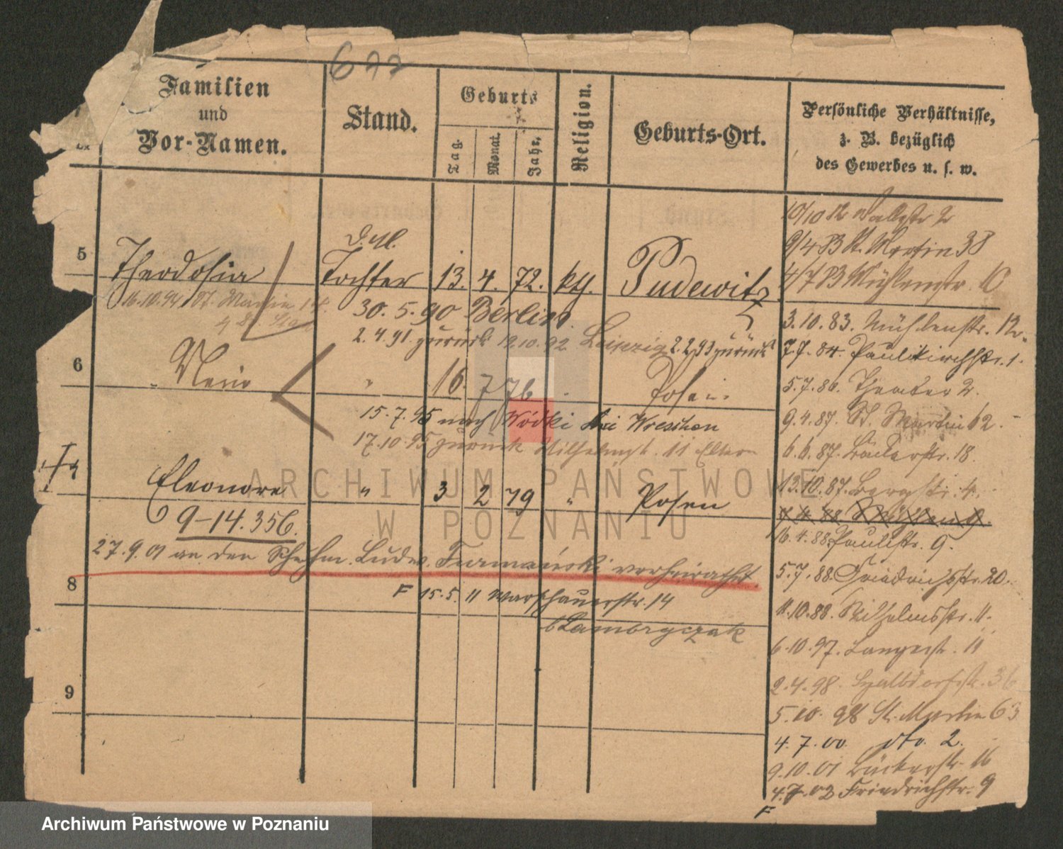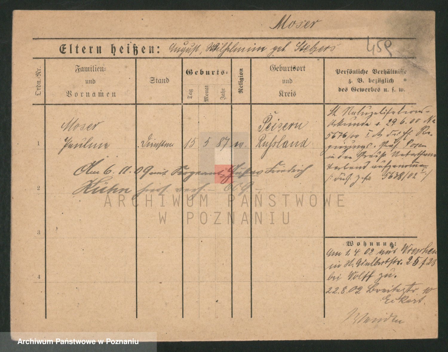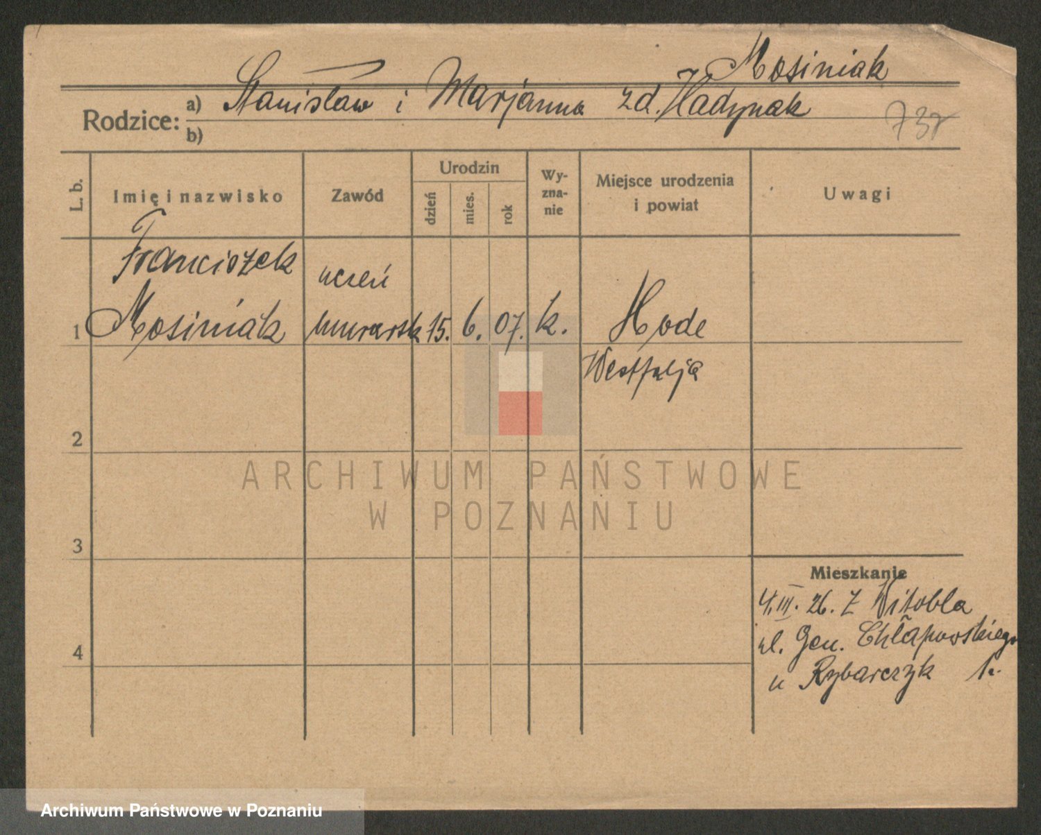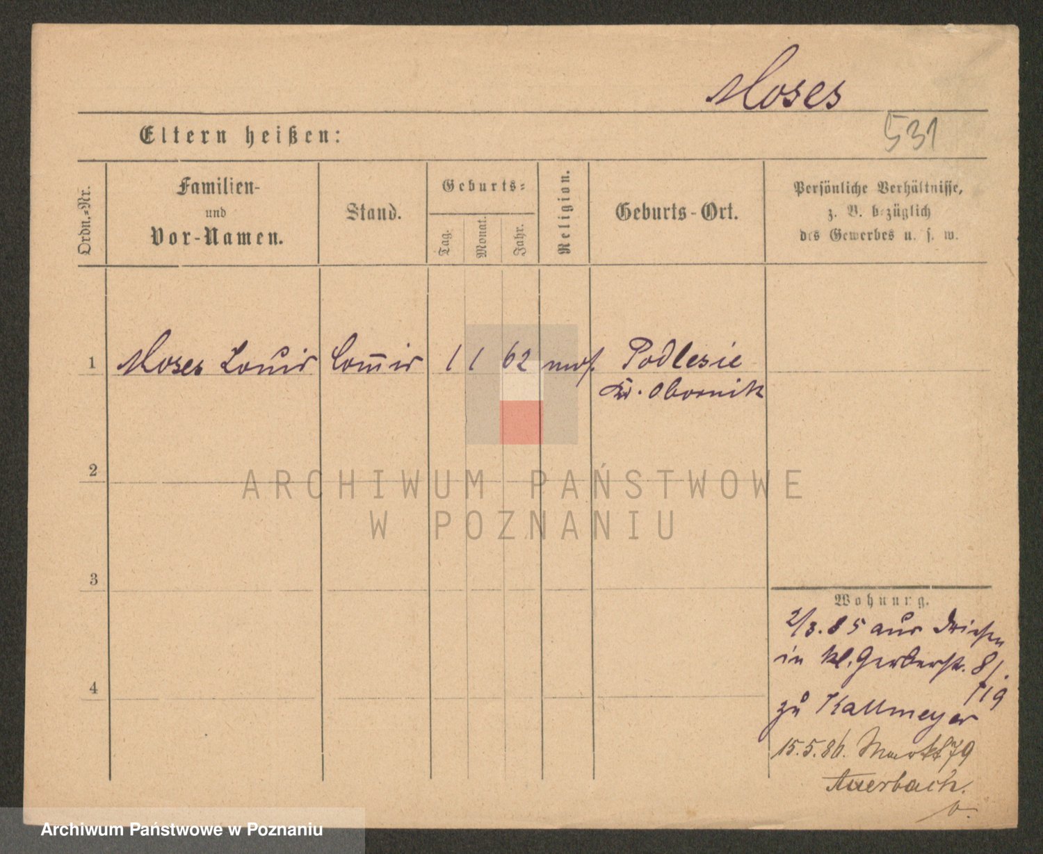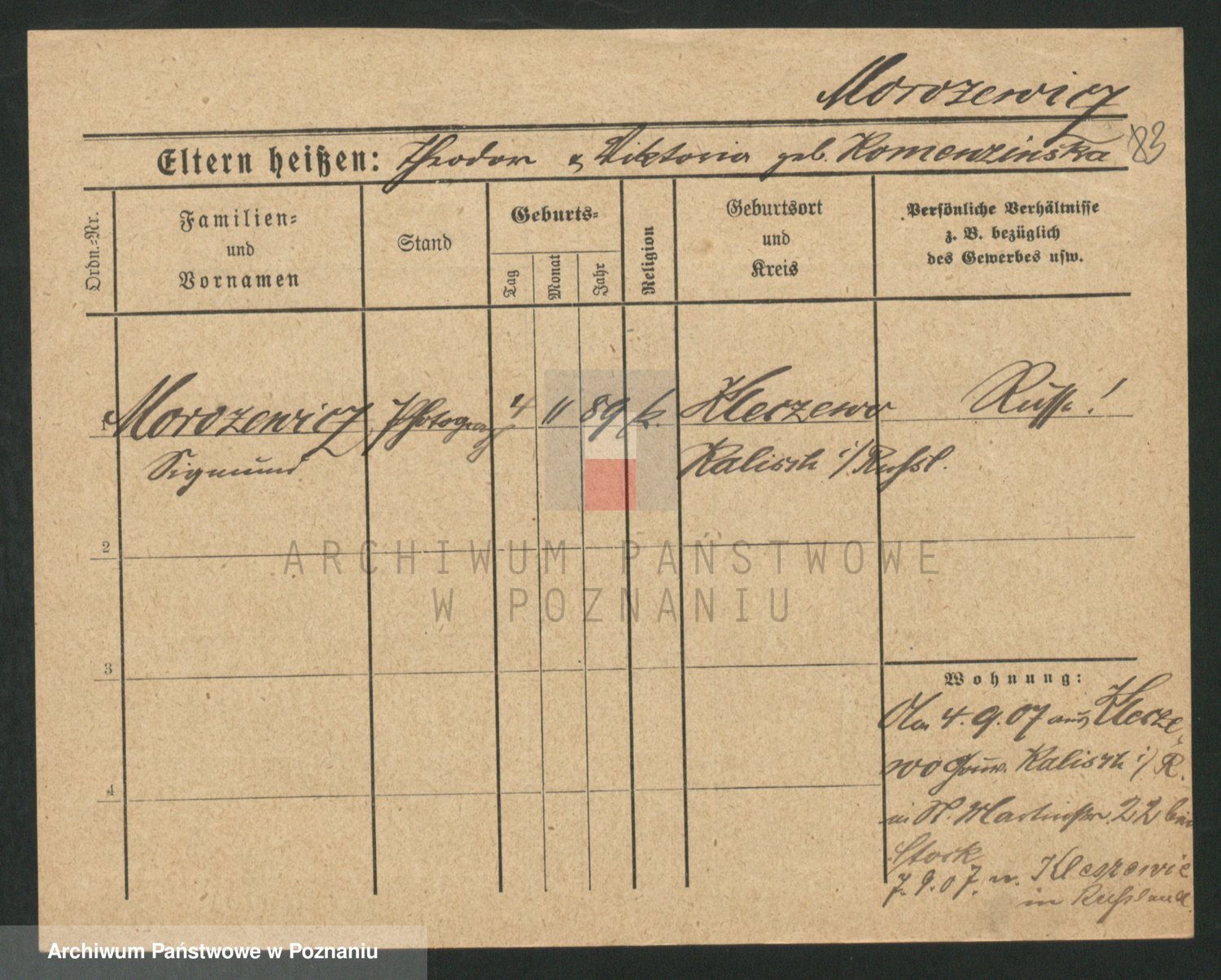 Podgląd karty osobowej dostępny jest po kliknięciu na nazwisko lub ikonkę karty. Można dokonywać powiększenia (ikony na górze) lub przechodzić między kolejnymi skanami (strzałki po bokach).