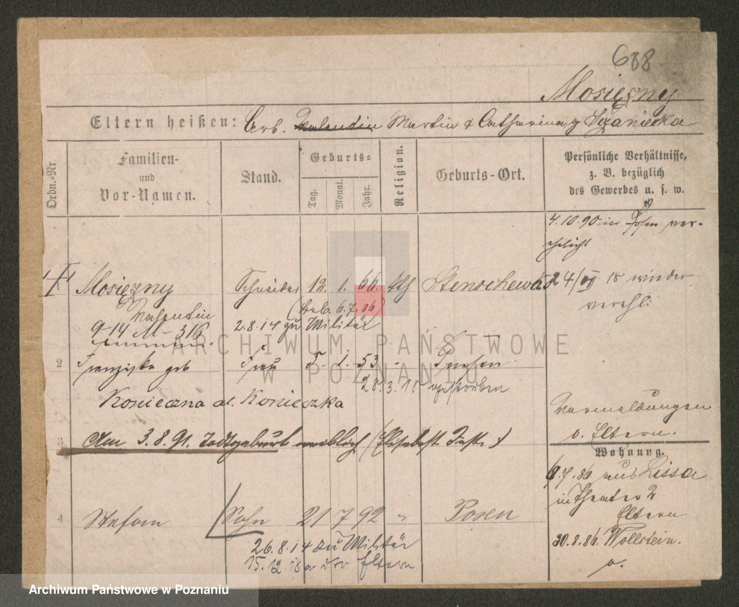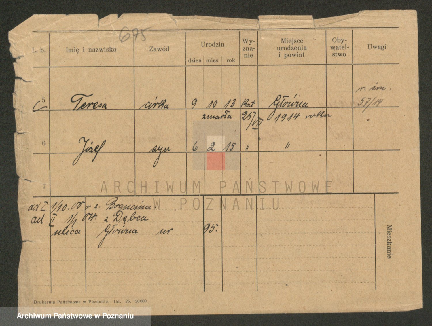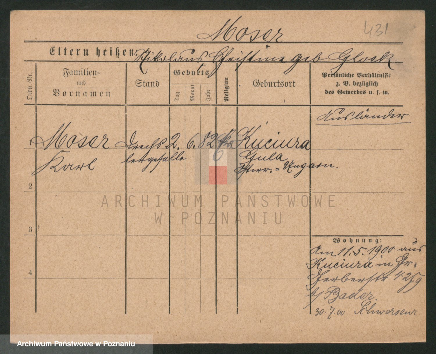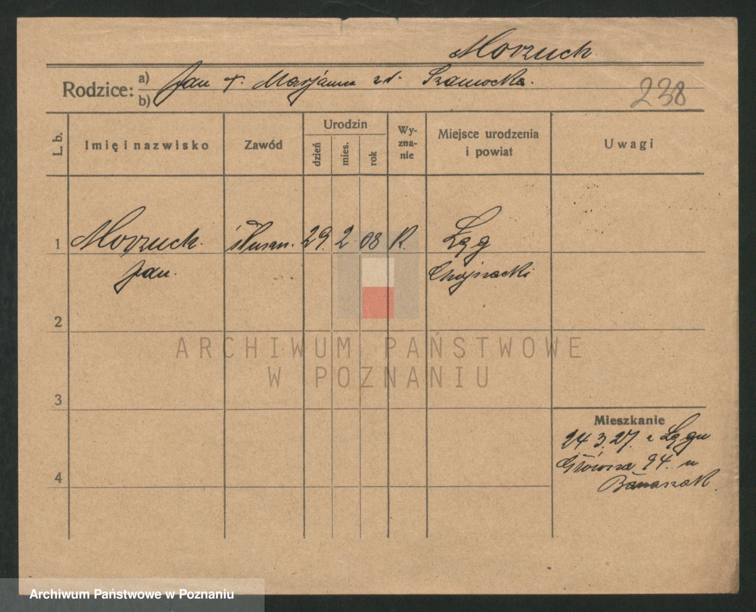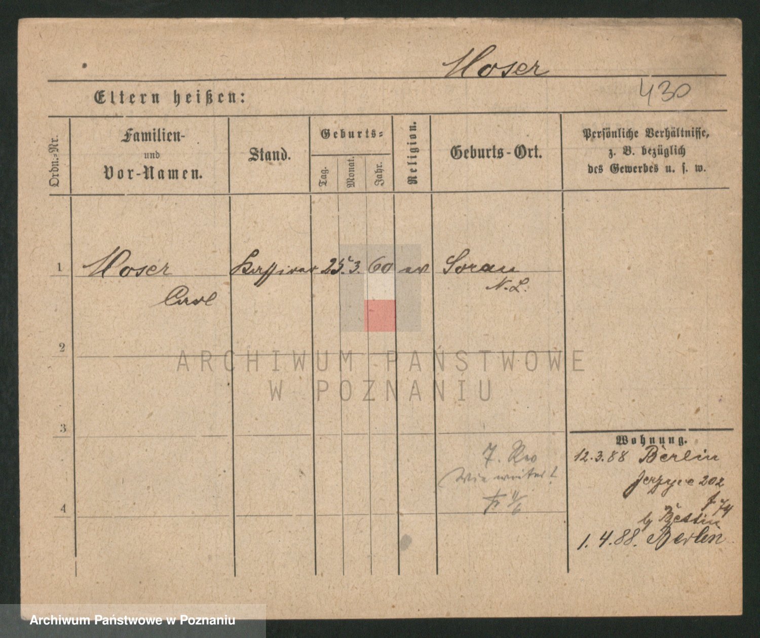 Podgląd karty osobowej dostępny jest po kliknięciu na nazwisko lub ikonkę karty. Można dokonywać powiększenia (ikony na górze) lub przechodzić między kolejnymi skanami (strzałki po bokach).