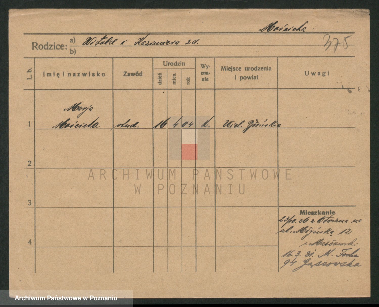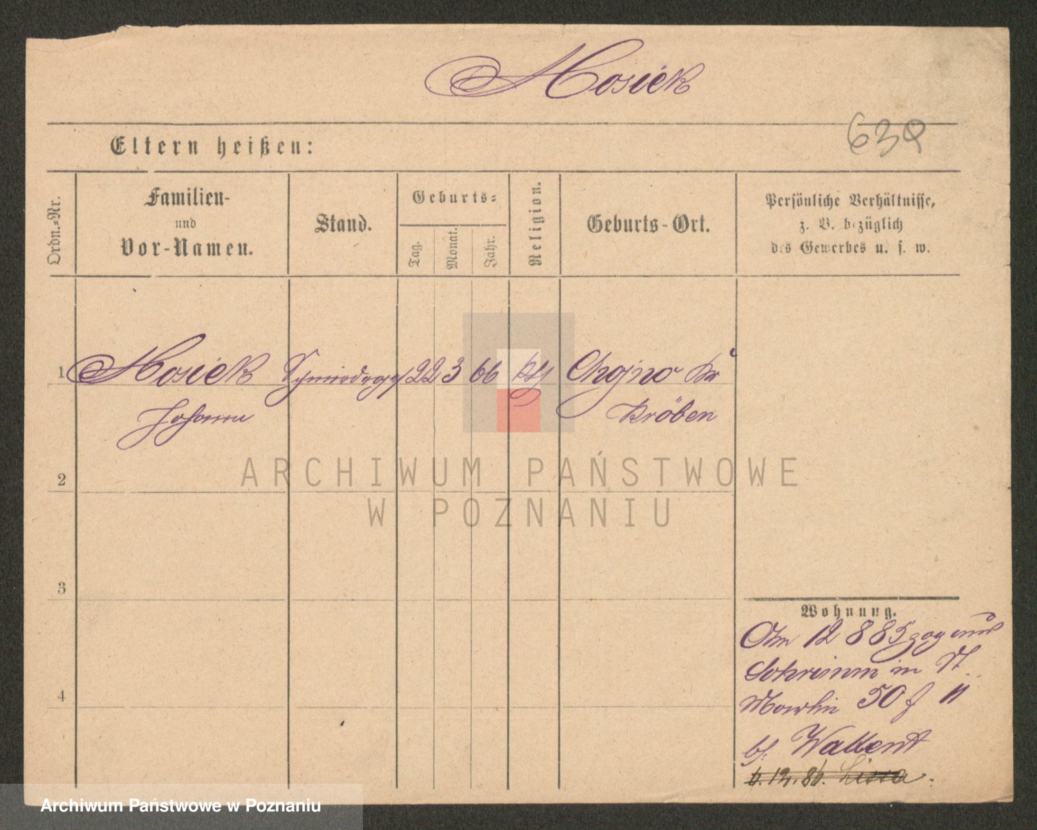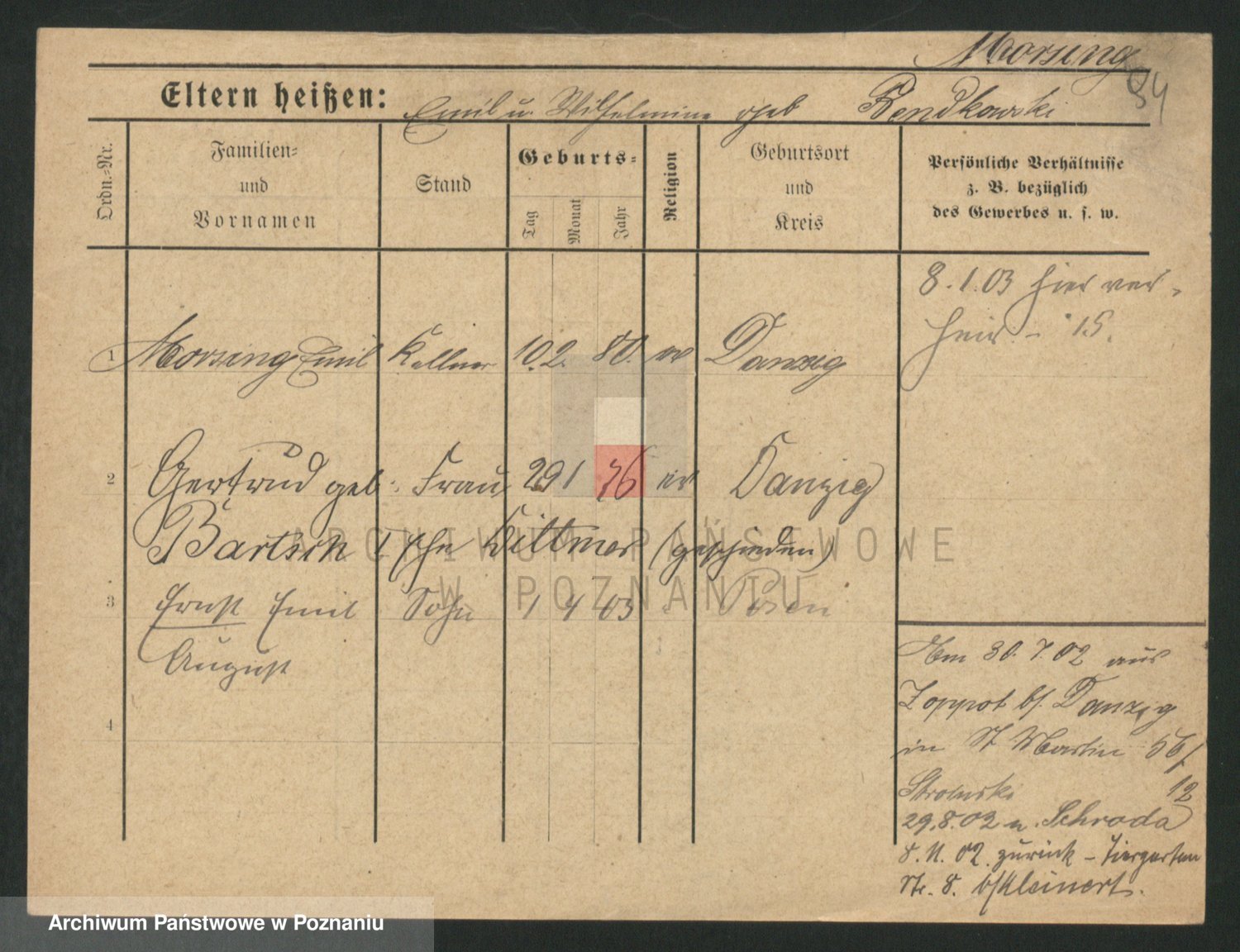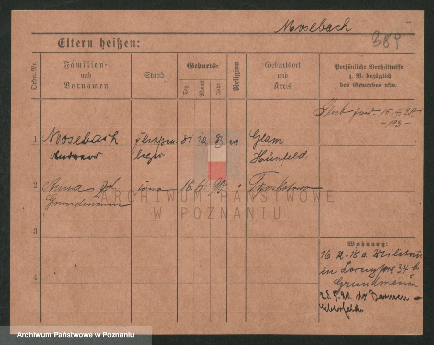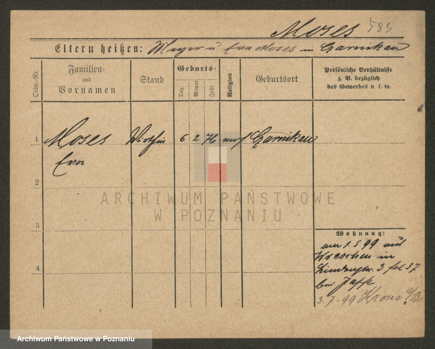 Podgląd karty osobowej dostępny jest po kliknięciu na nazwisko lub ikonkę karty. Można dokonywać powiększenia (ikony na górze) lub przechodzić między kolejnymi skanami (strzałki po bokach).