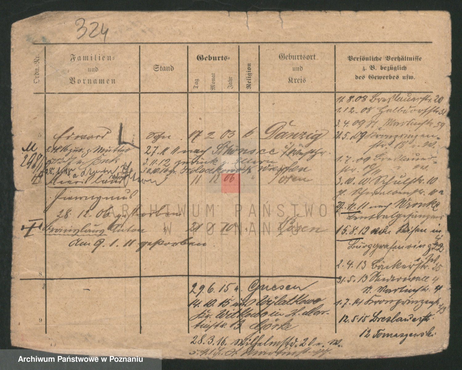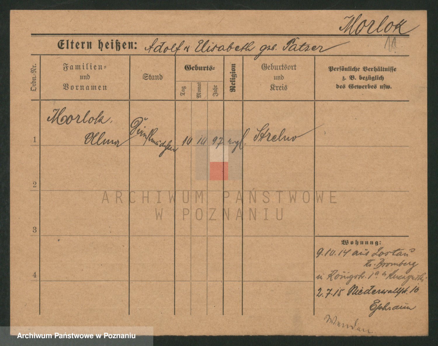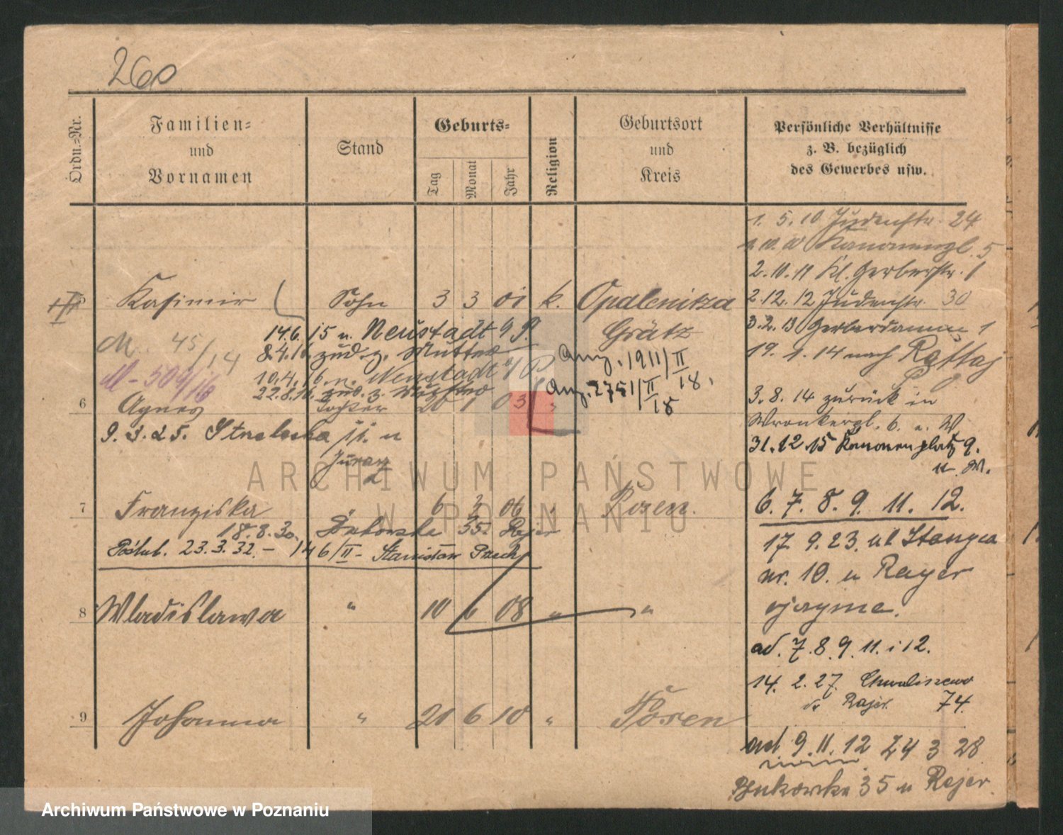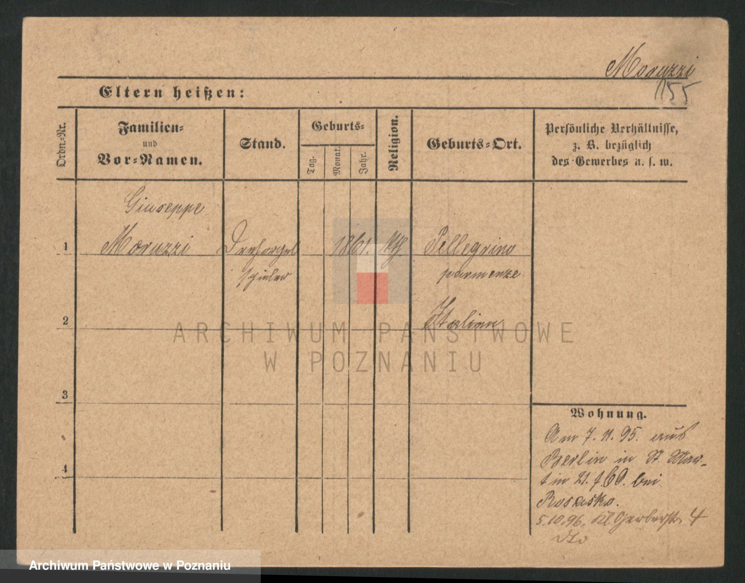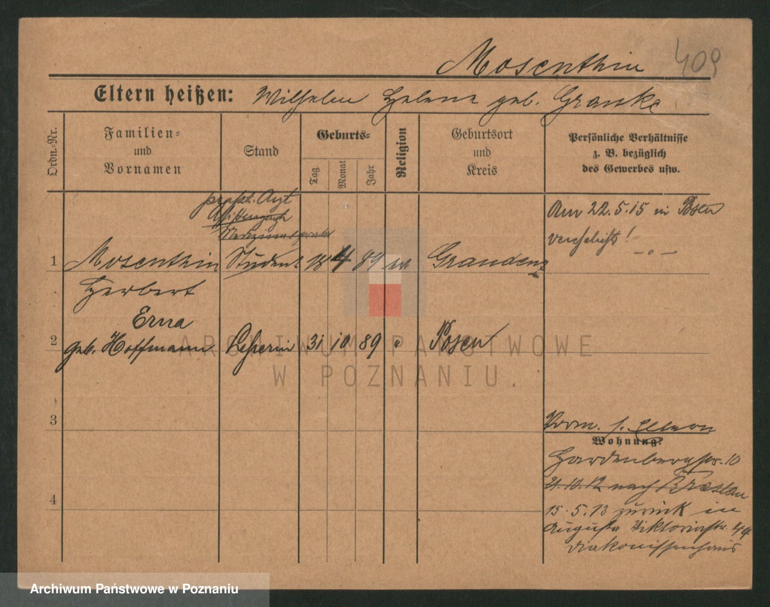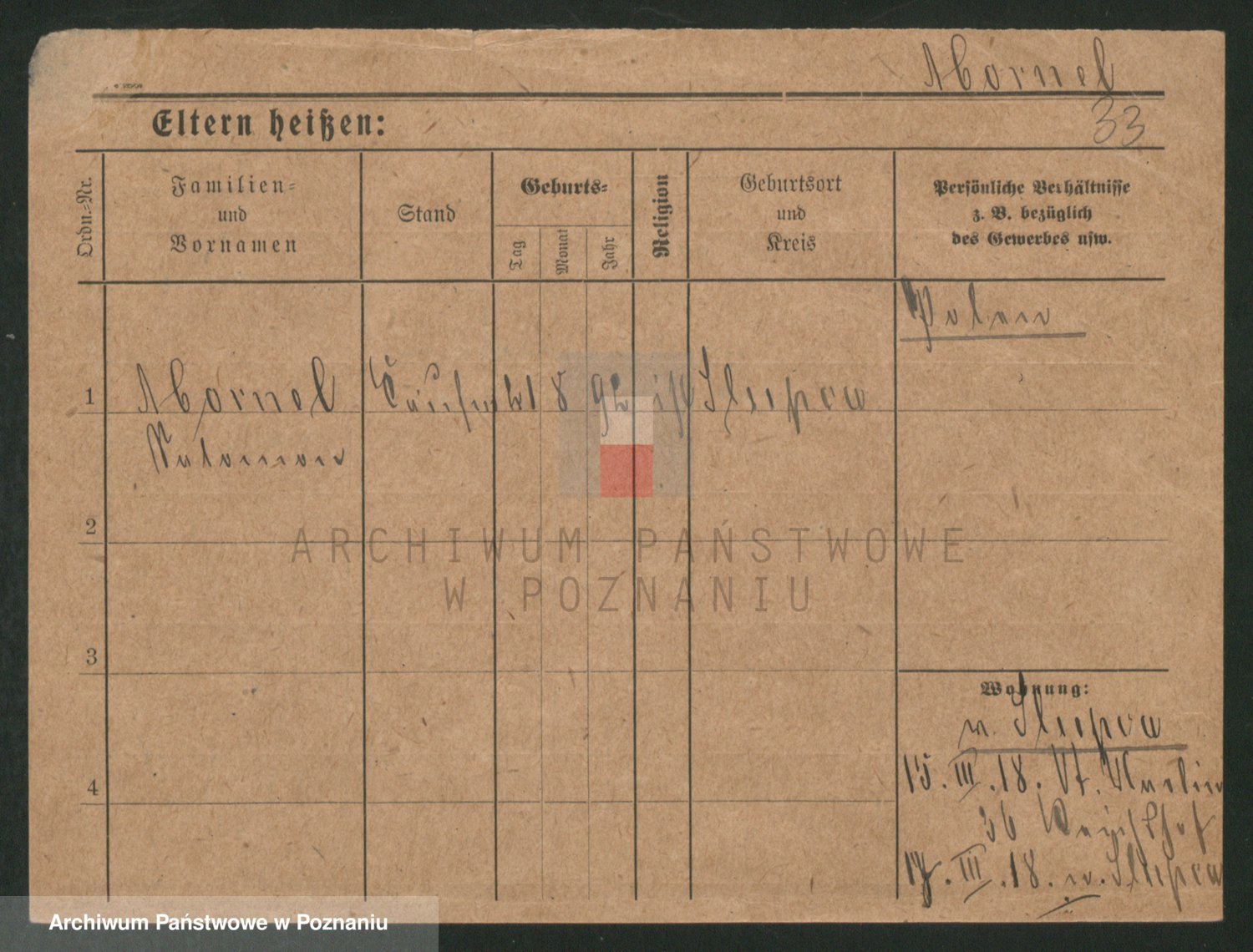 Podgląd karty osobowej dostępny jest po kliknięciu na nazwisko lub ikonkę karty. Można dokonywać powiększenia (ikony na górze) lub przechodzić między kolejnymi skanami (strzałki po bokach).