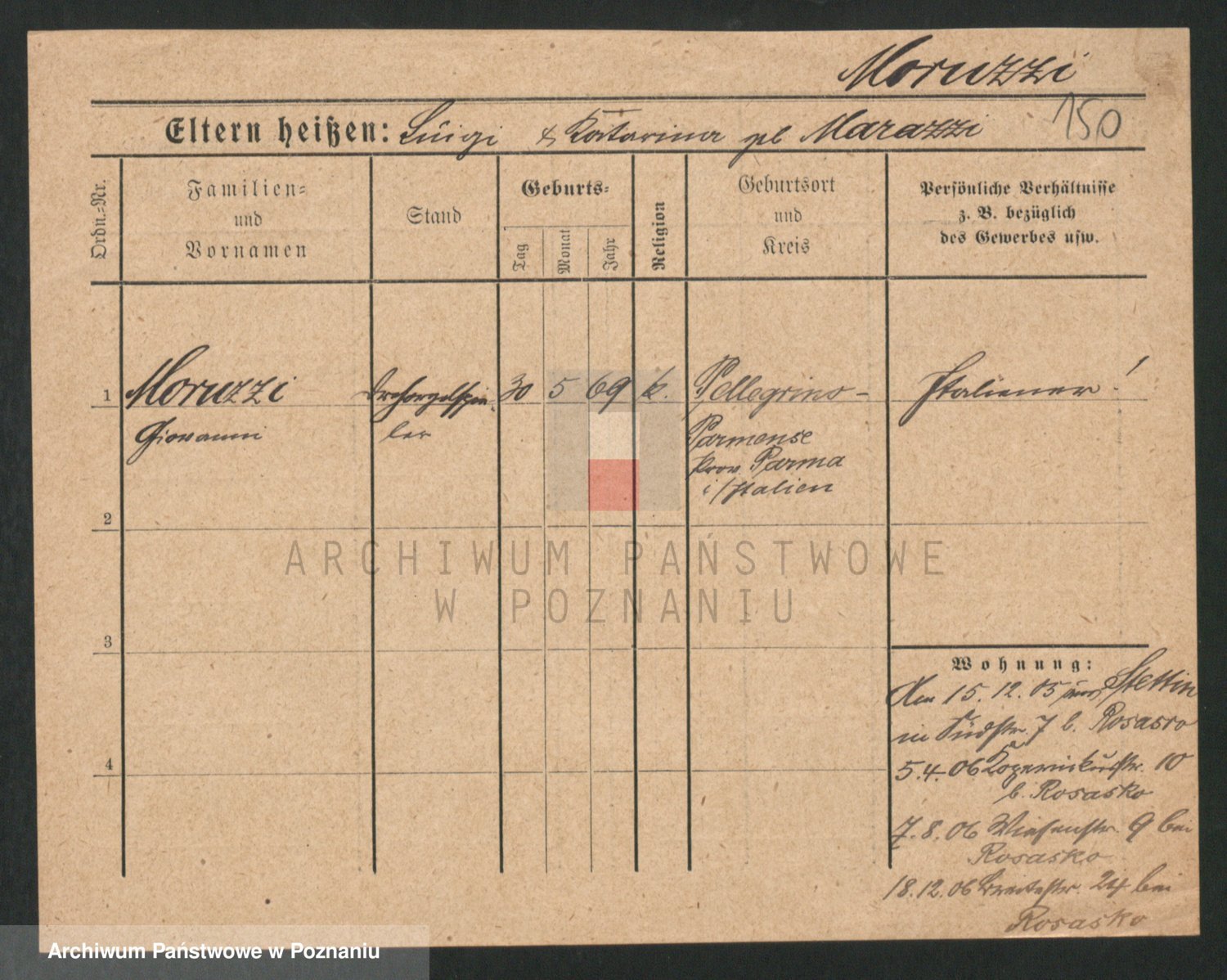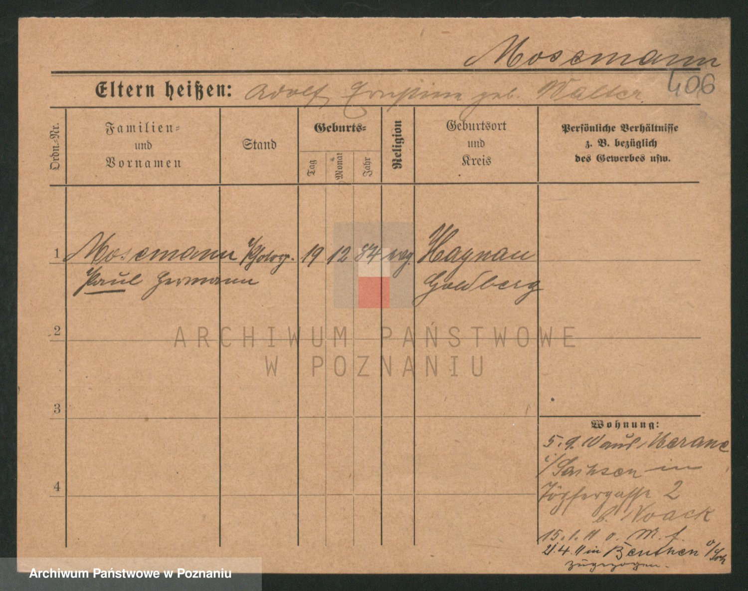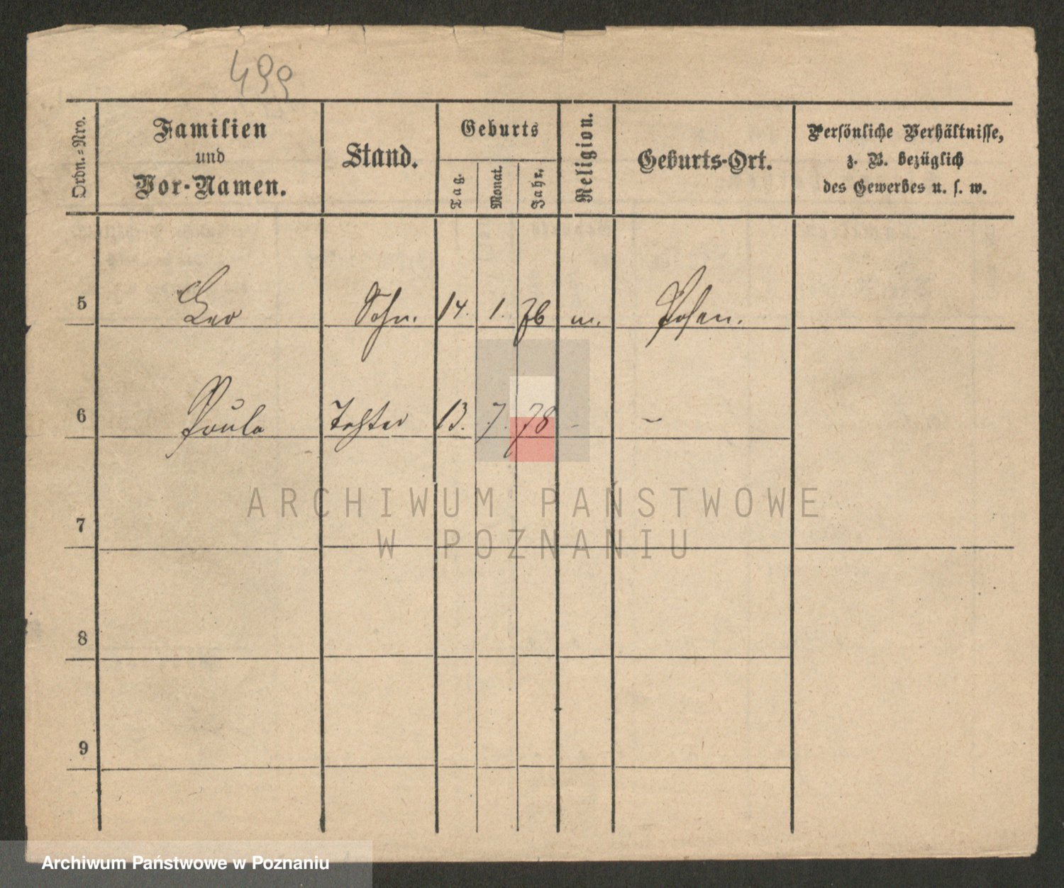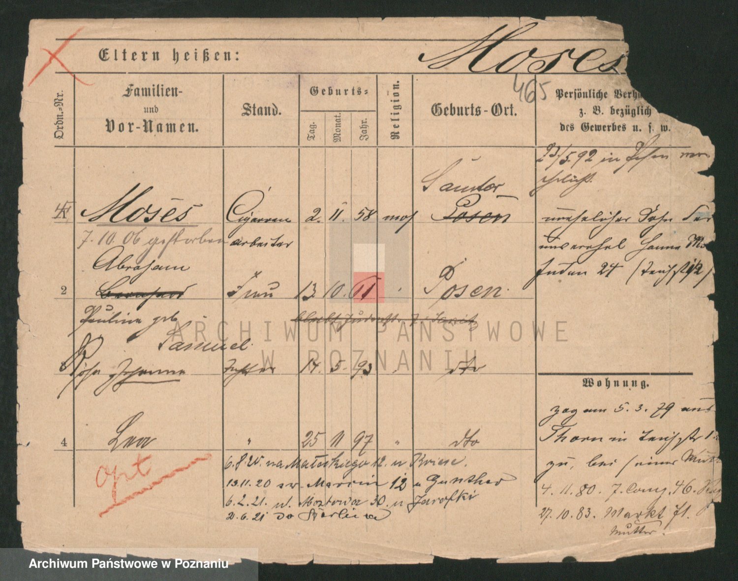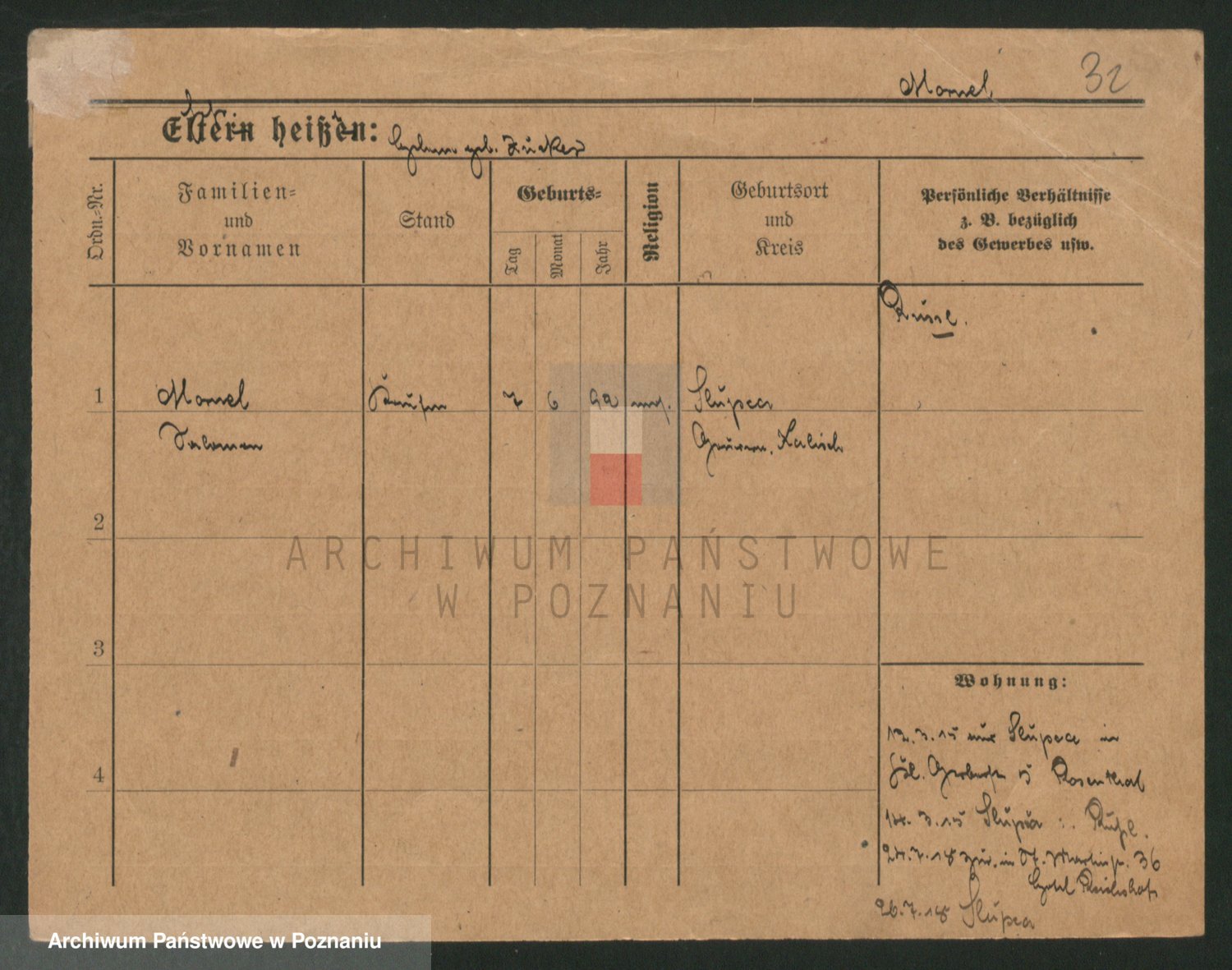 Podgląd karty osobowej dostępny jest po kliknięciu na nazwisko lub ikonkę karty. Można dokonywać powiększenia (ikony na górze) lub przechodzić między kolejnymi skanami (strzałki po bokach).