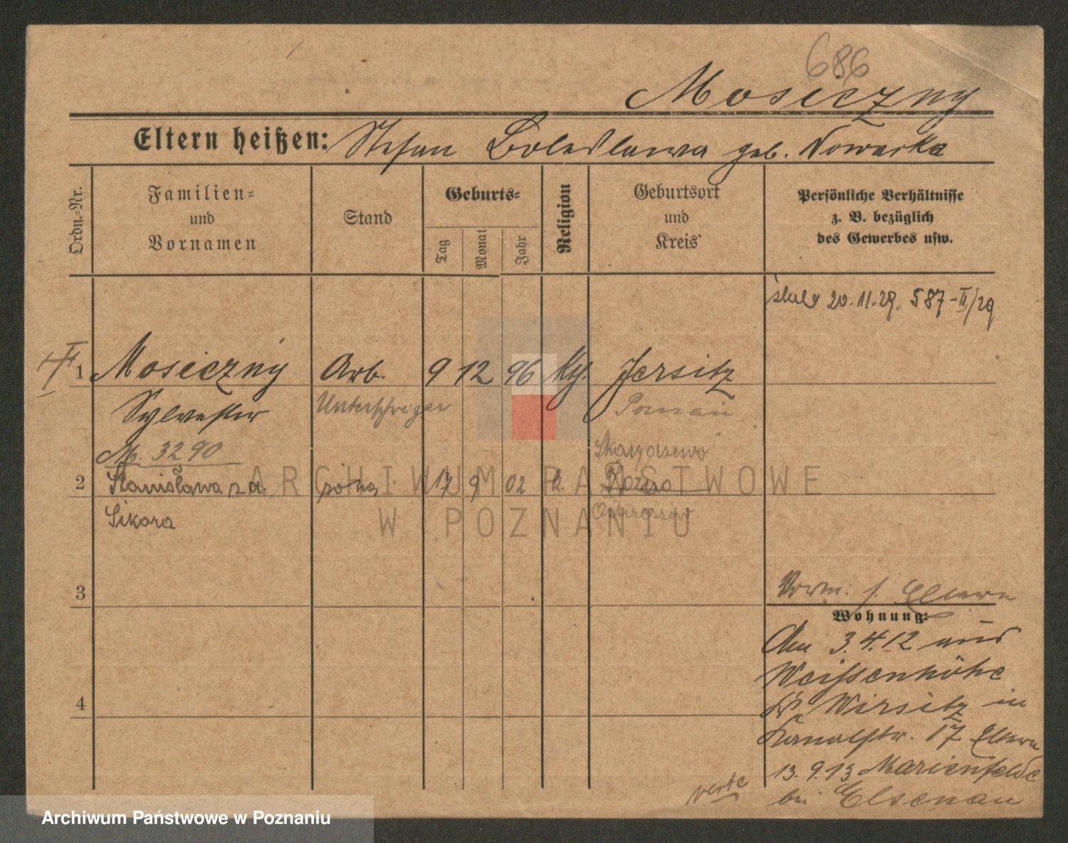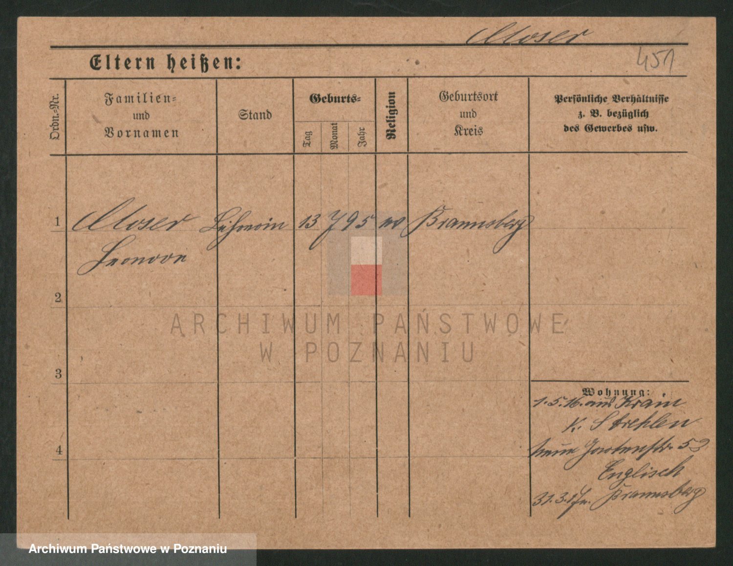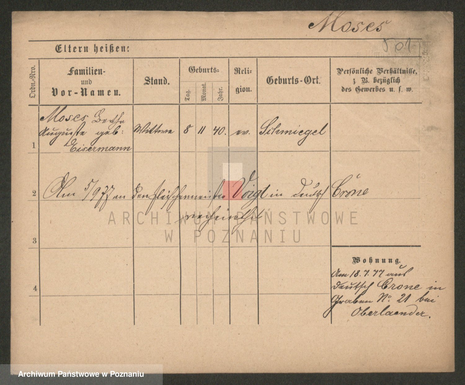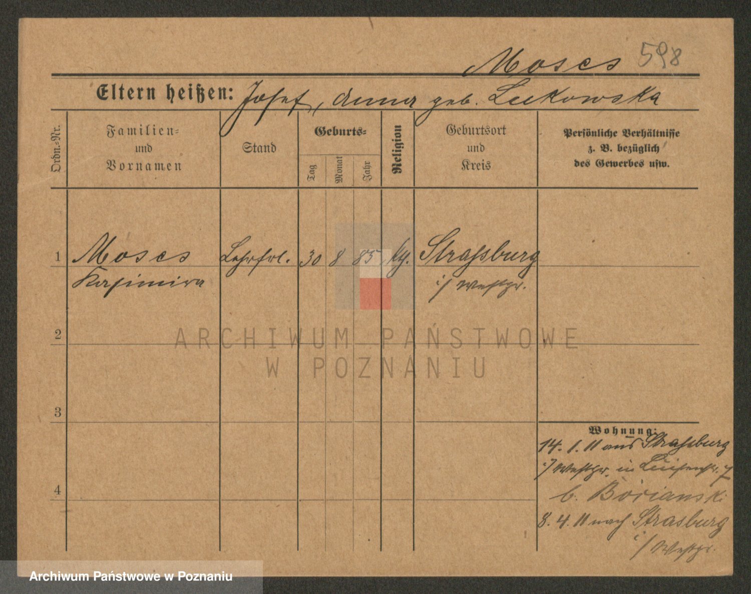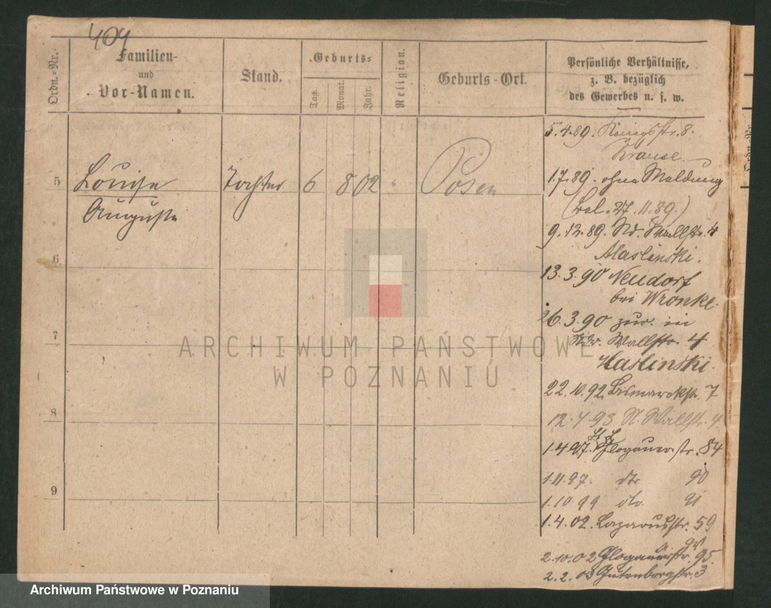 Podgląd karty osobowej dostępny jest po kliknięciu na nazwisko lub ikonkę karty. Można dokonywać powiększenia (ikony na górze) lub przechodzić między kolejnymi skanami (strzałki po bokach).
